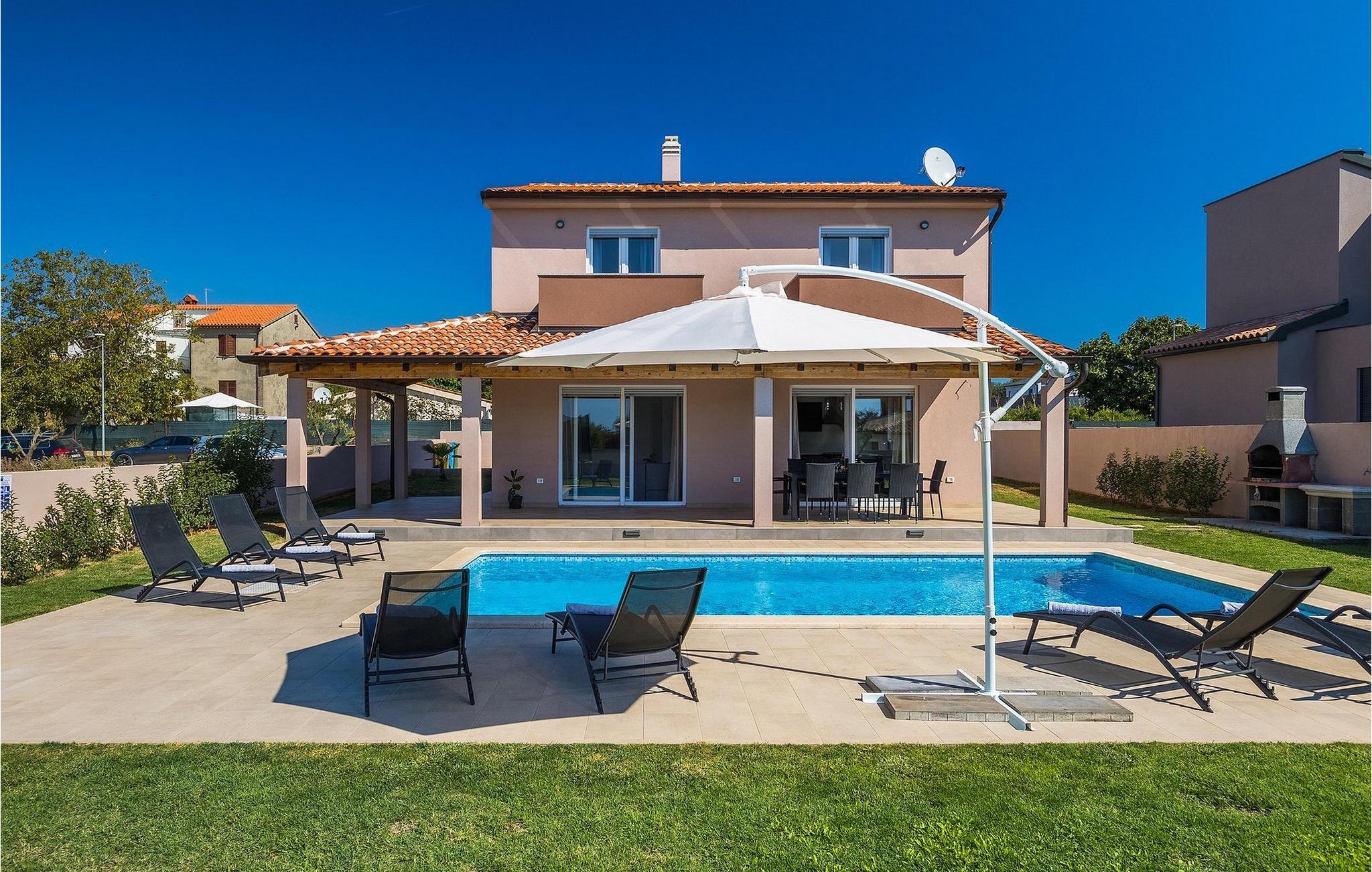 Den dejlige villa Enjoy med privat pool ligger i den sydlige del af Istrien, nær byerne Pula og Medulin. Det kan rumme op til 8 gæster i 4 soveværelser. Lær Pula og dens omgivelser at kende og tilbring en dejlig ferie med dine kære i denne smukke villa.