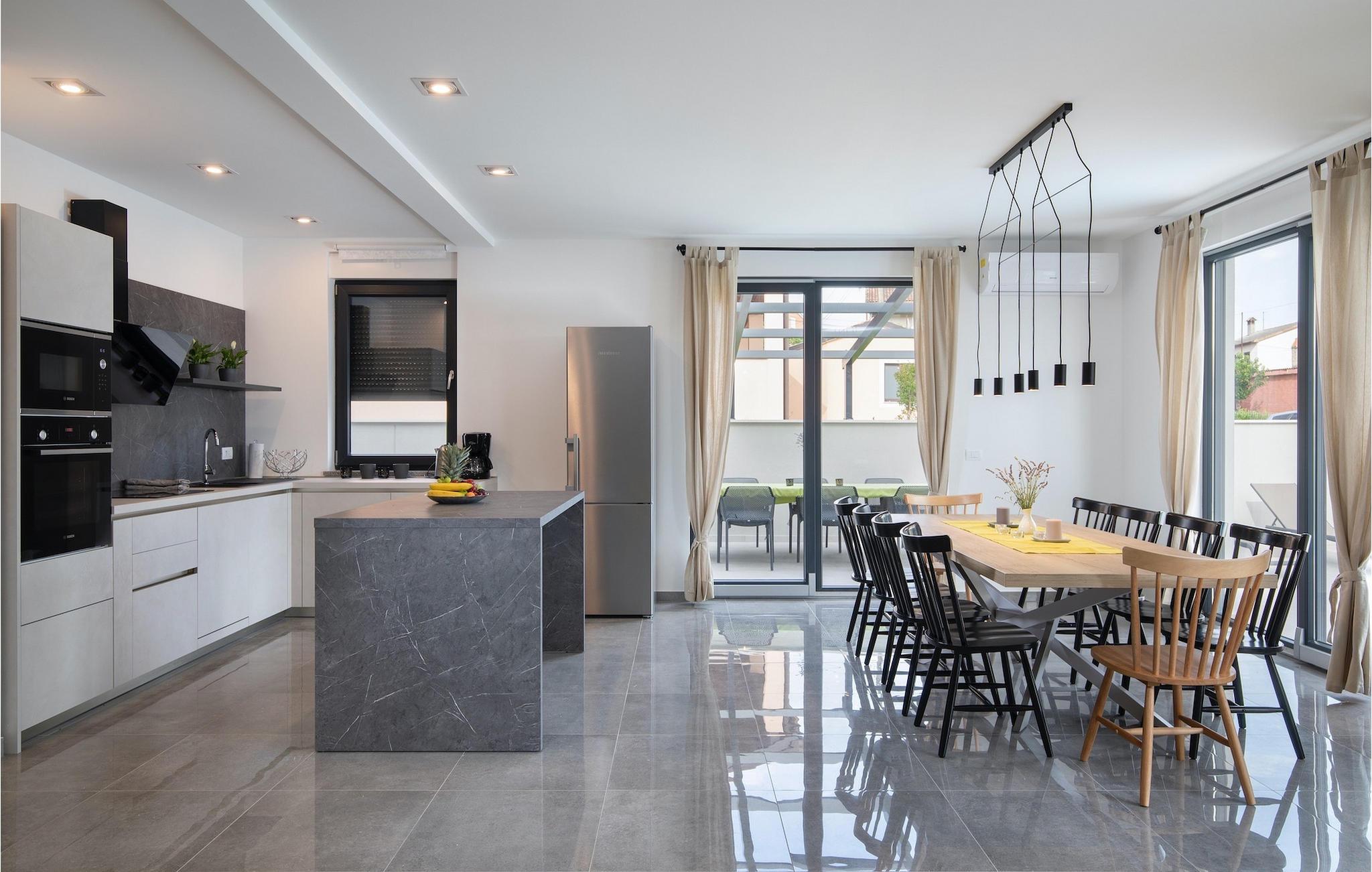 Nyd din ferie i en fantastisk, moderne villa beliggende tæt på centrum af det smukke og største turistcenter i Istrien. Villa Perle i Pula venter på dig med alt klar til din perfekte ferie. Villaen kan rumme op til 10 gæster i 4 luftige soveværelser (alle med dobbeltsenge) indrettet med omhu og talrige trendy detaljer, som vil imponere med deres lyse, naturlige farver og minimalistiske udsmykning. To af soveværelserne er placeret i stueetagen (hver med sit private badeværelse). Første sal råder over de andre 2 soveværelser med ensuite badeværelser. Begge disse værelser har udgang til en bred terrasse med havemøbler til at slappe af og nyde de første solstråler. Samtlige soveværelser har desuden tv og aircondition, mens der er ekstra mulighed for at sove på sovesofaen i stuen. Stueetagen byder også på et rummeligt område til sammenkomster - et moderne, fuldt udstyret køkken forbundet med stue og spiseplads i et åbent koncept. Du kan også nyde i det udendørs område omkring den indbydende pool eller ved siden af grillen, hvor du kan smage dine yndlingsmåltider på den store terrasse.Villa Perle ligger i den smukke by Pula, den største by i Istrien, og en af de mest berømte turistmål. Pula blev kåret som en af The Telegraphs 20 mest eftertragtede destinationer i 2017. Denne antikke romerske by blev bygget i 46 f.Kr. Sørg for at besøge det største monument, det berømte amfiteater fra det 1. århundrede. Mange begivenheder finder sted her, lige fra koncerter og filmvisninger til sportsbegivenheder. I den gamle bydel er forummet med Augusttemplet. Her kan du også besøge det historiske museum i Istrien og det arkæologiske museum i Istrien. I området kan du besøge smukke små istriske byer, udforske naturlige strande, vandre, cykle eller dykke. Pula byder på adskillige fritidsaktiviteter såsom sport, barer, restauranter, natklubber samt organiserede ture, f.eks. et besøg i nationalparken Brijuni.