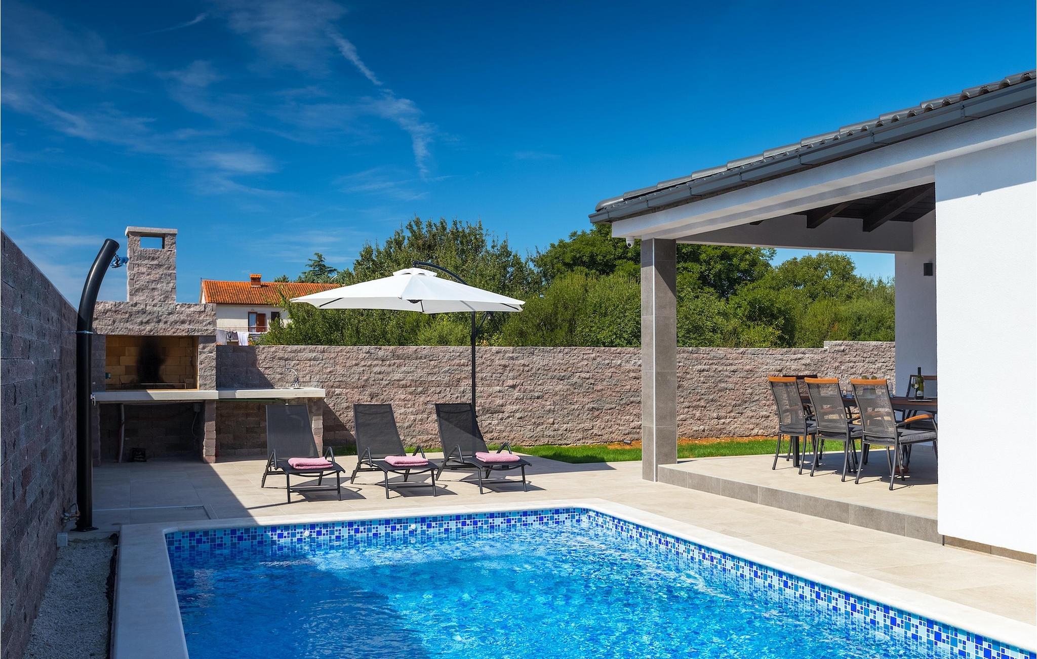 Leder du efter ferie i en villa nær byens centrum og kun 5 km fra smukke naturlige strande? Villa Elena Pula, beliggende i Pula, er det rigtige sted at være, og det kan rumme op til 8 gæster i 3 komfortable og moderne soveværelser. Til ekstra overnatning er der 2 sovesofaer med madrasser, hver egnet til 2 gæster. Det ene værelse har en dobbeltseng mens to værelser er udstyret med enkeltsenge, som kan kobles sammen til en dobbeltseng, hvis det er nødvendigt. Dette enetagers hus er perfekt til din familieferie. Med dets udendørs tekøkken med grill og al fresco spiseplads, vil du tilbringe meget tid i haven eller ved siden af den indbydende pool, mens børnene kan lege på trampolinen og rutsjebanen i haven. Alle værelser er indrettet på en moderne måde, så de passer til dine behov. Du kan nyde madlavning i det fuldt udstyrede køkken (i forbindelse med stuen og spisepladsen), mens du kigger over til poolområdet omgivet af liggestole og store parasoller. Nyd din ferie i Pula, mens du har alle fornødenheder inden for gåafstand og udforsker den fantastiske halvø Istrien!Velkommen til storslåede Pula, den største by på halvøen Istrien! Pula er berømt for sin arkitektur, smukke strande og rige natteliv. I den gamle bymidte kan du finde Forum med August-templet, Sergii's triumfbue, Hercules-porten og selvfølgelig det mest berømte monument - Arenaen (gammelt romersk amfiteater, der går tilbage til det 1. århundrede e.Kr.). Her kan du også besøge det historiske museum i Istrien og det arkæologiske museum i Istrien. Hvis du vil have en aktiv cykeltur, besøg Cape Kamenjak (syd for Pula) eller den nærliggende nationalpark på Brijuni-øen. I det omkringliggende område kan du også udforske smukke små istriske byer, naturlige strande og tage på vandreture eller dykke. Mens du er her, kan du prøve nogle lækre istriske specialiteter (trøfler, prosciutto ...) i en af de berømte restauranter.