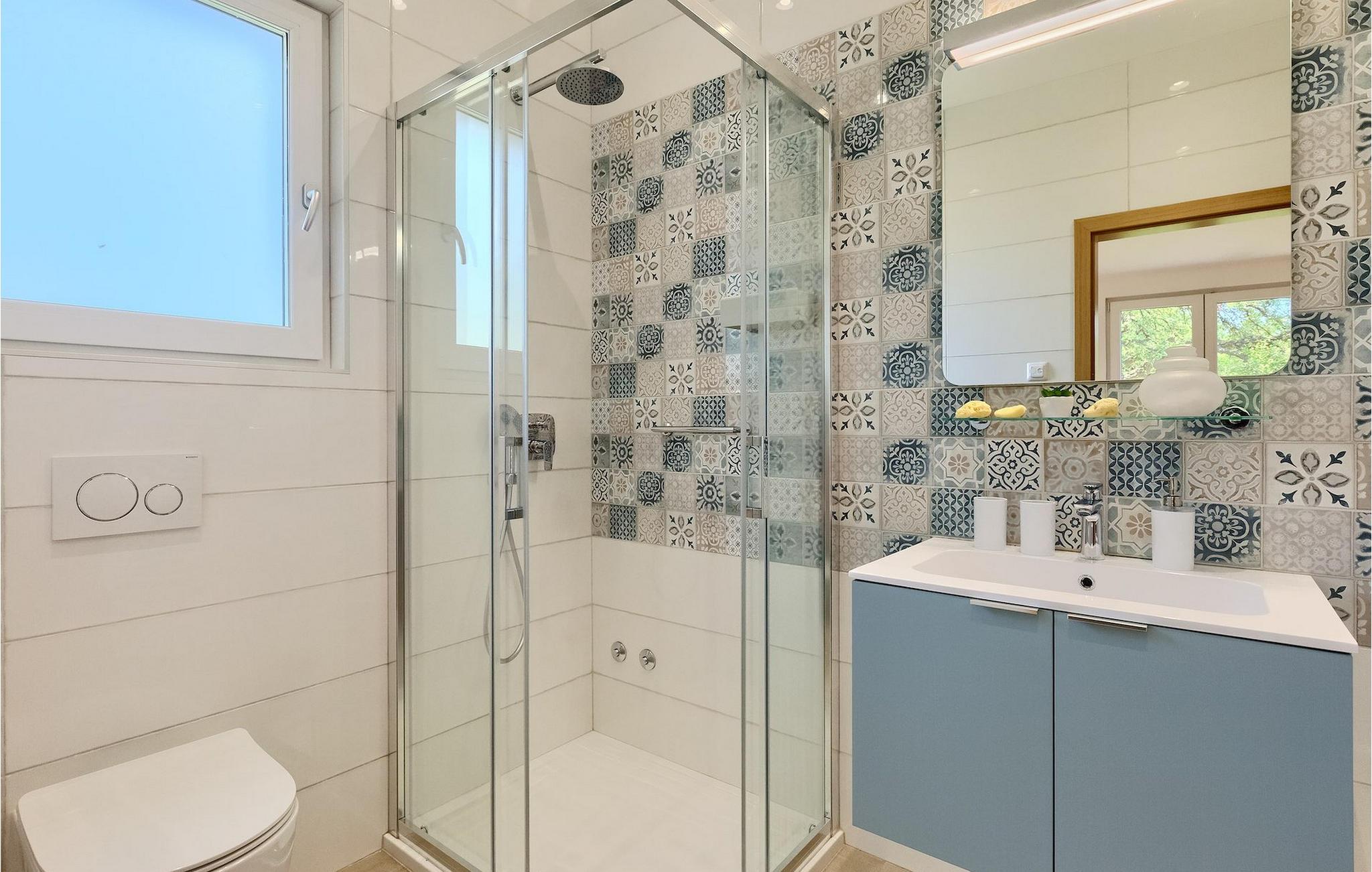 På første sal finder du 3 soveværelser med dobbeltsenge, TV og AC i hvert værelse. Et af værelserne har eget badeværelse, og der er også et separat badeværelse på første sal.