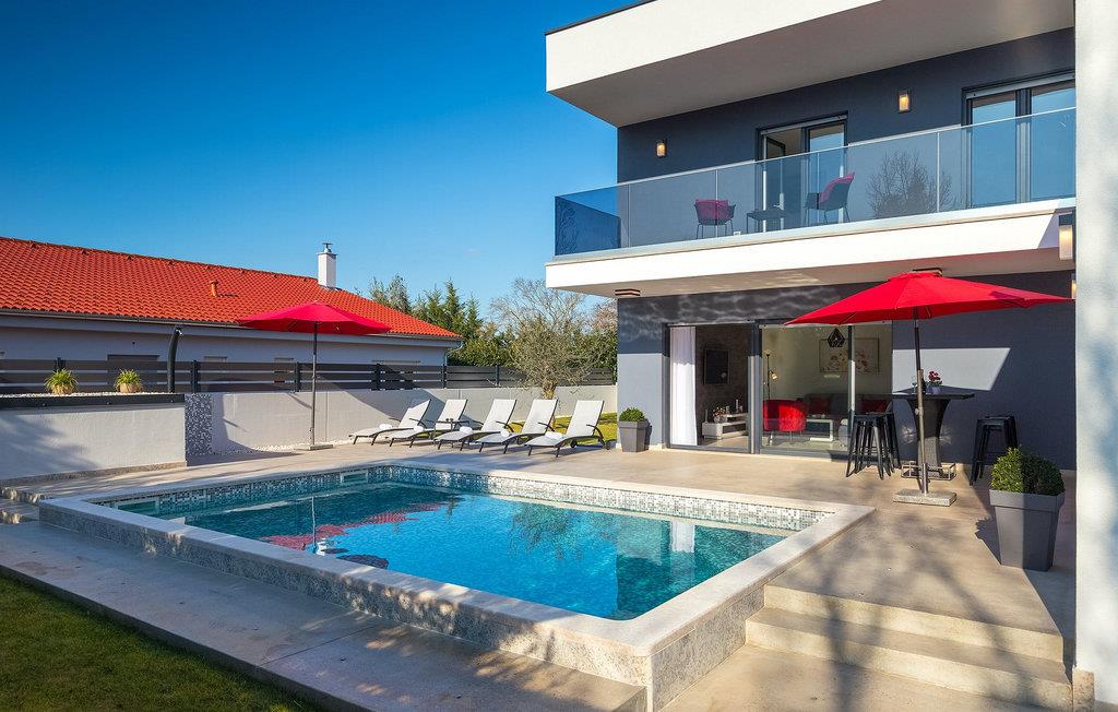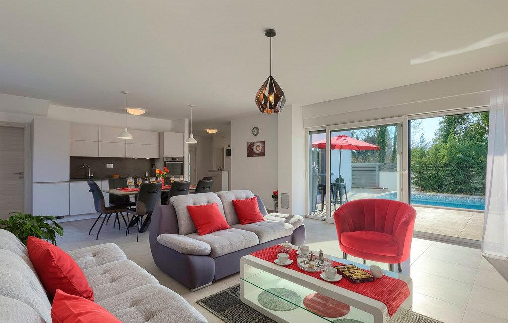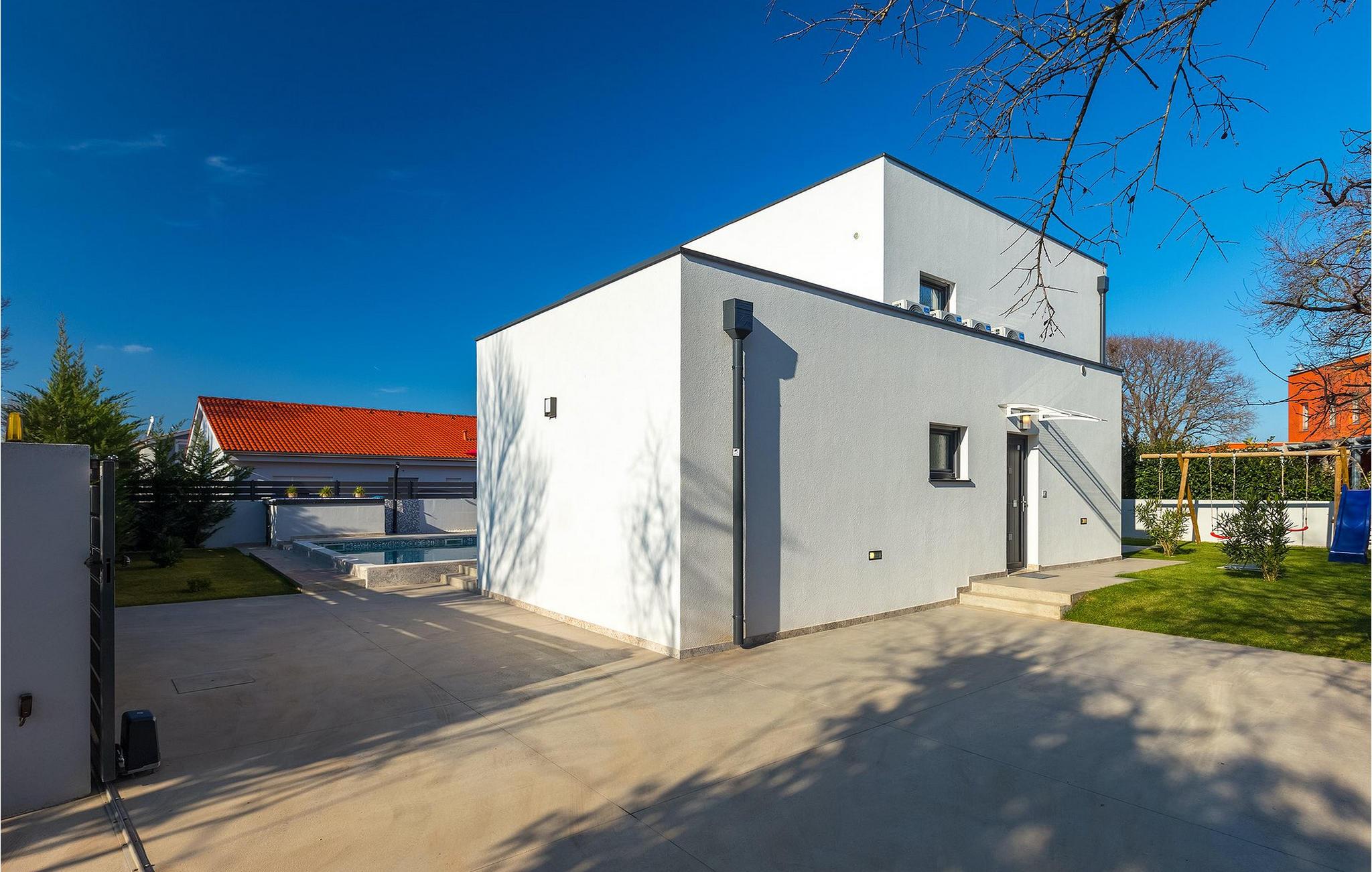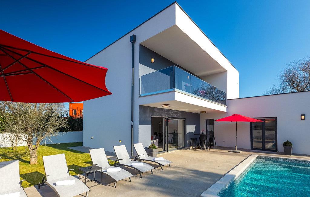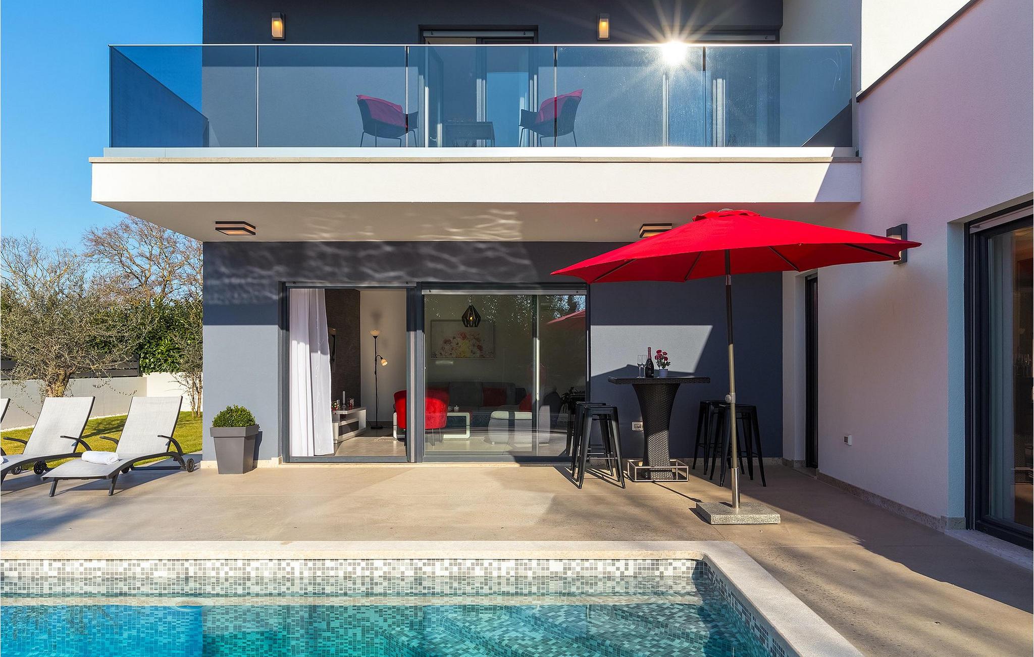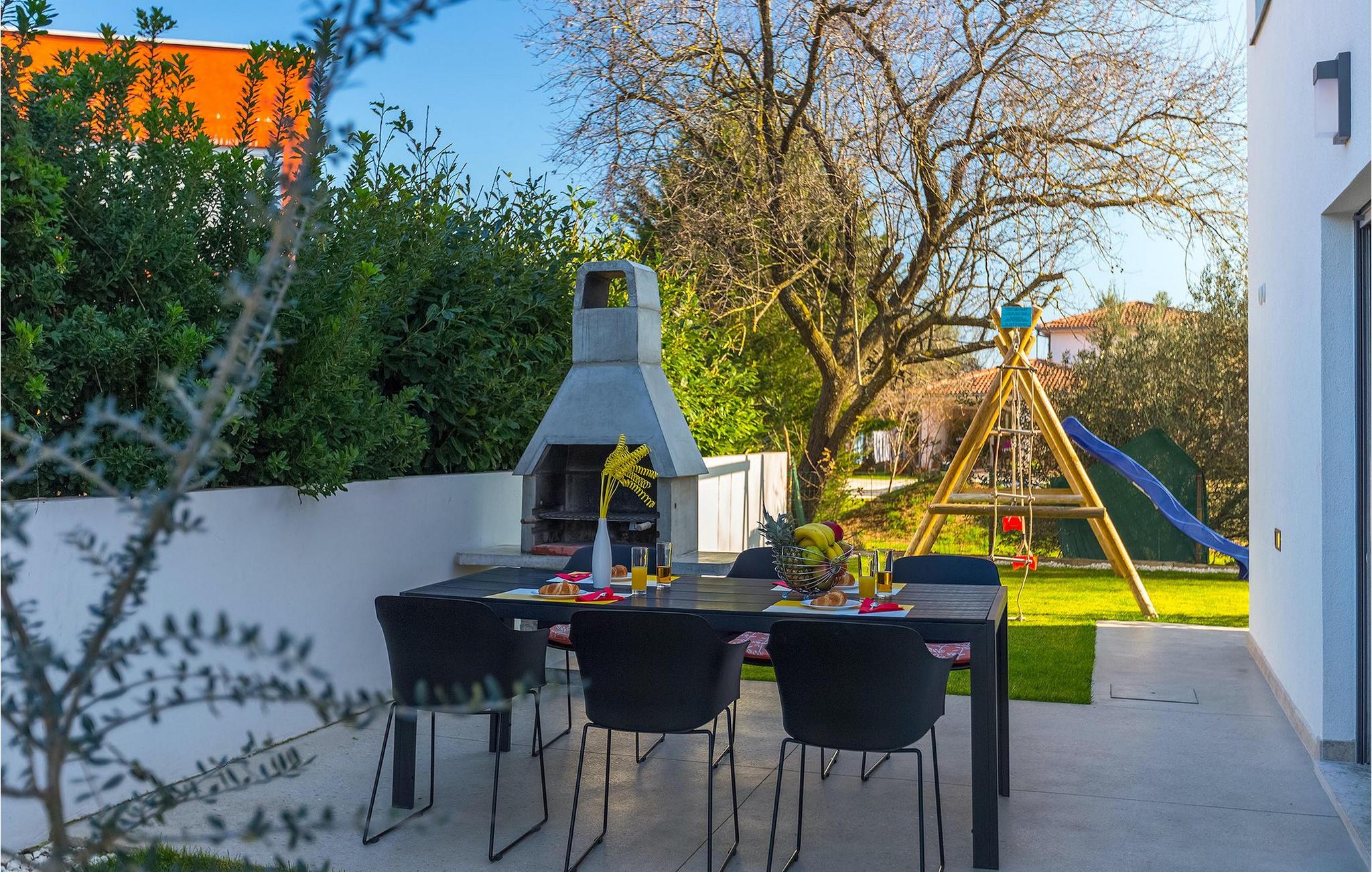Villa Emica er en moderne og smagfuldt indrettet villa og tilbyder dig og din familie alt, hvad du har brug for. Villa Emica kan rumme op til 8 gæster. I stueetagen finder du en smuk lys og moderne stue, køkken og spiseplads, et fuldt udstyret soveværelse med eget badeværelse. Værelset har direkte adgang til poolen, så du kan hoppe i poolen, når du vil friske op. Første sal har to soveværelser med dobbeltsenge og ensuite badeværelser og en balkon, hvor du kan drikke kaffe og nyde den smukke udsigt over poolen og naturen. Udendørs af villaen er bare smuk. En smuk spise- og grillplads er omgivet af oliventræer. Vi har ikke glemt dine yngste, der kan lege skødesløst på en lille, men sød legeplads, der har to gynger, en rutsjebane og en trampolin, mens du drikker kaffe eller tilbereder dine måltider på grillen. Book villa Emica og nyd din sommerferie med dine kære og skab de smukkeste sommerminder.