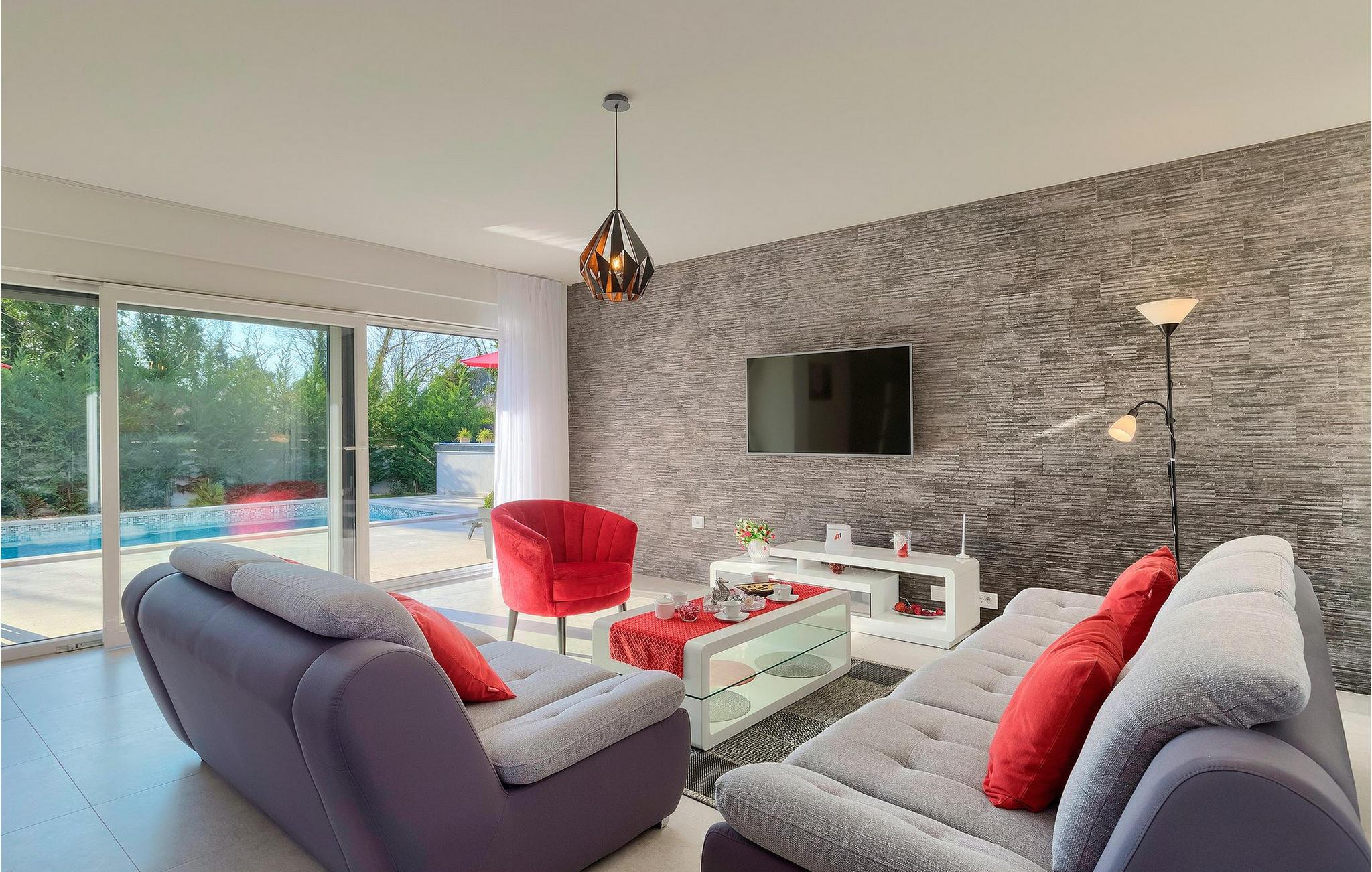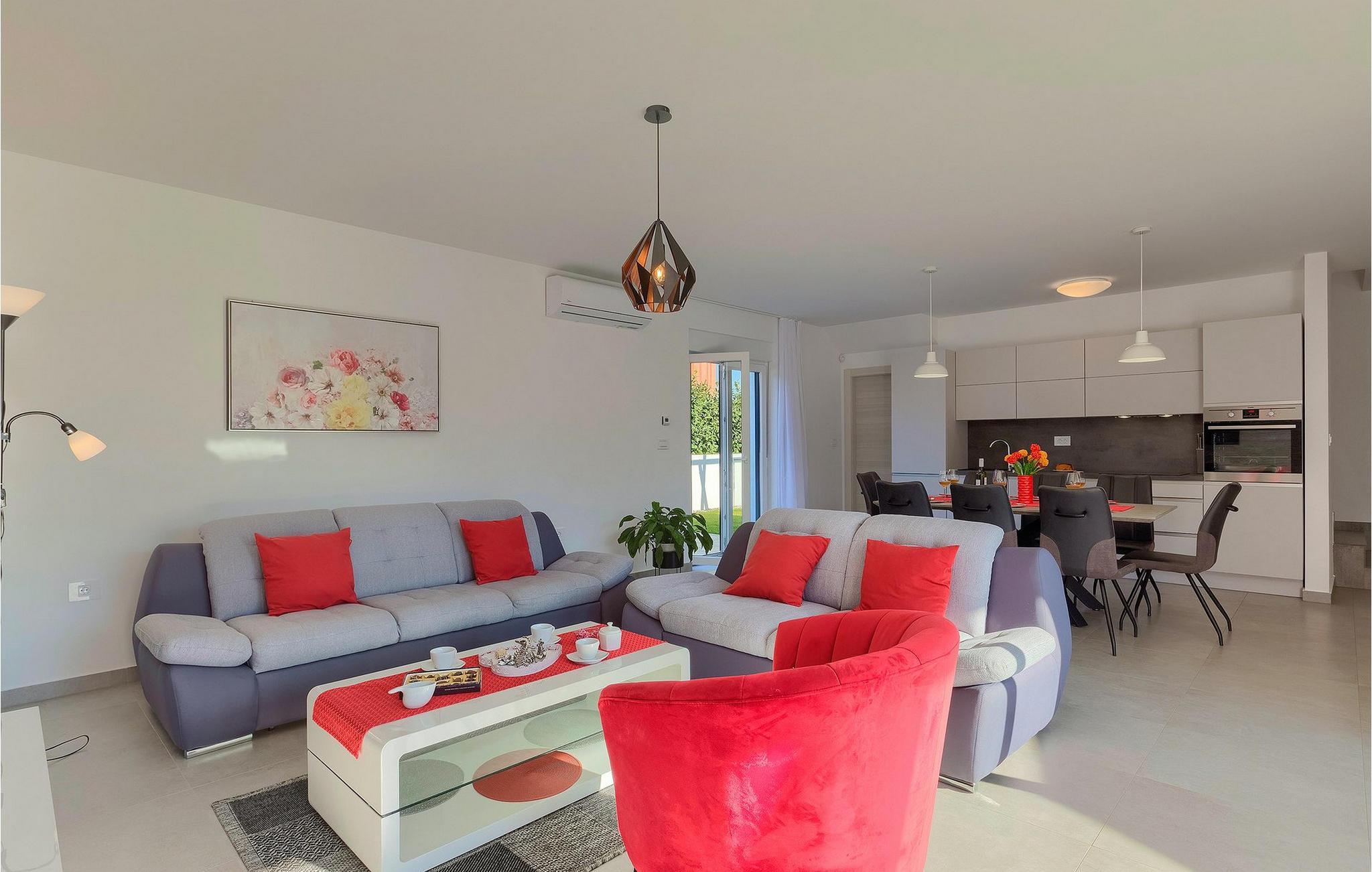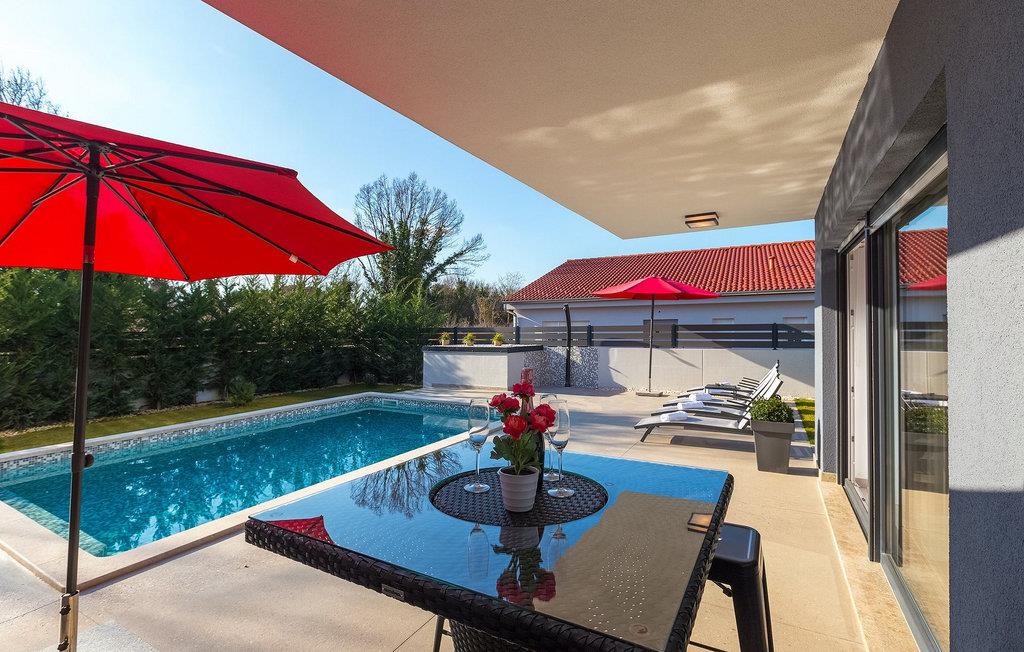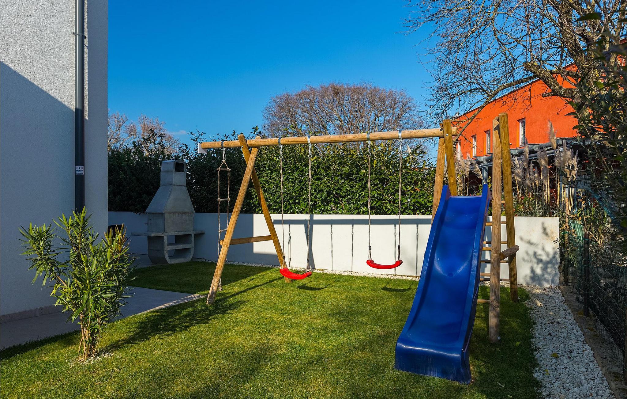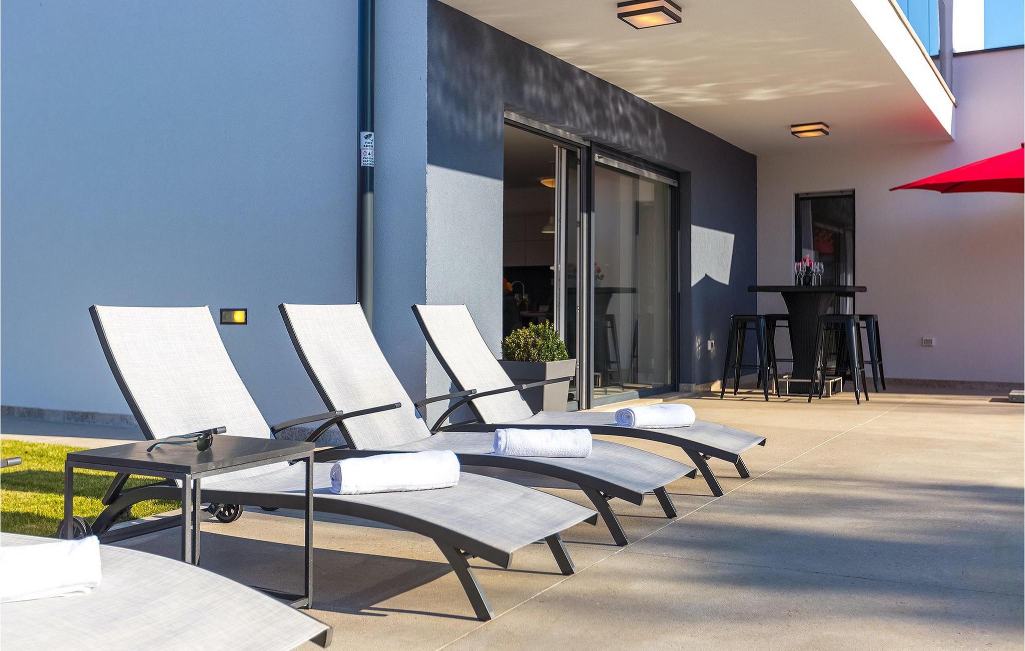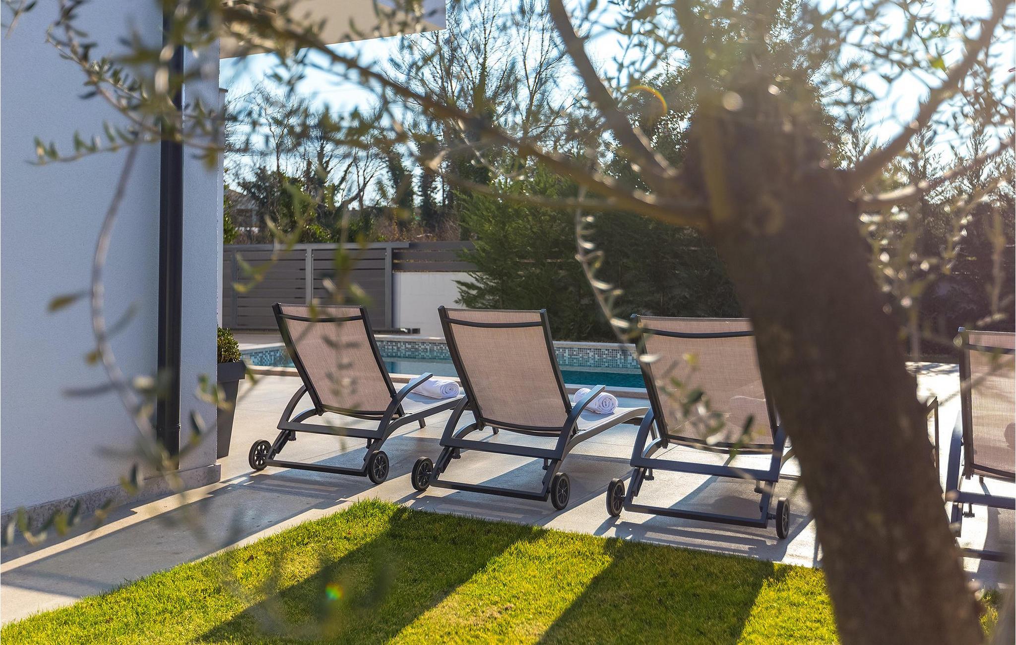 Villa Emica er en moderne og smagfuldt indrettet villa og tilbyder dig og din familie alt, hvad du har brug for. Villa Emica kan rumme op til 8 gæster. I stueetagen finder du en smuk lys og moderne stue, køkken og spiseplads, et fuldt udstyret soveværelse med eget badeværelse. Værelset har direkte adgang til poolen, så du kan hoppe i poolen, når du vil friske op. Første sal har to soveværelser med dobbeltsenge og ensuite badeværelser og en balkon, hvor du kan drikke kaffe og nyde den smukke udsigt over poolen og naturen. Udendørs af villaen er bare smuk. En smuk spise- og grillplads er omgivet af oliventræer. Vi har ikke glemt dine yngste, der kan lege skødesløst på en lille, men sød legeplads, der har to gynger, en rutsjebane og en trampolin, mens du drikker kaffe eller tilbereder dine måltider på grillen. Book villa Emica og nyd din sommerferie med dine kære og skab de smukkeste sommerminder.