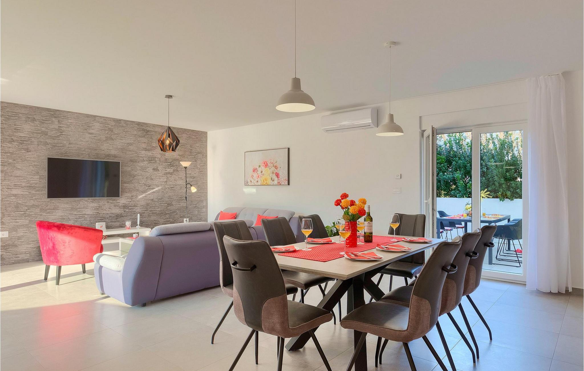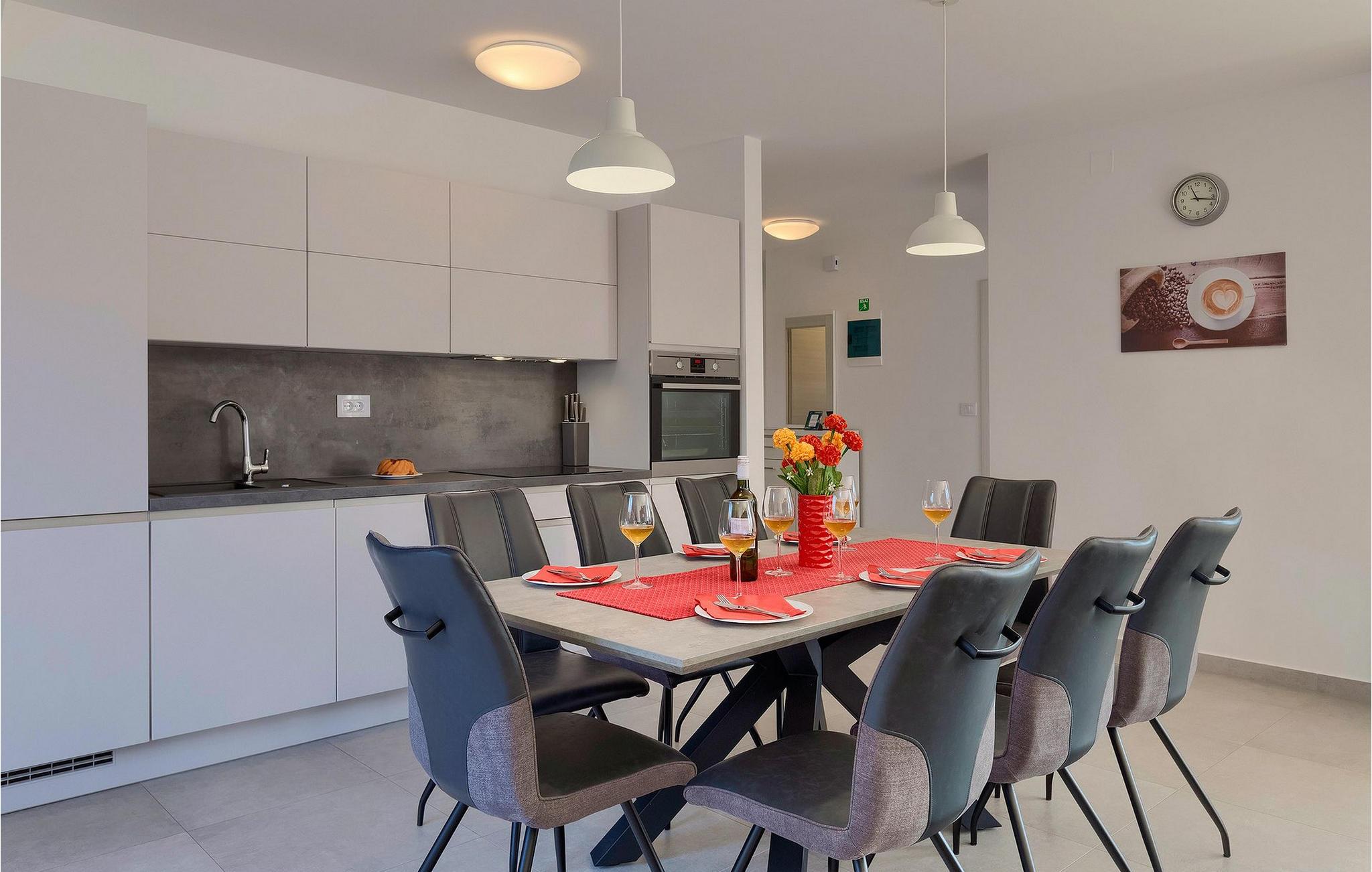 Villa Emica er ikke et festhus og ungdomsgrupper er ikke tilladt Villaen Emica ligger i Sisan - en landsby 7 km øst for Pula, i Ližnjan kommune og også i nærheden af Medulin. Havet er kun 4 km væk fra villaen. Vi anbefaler, at du besøger Pula, hvis du vil holde en mere aktiv ferie, og du er på udkig efter eventyr, fordi du har forskellige faciliteter såsom sejlads, ridning, adrenalinpark, golf, cykling osv. En uundværlig del af Pula er den mest berømte amfiteater fra det første århundrede, det sjettestørste i verden kaldet "Arena", som stadig bruges i dag under forskellige kulturelle begivenheder og film- og sommerfestivaler. Sørg for at besøge den mest berømte istriske turistdestination rig på fisketraditioner - Medulin. Sørg for at prøve krabbesalaten, sort risotto eller brodetto. Du kan også smage god istrisk prosciutto, forskellige specialiteter med trøfler. Det ejendommelige og anerkendelse af byen Medulin er en kirke med to tårne placeret i centrum af byen, hæver sig over byen. Hvis du leder efter et sted for sjov, så er adrenalinparken i Medulin det rigtige sted for dig, og vi anbefaler dig at besøge den. Tag dig tid og besøg disse vidunderlige steder og nyd din familieferie.