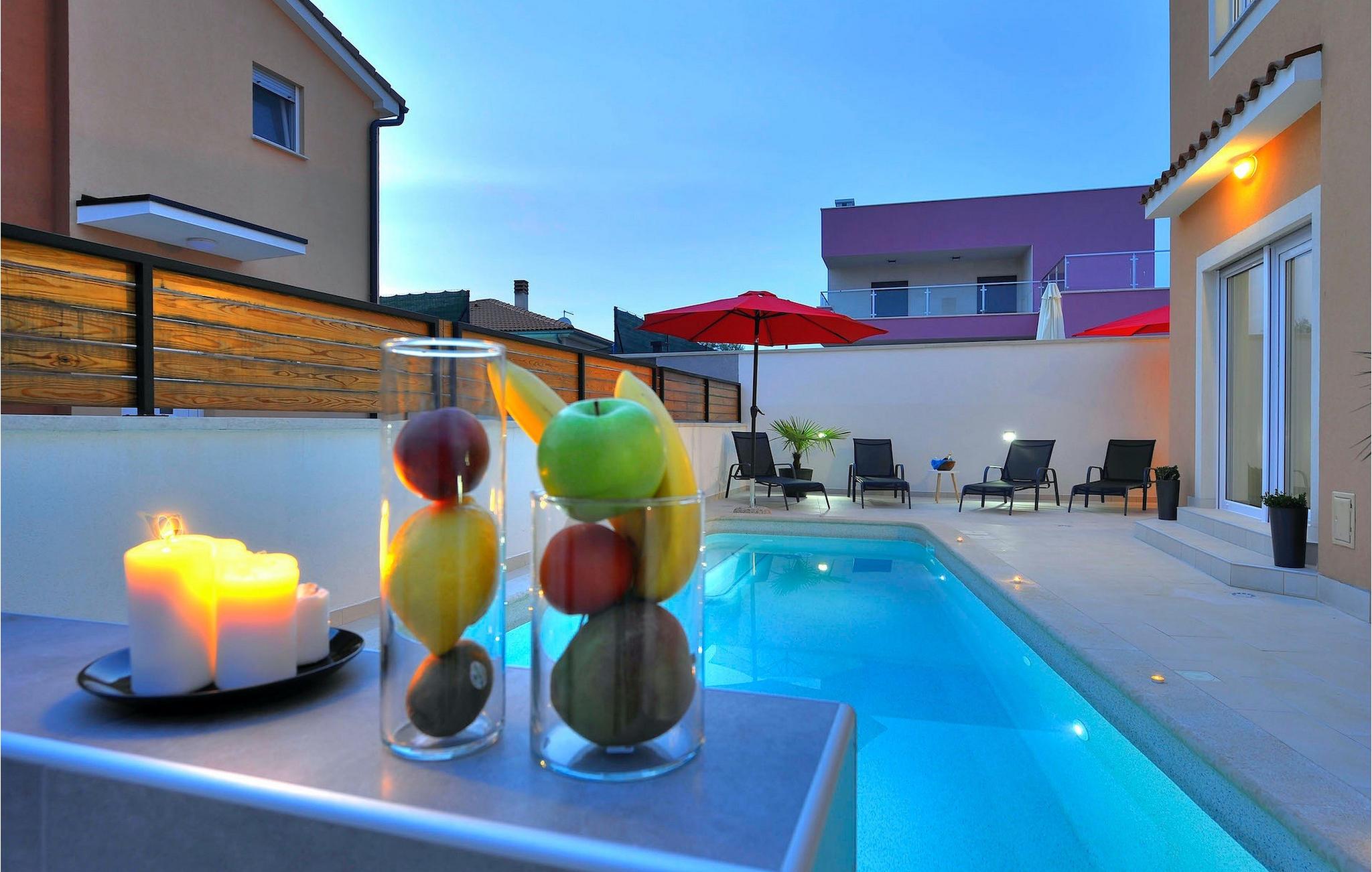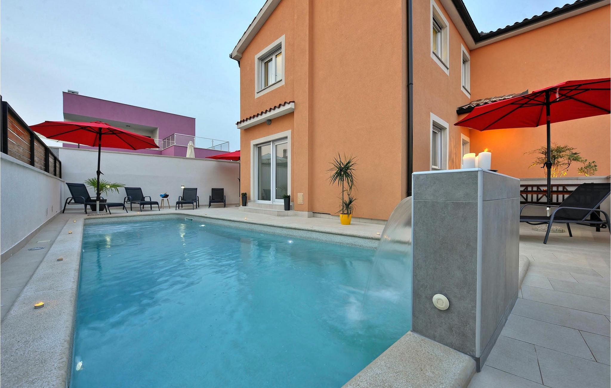 Den charmerende Villa Amosa ligger i Pula, en velkendt kystby. Det giver alt hvad du behøver til en dejlig ferie med familie eller venner og har kapacitet til op til otte gæster fordelt på fire soveværelser. På varme sommerdage kan du nyde vidunderlige og uforglemmelige øjeblikke i denne storslåede villa ved at køle ned i den private pool udendørs og finde en forfriskning. Omkring poolen er der desuden liggestole og udendørsmøbler, som er perfekte til at nippe til morgenkaffen. På kulgrillen er du velkommen til at lave lækre retter og tilbringe aftenen med dine kære. Villaens interiør vil heller ikke svigte dig. En rummelig stue, et køkken med spiseplads, et soveværelse i dobbelt størrelse og et badeværelse med bruser er alle placeret i stueplan. På første sal er der yderligere tre dejlige soveværelser med aircondition, hvoraf to har enkeltsenge og det ene har dobbeltseng. Derudover er der to badeværelser på denne etage. Der er også privat parkering og internetforbindelse. Få en behagelig ferie i Istrien, mens du slapper af i Vila Amosas rolige omgivelser! PS Villa Amosa tager imod kæledyr, så glem ikke at pakke dem med, når du tager på ferie!Villa Amosa ligger i kystbyen Pula, på spidsen af den kroatiske halvø Istrien. Blandt det brede udvalg af butikker, caféer, barer og restauranter i den gamle bydel i Pula finder du det historiske amfiteater, som er et af de største i verden. En række koncerter, begivenheder og festivaler arrangeres her. Fantastiske strande med krystalklart vand kan findes omkring Pula. Vi anbefaler en dagstur til Brijuni National Park. Brijuni er en lille øgruppe med 14 individuelle øer, der er under naturbeskyttelse. Turistbyer som Rovinj og Porec er nemme at nå og kan varmt anbefales. Middelalderbyerne Motovun og Groznjan på en bakketop er inden for rækkevidde og et besøg værd. Med hensyn til sin centrale beliggenhed er Pula et glimrende udgangspunkt for at udforske al den naturlige skønhed og seværdigheder i Istrien.
