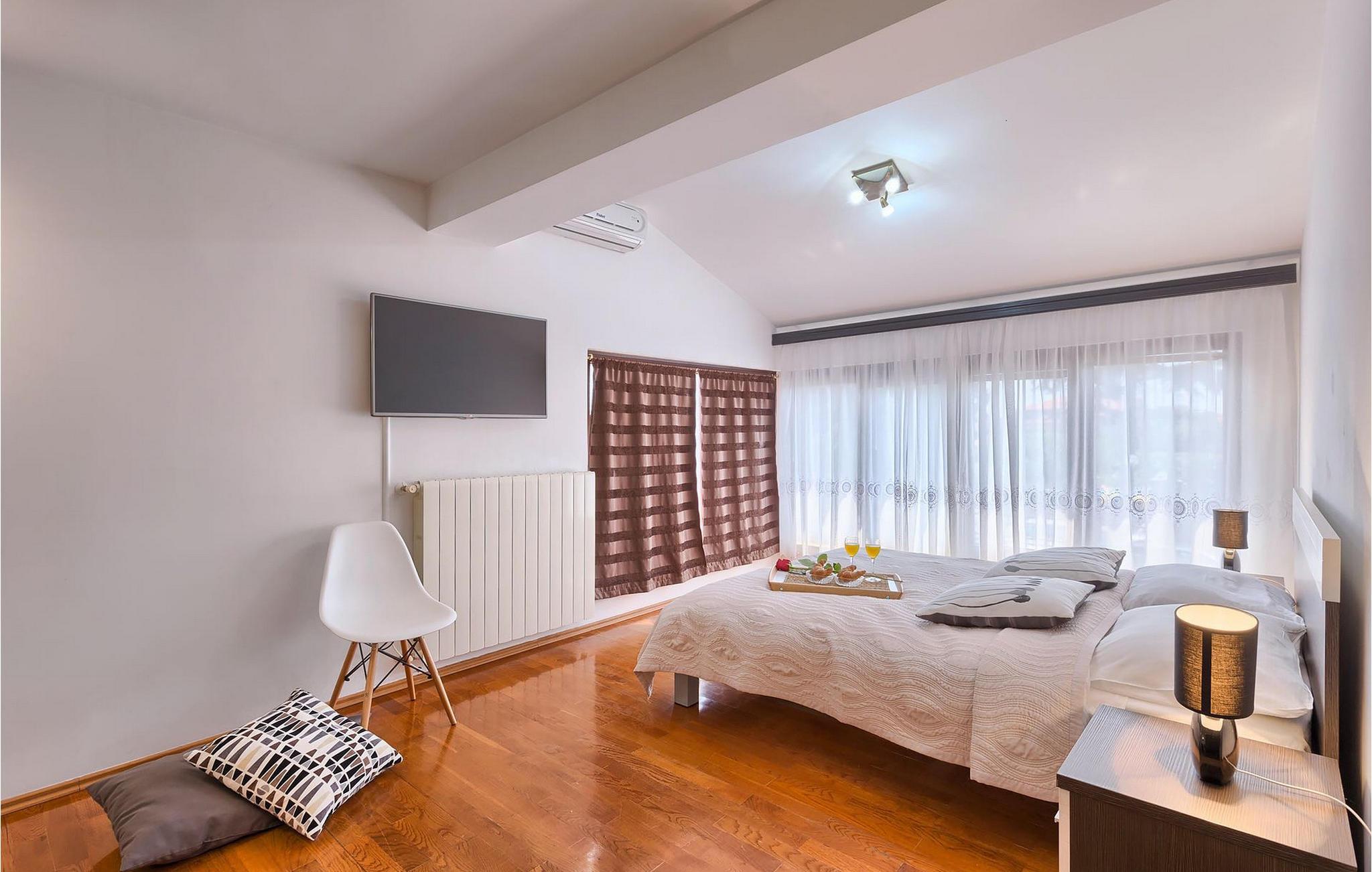 På øverste etage er der 2 soveværelser med dobbeltseng, et soveværelse med 2 enkeltsenge, et badeværelse og et soveværelse med eget badeværelse. Alle værelser har aircondition og satellit-tv. Efter anmodning kan ejeren organisere en daglig tur til nationalparken Brijuni Islands.