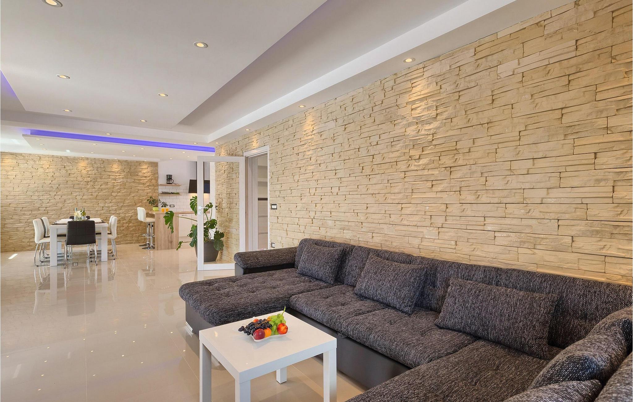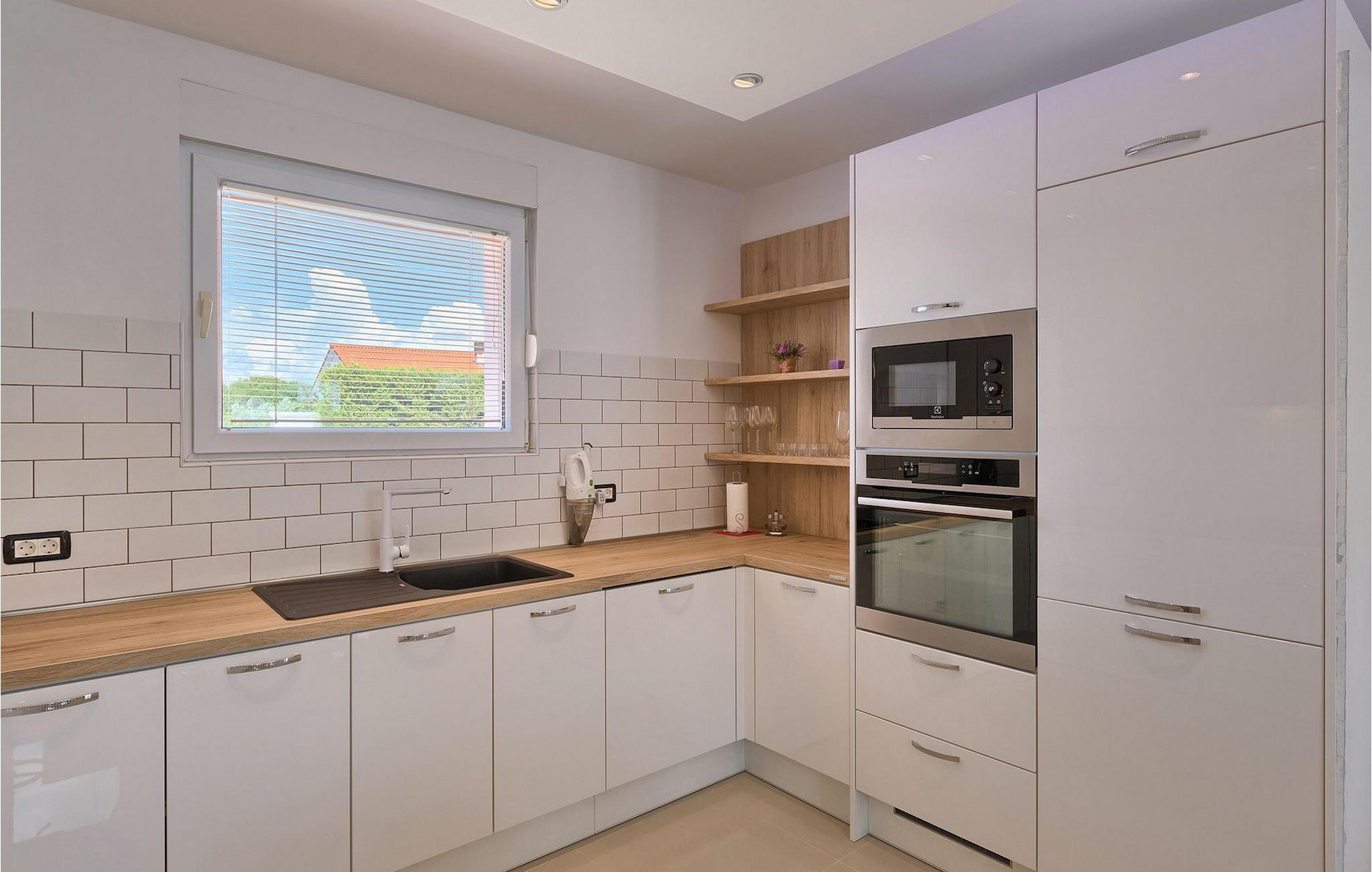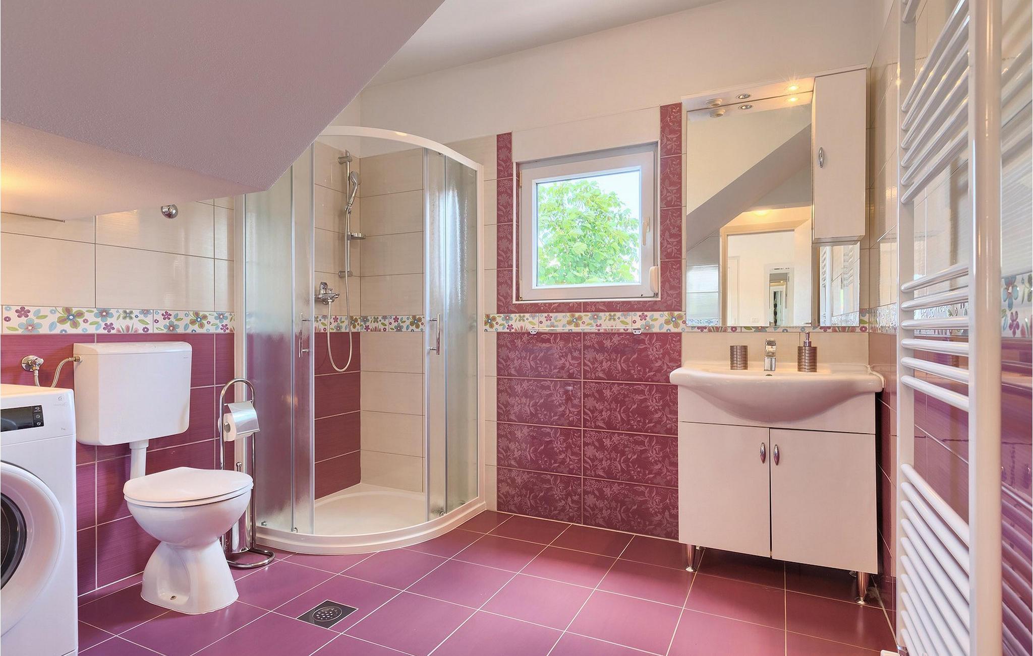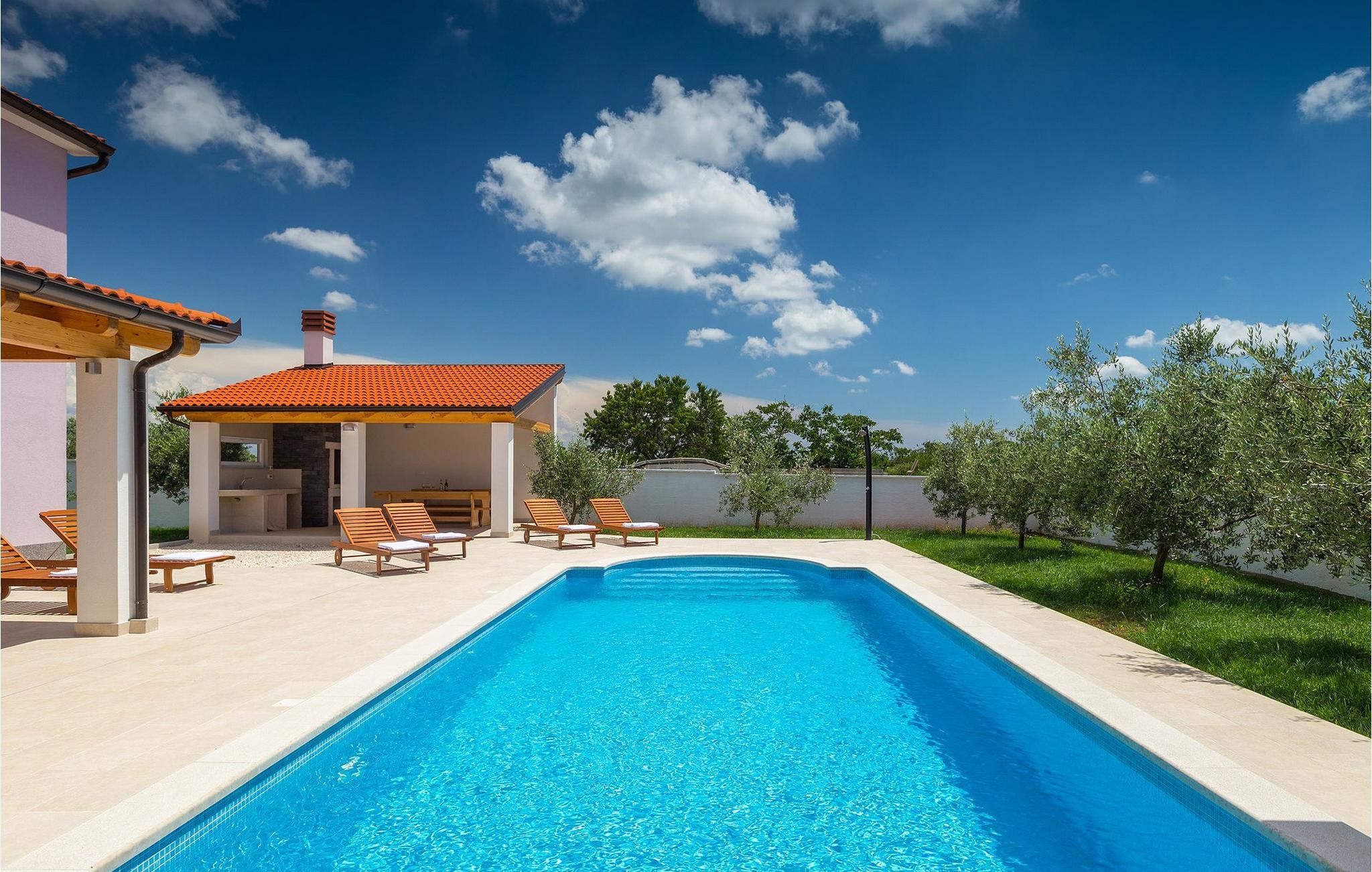 Smuk villa Zeus repræsenterer den perfekte familiebolig i Pula. Det har en dejlig have med oliventræer og er ideelt beliggende - tæt på byen og alle dens faciliteter, og tæt på havet og vidunderlige strande. Villaen består af 4 soveværelser. I stueetagen finder du stue og spisestue, et fuldt udstyret køkken, et soveværelse og et badeværelse. Den øverste etage er opdelt i tre soveværelser, hver med eget badeværelse. Tre soveværelser har en dobbeltseng, mens det ene består af en enkeltseng og en sovesofa til en person. Yderligere sovemuligheder for yderligere to gæster er på den store sovesofa i stuen og på den udtrækbare sofastol i et af værelserne. Villaen har en smuk oplyst privat pool, en overdækket terrasse med spiseplads og et udekøkken. Villaen har aircondition, har Wi-Fi, 5 private parkeringspladser og har en rigtig fordelagtig beliggenhed.