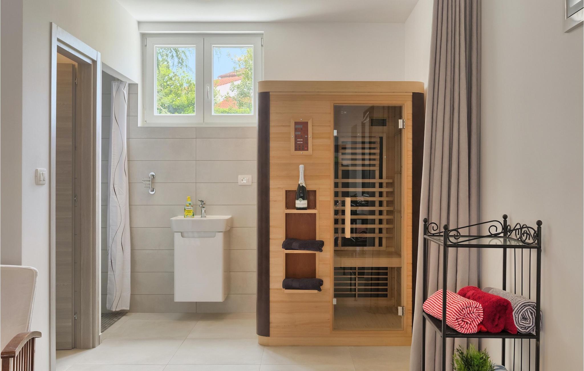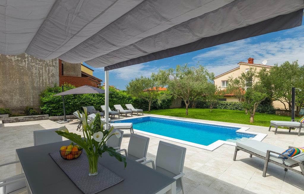 Suchen Sie nach einem Ort, an dem Sie sich am Pool entspannen oder die schöne Aussicht von Ihrem Balkon aus genießen können? Dann sind Sie bei Villa Kozada am richtigen Ort. Hier beginnt Ihr entspannter Urlaub in Pula. Diese Villa bietet Unterkunft für 8 Personen in 4 geräumigen, gemütlichen Schlafzimmer mit vielen natürlichen Materialien, die für ein besonderes Gefühl von Wärme sorgen. Falls Sie gerne für Freunde und Familie kochen, bietet die Villa eine komplett ausgestattete Küche mit einer zusätzlichen kleineren Küche nach außen in der Nähe des Pools. Ein großer Grill steht auch zur Verfügung, direkt neben dem Sonnensegel damit Sie Ihre Gerichte im Freien im Schatten genießen können.