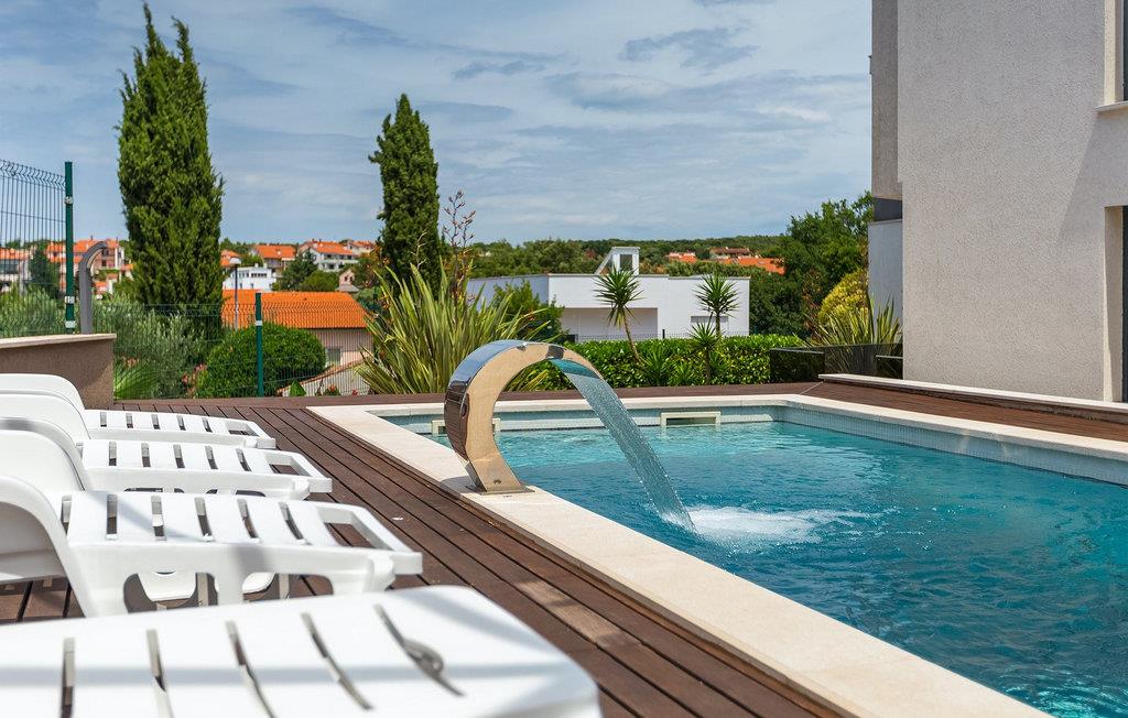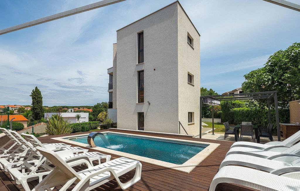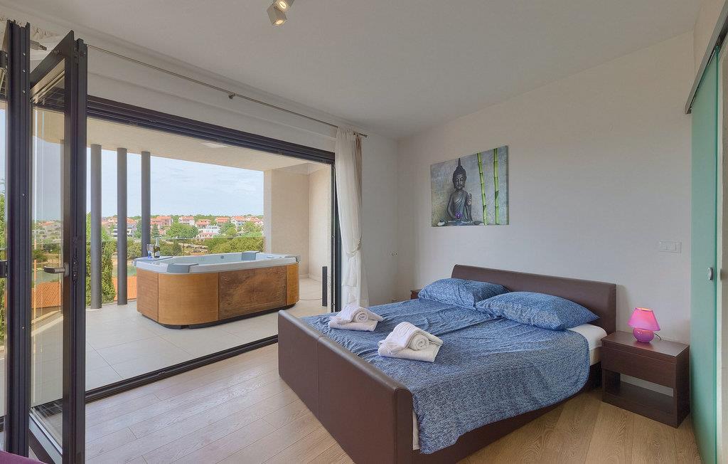 Værelserne er fordelt på 3 etager. I stueetagen finder du 2 soveværelser med hvert sit badeværelse. Et af soveværelserne har direkte adgang til poolen. På første sal, som er et stort, åbent rum, er der den hyggelige opholds- og spisestue med egen terrasse med havudsigt, samt fuldt udstyret køkken. På anden sal finder du yderligere 2 soveværelser, også med private badeværelser. Et af soveværelserne har også en terrasse med en særlig attraktion: en privat jacuzzi. Alle værelser er rummelige, lyse og oversvømmet med lys for at få gæsterne i villaen til at føle sig hjemme. Villaen har WiFi og er fuldt airconditioneret Som navnet antyder, ligger villaen i en af ??de smukkeste dele af byen Pula kaldet Valsabion. Kun en gåtur væk ligger strandene, både sandede og stenede. Strandene er omgivet af små øer, som du kan nå med svømning eller med båd. Kun 50 m fra villaen finder du restauranter, pizzeriaer, barer etc. Lystbådehavnen ligger heller ikke langt væk fra villaen. Det historiske centrum af byen ligger 2 km fra villaen. Både Pula og den charmerende by Medulin er let tilgængelige. Pula er en historisk by og et ideelt valg for dem, der nyder sightseeing. Det mest berømte romerske monument i Pula, start- og slutpunktet for hver sightseeingtur, er amfiteatret, almindeligvis kendt som Arena of Pula, hvor gladiatorkampe engang fandt sted. Det blev bygget i det 1. århundrede e.Kr. under kejser Vespasians tid, samme periode som det storslåede Colosseum i Rom. I dag er det et mødested for sommerarrangementer - filmfestival, operasæson, ridefestival, koncerter og teaterforestillinger. De underjordiske tunneler, der engang blev brugt af gladiatorer, fungerer nu som udstillingssteder.