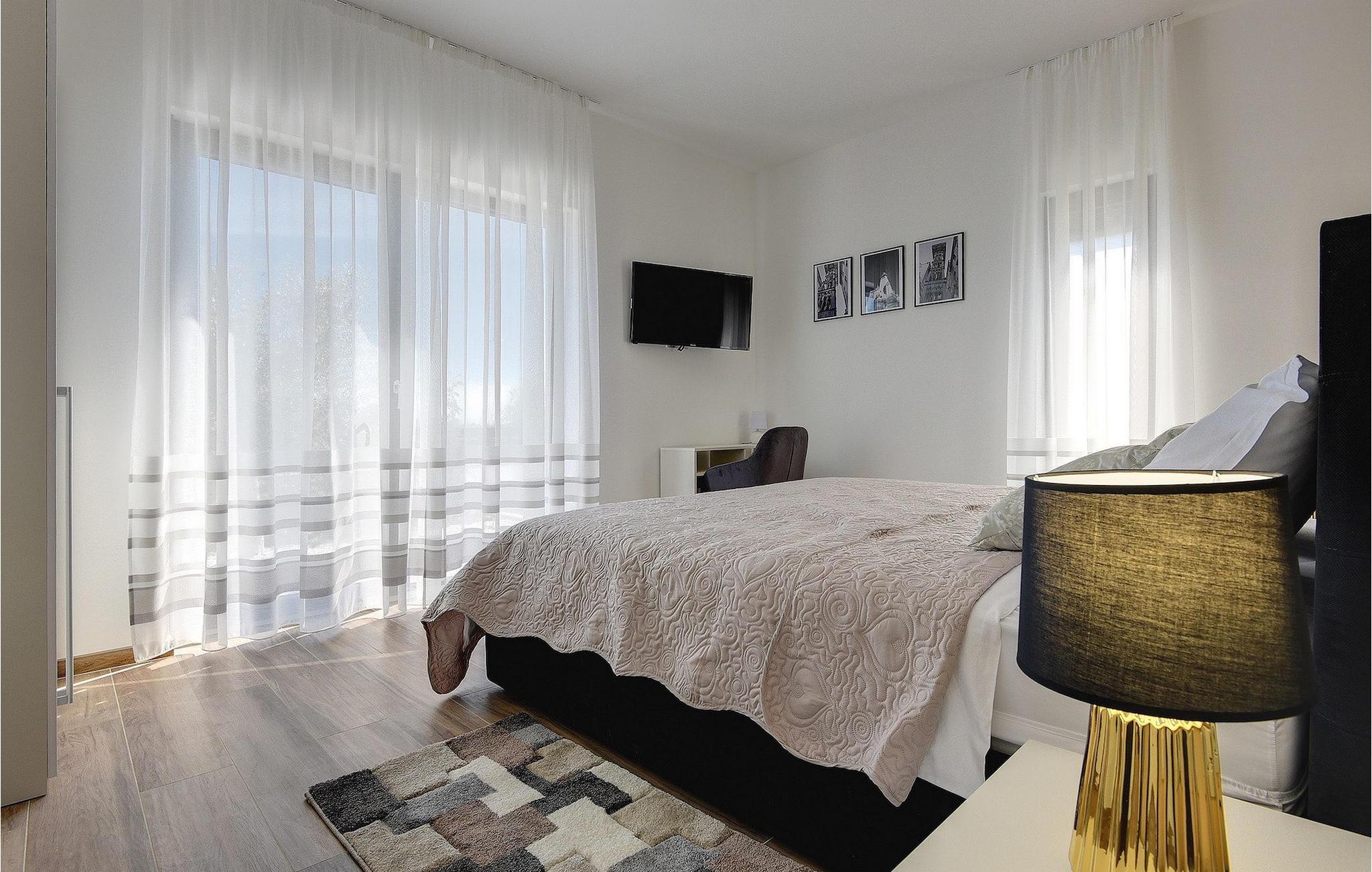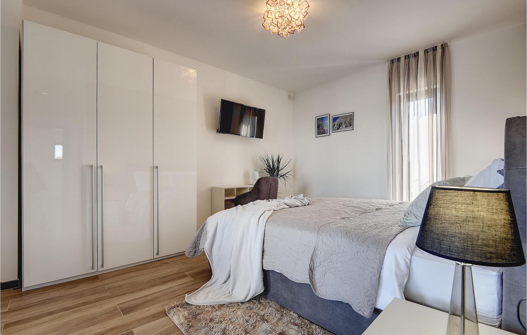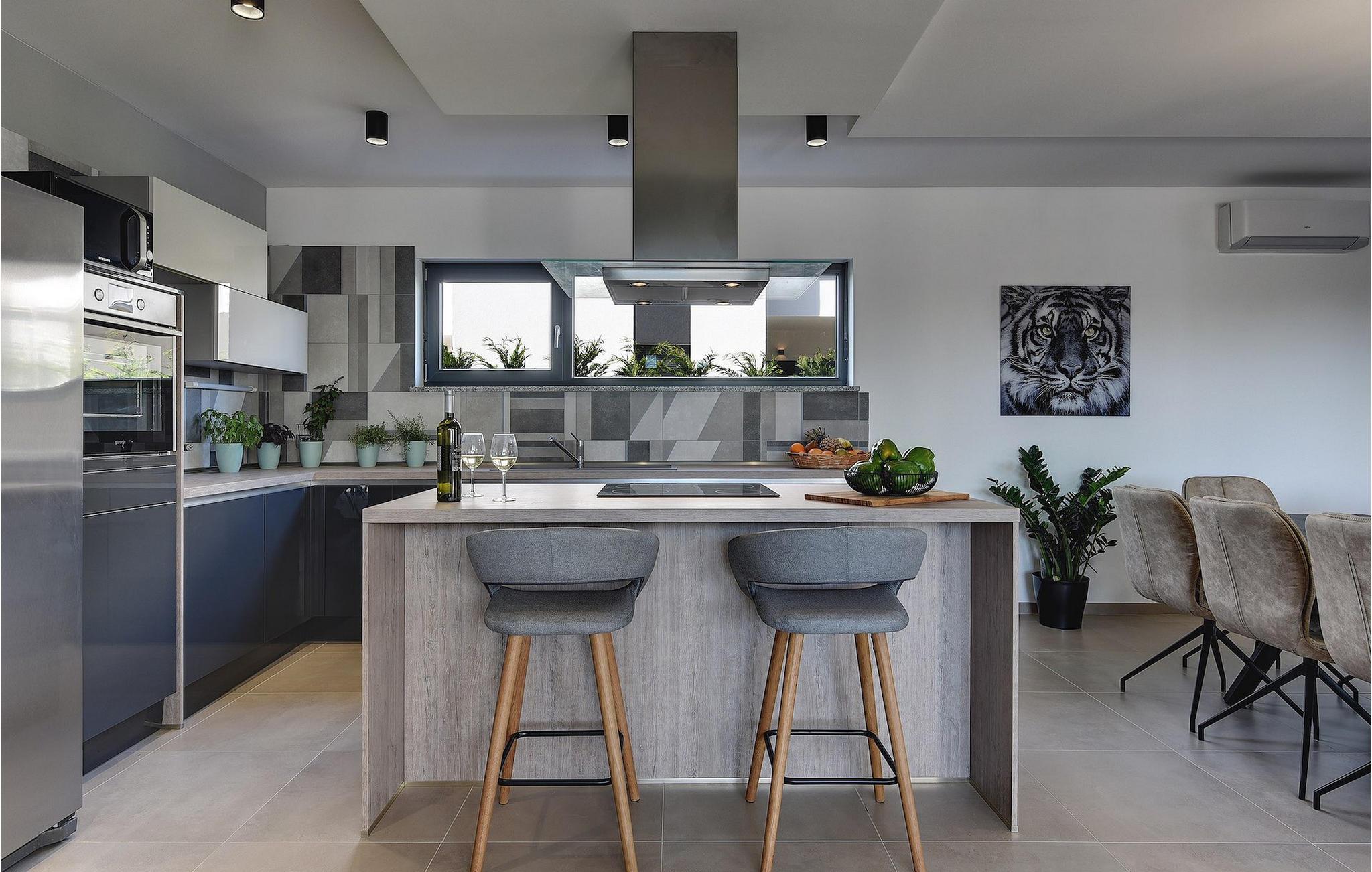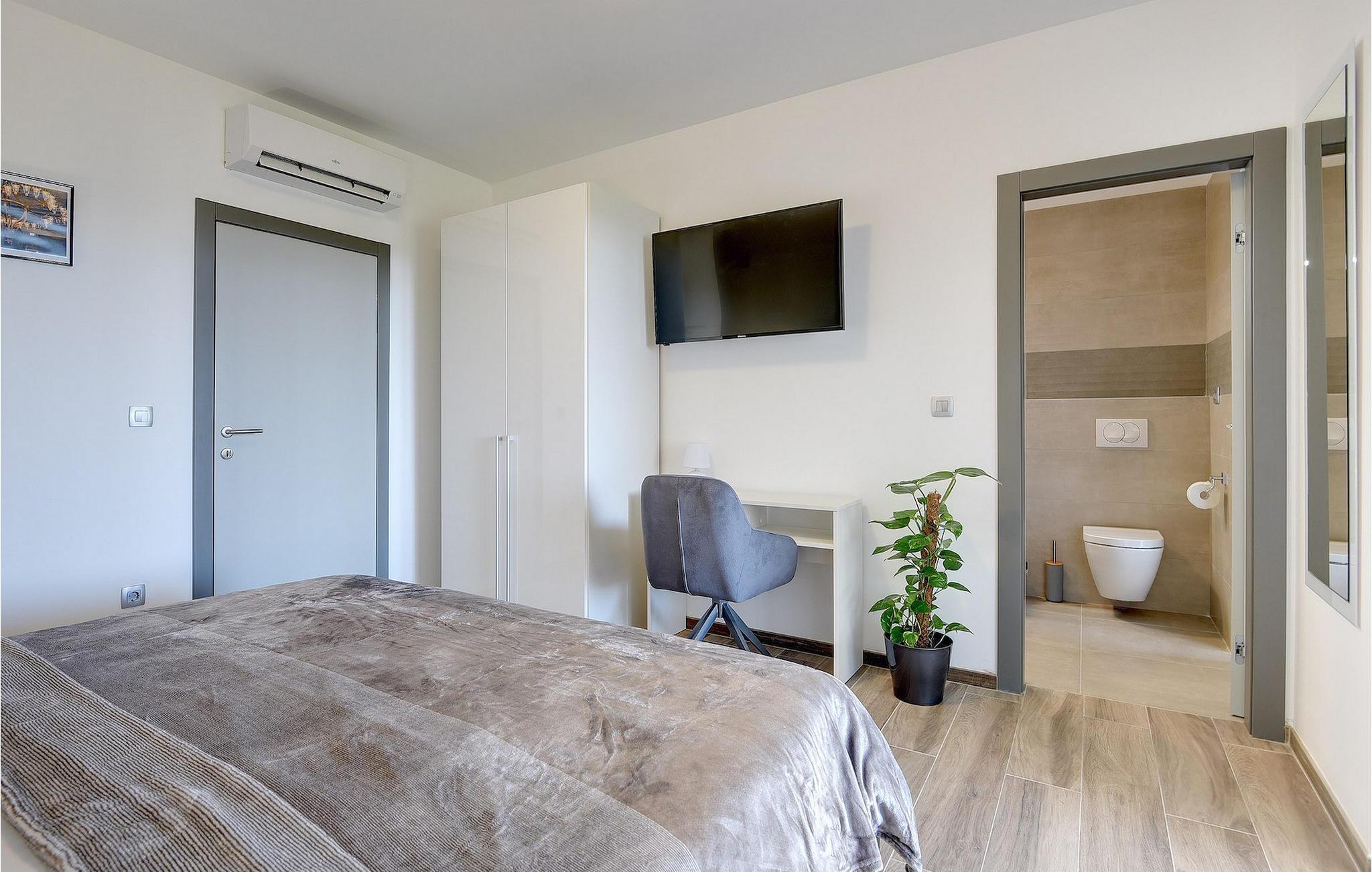 Denne luksuriøse villa vil charmere dig med sit smukke, omhyggeligt gennemtænkte design, indbydende private pool og masser af underholdningsmuligheder samt sin bekvemme beliggenhed lige uden for Pula. Denne spektakulære villa på 410 kvadratmeter giver en stilfuld og moderne ferie, der perfekt kombinerer en aktiv og afslappende ferie. Villaens smagfuldt indrettede interiør består af en elegant åben stueetage med stue/spisestue og køkken, samt et soveværelse med dobbeltseng med eget badeværelse og et gæstetoilet. Fra både opholdsstuen og soveværelset har du direkte adgang til det dejlige udendørsområde og den private pool indrammet af komfortable liggestole. Den overdækkede udendørs spiseplads giver mulighed for al fresco spisning ved siden af, hvor du finder poolbordet og bordfodbolden, komplet med et loungeområde, perfekt til at tage en pause i løbet af dagen eller aftenen.