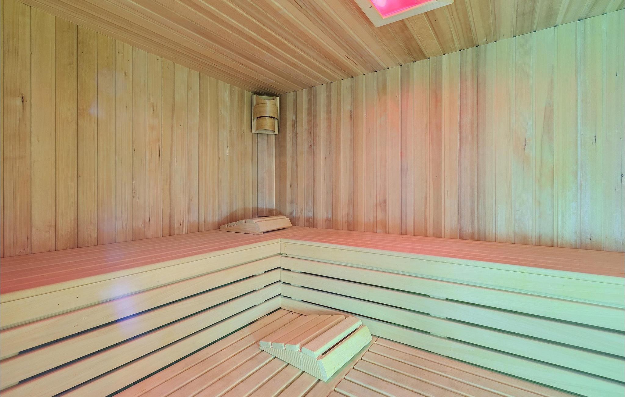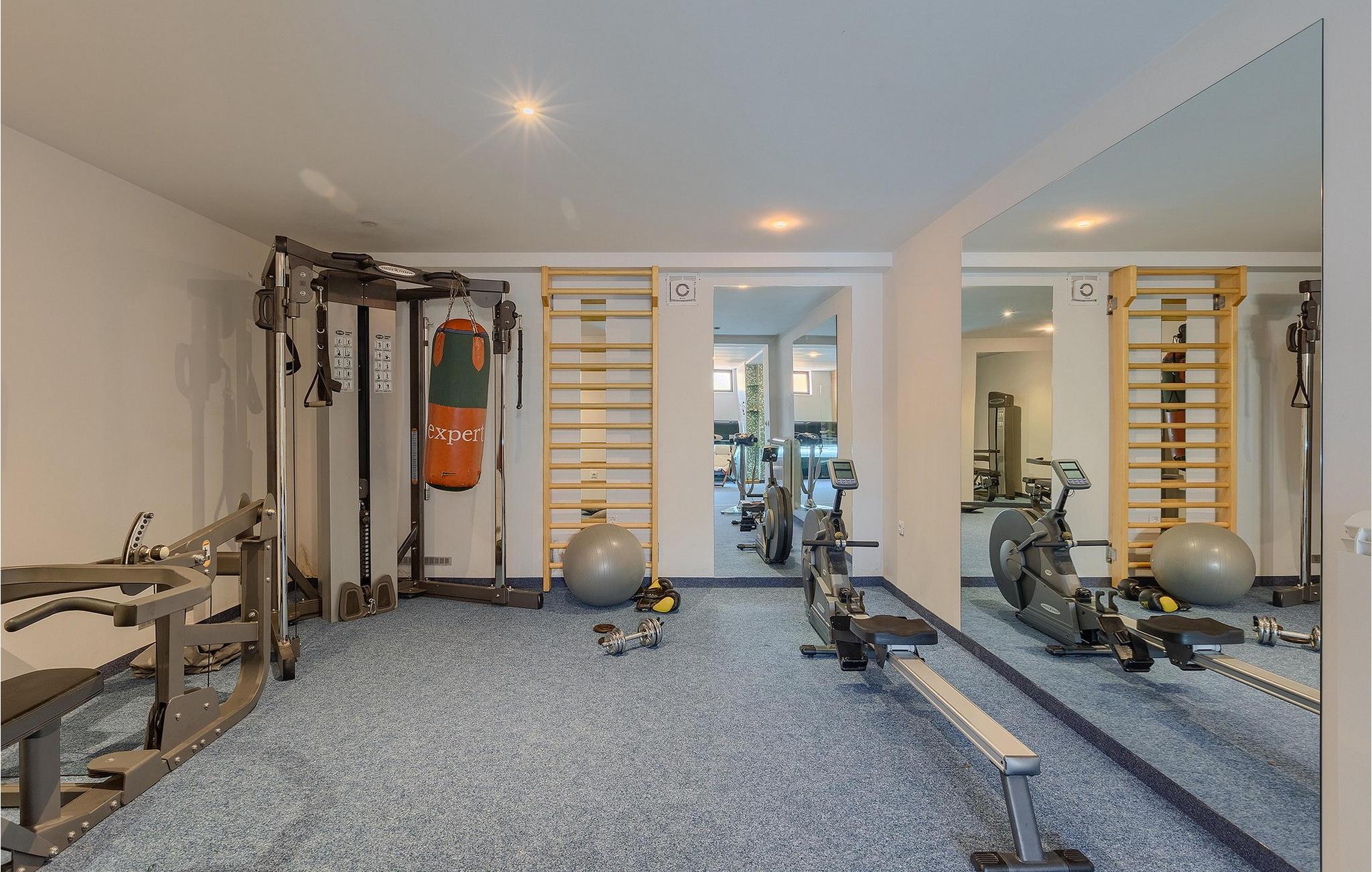 Wenn betrachtet vom Pool aus, befindet sich im Erdgeschoß auf der einen Seite ein gut ausgestatteter Fitnessbereich, damit Sie im Urlaub aktiv bleiben können, allerdings stehen Ihnen hier auch eine Sauna und ein Solarium zur Verfügung. Auf der anderen Seite des Erdgeschoßes befindet sich eine Taverne mit einer Küche, zwi großen Esstischen und einem großen Steingrill, damit Sie ein Raum haben, wo alle Mitreisende Zeit zusammen verbringen können. Es steht Ihnen auch ein Billardtisch zur Verfügung, der sowohl den kleinsten als auch den etwas älteren Gästen viel Spaß machen wird. :) Der ganze Bereich hat einen direkten Zugang zur Terrasse und zum Außenbereich.