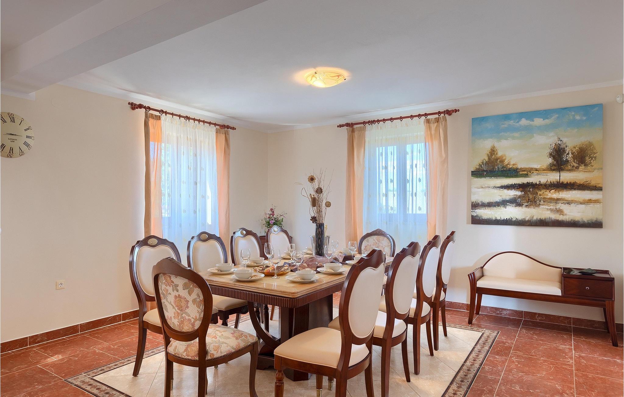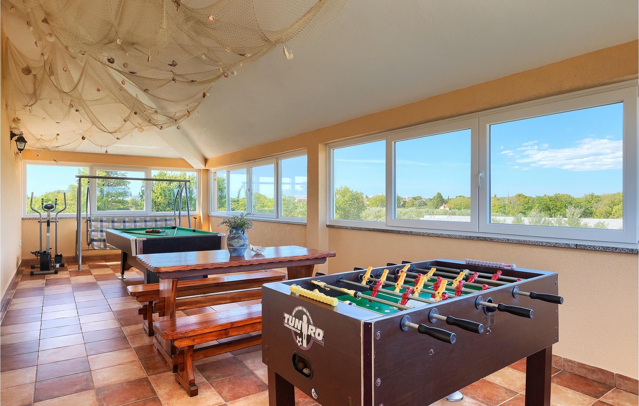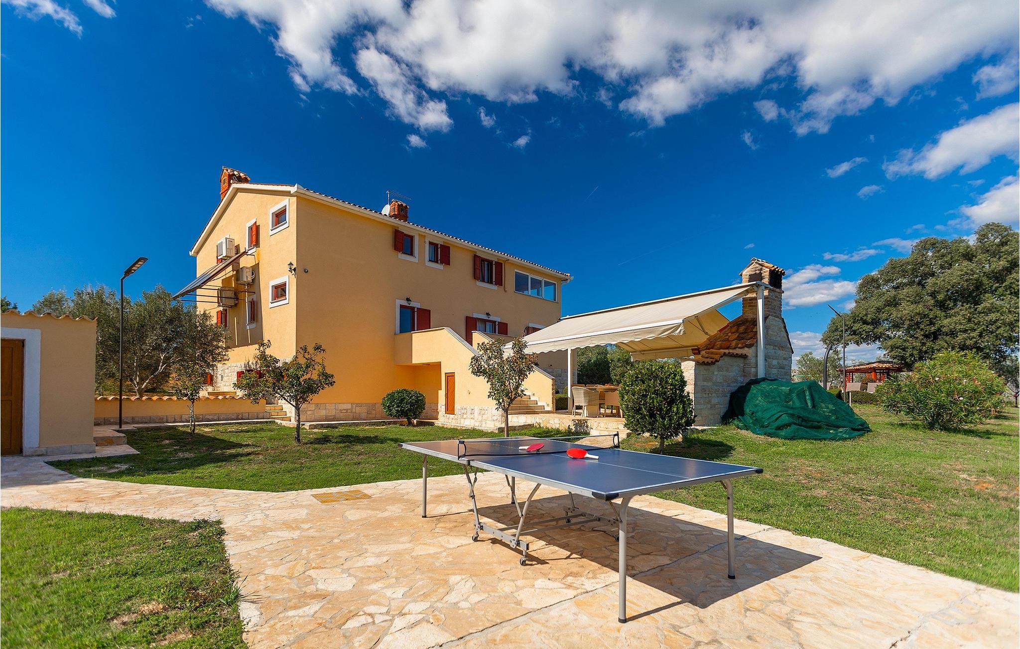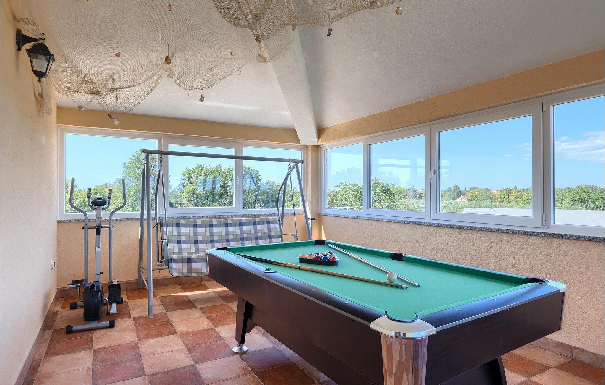 På et roligt sted nær havet ligger den smukke Villa Divina. Poetisk inspireret af udsigten over denne villa begyndte vi at beskrive denne villa beliggende i Sisan, ikke langt fra Medulin. Villaen består af 5 soveværelser, hvoraf der er et soveværelse med badeværelse i stueetagen, hvilket gør villaen velegnet til familier med små børn. I stueetagen er der også et wellness-område, et separat toilet, et køkken, en spisestue og en stue samt en udendørs terrasse. Ovenpå er der 4 soveværelser og et legerum udstyret med billard og bordfodbold for voksne og børn. Villaen er velegnet til at rumme 10 personer. Køkkenet er fuldt udstyret, og spisestuen emmer af elegance og en varm familiestemning med sine møbler, hvilket også kan siges om stuen. Soveværelserne er rummelige, og wellness-området med sauna og jacuzzi tjener til yderligere afslapning og tilføjer et strejf af luksus.