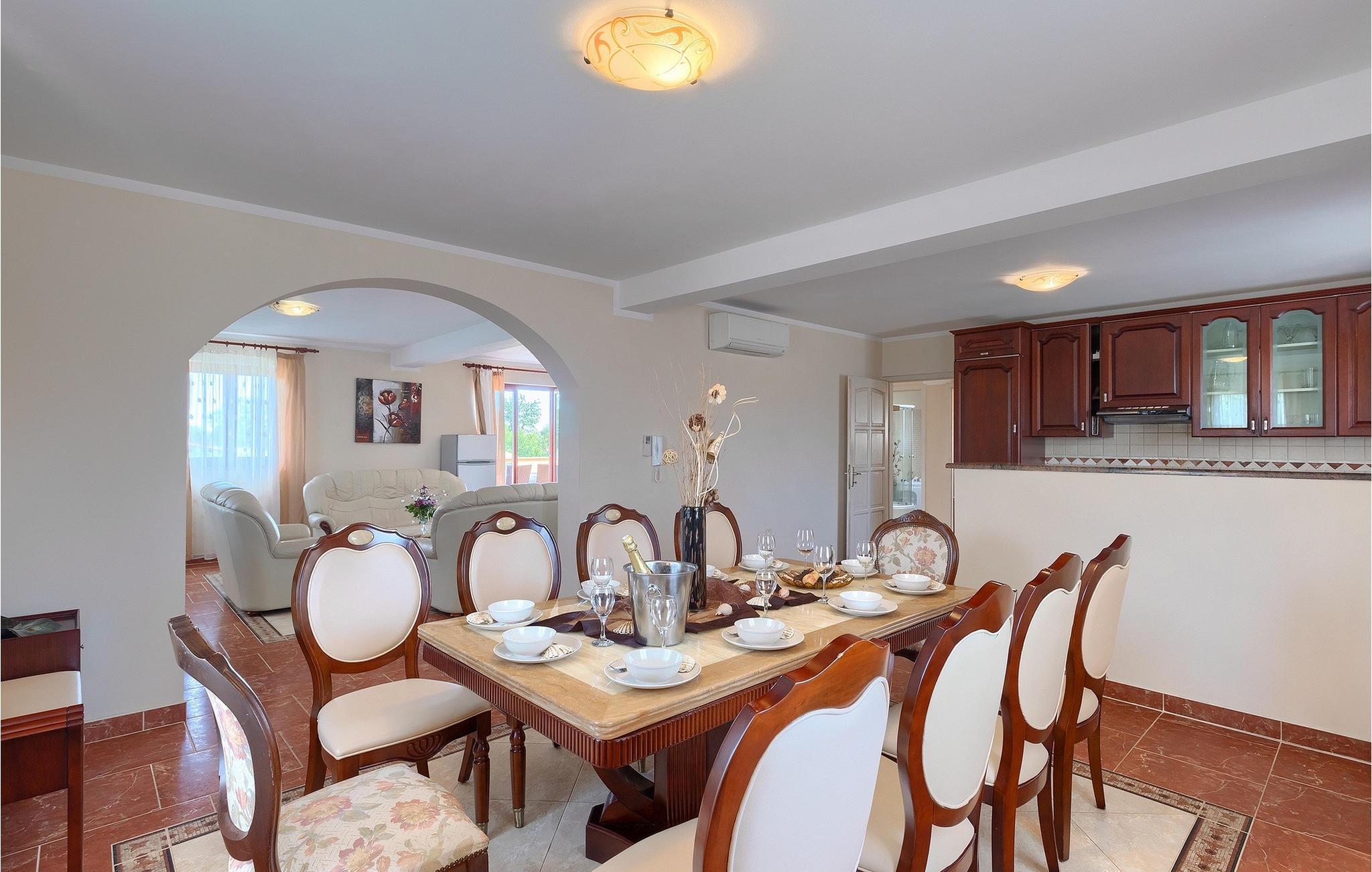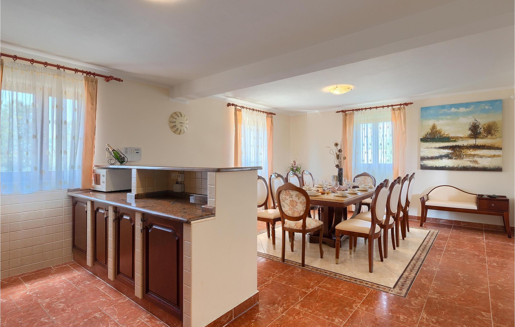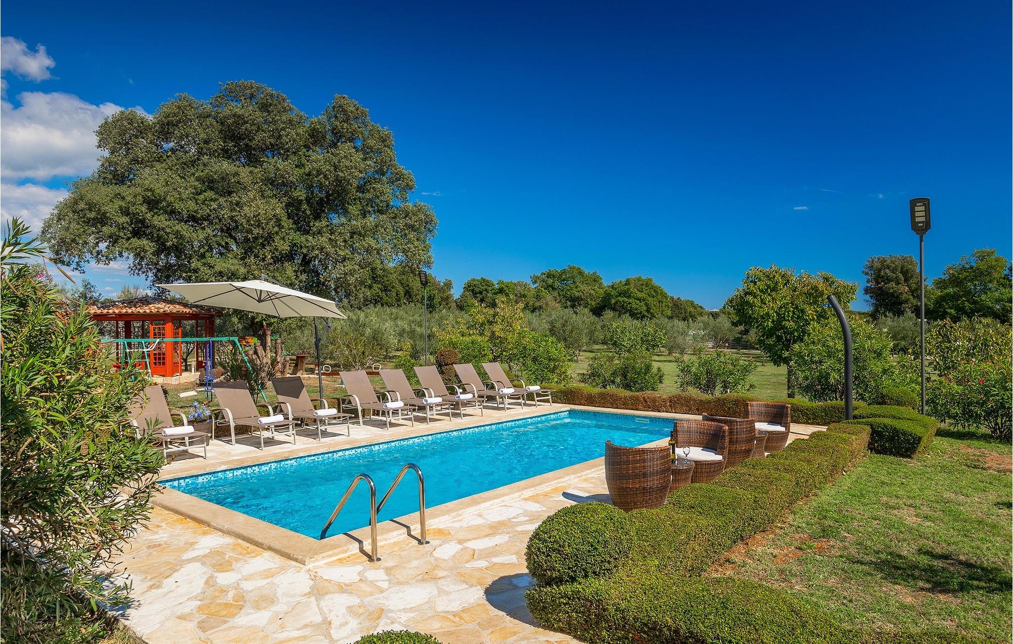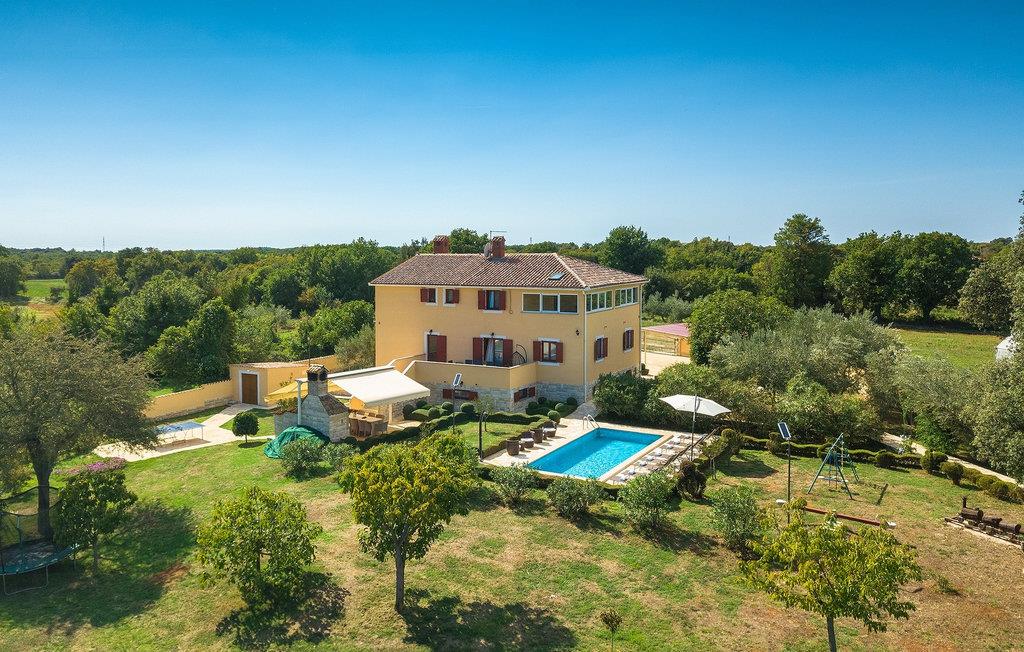 På et roligt sted nær havet ligger den smukke Villa Divina. Poetisk inspireret af udsigten over denne villa begyndte vi at beskrive denne villa beliggende i Sisan, ikke langt fra Medulin. Villaen består af 5 soveværelser, hvoraf der er et soveværelse med badeværelse i stueetagen, hvilket gør villaen velegnet til familier med små børn. I stueetagen er der også et wellness-område, et separat toilet, et køkken, en spisestue og en stue samt en udendørs terrasse. Ovenpå er der 4 soveværelser og et legerum udstyret med billard og bordfodbold for voksne og børn. Villaen er velegnet til at rumme 10 personer. Køkkenet er fuldt udstyret, og spisestuen emmer af elegance og en varm familiestemning med sine møbler, hvilket også kan siges om stuen. Soveværelserne er rummelige, og wellness-området med sauna og jacuzzi tjener til yderligere afslapning og tilføjer et strejf af luksus.