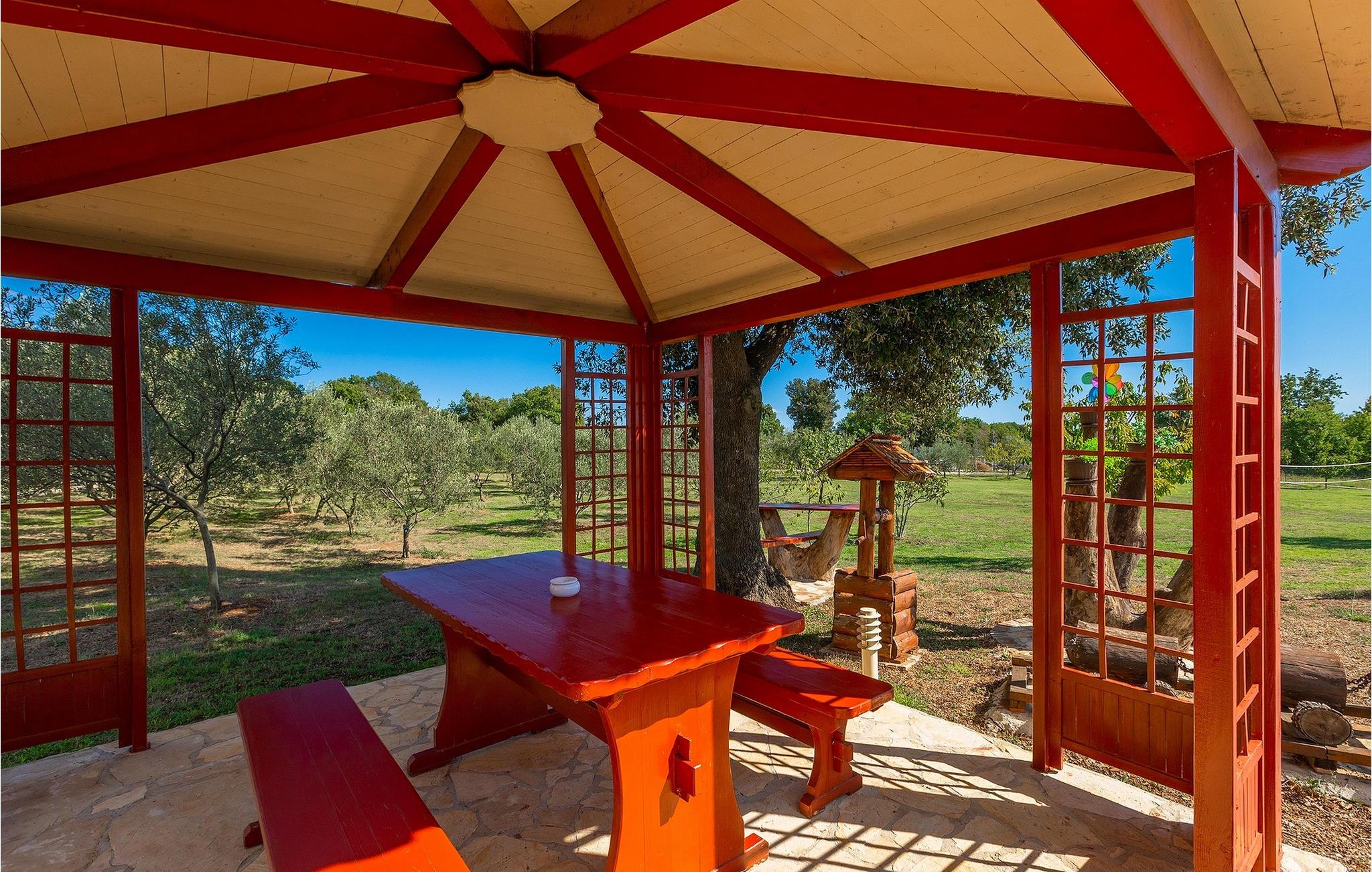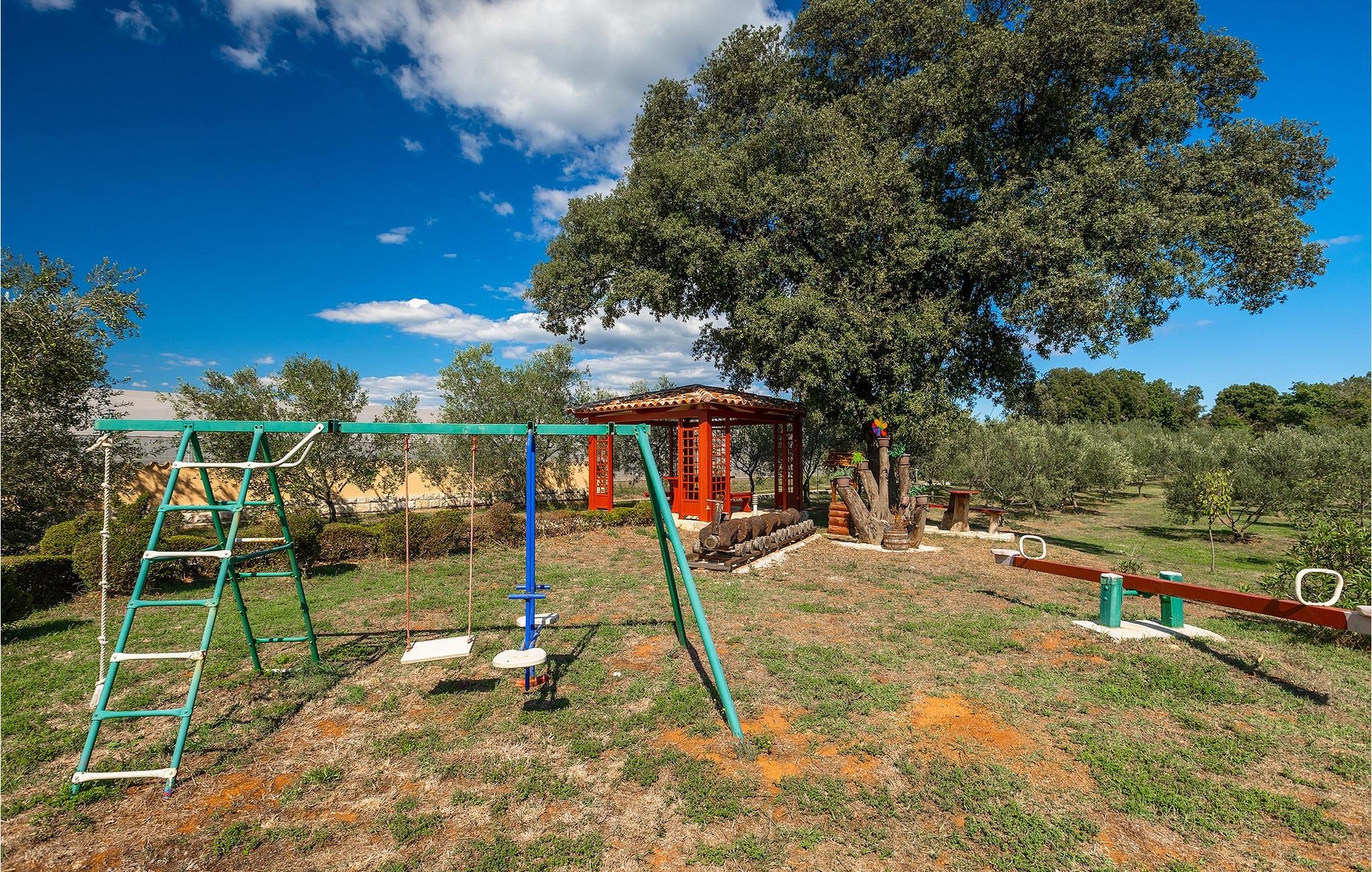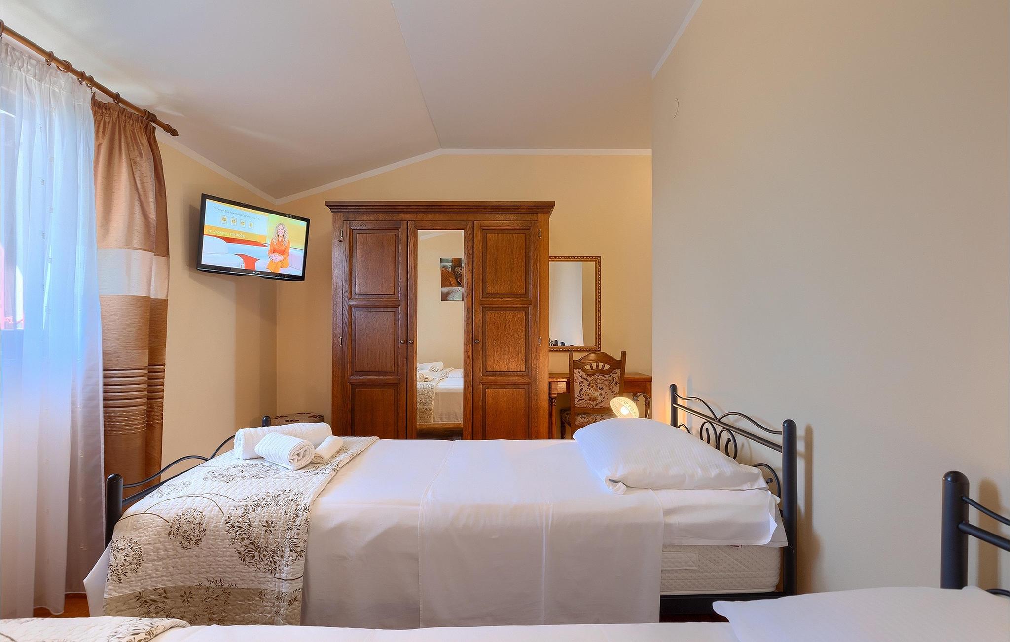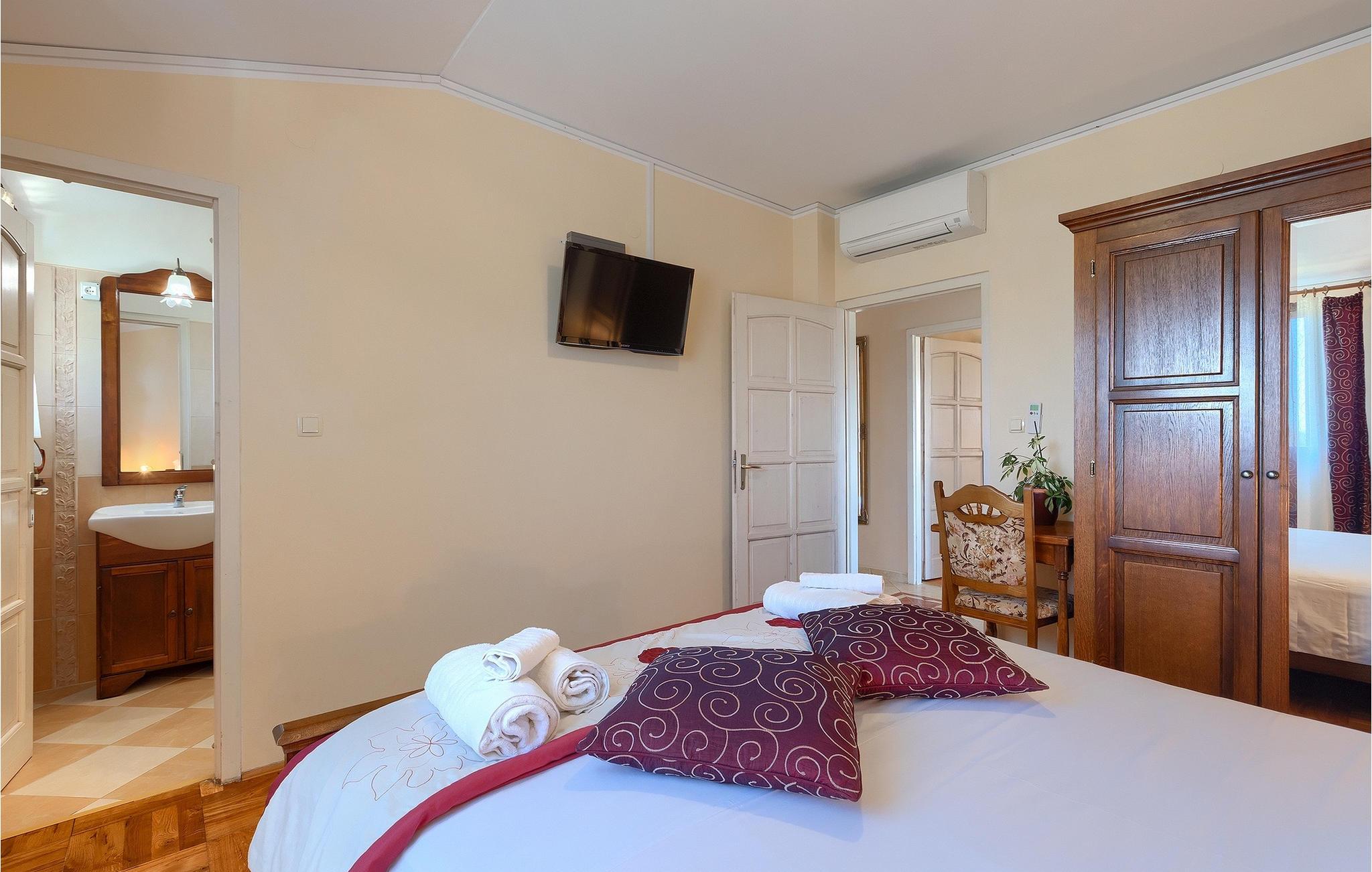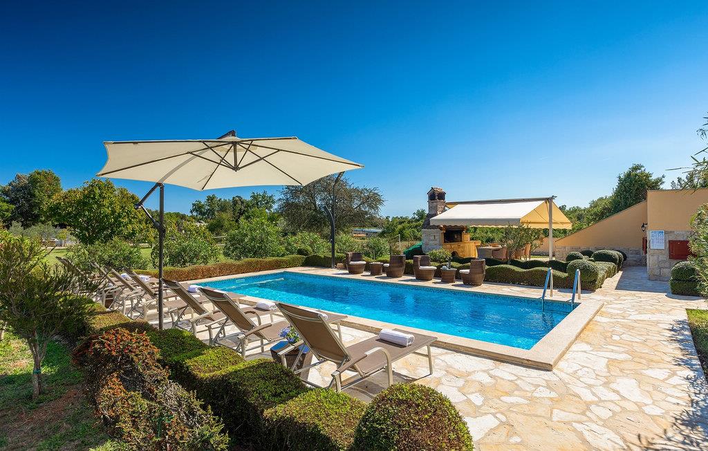 På et roligt sted nær havet ligger den smukke Villa Divina. Poetisk inspireret af udsigten over denne villa begyndte vi at beskrive denne villa beliggende i Sisan, ikke langt fra Medulin. Villaen består af 5 soveværelser, hvoraf der er et soveværelse med badeværelse i stueetagen, hvilket gør villaen velegnet til familier med små børn. I stueetagen er der også et wellness-område, et separat toilet, et køkken, en spisestue og en stue samt en udendørs terrasse. Ovenpå er der 4 soveværelser og et legerum udstyret med billard og bordfodbold for voksne og børn. Villaen er velegnet til at rumme 10 personer. Køkkenet er fuldt udstyret, og spisestuen emmer af elegance og en varm familiestemning med sine møbler, hvilket også kan siges om stuen. Soveværelserne er rummelige, og wellness-området med sauna og jacuzzi tjener til yderligere afslapning og tilføjer et strejf af luksus.