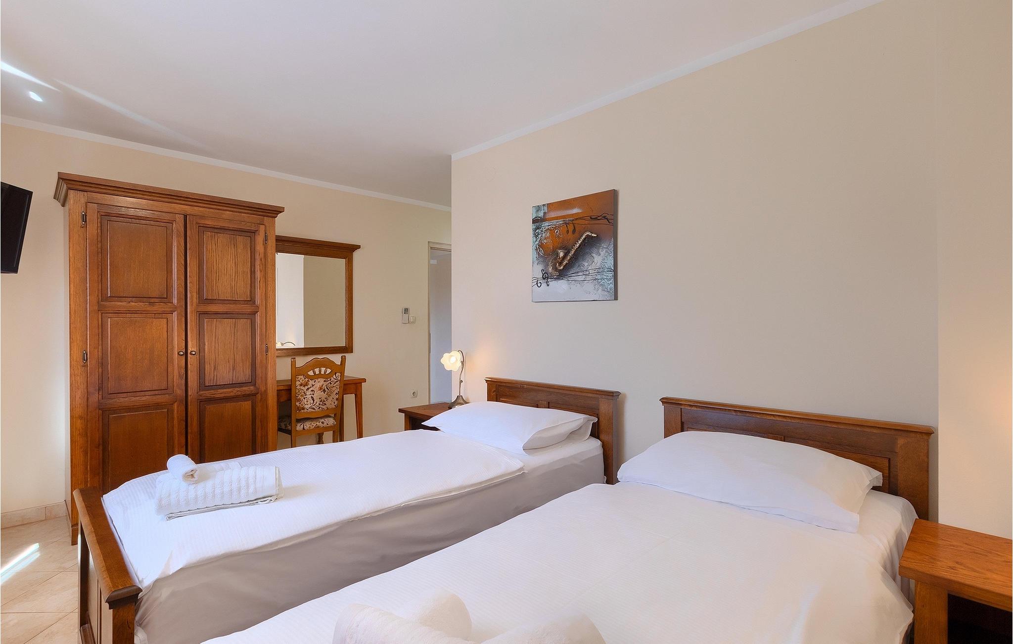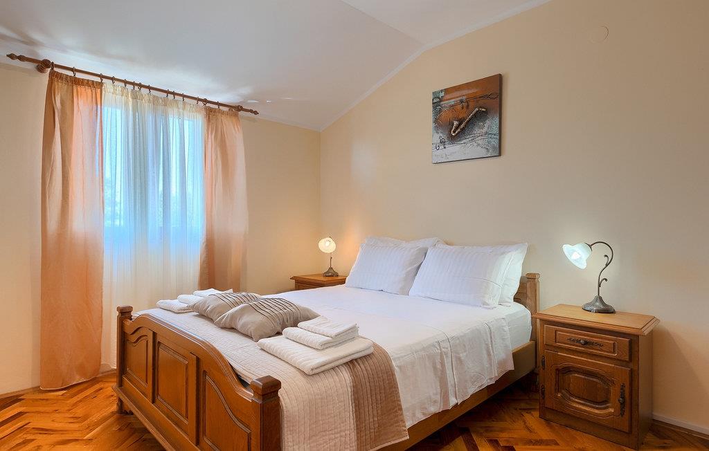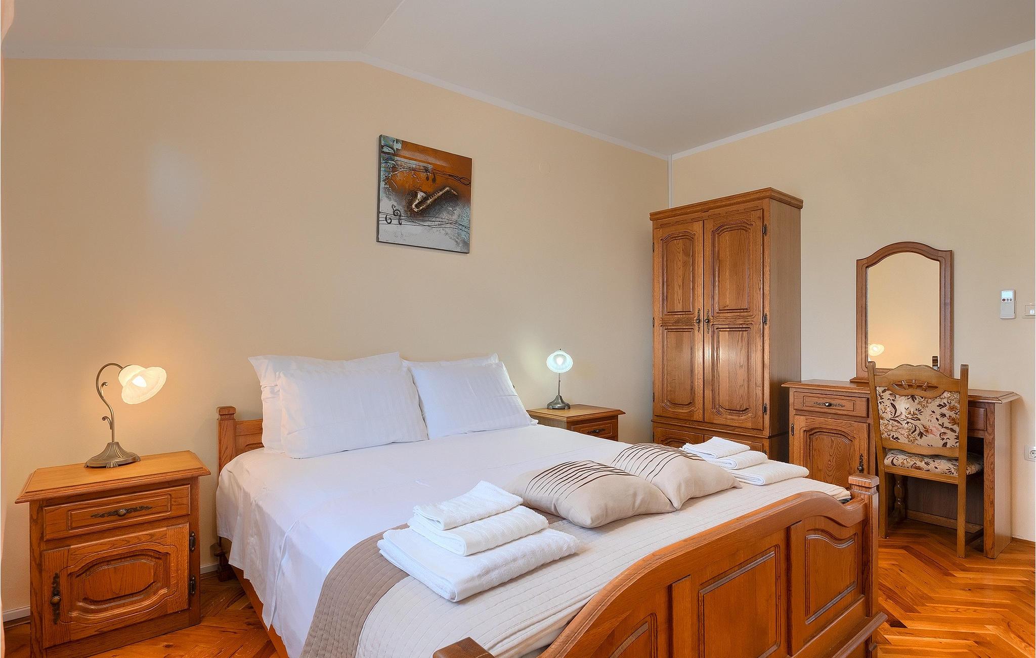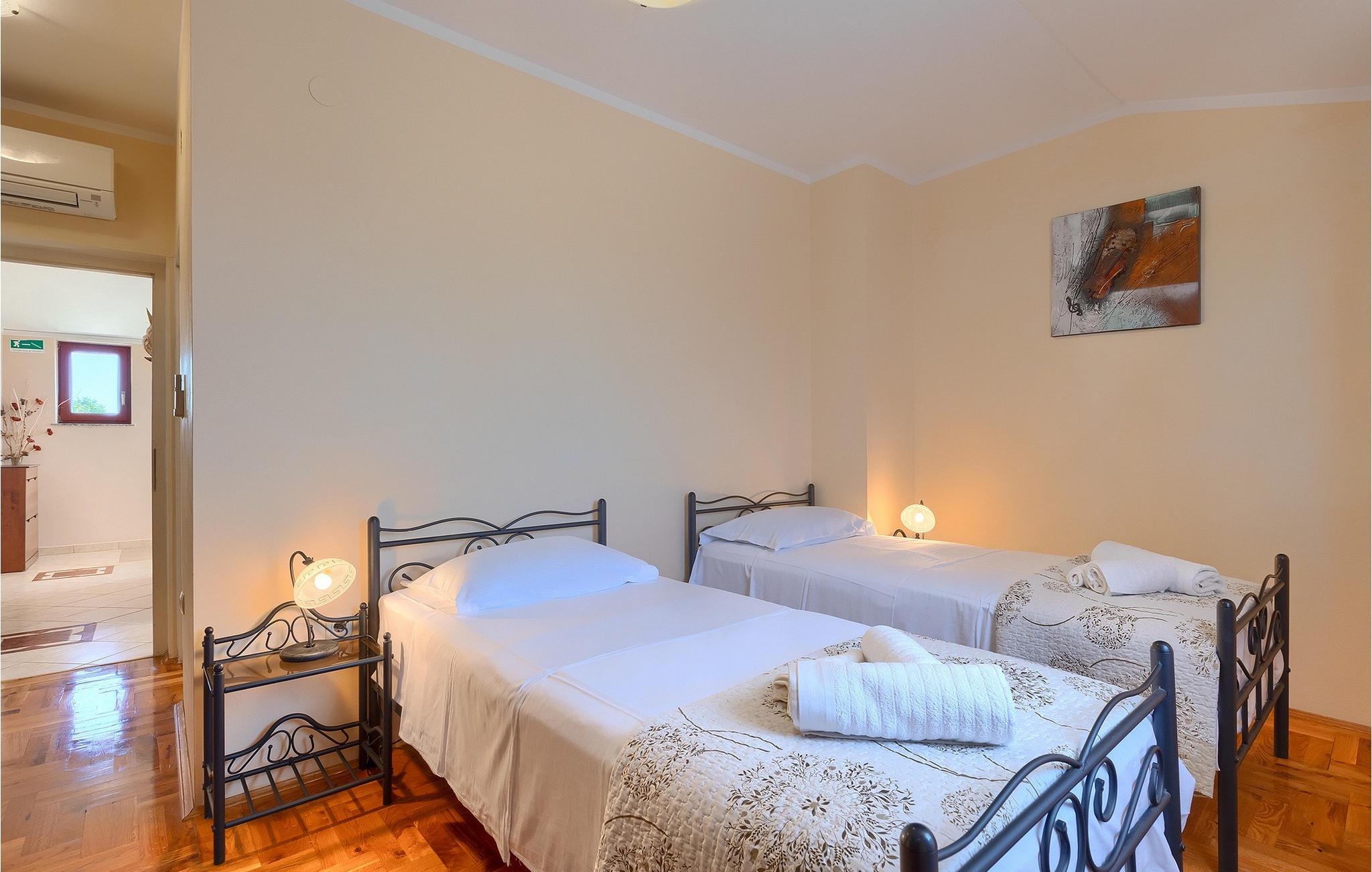 På et roligt sted nær havet ligger den smukke Villa Divina. Poetisk inspireret af udsigten over denne villa begyndte vi at beskrive denne villa beliggende i Sisan, ikke langt fra Medulin. Villaen består af 5 soveværelser, hvoraf der er et soveværelse med badeværelse i stueetagen, hvilket gør villaen velegnet til familier med små børn. I stueetagen er der også et wellness-område, et separat toilet, et køkken, en spisestue og en stue samt en udendørs terrasse. Ovenpå er der 4 soveværelser og et legerum udstyret med billard og bordfodbold for voksne og børn. Villaen er velegnet til at rumme 10 personer. Køkkenet er fuldt udstyret, og spisestuen emmer af elegance og en varm familiestemning med sine møbler, hvilket også kan siges om stuen. Soveværelserne er rummelige, og wellness-området med sauna og jacuzzi tjener til yderligere afslapning og tilføjer et strejf af luksus.