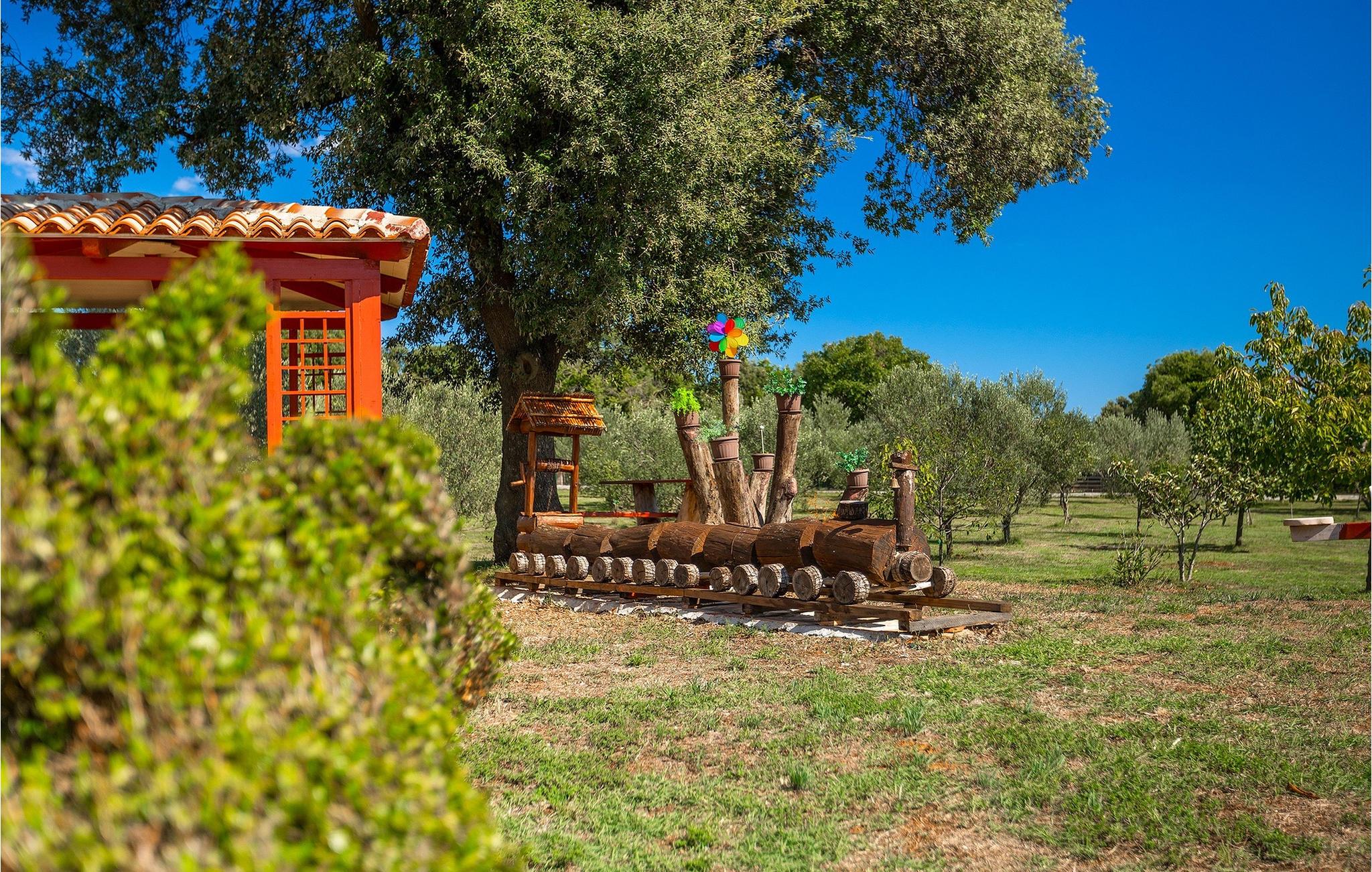 Hvis vi skulle vælge mellem interiøret og det ydre, ville det være rigtig svært at beslutte, hvilken der er smukkere og komfortabel. Udendørsområdet er et rigtigt lille paradis med en meget pænt plejet have, en swimmingpool og et overdækket område med en grill og en udendørs spiseplads. Ja, du læste rigtigt - endnu et sted at nyde grillmad. Og mens de voksne slapper af på liggestolene ved poolen, kan børnene lege på legepladsen, der er forberedt til dem. De, der kan lide en aktiv ferie, kan teste deres styrke i et godt spil volleyball eller bordtennis, og derefter slappe af i saunaen og nyde et velfortjent hvil.