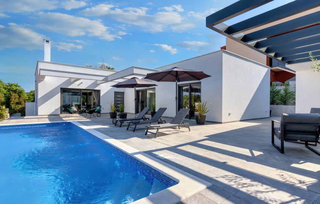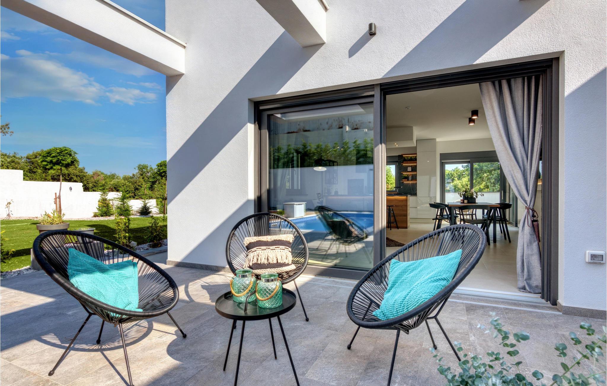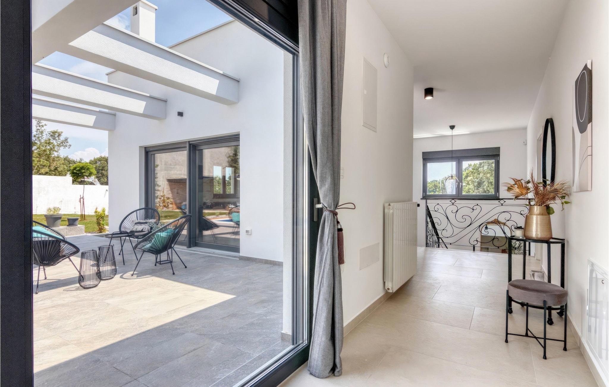 Villa Design M er en smuk villa med et moderne design nær Pula. Villaen har en fuldstændig indhegnet have, så den vil give dig fuldstændig privatliv under din ferie. Foran villaen er der en skøn pool på 36 m2 omgivet af grønne områder. Forny dig selv i det i sommervarmen. Skab uforglemmelige minder ved at socialisere i det overdækkede område ved poolen. Ved selve indgangen til villaen er det første afslappende værelse fuld af naturligt lys med en dobbeltseng og et privat badeværelse. Der er også et vaskerum i villaens stueetage. Trapper med spiralmotiver ser raffinerede ud og forbinder stueetagen med første sal. På første sal er der tre komfortable soveværelser med dobbeltsenge og private badeværelser. På denne etage er der et fuldt udstyret køkken, der indeholder alt til at tilberede lækre traditionelle retter som sort risotto eller brudet. Tilbring tid i en hyggelig atmosfære i spisestuen eller stuen på første sal i villaen. Gå ikke glip af en ferie i Villa Design M og forkæl dig selv med et eventyr i Istrien i Pješcana uvala. Pješcana uvala er en landsby syd for Pula i Medulin kommune. Det er kendt for sin smukke sand- og stenstrand, ideel til et heldags udendørs ophold med familie eller venner i en middelhavsatmosfære. Langs kysten er der talrige fremragende cateringfaciliteter og forskellige turistfaciliteter, som du bestemt bør besøge. Gå ikke glip af at besøge Soline Forest Park, der er kendt for sin stenegeskov, et smukt udsigtspunkt med udsigt over Istriens øer og det blå Adriaterhav og den uddannelsesmæssige og rekreative promenade, der fører til det ældste Istriens stenbrud. Brijuni National Park med sin populære safaripark er et must-besøg destination. Kun 6 km fra Pješcana uvala ligger Pula, den største by i Istrien, hvor du kan se Pula Arena, Augustus-templet, Den Gyldne Port og mange andre kulturelle og historiske monumenter. Temperaturen i den opvarmede swimmingpool er afhængig af eksterne faktorer, herunder vejrforhold, og som sådan kan temperaturen på vandet ikke garanteres.