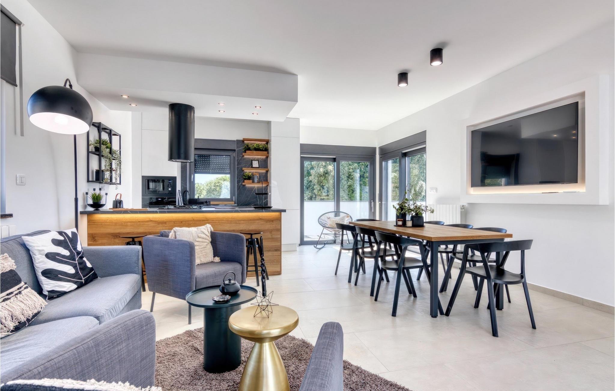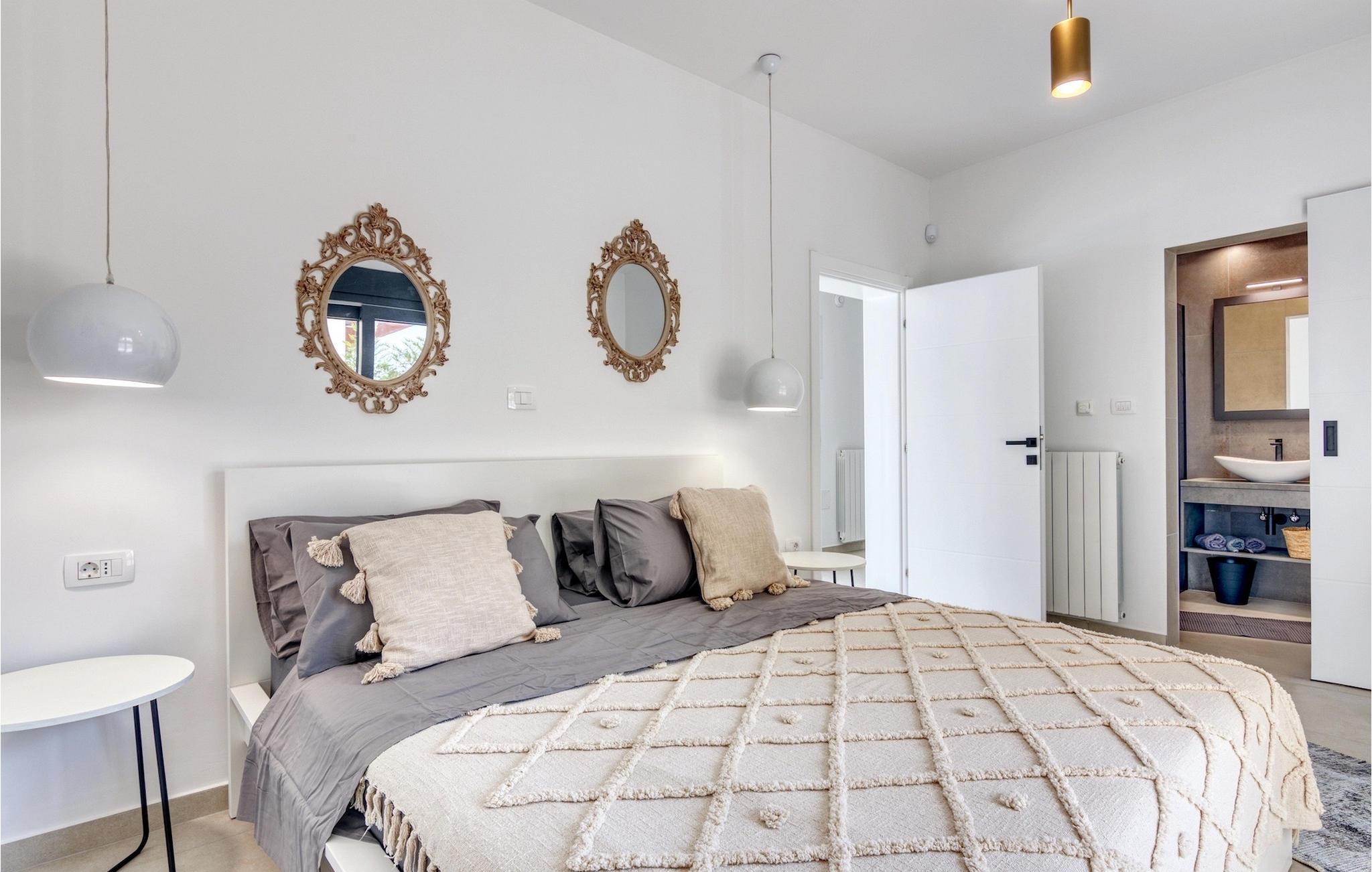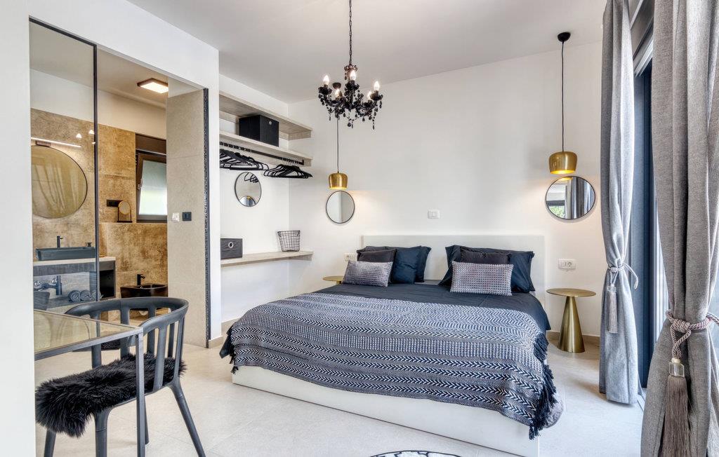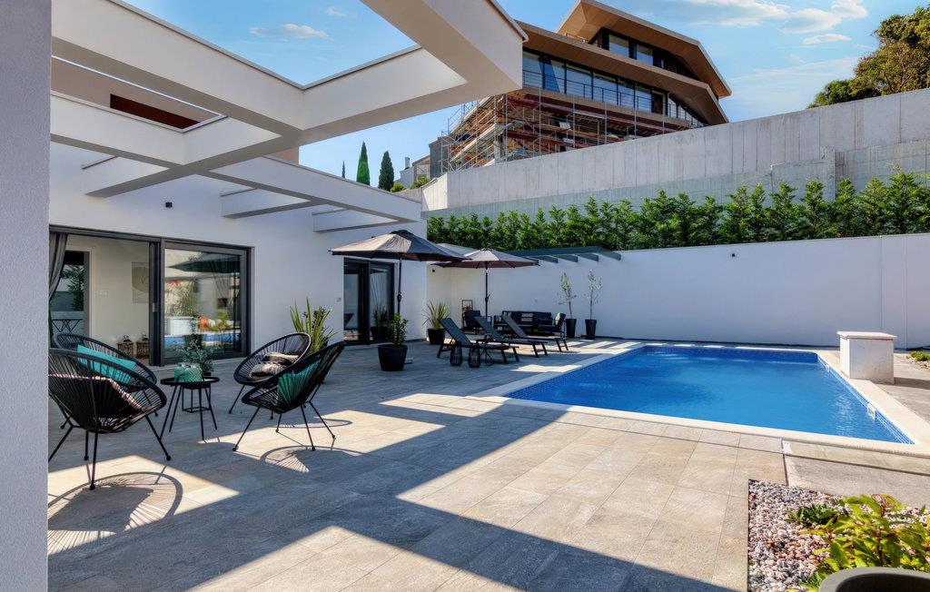 Villa Design M er en smuk villa med et moderne design nær Pula. Villaen har en fuldstændig indhegnet have, så den vil give dig fuldstændig privatliv under din ferie. Foran villaen er der en skøn pool på 36 m2 omgivet af grønne områder. Forny dig selv i det i sommervarmen. Skab uforglemmelige minder ved at socialisere i det overdækkede område ved poolen. Ved selve indgangen til villaen er det første afslappende værelse fuld af naturligt lys med en dobbeltseng og et privat badeværelse. Der er også et vaskerum i villaens stueetage. Trapper med spiralmotiver ser raffinerede ud og forbinder stueetagen med første sal. På første sal er der tre komfortable soveværelser med dobbeltsenge og private badeværelser. På denne etage er der et fuldt udstyret køkken, der indeholder alt til at tilberede lækre traditionelle retter som sort risotto eller brudet. Tilbring tid i en hyggelig atmosfære i spisestuen eller stuen på første sal i villaen. Gå ikke glip af en ferie i Villa Design M og forkæl dig selv med et eventyr i Istrien i Pješcana uvala. Pješcana uvala er en landsby syd for Pula i Medulin kommune. Det er kendt for sin smukke sand- og stenstrand, ideel til et heldags udendørs ophold med familie eller venner i en middelhavsatmosfære. Langs kysten er der talrige fremragende cateringfaciliteter og forskellige turistfaciliteter, som du bestemt bør besøge. Gå ikke glip af at besøge Soline Forest Park, der er kendt for sin stenegeskov, et smukt udsigtspunkt med udsigt over Istriens øer og det blå Adriaterhav og den uddannelsesmæssige og rekreative promenade, der fører til det ældste Istriens stenbrud. Brijuni National Park med sin populære safaripark er et must-besøg destination. Kun 6 km fra Pješcana uvala ligger Pula, den største by i Istrien, hvor du kan se Pula Arena, Augustus-templet, Den Gyldne Port og mange andre kulturelle og historiske monumenter. Temperaturen i den opvarmede swimmingpool er afhængig af eksterne faktorer, herunder vejrforhold, og som sådan kan temperaturen på vandet ikke garanteres.