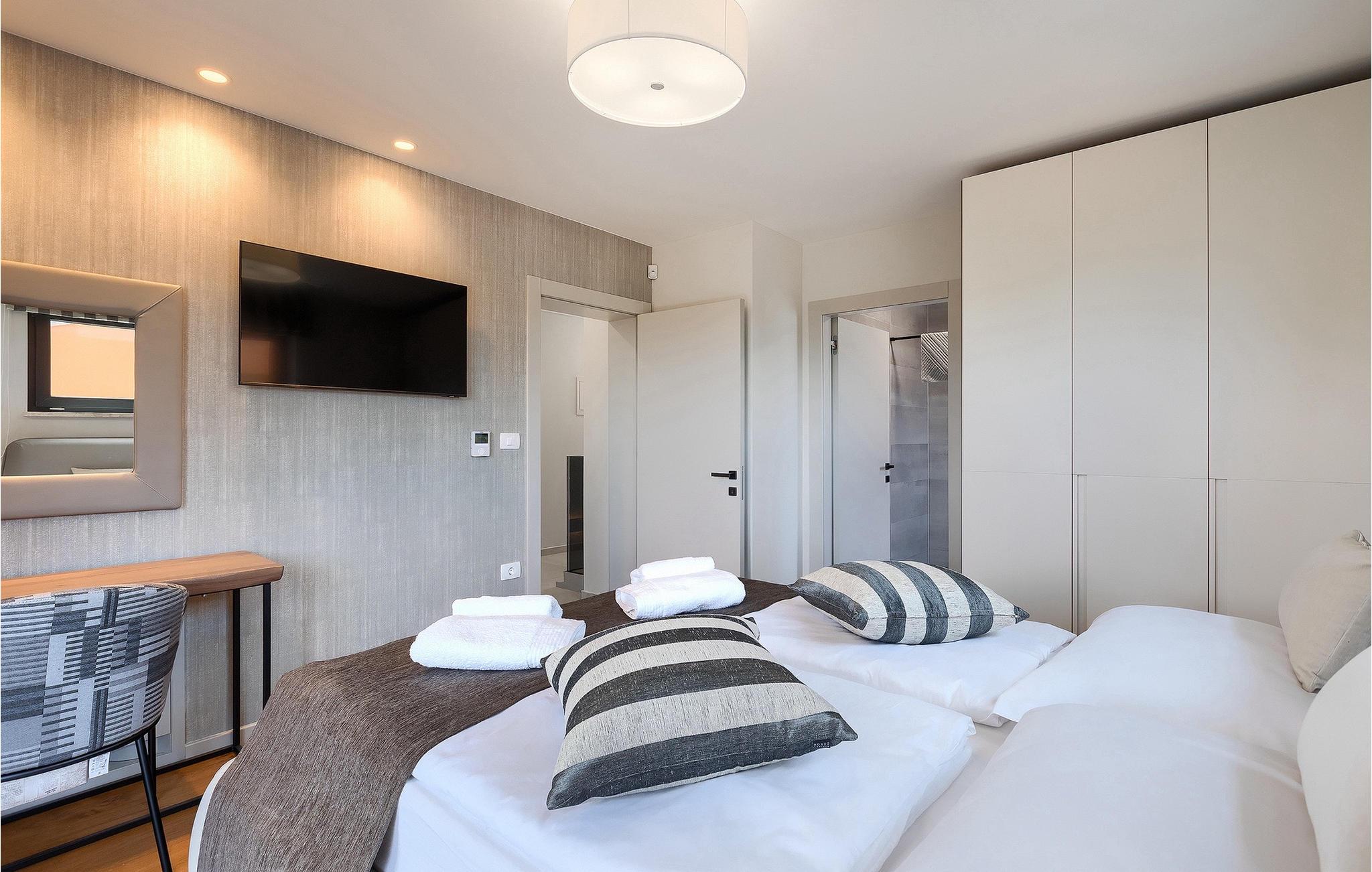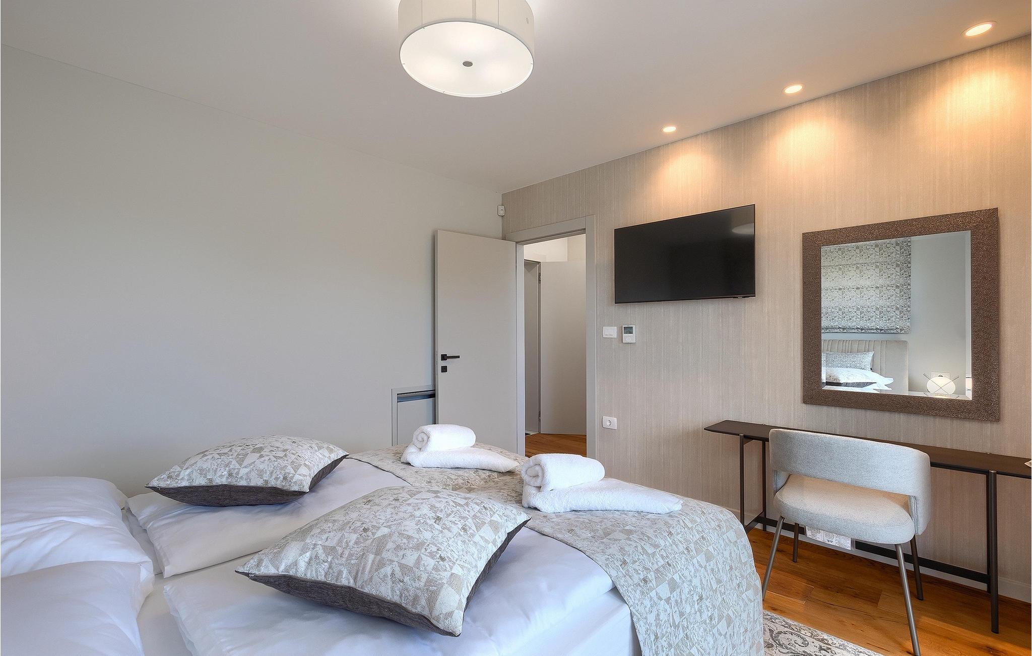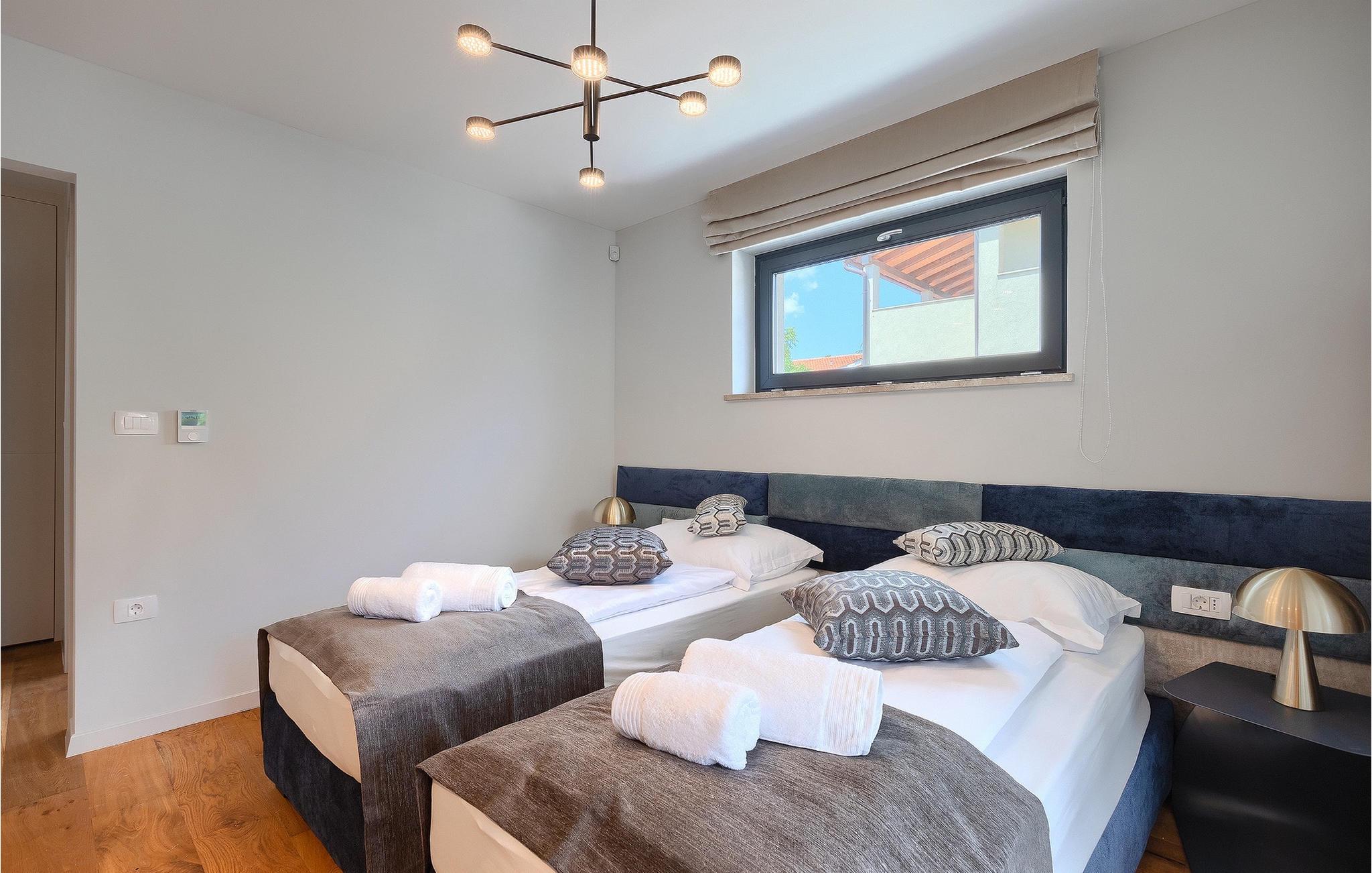 Villa Cascada er beliggende i den lille by Muntic i udkanten af Pula og kun 5 km fra den internationale lufthavn, hvilket giver dig nem adgang til byen, samtidig med at du tilbyder en multikulturel oplevelse lige ved hånden. Beriget med et moderne interiør og eksteriør og et strejf af istrisk rusticitet, tilbyder villaen dig en atmosfære, der vil efterlade dig forpustet! Det blev bygget i begyndelsen af 2023 og er nu klar til at åbne dørene for gæster, der søger efter en luksuriøs og fredelig ferie med venner eller familie. Du bliver komfortabelt indkvarteret i 3 dobbeltværelser (hvoraf det ene har to enkeltsenge, der kan sættes sammen, hvis det ønskes). Hvert soveværelse har eget badeværelse med bruser. Gæsterne er også udstyret med en vaskemaskine, tørretumbler og strygejern. I den rummelige stue er der en tre-personers sofa med en queen-size seng, LED-tv og moderne detaljer. Det er selvfølgelig vigtigt at nævne, at køkkenet har en imponerende udsigt over det grønne gennem de skydeglasvægge! Køkkenet er fuldt udstyret, med accenter af minimalisme, som gør det lettere at tilberede en let frokost samt en rig middag, som faktisk er en tradition i Istrien. Foran villaen er der en smuk swimmingpool også beriget med grønne områder, hvor du kan finde kølende skygge i sommervarmen eller nyde den istriske sol på liggestolene ved poolen. Ud over swimmingpoolen tilbyder denne villa et afslappende wellnessområde og udendørs jacuzzi. Under palmens skygge vil du helt sikkert blive henrykt over legepladsen, der er udstyret med rutsjebane og gynger samt en gasgrill. Villa Cascada tilbyder dig foryngelse for både krop og sjæl, mens den fortryllende landsby Muntic vil glæde dig med sin karakteristiske istriske stemning. Villa Cascada ligger i landsbyen Muntic i kommunen LIžnjan, i den sydøstlige del af Istrien. Denne farverige landsby har en rig historie, der går tilbage til romertiden. Den blev første gang nævnt i det 14. århundrede, og i det 16. århundrede blev den nuværende Sankt Hieronymus kirke bygget i gotisk stil. Lær den charmerende lokale befolkning og deres hjemmelavede produkter at kende, som du kan bruge til at tilberede istriske retter. Traditionelle sangere og musikere fra Muntic vil underholde dig. Besøg turistcentrene Medulin og Pula. Medulin er en gammel fiskerby og et moderne turistcenter. Udforsk dens sandstrande på Istriens sydlige kyst og smag områdets traditionelle køkken i restauranter og taverner. For eventyrere er der en adrenalinpark, mens historieelskere kan besøge den arkæologiske park Vižula, Medulins historiepark. Sæt sejl mod øerne i Medulin-øgruppen Ceja, Levan eller Bodulaš. Udforsk også den charmerende landsby Marcane. I umiddelbar nærhed af Marcana ligger Duga Uvala, hvor du kan nyde den 300 meter lange strand. Du kan udforske undergrunden af Marcana Riviera i Ljubics hule, Golubinkas hule eller Perešins hule. Pula er bestemt en destination, du ikke må gå glip af. I den største by i Istrien kan du se Pula Arena, Augustus-templet, Den Gyldne Port og mange andre kulturelle og historiske monumenter. Nyd de smukke strande og den fantastiske natur.