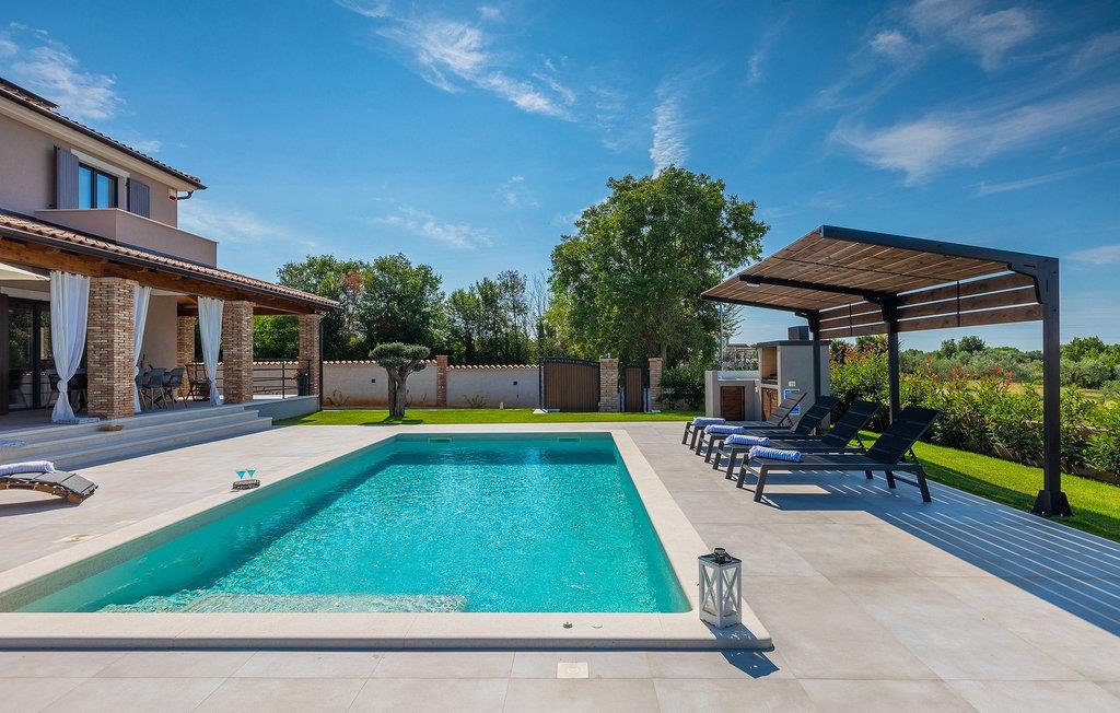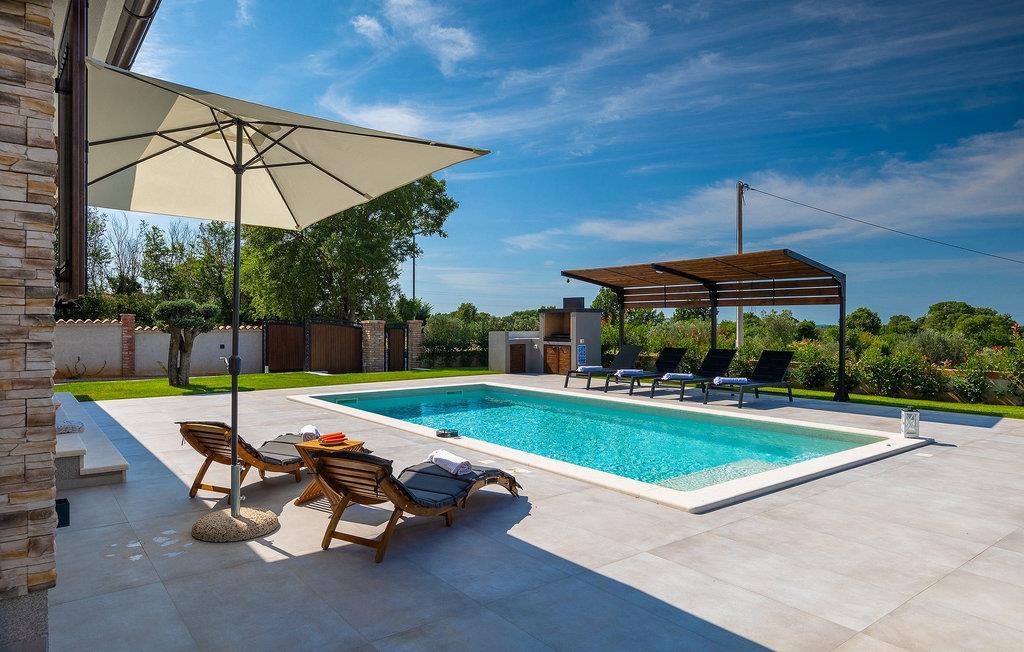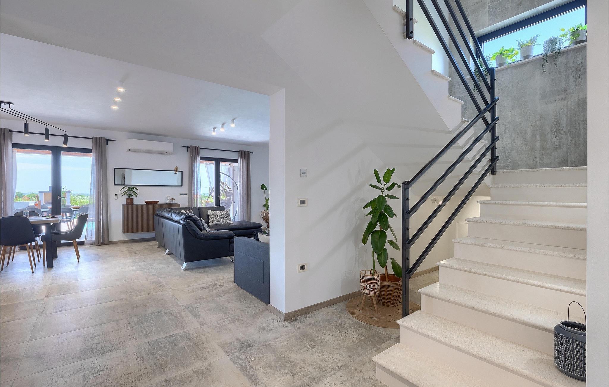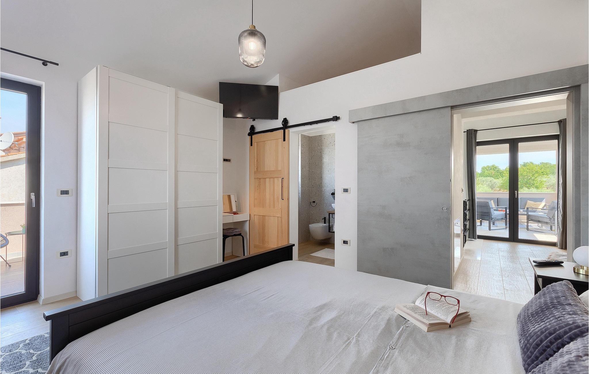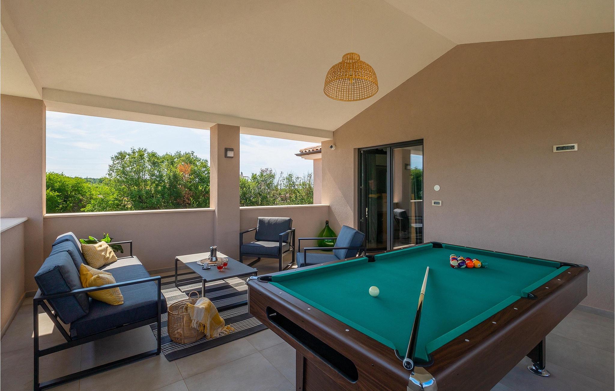 Villa Delfar, beliggende i Galizana nær Pula, er den rigtige villa for dig, hvis du leder efter en luksuriøs, rolig og aktiv ferieoplevelse. Det giver dig først og fremmest en fantastisk privat pool. Udover det har du en sauna og dit helt eget fitnessrum med løbebånd og motionscykel. Villaejerne har også sørget meget for din komfort, da der er gulvvarme i hele villaen, samt 3 komfortable soveværelser med ensuite badeværelser og satellit-tv i dem alle. I stueetagen kan du finde et moderne, elegant og fuldt udstyret køkken, som en del af det åbne rum med en moderne og komfortabel stue og spiseplads til 8 personer. Selvom alt dette er fantastisk, vil du sandsynligvis stadig tilbringe det meste af dine dage udendørs, hvor du kan finde et al fresco spisebord, en grill, et poolbord, en legeplads og meget mere. Bare slap af og nyd! Galizana er en lille landsby nær Pula, den største by i Istrien, kendt for sine historiske steder. Galizanas historie rækker tilbage til romertiden. I dag er det et lille sted med 1500 indbyggere, med sognekirken St. Rocco fra det 17. århundrede i centrum af stedet. Da dette er en landbrugsregion, beskæftiger befolkningen sig overvejende med vindyrkning, olivendyrkning og husdyrproduktion, der producerer olivenolie, gedeost og andre lokale produkter. Fordelen ved Galizana er dens fredelige omgivelser i det typiske istriske landskab og nærheden af mange attraktive faciliteter, der er kun en kort køretur væk. Nogle af dem er det romerske amfiteater fra det 1. århundrede og nationalparken Brijuni-øerne. Vælg dit perfekte sted på en sten-, sten- eller sandstrand på kysten mellem Fazana og Valbadon, eller besøg de klippestrande i naturparken Kamenjak, det sydligste sted i Istrien. Oplev det indre af Istrien og dets middelalderlige bjergbyer med deres rige arv, tradition og gastronomiske højdepunkter.
