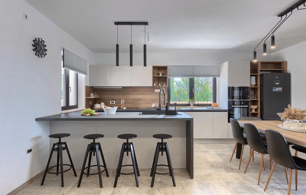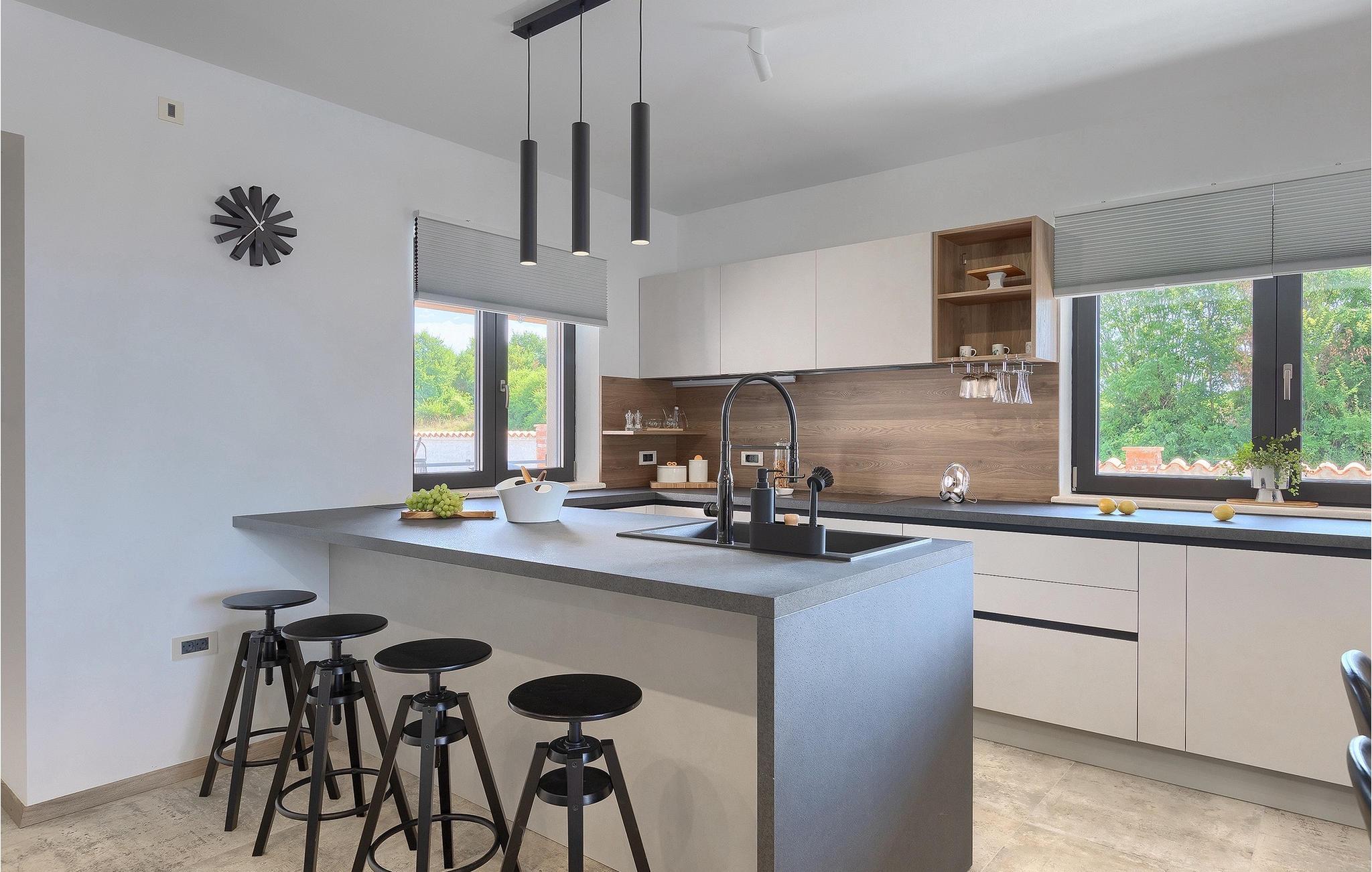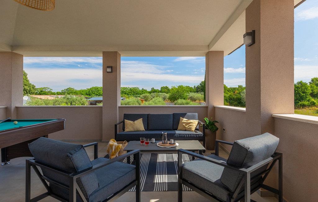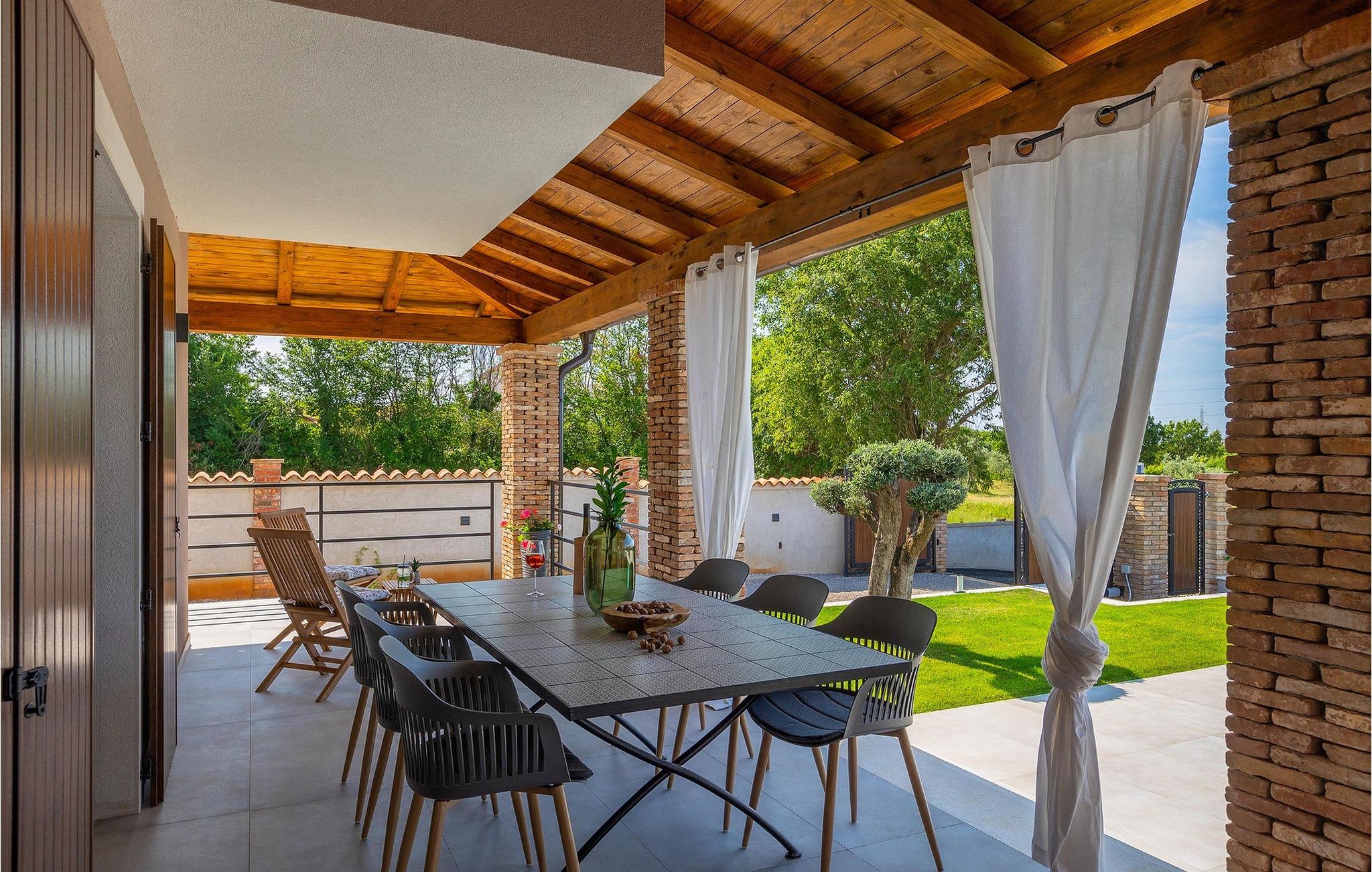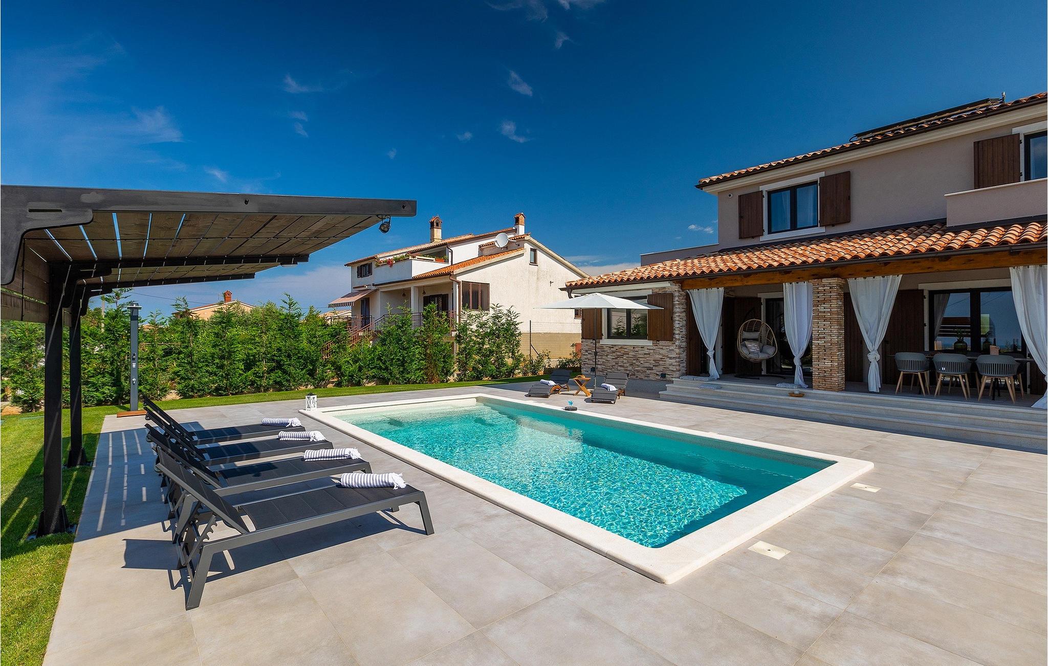 Villa Delfar, beliggende i Galizana nær Pula, er den rigtige villa for dig, hvis du leder efter en luksuriøs, rolig og aktiv ferieoplevelse. Det giver dig først og fremmest en fantastisk privat pool. Udover det har du en sauna og dit helt eget fitnessrum med løbebånd og motionscykel. Villaejerne har også sørget meget for din komfort, da der er gulvvarme i hele villaen, samt 3 komfortable soveværelser med ensuite badeværelser og satellit-tv i dem alle. I stueetagen kan du finde et moderne, elegant og fuldt udstyret køkken, som en del af det åbne rum med en moderne og komfortabel stue og spiseplads til 8 personer. Selvom alt dette er fantastisk, vil du sandsynligvis stadig tilbringe det meste af dine dage udendørs, hvor du kan finde et al fresco spisebord, en grill, et poolbord, en legeplads og meget mere. Bare slap af og nyd! Galizana er en lille landsby nær Pula, den største by i Istrien, kendt for sine historiske steder. Galizanas historie rækker tilbage til romertiden. I dag er det et lille sted med 1500 indbyggere, med sognekirken St. Rocco fra det 17. århundrede i centrum af stedet. Da dette er en landbrugsregion, beskæftiger befolkningen sig overvejende med vindyrkning, olivendyrkning og husdyrproduktion, der producerer olivenolie, gedeost og andre lokale produkter. Fordelen ved Galizana er dens fredelige omgivelser i det typiske istriske landskab og nærheden af mange attraktive faciliteter, der er kun en kort køretur væk. Nogle af dem er det romerske amfiteater fra det 1. århundrede og nationalparken Brijuni-øerne. Vælg dit perfekte sted på en sten-, sten- eller sandstrand på kysten mellem Fazana og Valbadon, eller besøg de klippestrande i naturparken Kamenjak, det sydligste sted i Istrien. Oplev det indre af Istrien og dets middelalderlige bjergbyer med deres rige arv, tradition og gastronomiske højdepunkter.