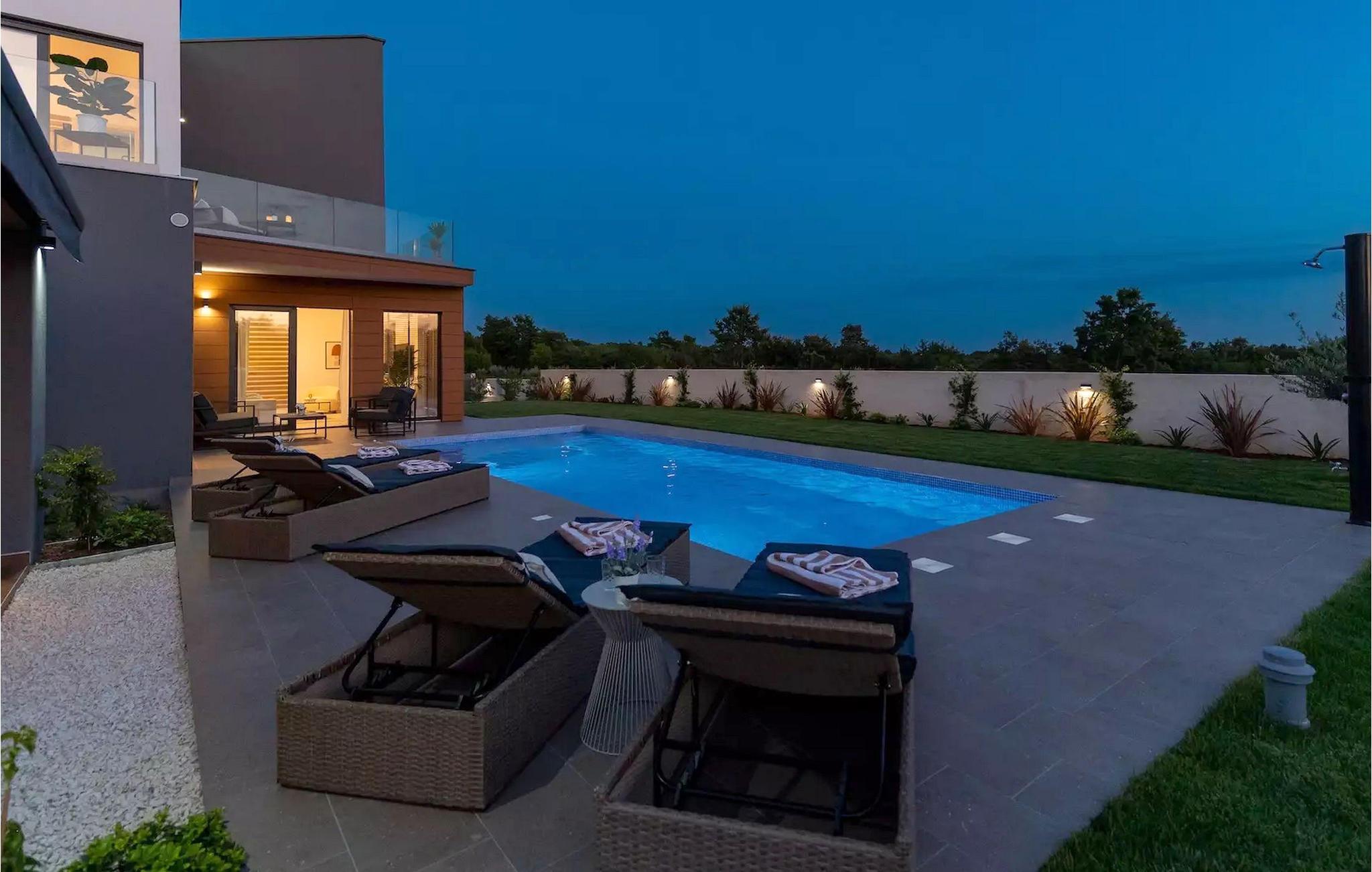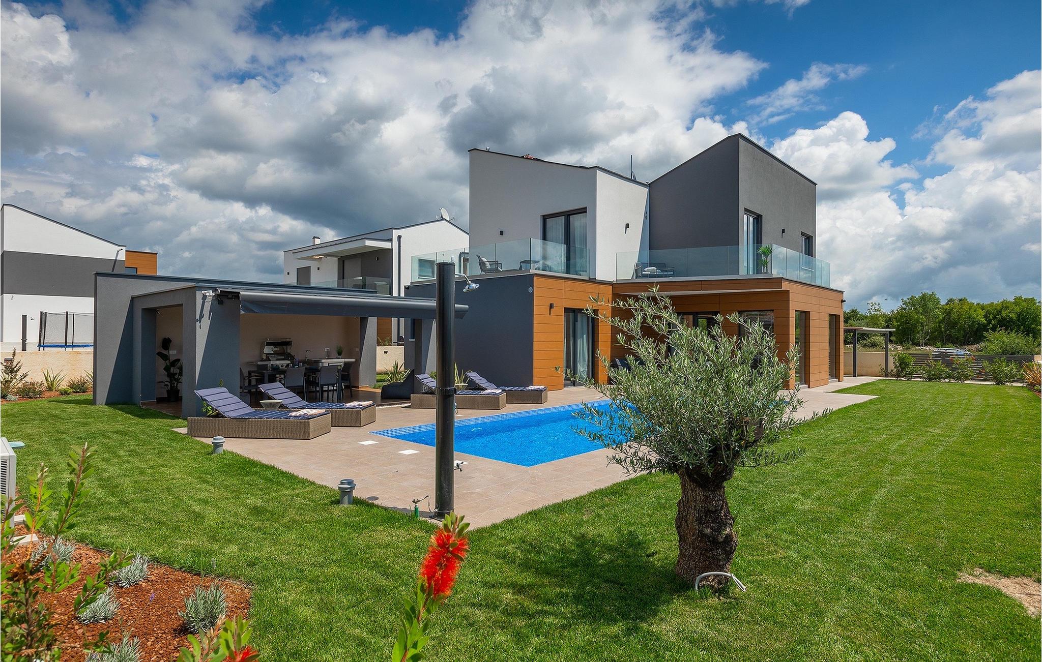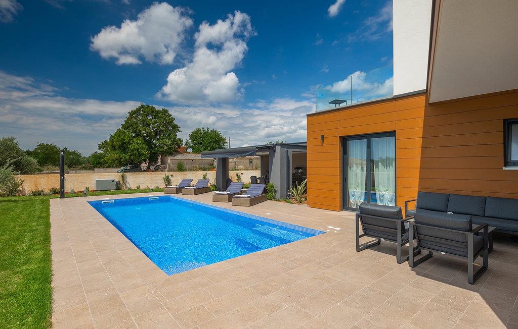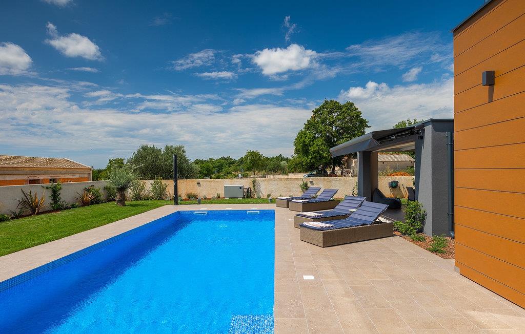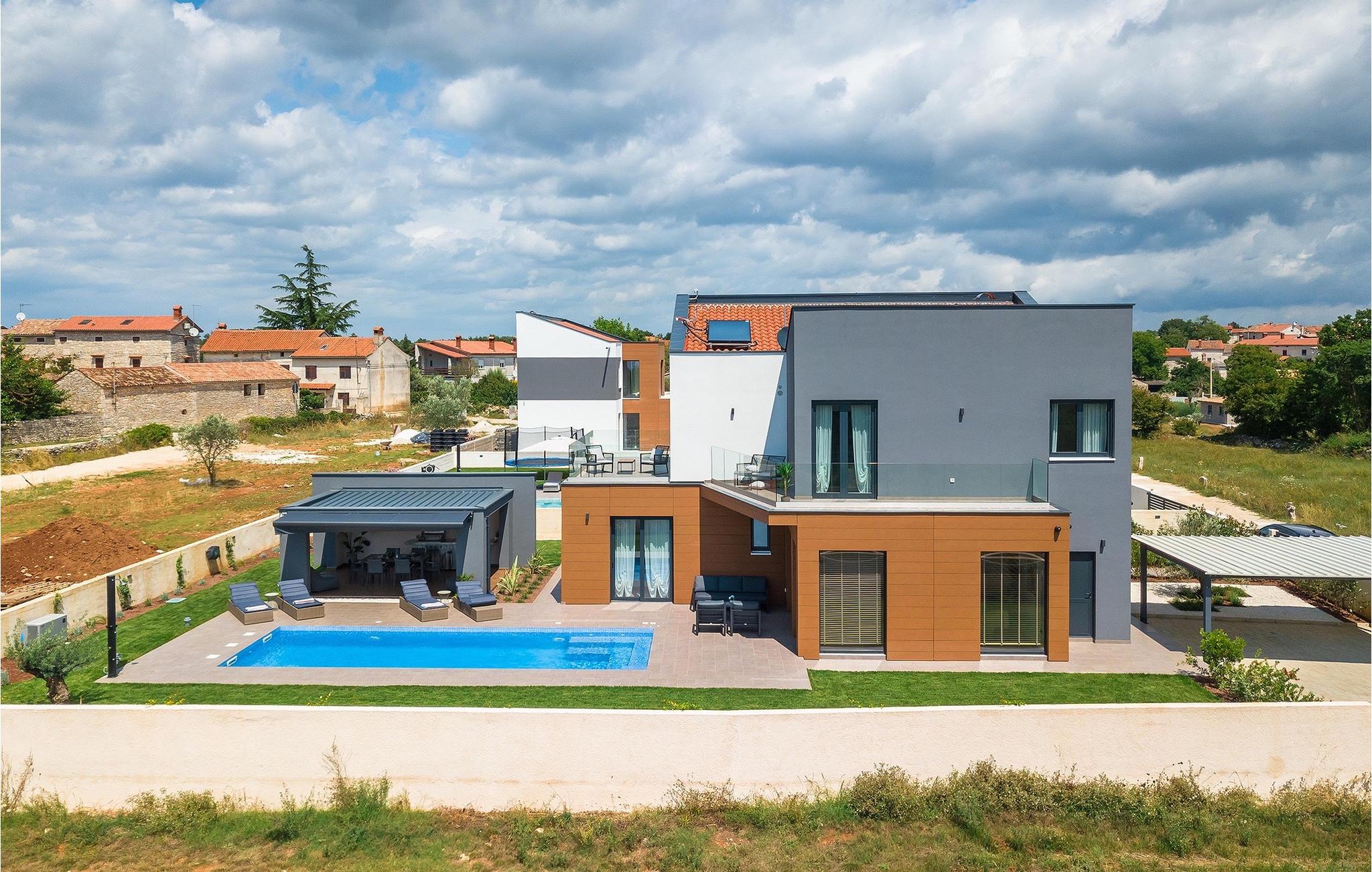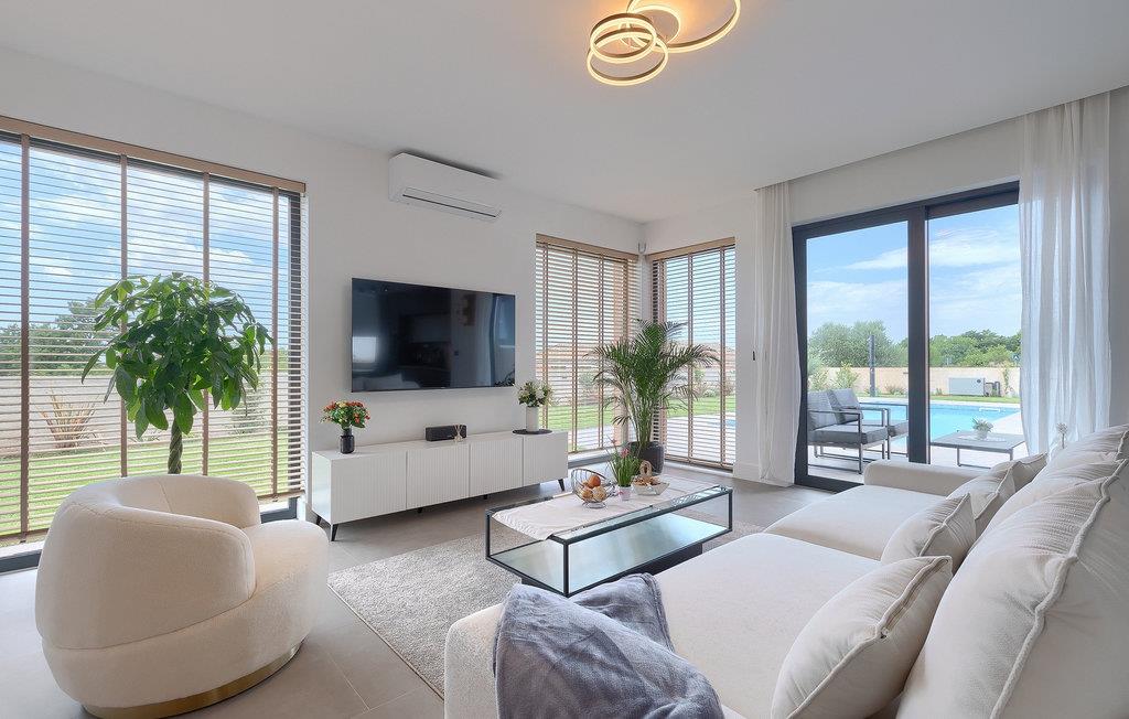 Villa LiLa Sunshine er et sted, hvor luksus møder ro. Det er en sofistikeret og moderne villa, der vil tilbyde dig et luksuriøst ophold i Istriens indre land. Villaen er beliggende i en rolig beliggenhed i Orbanici, kun en kort køretur fra Pula og havet. Villa LiLa Sunshine er velegnet til op til 6 gæster i 3 soveværelser med kingsize senge og eget badeværelse. Alle værelser har aircondition og tv samt udgang til terrasse eller balkon. En lille under 3 år kan også indkvarteres i en barneseng. Det fuldt udstyrede køkken og den luksuriøse stue ligger i stueetagen og byder på en frisk og moderne atmosfære. Udenfor venter en privat pool, gasgrill og udendørs spiseplads, alt sammen omgivet af grønne områder i en rolig beliggenhed. Med et alarmsystem i huset er din ro i sindet lige så vigtig som din komfort. Nyd den istriske sol på fire liggestole, og lad hvert øjeblik være et mesterværk af komfort og sindsro. Den vidunderlige Villa LiLa Sunshine er beliggende i det centrale Istrien, i Orbanici, en lille, charmerende by. Her kan du opleve det fortryllede istriske bagland med dets smukke natur og gastronomiske specialiteter som ost, prosciutto skinke, honning og trøfler. I nærheden af Fazana er de første strande. Med færge eller båd kan du nemt rejse til den storslåede ø Brijuni og dens nationalpark herfra. Den største turistdestination i området er Pula, som byder på et fantastisk amfiteater samt en række restauranter, barer og et pulserende natteliv. Besøg middelalderbyer som Svetvincenat, Vodnjan og Bale, som er kendt for deres maleriske pladser, snoede gyder, taverner, butikker og pubber. Temperaturen i den opvarmede swimmingpool er afhængig af eksterne faktorer, herunder vejrforhold, og som sådan kan temperaturen på vandet ikke garanteres.