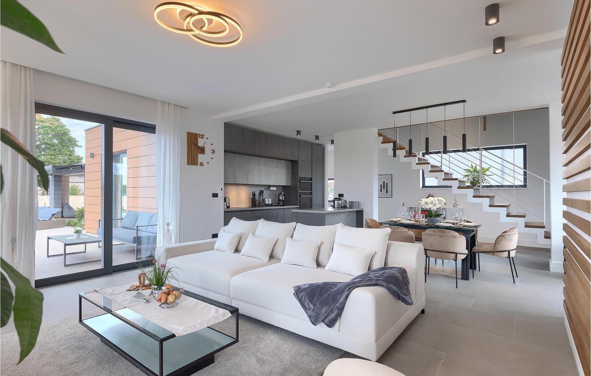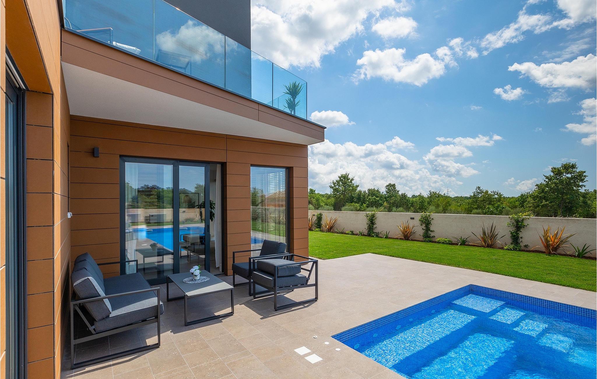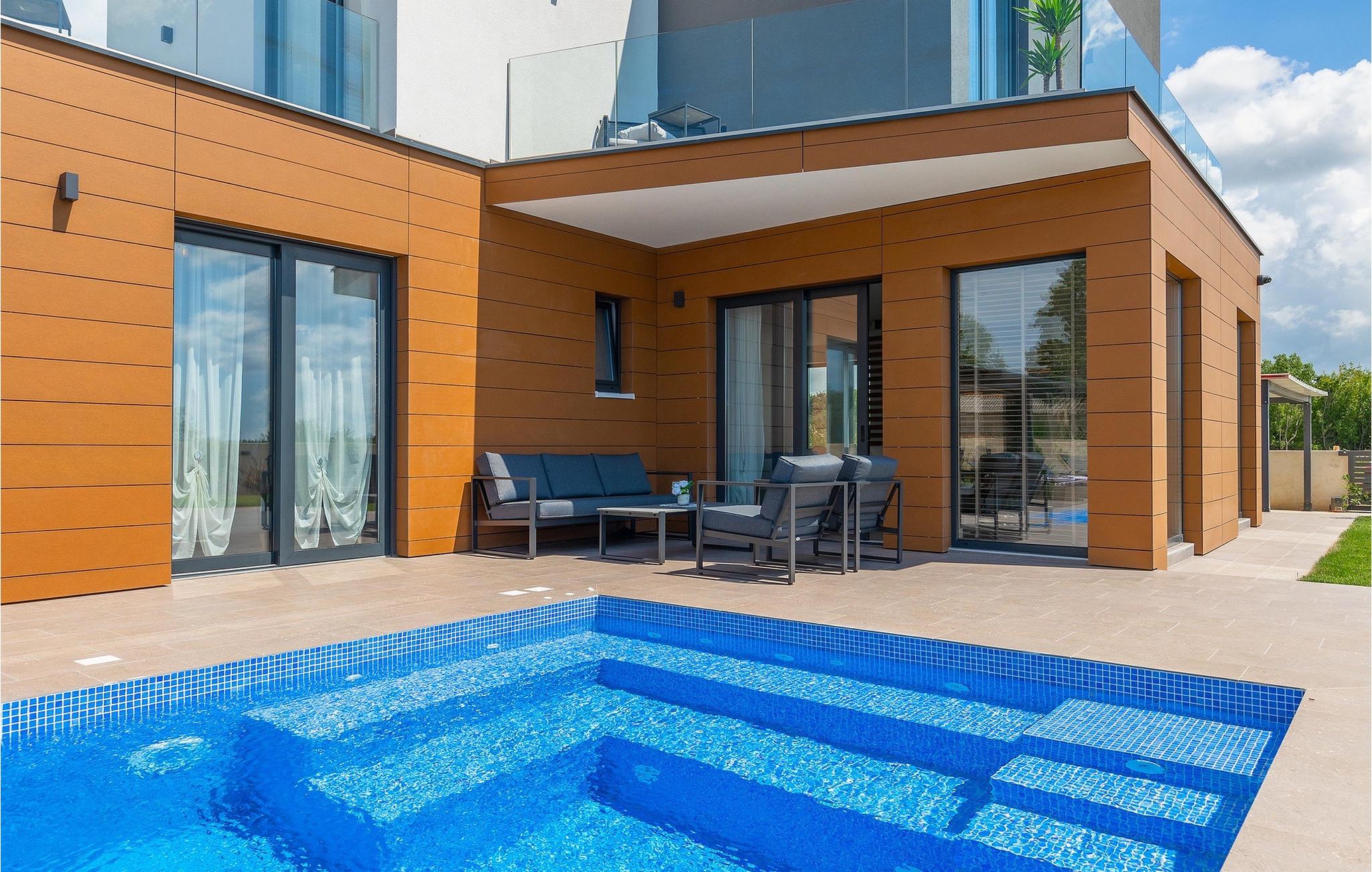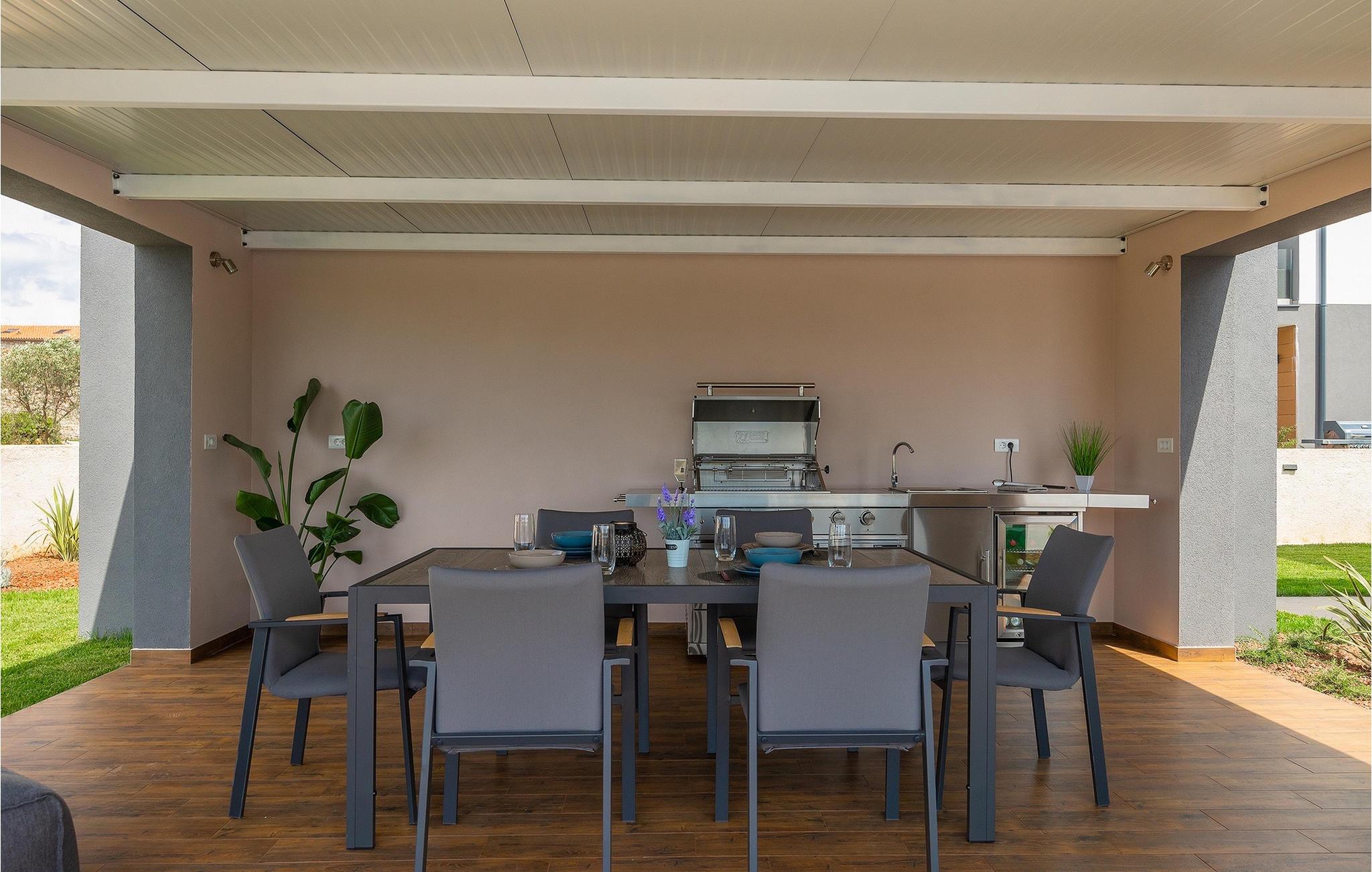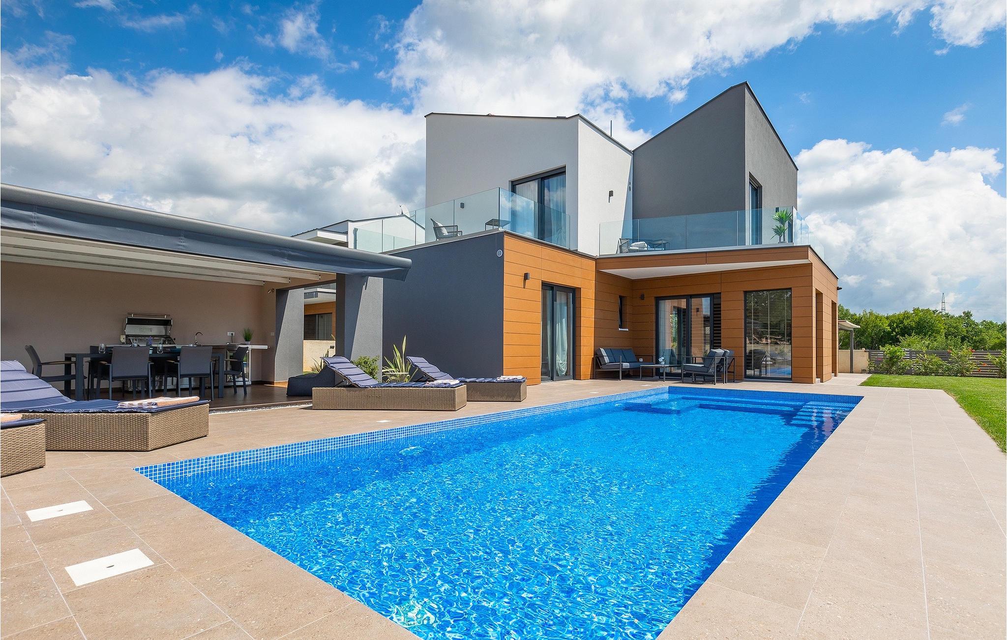 Villa LiLa Sunshine er et sted, hvor luksus møder ro. Det er en sofistikeret og moderne villa, der vil tilbyde dig et luksuriøst ophold i Istriens indre land. Villaen er beliggende i en rolig beliggenhed i Orbanici, kun en kort køretur fra Pula og havet. Villa LiLa Sunshine er velegnet til op til 6 gæster i 3 soveværelser med kingsize senge og eget badeværelse. Alle værelser har aircondition og tv samt udgang til terrasse eller balkon. En lille under 3 år kan også indkvarteres i en barneseng. Det fuldt udstyrede køkken og den luksuriøse stue ligger i stueetagen og byder på en frisk og moderne atmosfære. Udenfor venter en privat pool, gasgrill og udendørs spiseplads, alt sammen omgivet af grønne områder i en rolig beliggenhed. Med et alarmsystem i huset er din ro i sindet lige så vigtig som din komfort. Nyd den istriske sol på fire liggestole, og lad hvert øjeblik være et mesterværk af komfort og sindsro. Den vidunderlige Villa LiLa Sunshine er beliggende i det centrale Istrien, i Orbanici, en lille, charmerende by. Her kan du opleve det fortryllede istriske bagland med dets smukke natur og gastronomiske specialiteter som ost, prosciutto skinke, honning og trøfler. I nærheden af Fazana er de første strande. Med færge eller båd kan du nemt rejse til den storslåede ø Brijuni og dens nationalpark herfra. Den største turistdestination i området er Pula, som byder på et fantastisk amfiteater samt en række restauranter, barer og et pulserende natteliv. Besøg middelalderbyer som Svetvincenat, Vodnjan og Bale, som er kendt for deres maleriske pladser, snoede gyder, taverner, butikker og pubber. Temperaturen i den opvarmede swimmingpool er afhængig af eksterne faktorer, herunder vejrforhold, og som sådan kan temperaturen på vandet ikke garanteres.