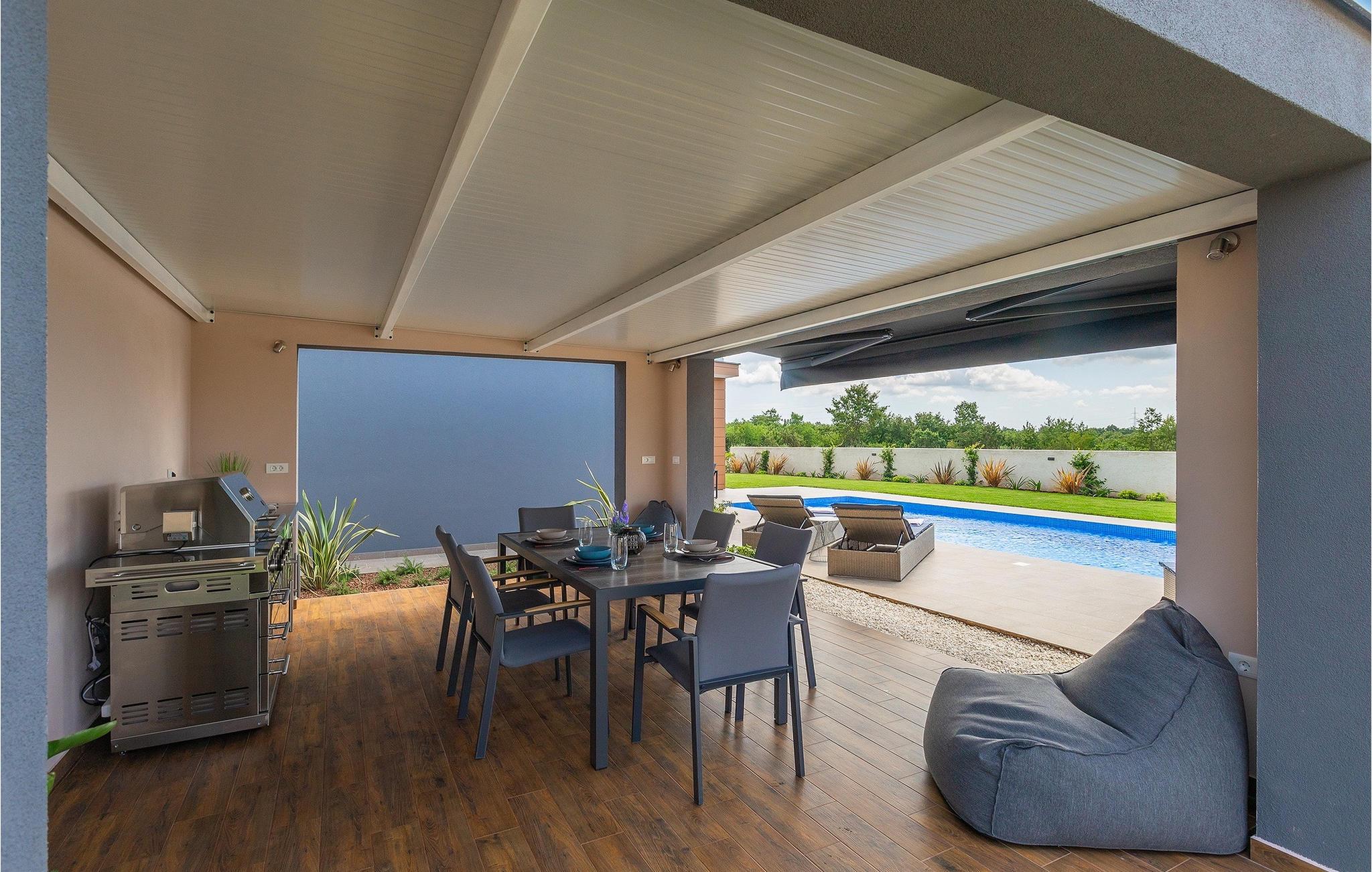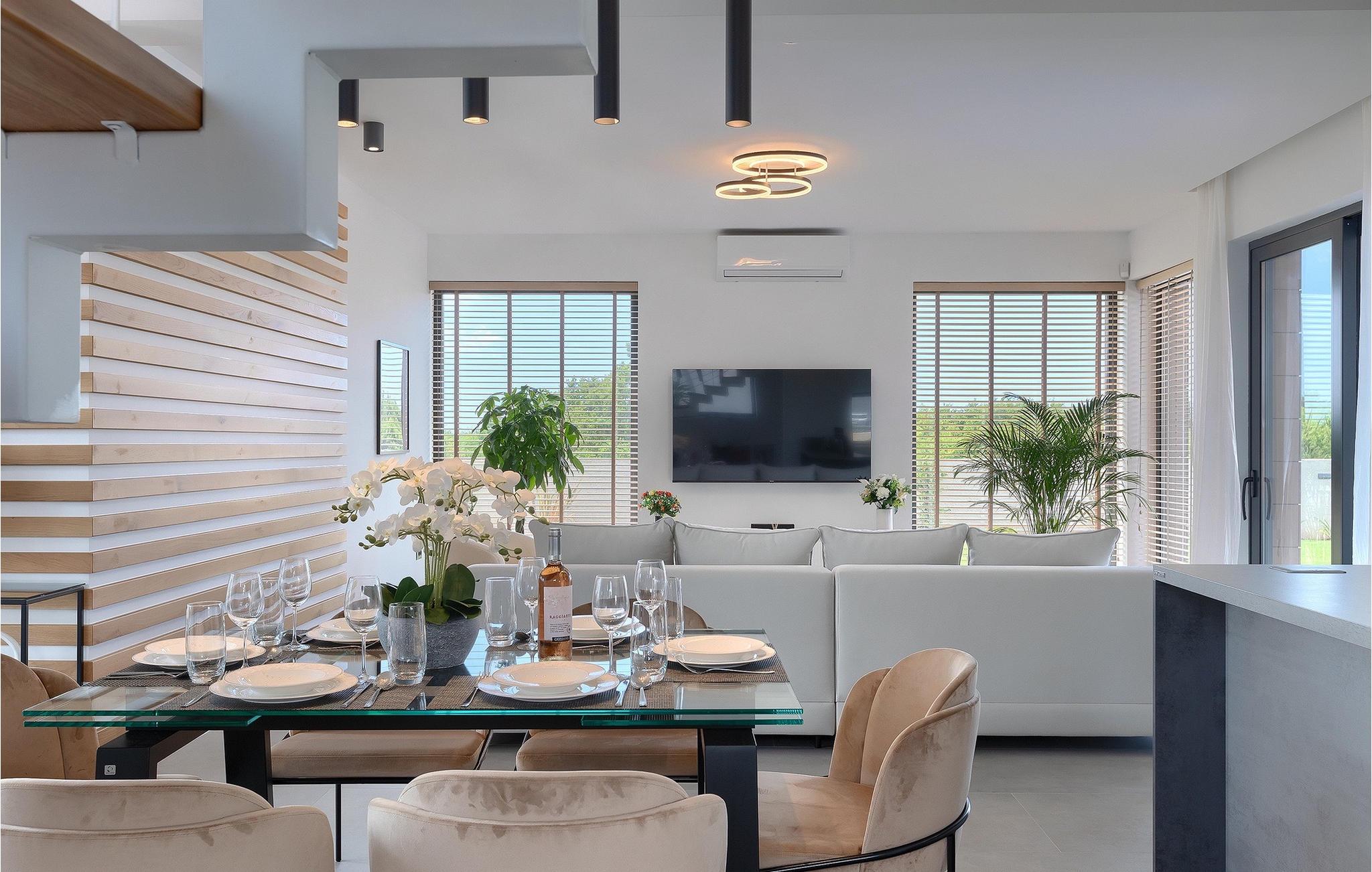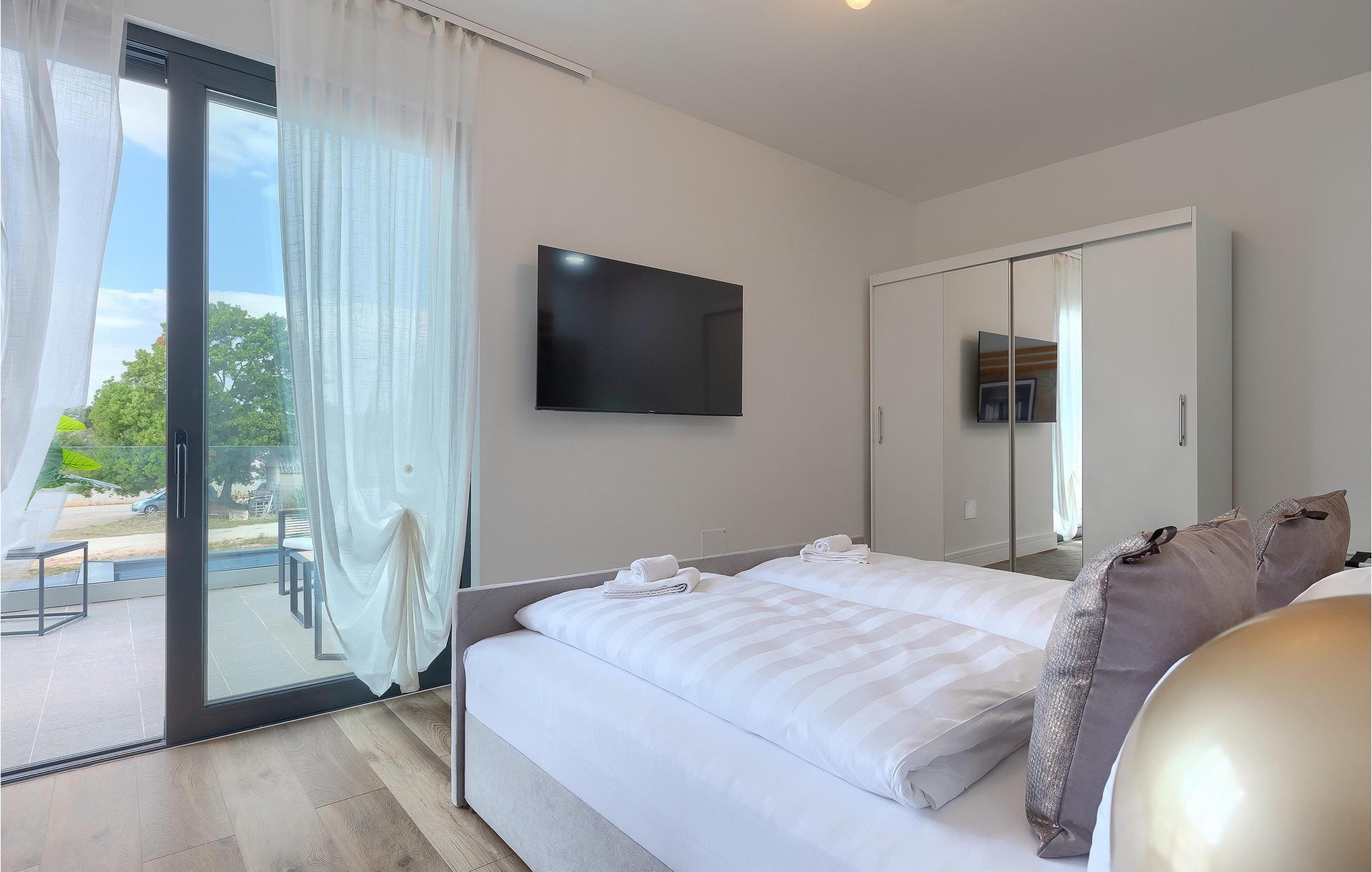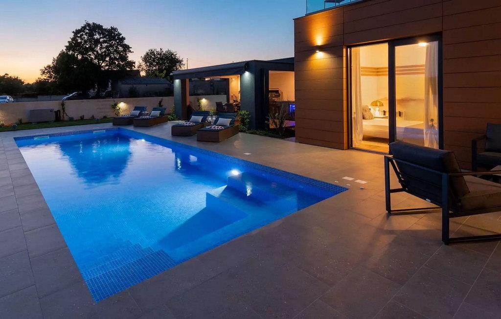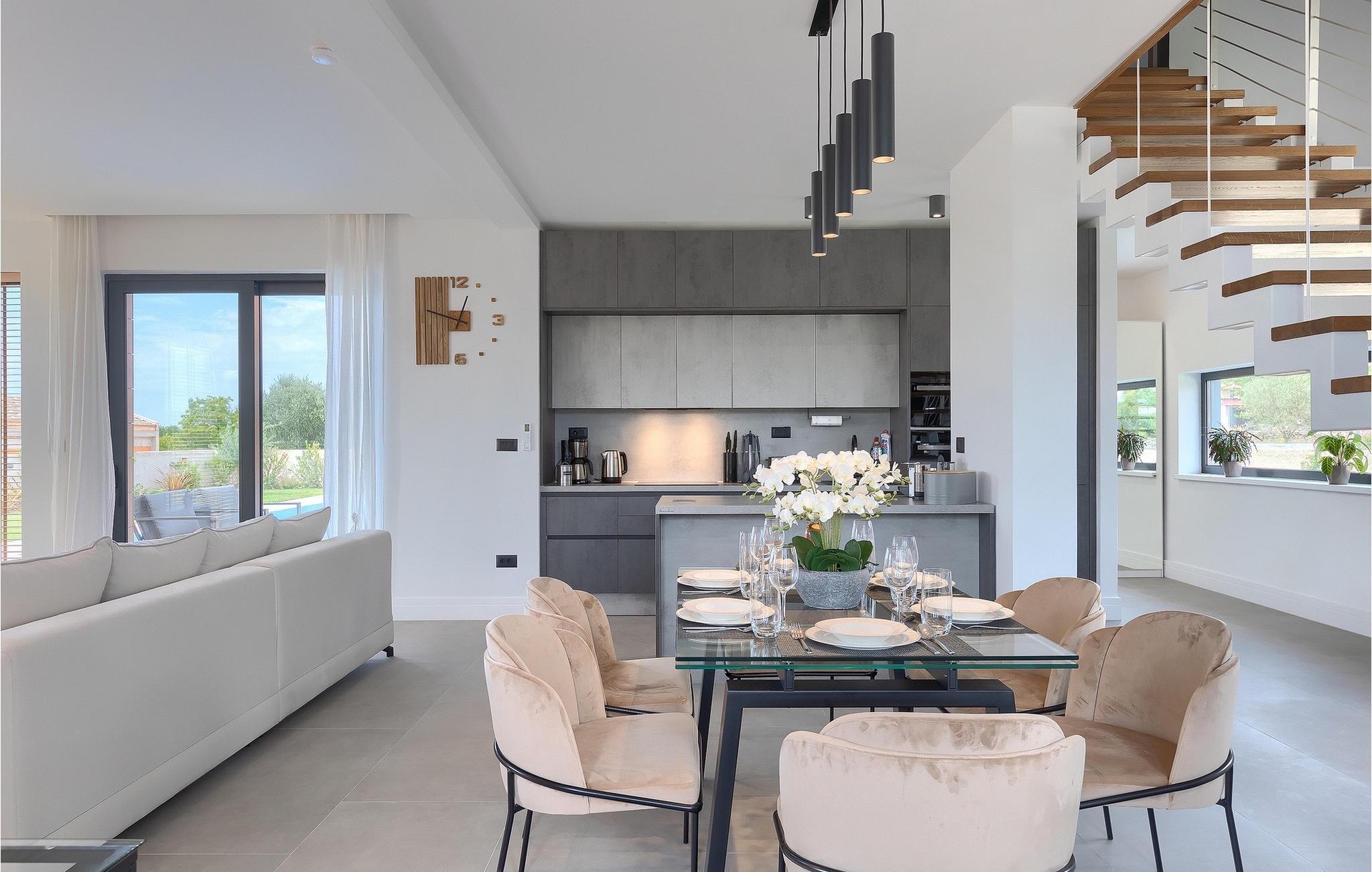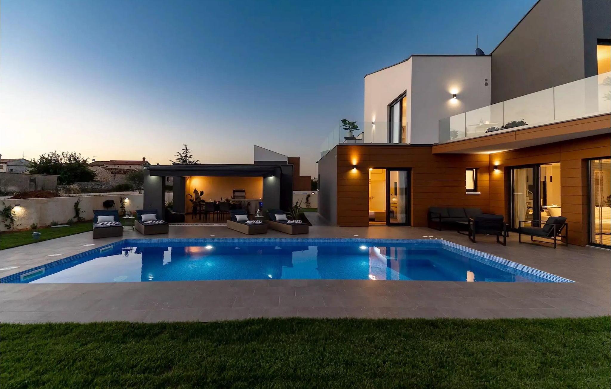 Villa LiLa Sunshine er et sted, hvor luksus møder ro. Det er en sofistikeret og moderne villa, der vil tilbyde dig et luksuriøst ophold i Istriens indre land. Villaen er beliggende i en rolig beliggenhed i Orbanici, kun en kort køretur fra Pula og havet. Villa LiLa Sunshine er velegnet til op til 6 gæster i 3 soveværelser med kingsize senge og eget badeværelse. Alle værelser har aircondition og tv samt udgang til terrasse eller balkon. En lille under 3 år kan også indkvarteres i en barneseng. Det fuldt udstyrede køkken og den luksuriøse stue ligger i stueetagen og byder på en frisk og moderne atmosfære. Udenfor venter en privat pool, gasgrill og udendørs spiseplads, alt sammen omgivet af grønne områder i en rolig beliggenhed. Med et alarmsystem i huset er din ro i sindet lige så vigtig som din komfort. Nyd den istriske sol på fire liggestole, og lad hvert øjeblik være et mesterværk af komfort og sindsro. Den vidunderlige Villa LiLa Sunshine er beliggende i det centrale Istrien, i Orbanici, en lille, charmerende by. Her kan du opleve det fortryllede istriske bagland med dets smukke natur og gastronomiske specialiteter som ost, prosciutto skinke, honning og trøfler. I nærheden af Fazana er de første strande. Med færge eller båd kan du nemt rejse til den storslåede ø Brijuni og dens nationalpark herfra. Den største turistdestination i området er Pula, som byder på et fantastisk amfiteater samt en række restauranter, barer og et pulserende natteliv. Besøg middelalderbyer som Svetvincenat, Vodnjan og Bale, som er kendt for deres maleriske pladser, snoede gyder, taverner, butikker og pubber. Temperaturen i den opvarmede swimmingpool er afhængig af eksterne faktorer, herunder vejrforhold, og som sådan kan temperaturen på vandet ikke garanteres.