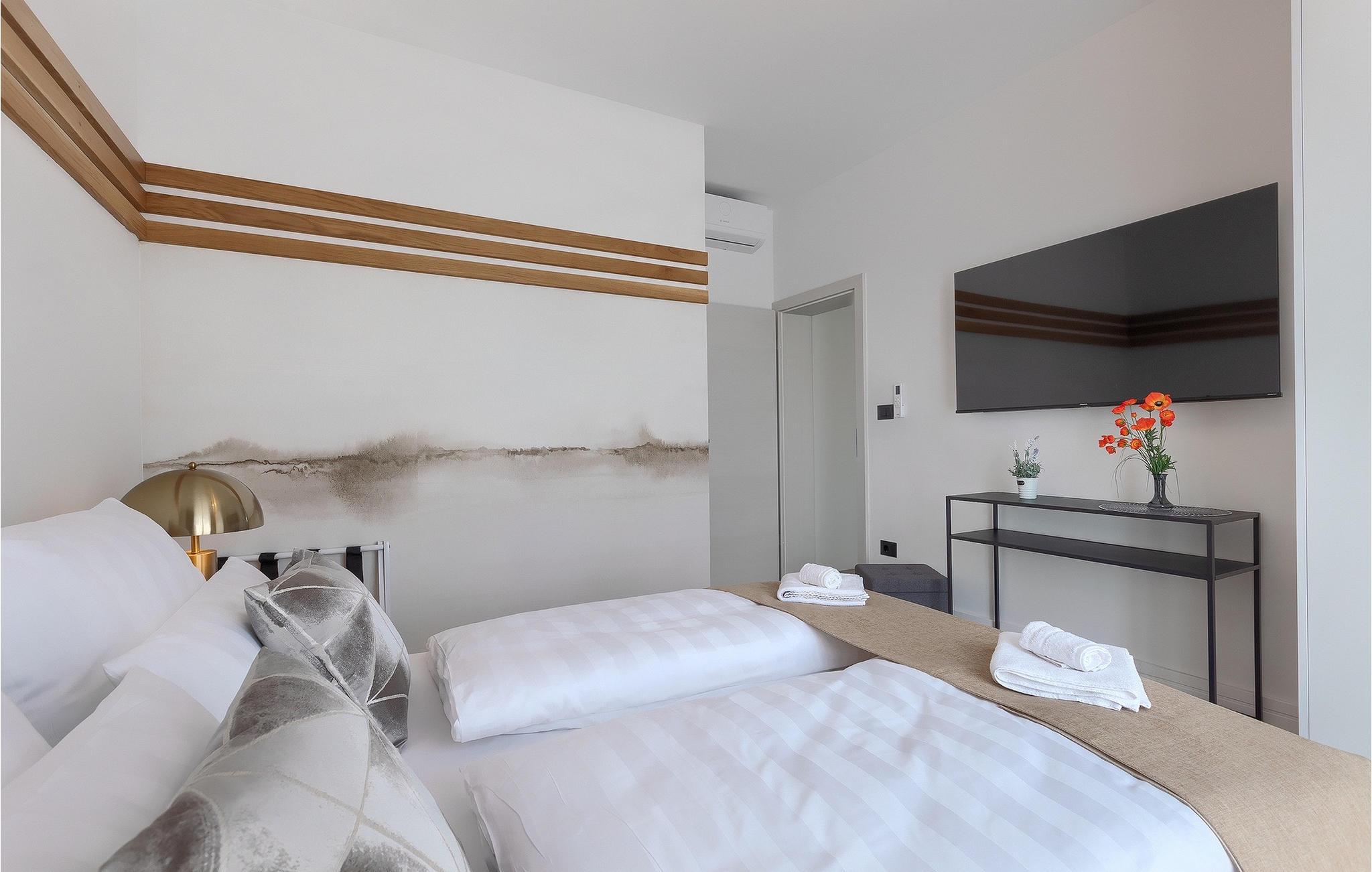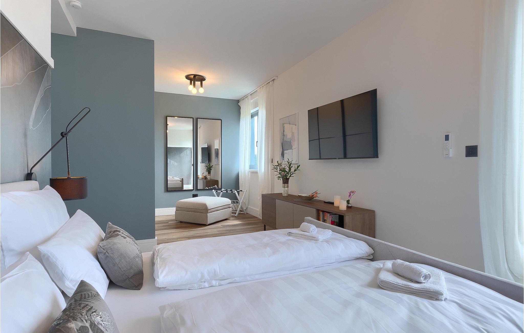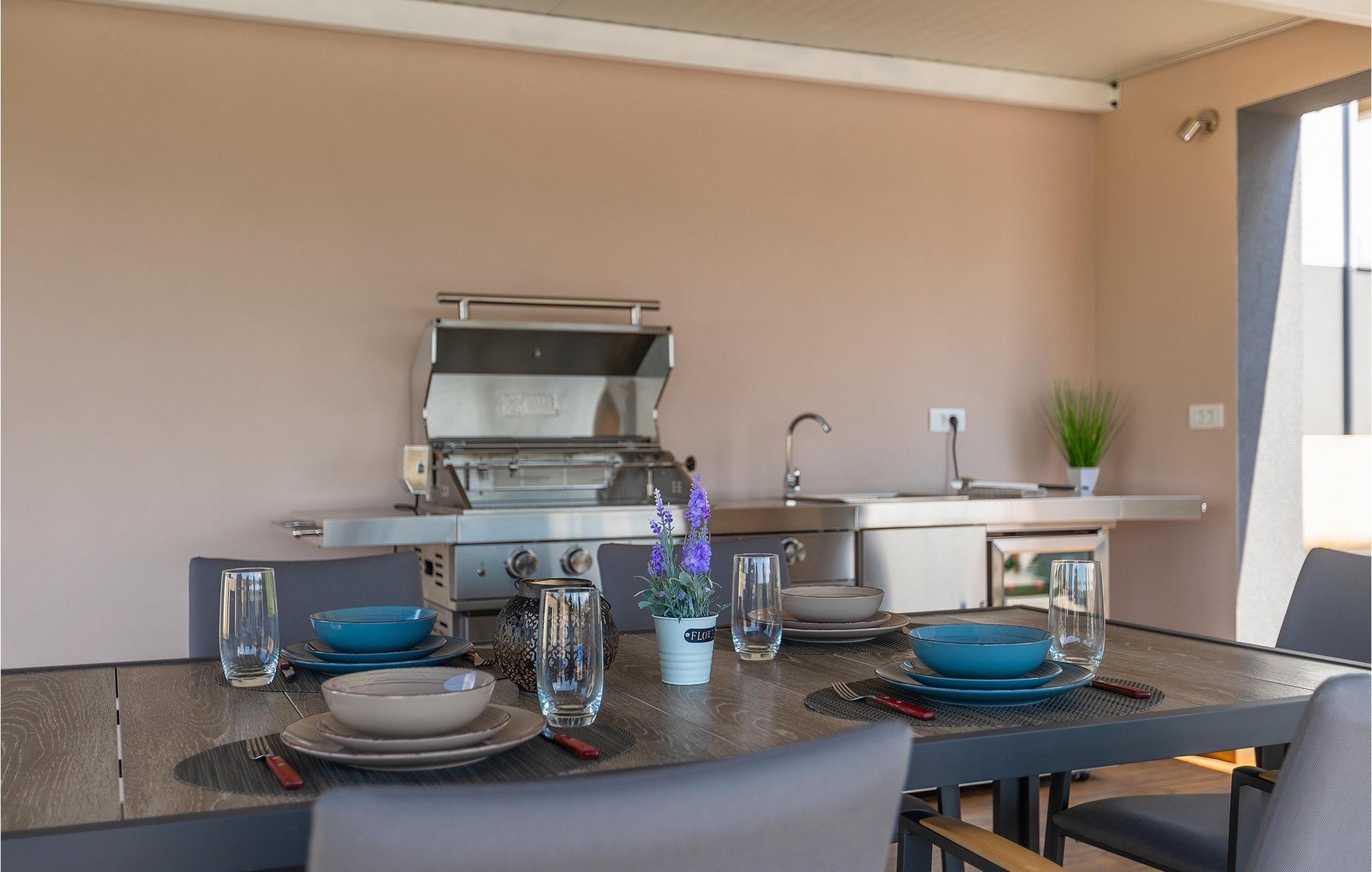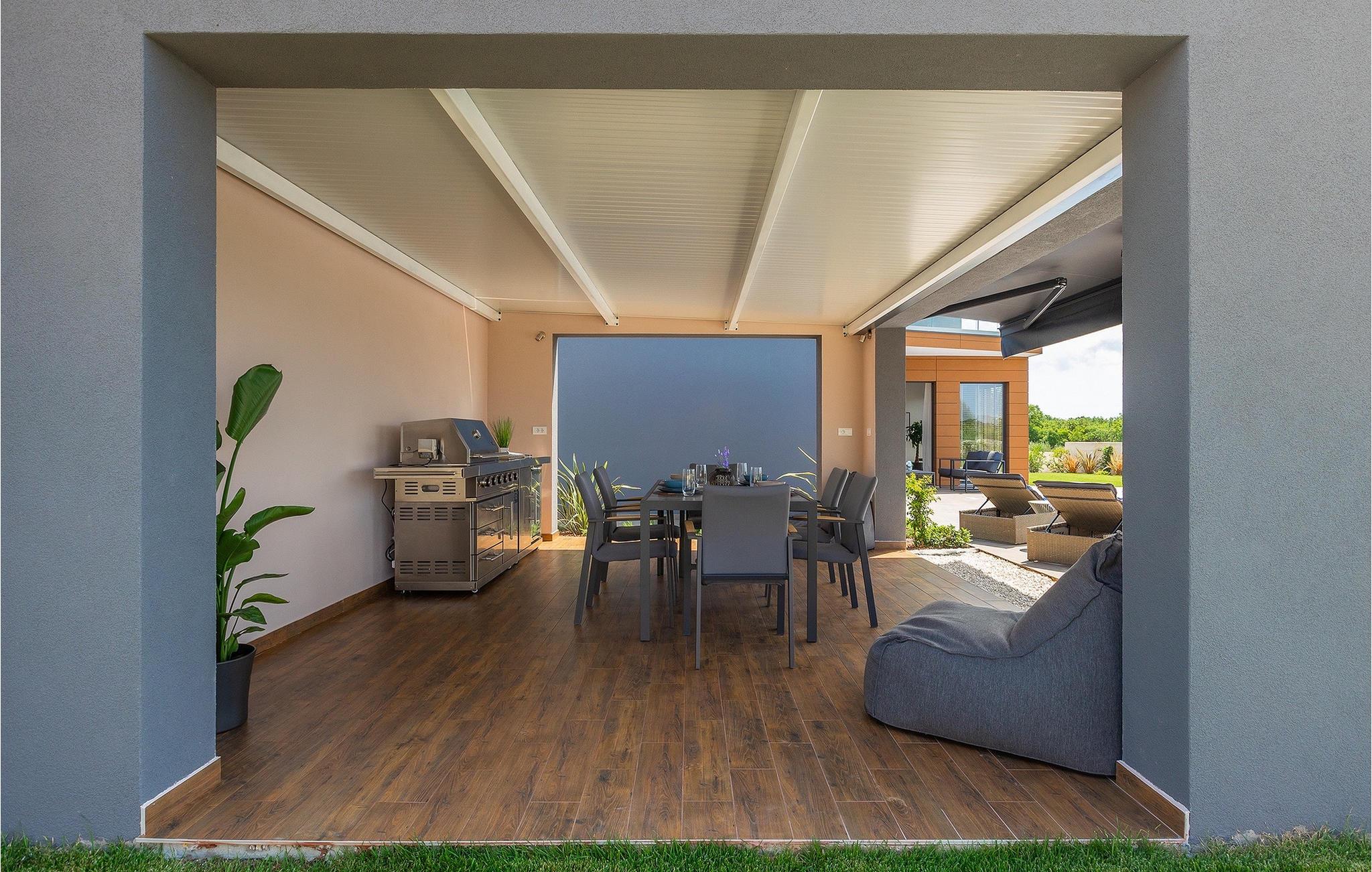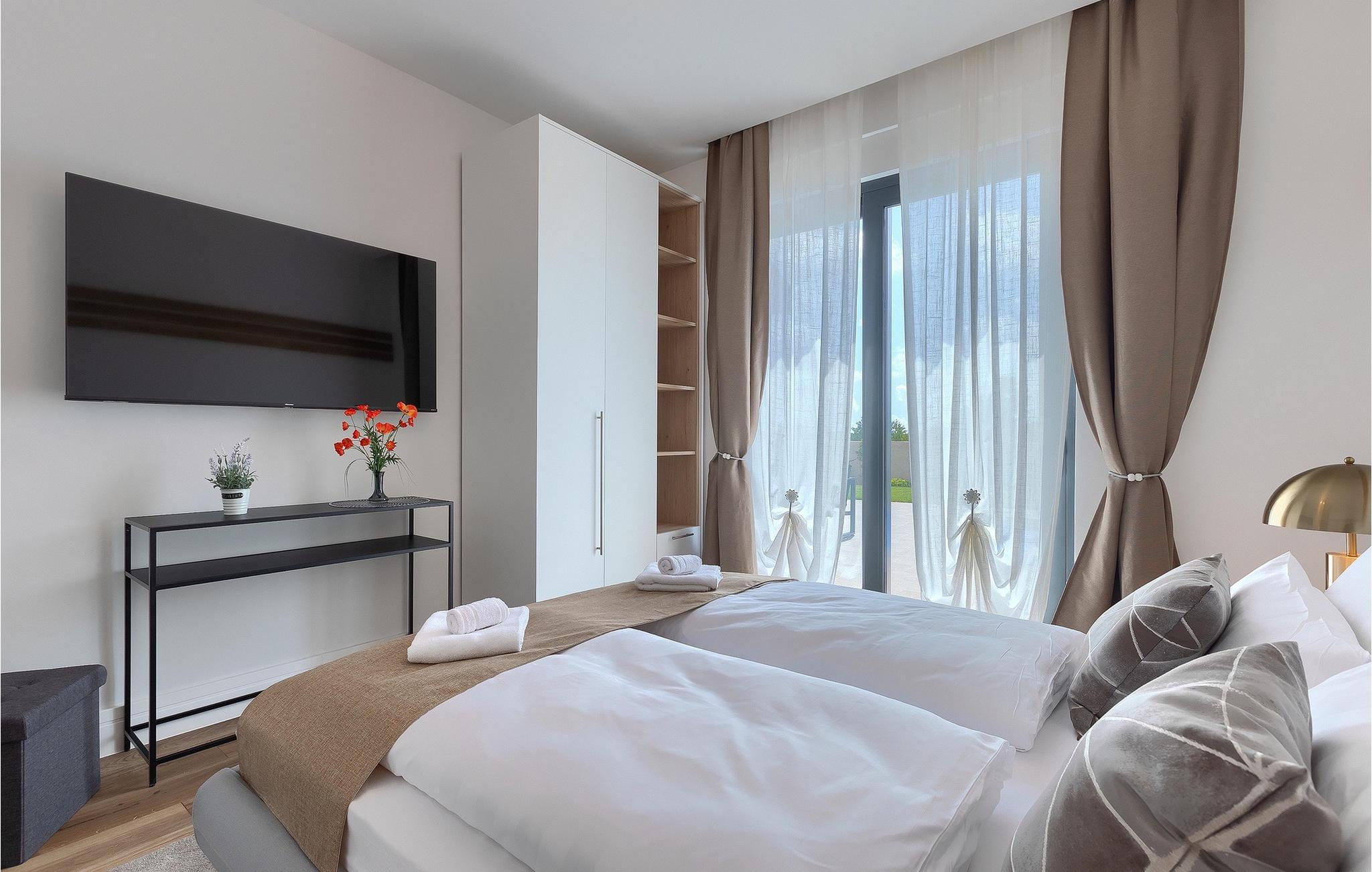 Villa LiLa Sunshine er et sted, hvor luksus møder ro. Det er en sofistikeret og moderne villa, der vil tilbyde dig et luksuriøst ophold i Istriens indre land. Villaen er beliggende i en rolig beliggenhed i Orbanici, kun en kort køretur fra Pula og havet. Villa LiLa Sunshine er velegnet til op til 6 gæster i 3 soveværelser med kingsize senge og eget badeværelse. Alle værelser har aircondition og tv samt udgang til terrasse eller balkon. En lille under 3 år kan også indkvarteres i en barneseng. Det fuldt udstyrede køkken og den luksuriøse stue ligger i stueetagen og byder på en frisk og moderne atmosfære. Udenfor venter en privat pool, gasgrill og udendørs spiseplads, alt sammen omgivet af grønne områder i en rolig beliggenhed. Med et alarmsystem i huset er din ro i sindet lige så vigtig som din komfort. Nyd den istriske sol på fire liggestole, og lad hvert øjeblik være et mesterværk af komfort og sindsro. Den vidunderlige Villa LiLa Sunshine er beliggende i det centrale Istrien, i Orbanici, en lille, charmerende by. Her kan du opleve det fortryllede istriske bagland med dets smukke natur og gastronomiske specialiteter som ost, prosciutto skinke, honning og trøfler. I nærheden af Fazana er de første strande. Med færge eller båd kan du nemt rejse til den storslåede ø Brijuni og dens nationalpark herfra. Den største turistdestination i området er Pula, som byder på et fantastisk amfiteater samt en række restauranter, barer og et pulserende natteliv. Besøg middelalderbyer som Svetvincenat, Vodnjan og Bale, som er kendt for deres maleriske pladser, snoede gyder, taverner, butikker og pubber. Temperaturen i den opvarmede swimmingpool er afhængig af eksterne faktorer, herunder vejrforhold, og som sådan kan temperaturen på vandet ikke garanteres.