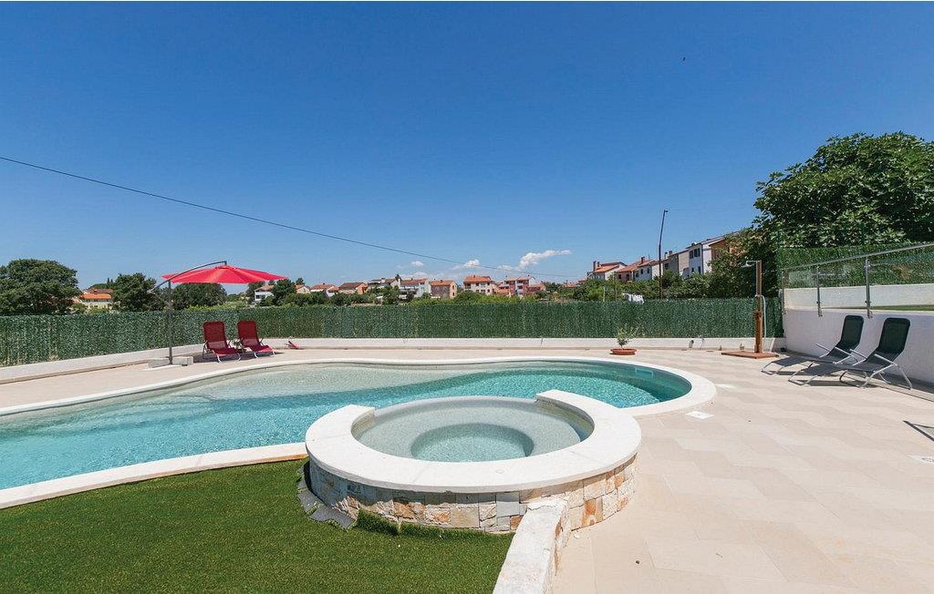 Dette rummelige feriehus ligger i Valbandon, på den berømte Fazana Riviera. I nærheden af huset finder du en fin restaurant, caffe bar og lille butik, mens det velkendte turistcenter Fazana kun ligger 3 km væk. House Sole har en indhegnet ejendom på 700 kvm, som dominerer en smuk, uregelmæssig pool med jacuzzi og overdækket sommerkøkken samt stor terrasse med bord og stole. To private parkeringspladser er også til gæsternes rådighed, samt to mere uden for ejendommen. Selve huset kan rumme op til 12 gæster i sine tre lejlighedsenheder. I kælderen er der et nyt og fuldt udstyret køkken med rummelig spisestue med pejs, et soveværelse med dobbeltseng og en bruser/toliette. I stueplan er der endnu et køkken, spiseplads og stue med udgang til altan, to dobbeltsenge soveværelser og to bad/toilet i entreen. På første sal er et soveværelse med dobbeltseng med aircondition og et soveværelse med to separate senge også med aircondition. Alle soveværelser i stueetagen og første sal har adgang til den rummelige terrasse/altan. Bemærk venligst, at denne ejendom ikke accepterer ungdomsgrupper eller polterabends. En ungdomsgruppe på denne ejendom er en gruppe bestående af personer på 26 år eller derunder. Book ikke denne ejendom, hvis du er en ungdomsgruppe eller et polterabend, da din reservation vil blive afvist efter booking, hvilket kan omfatte ved ankomst til ejendommen eller under dit ophold, og du vil ikke blive refunderet.