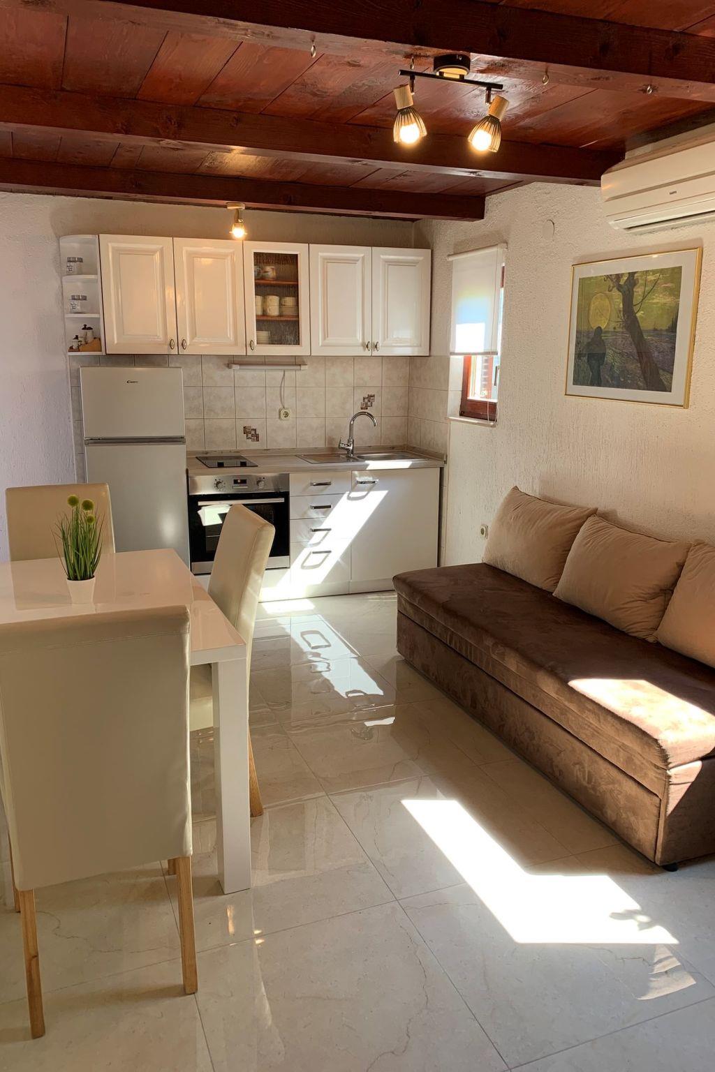In the close vicinity of Pula city centre, abundant with the most beautiful monuments, there is a suitable holiday home for you. This 30 square metre apartment is located on a large enclosed plot, far away from prying eyes. The apartment offers cozy ambience with a kitchen, all-in-one area dining and living room, and one double bedroom with a queen sized bed. Replace the hot summer nights with pleasant gatherings with your friends and family on a covered, fully furnished terrace. Pets are welcome!