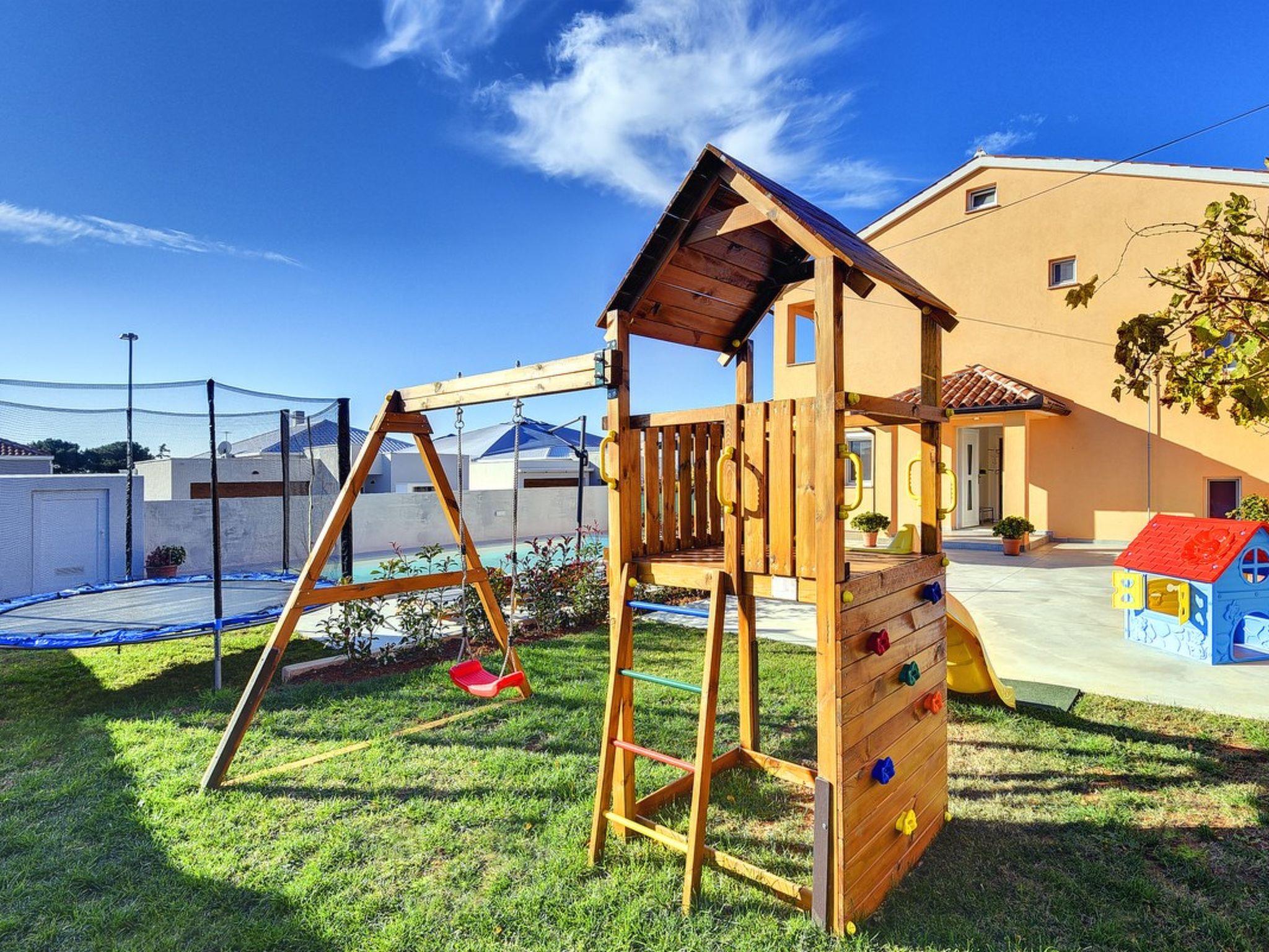 Villa Buzdonka is located not far from Pula, and offers comfortable accommodation for 10 people. Although a semi-detached house, it offers you complete privacy while relaxing on deck chairs by the pool, and children can play carefree in the garden where a slide, trampoline and swings await them. To make a family vacation complete, you can also bring your pet. Villa Buzdonka spreads over two floors and on the ground floor you will find a spacious living room with kitchen and exit to the terrace as well as one bedroom, on the upper floor there are three more bedrooms. Book your vacation in Villa Buzdonka as soon as possible and spend a well-deserved vacation in Pula with many opportunities to explore the surrounding places.
