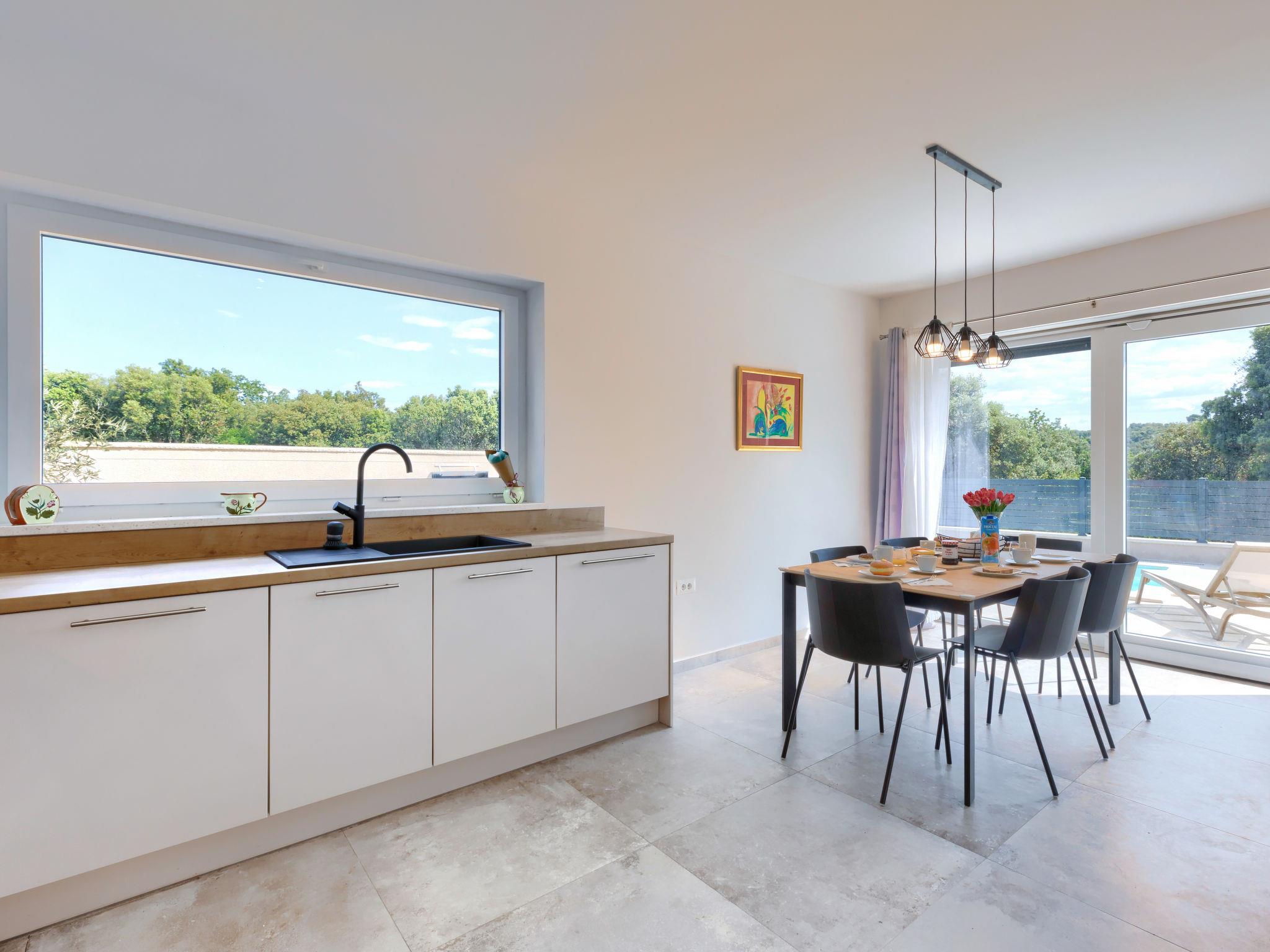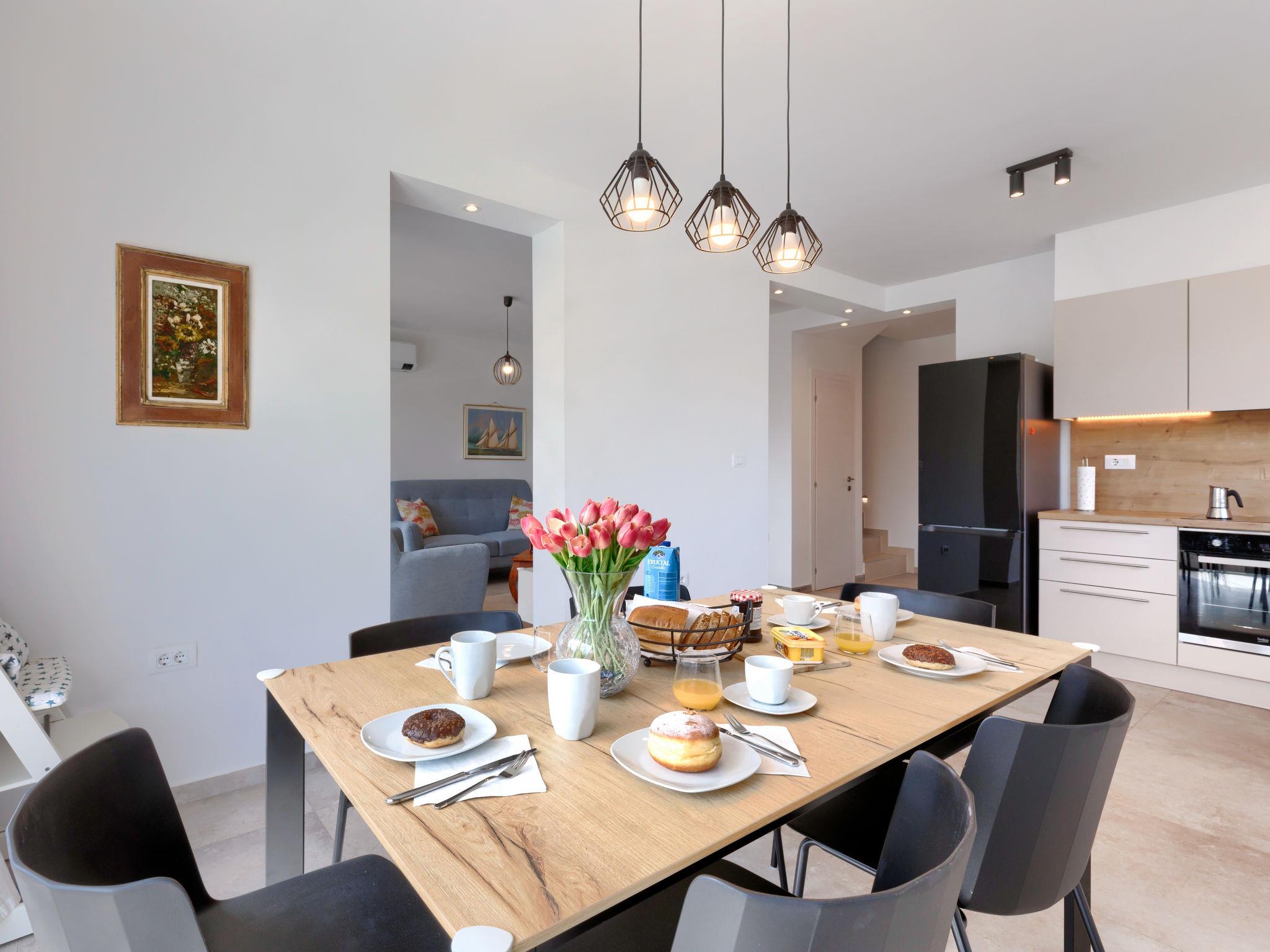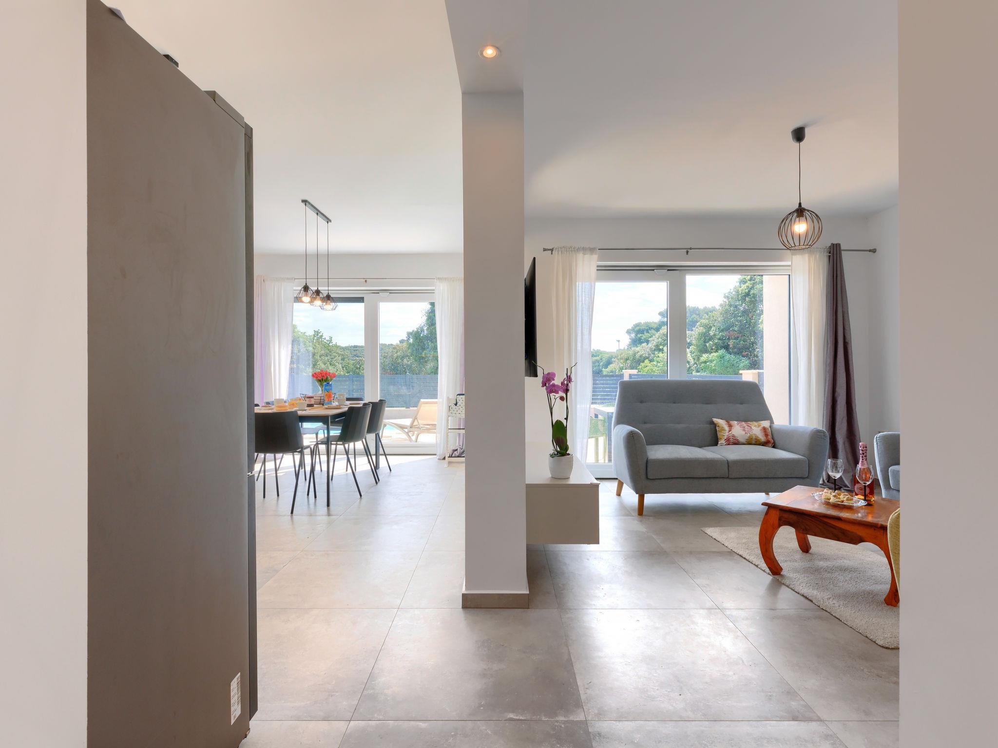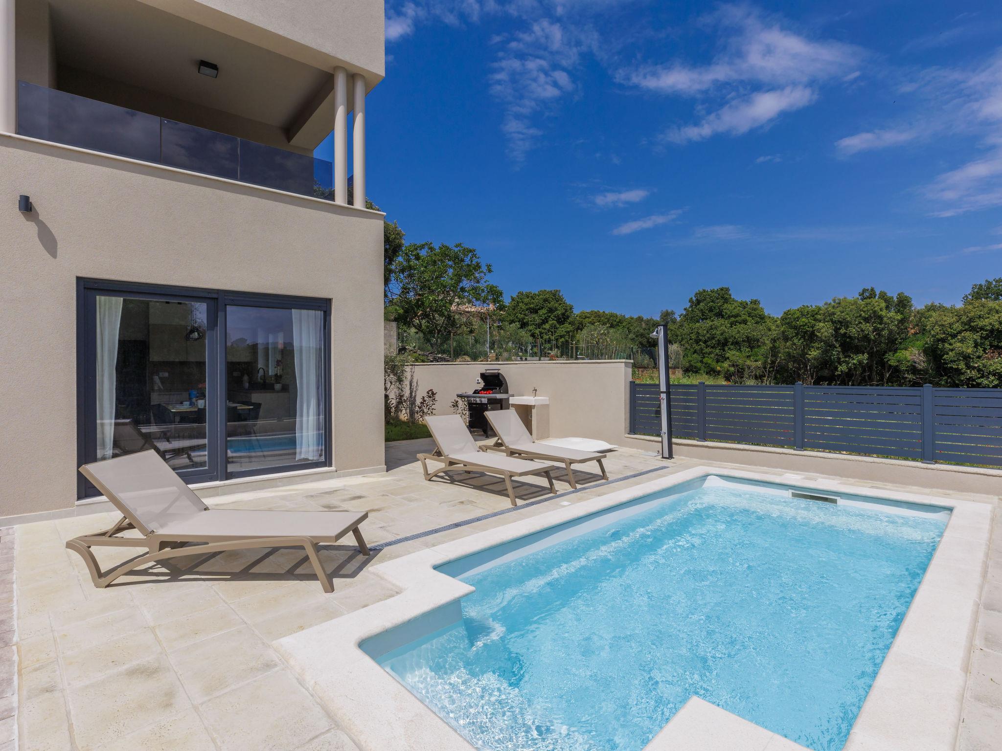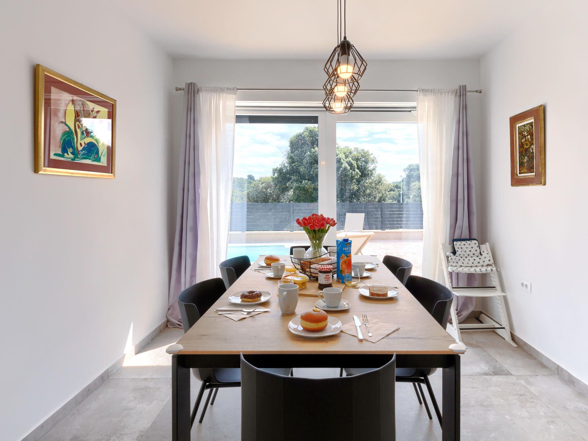 Semi-detached house "Villa Karlo". 4 km from the centre of Pula, in a sunny position, 900 m from the sea. Private: property 300 m2 (fenced), small garden with wildlife garden, swimming pool angular (6 x 3 m, depth 140 cm, seasonal availability: 01.May. - 15.Oct.) with internal staircase. Outdoor shower, barbecue. In the house: internet access, table tennis, washing machine. Motor access (50 m via unmade road). Parking (for 2 cars) at the house on the premises. Shop 100 m, supermarket 3 km, restaurant 150 m, bus stop 260 m, pebble beach, rocky beach 900 m. Surf school 9 km, tennis 9 km, riding stable 9 km, walking paths from the house 100 m, cycle lane 150 m. The owner does not accept any youth groups.