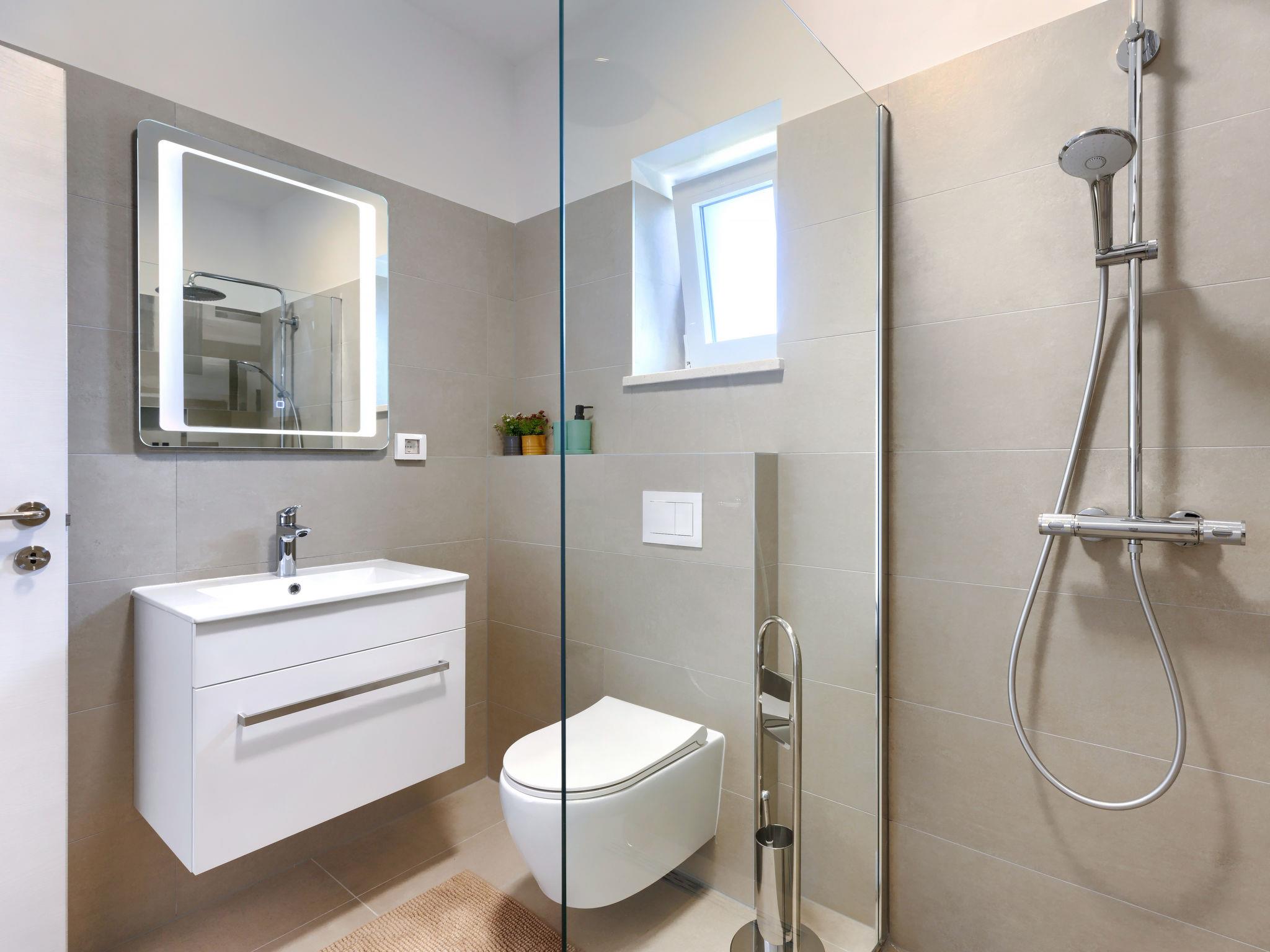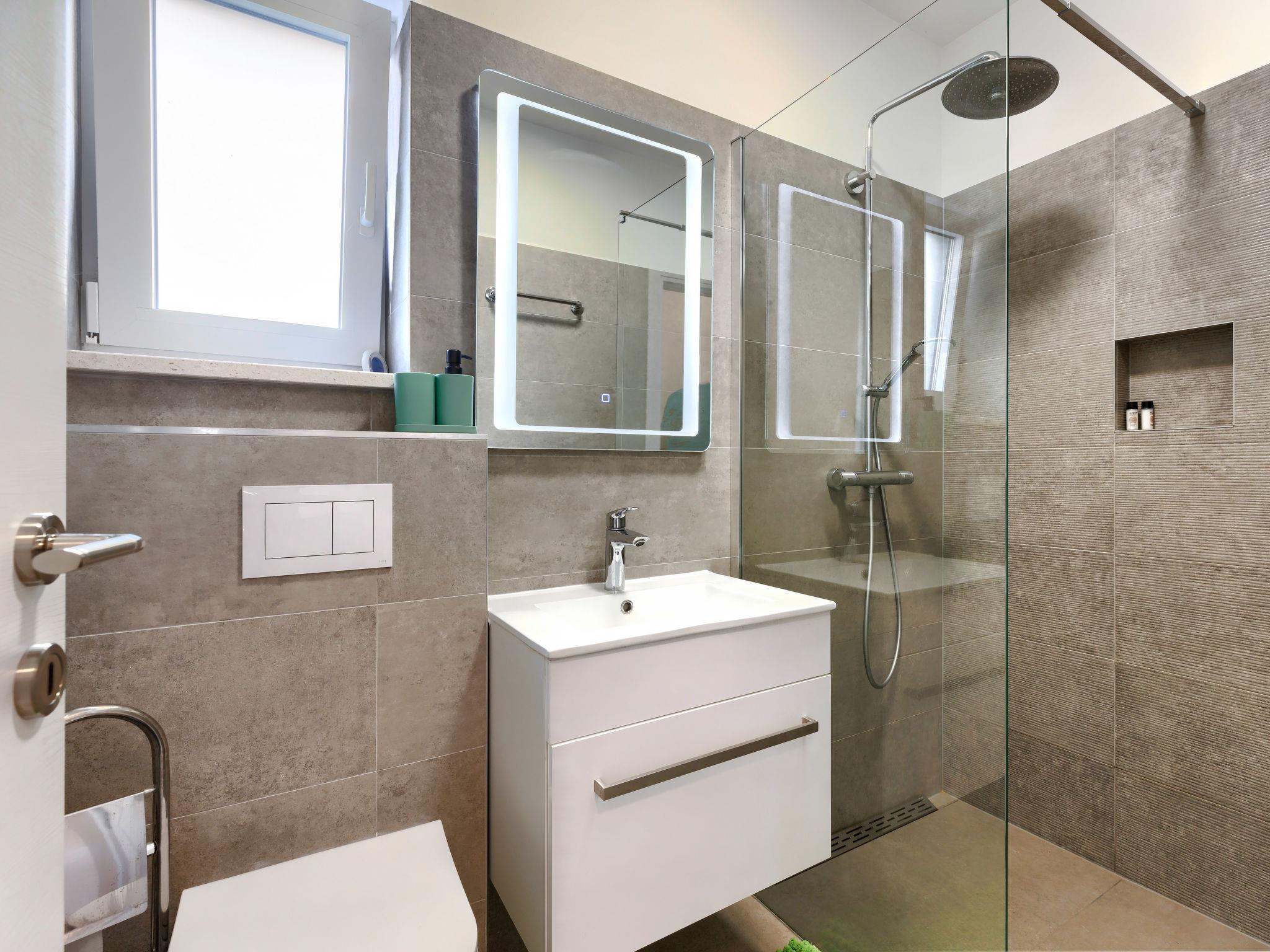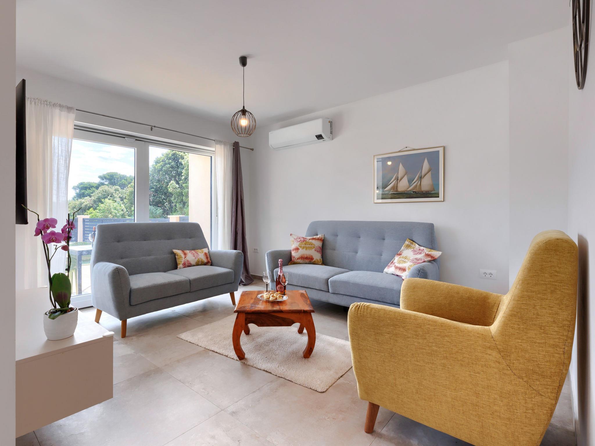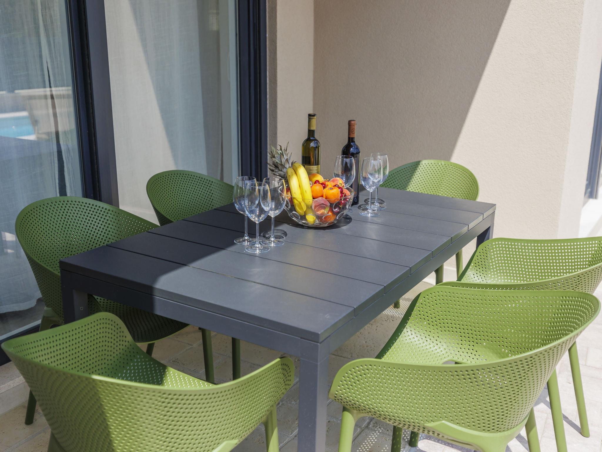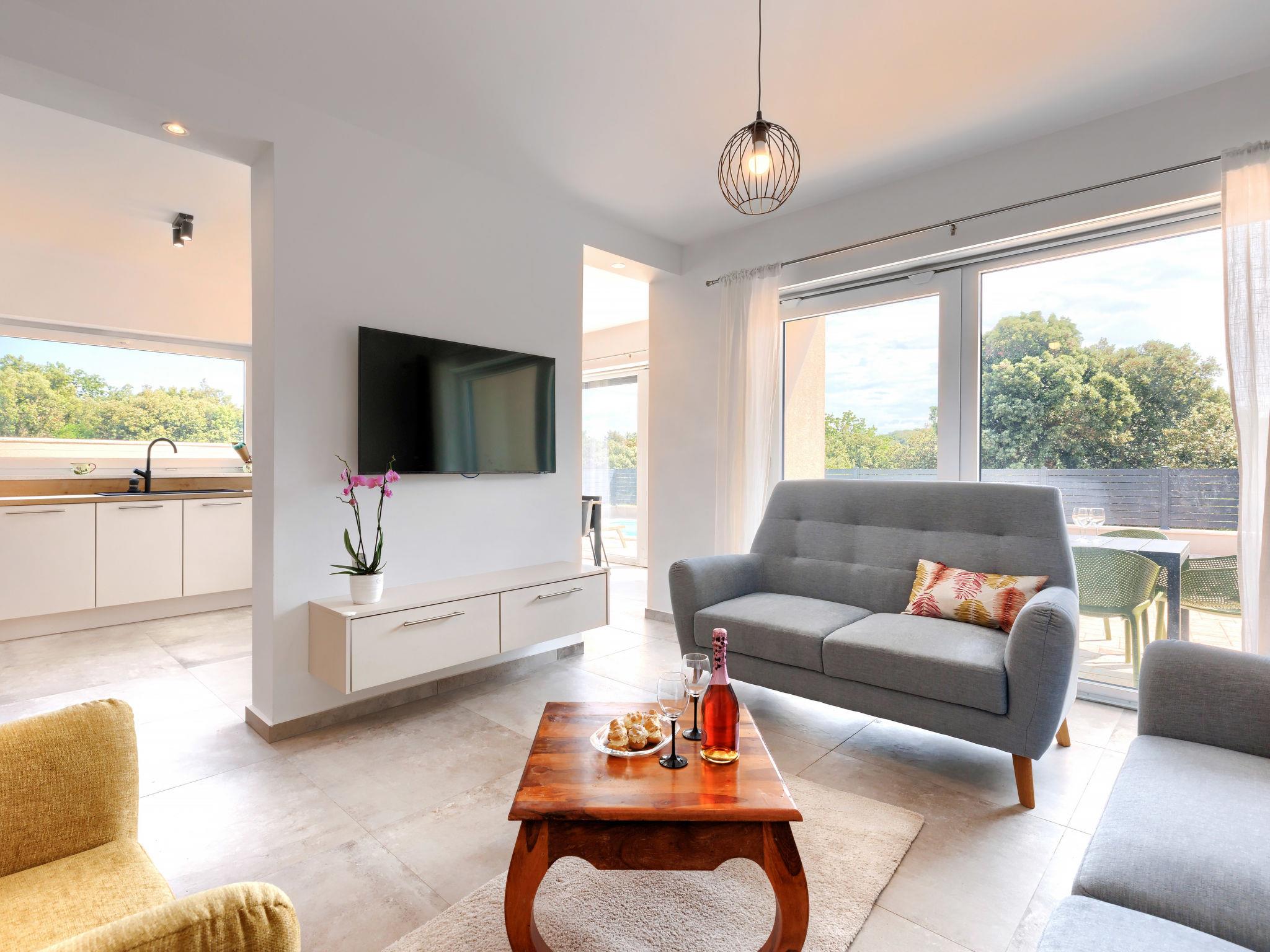 Semi-detached house "Villa Karlo". 4 km from the centre of Pula, in a sunny position, 900 m from the sea. Private: property 300 m2 (fenced), small garden with wildlife garden, swimming pool angular (6 x 3 m, depth 140 cm, seasonal availability: 01.May. - 15.Oct.) with internal staircase. Outdoor shower, barbecue. In the house: internet access, table tennis, washing machine. Motor access (50 m via unmade road). Parking (for 2 cars) at the house on the premises. Shop 100 m, supermarket 3 km, restaurant 150 m, bus stop 260 m, pebble beach, rocky beach 900 m. Surf school 9 km, tennis 9 km, riding stable 9 km, walking paths from the house 100 m, cycle lane 150 m. The owner does not accept any youth groups.