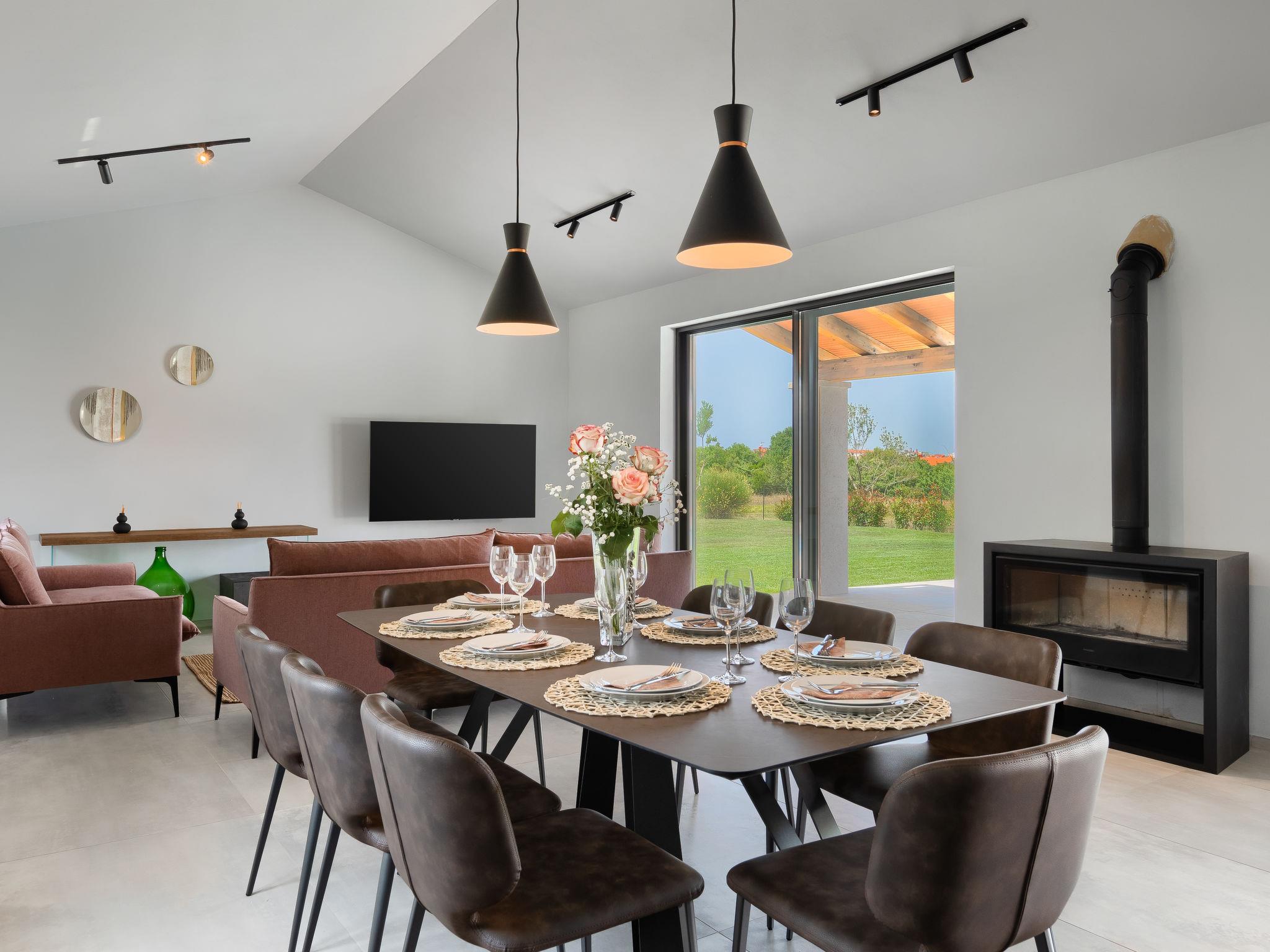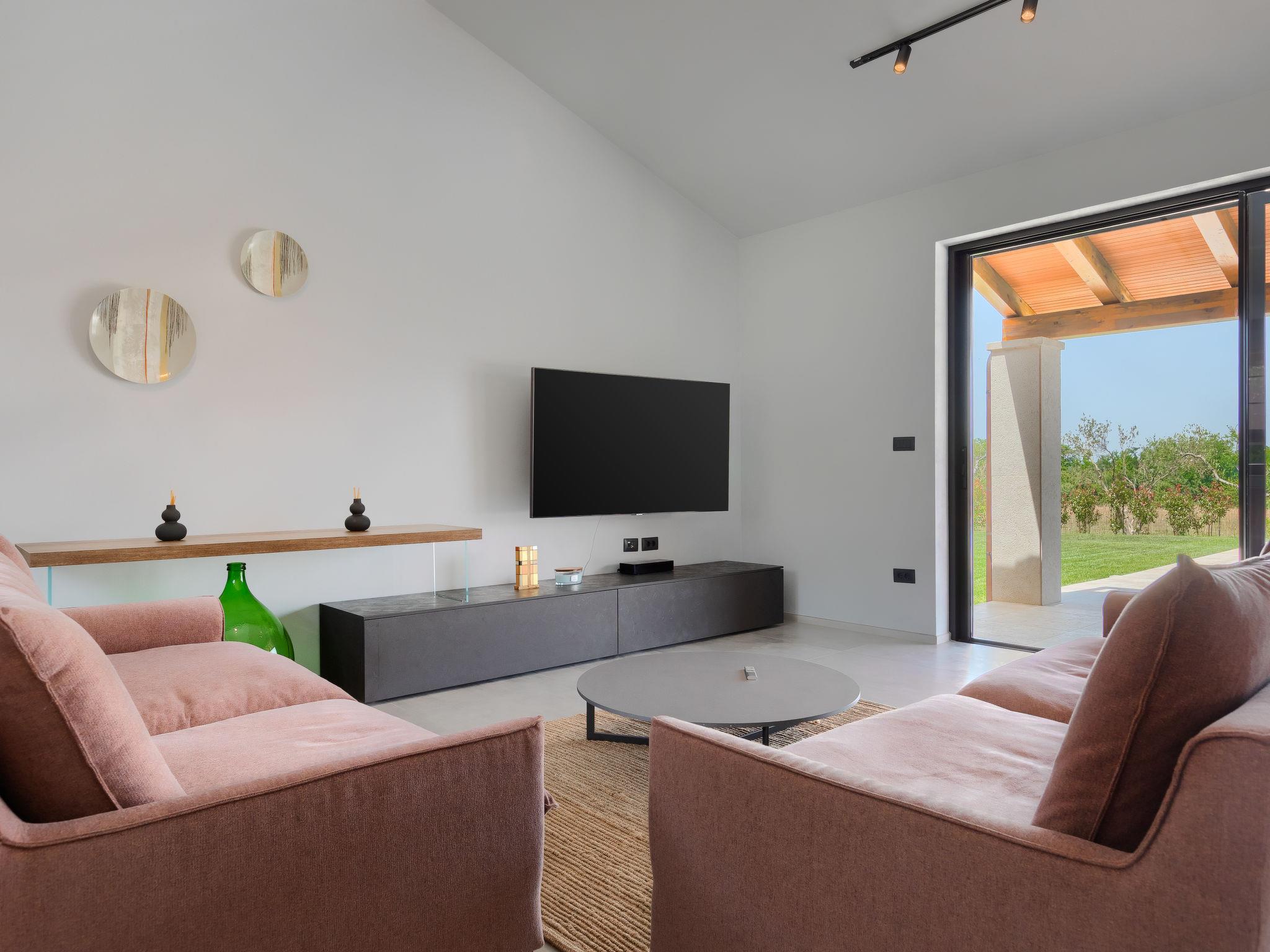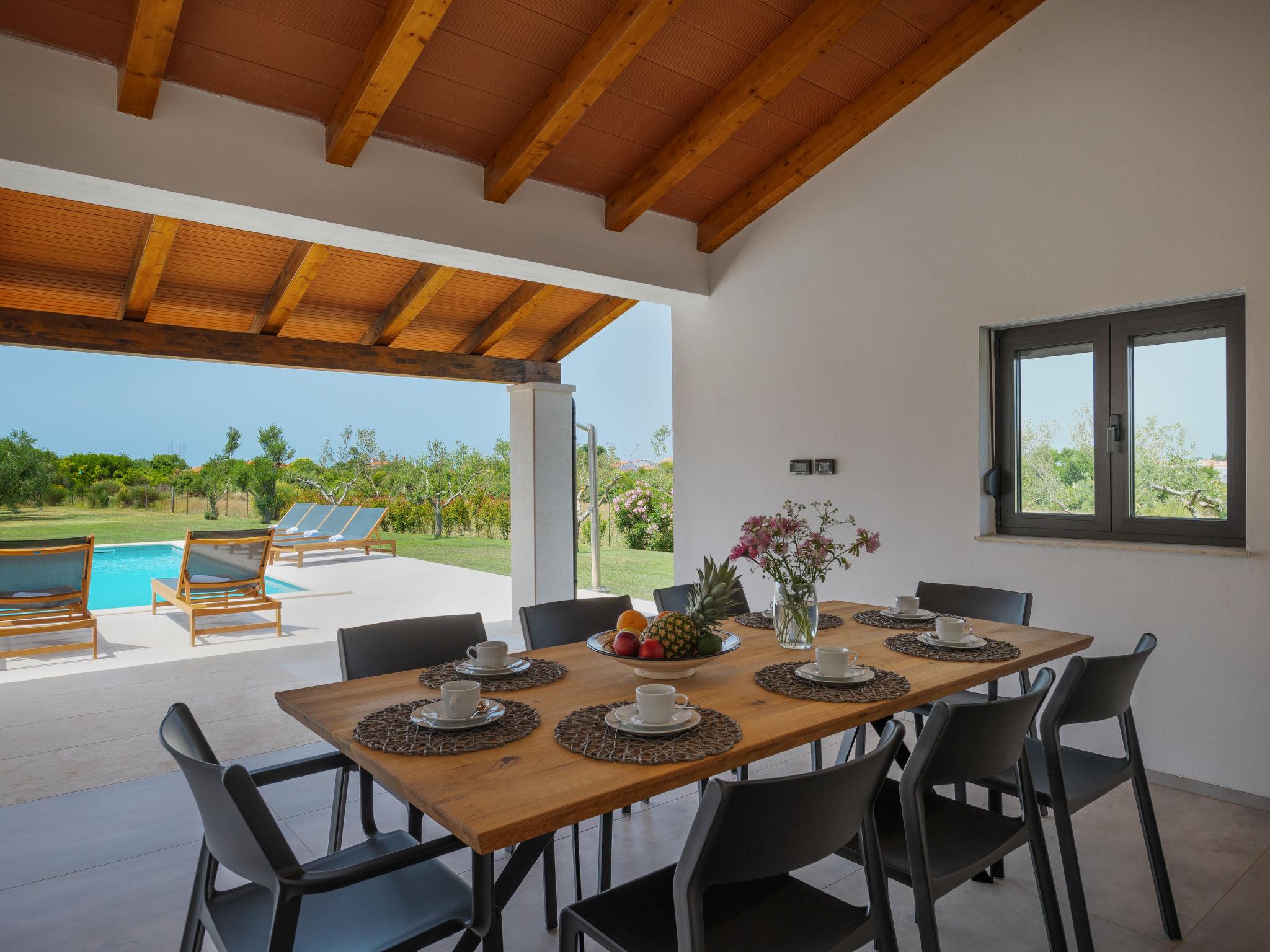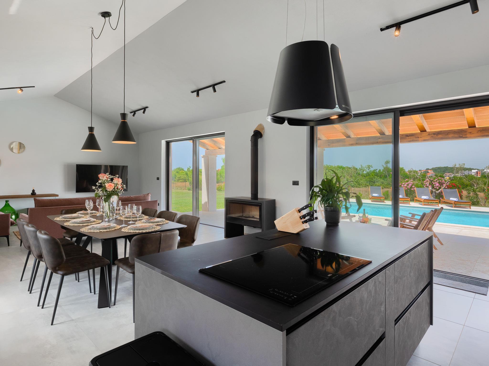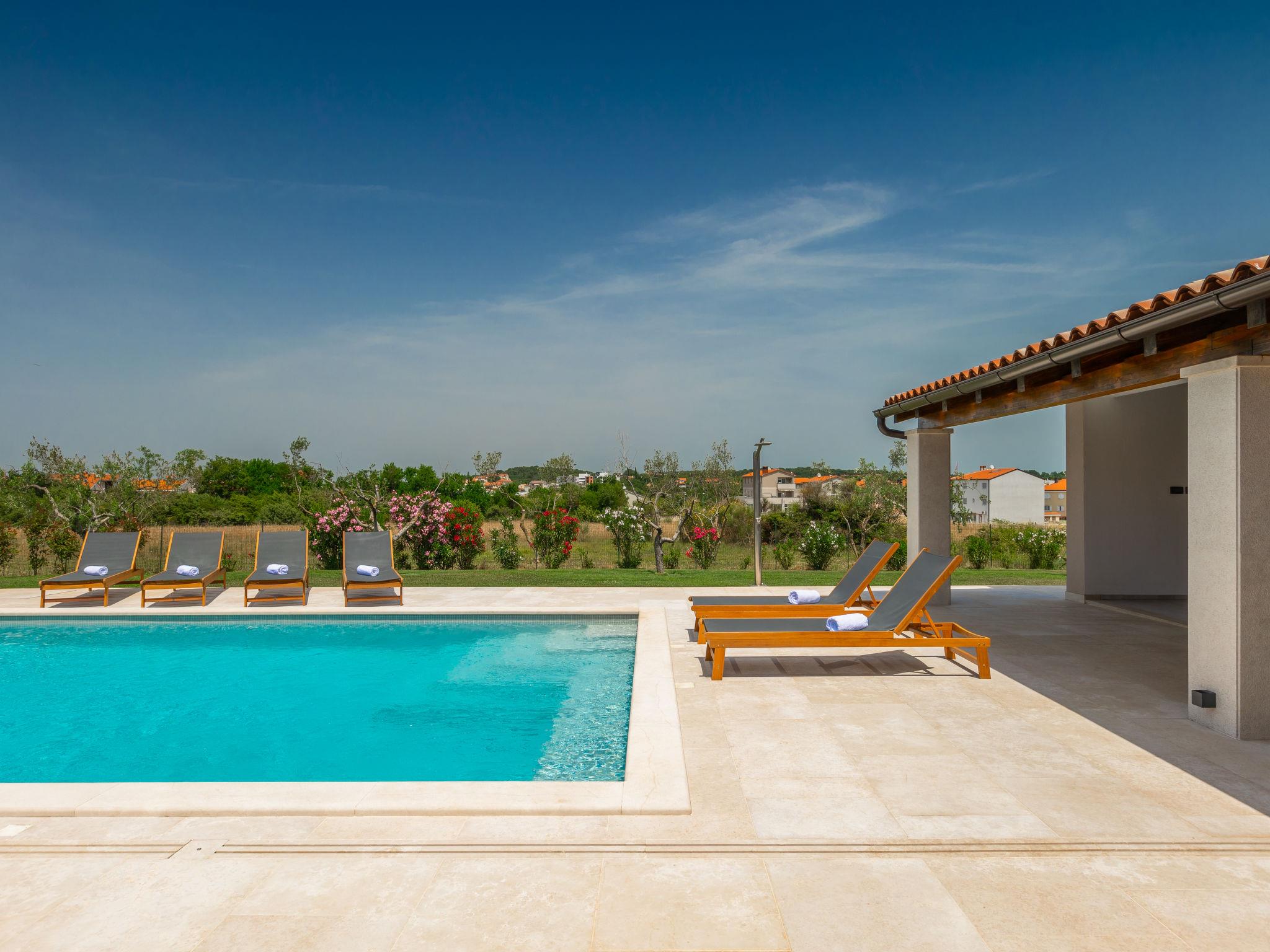 Modern, luxurious villa "Marialba". 3 km from the centre of Pula, 3.4 km from the sea, 3.4 km from the beach. Private: property 3'482 m2 (fenced), beautiful garden to relax, swimming pool angular (9 x 5 m, 45 m2, depth 135 cm, seasonal availability: 01.May. - 01.Oct.) with internal staircase. Shower/WC in the pool area, hot tub, terrace (20 m2), garden furniture, barbecue, barbecue house. In the house: internet access, air conditioning, washing machine. Parking (for 3 cars) at the house on the premises. Grocery 450 m, shopping centre 3 km, restaurant 1 km, bus stop 120 m, pebble beach 3.4 km, rocky beach 3.4 km. Groups of teenagers on request only. Please note: airfield 9.3 km from the property.