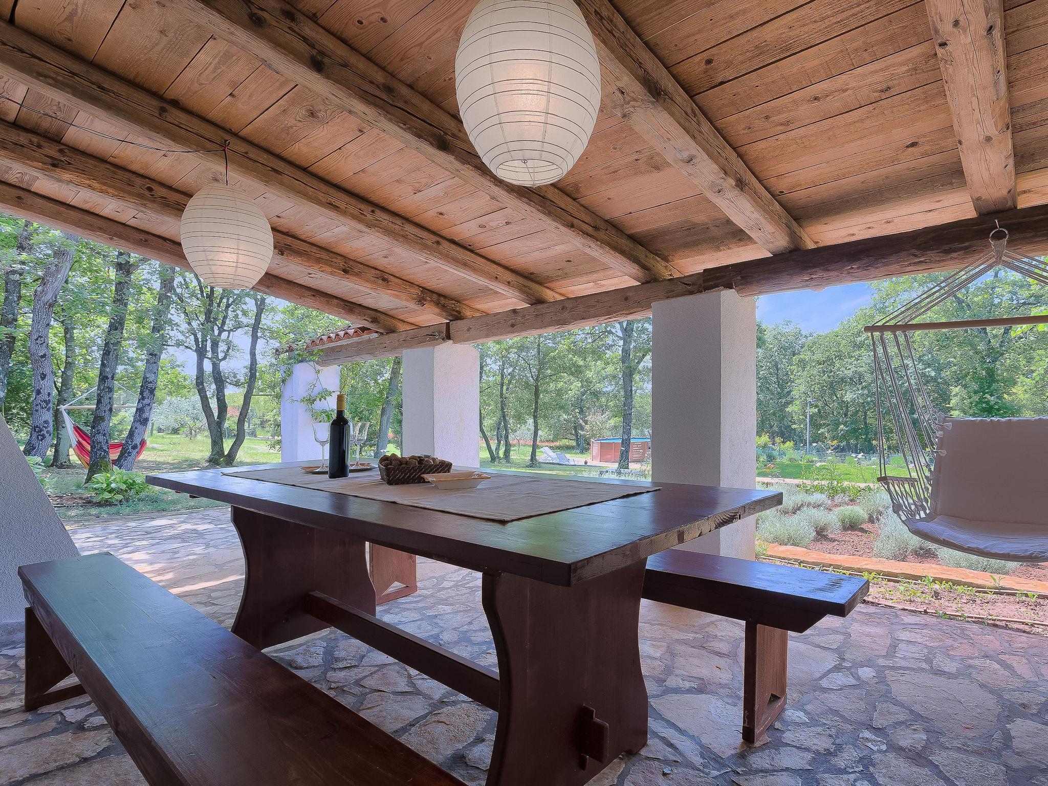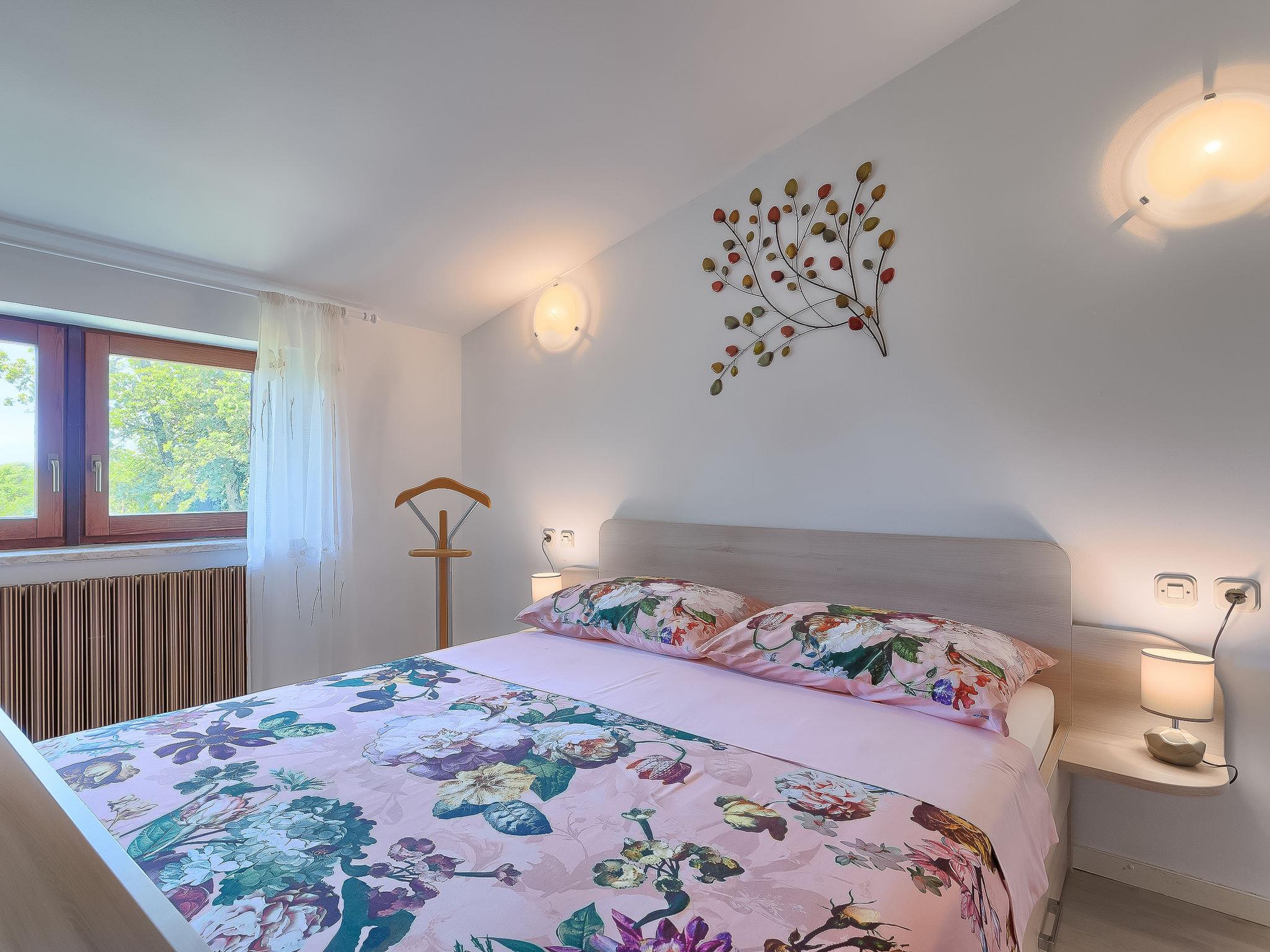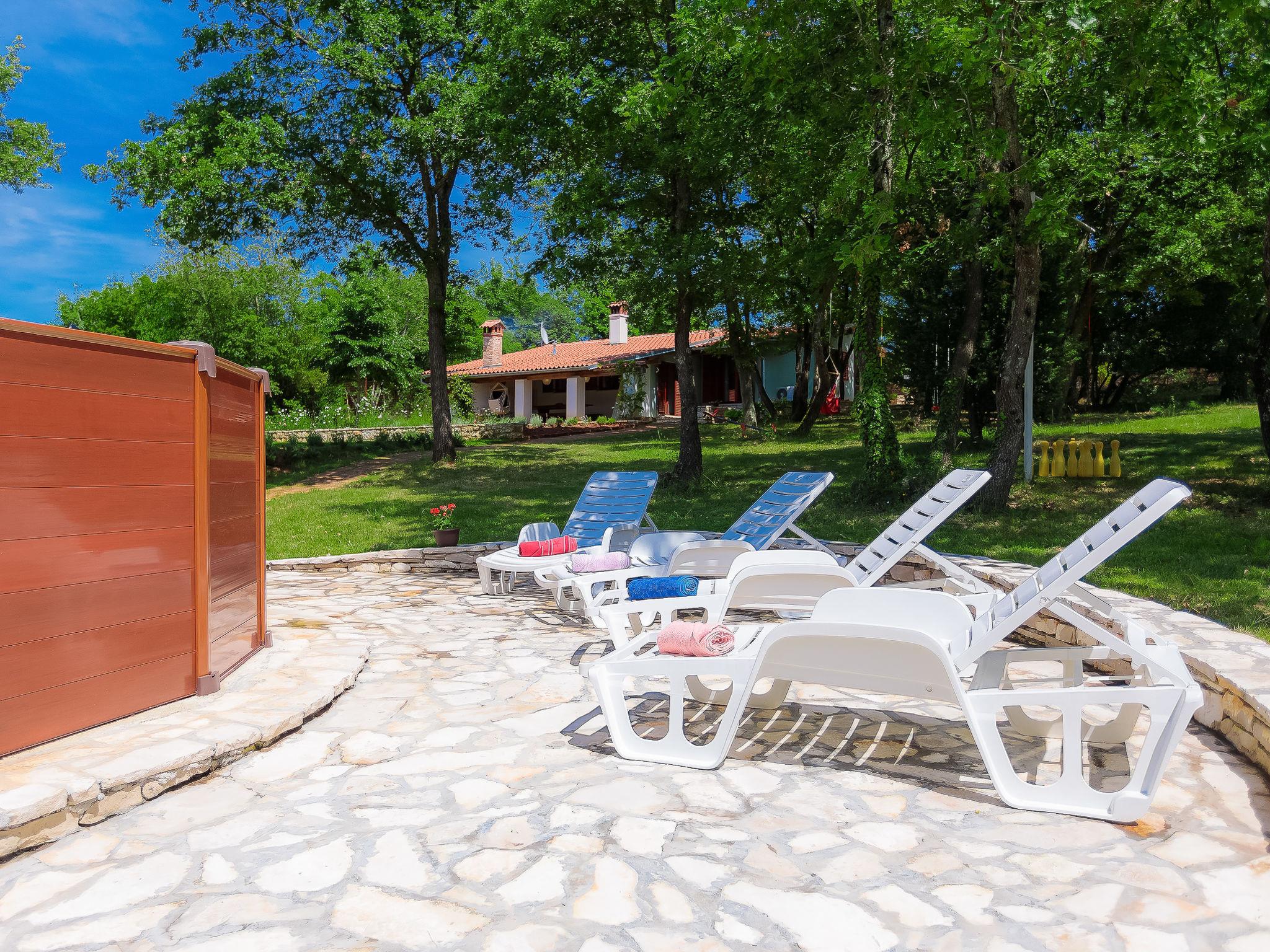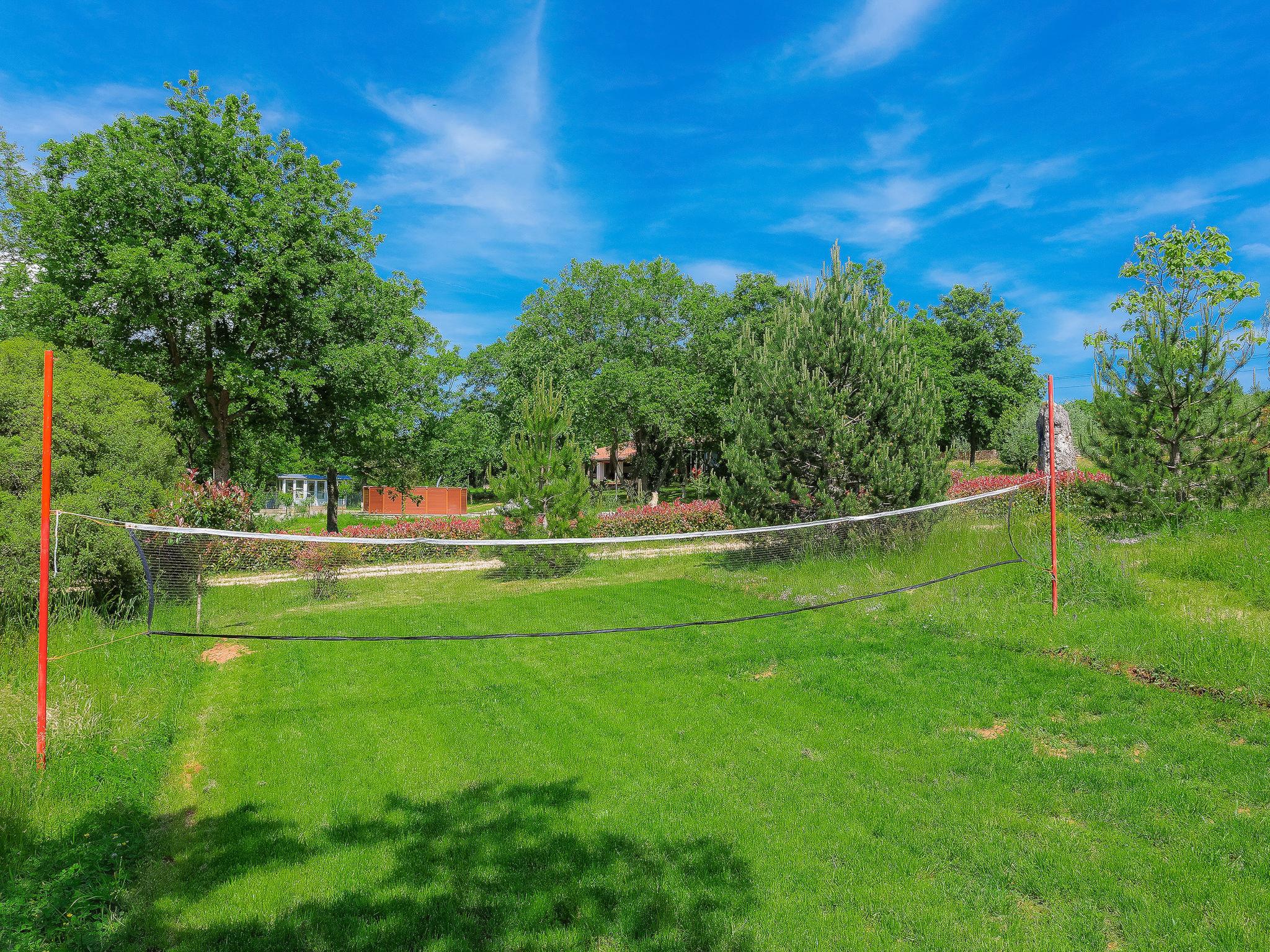 Single-family house "Country house D&D". In the hamlet Loborika 6.5 km from the centre of Pula, 6 km from the centre of Marcana, in a quiet, sunny position, 9 km from the sea, in the countryside. Private: property 6'000 m2, garden with lawn and wildlife garden, pond, swimming pool (above ground) (5 m diameter, depth 120 cm, seasonal availability: 04.May. - 12.Oct.). Outdoor shower, volleyball, badminton, barbecue, children's playground (swing). In the house: internet access, trampoline, washing machine. Breakfast possible on request (extra). Motor access to the house (200 m via unmade road). Parking (for 3 cars) at the house on the premises. Shop 1 km, supermarket 5 km, restaurant 1 km, café 1 km, bus stop 900 m, pebble beach 12 km, rocky beach 12 km. Tennis 15 km, riding stable 5 km, walking paths from the house 100 m, cycle lane 150 m. Nearby attractions: Amphitheater 8.5 km. Please note: animals in the neighbourhood. Available: ecological breeded vegetables (on request, included). Groups of teenagers are not allowed.