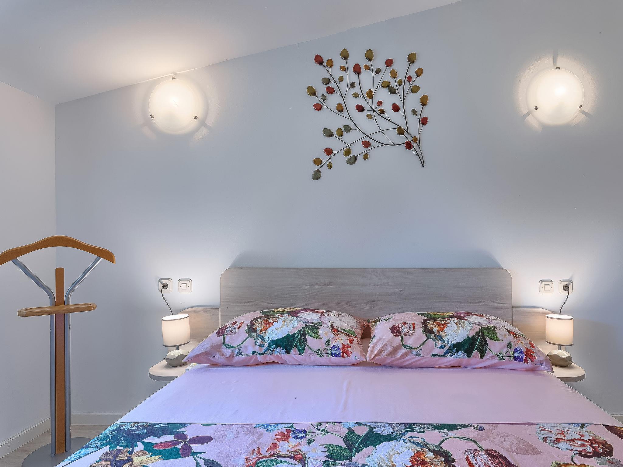 3-room house 140 m2. Living/dining room with 1 sofabed (160 cm, length 200 cm), open-hearth fireplace and satellite TV (flat screen), air conditioning. Exit to the garden. 2 rooms, each room with 1 french bed (160 cm, length 200 cm), air conditioning. Open kitchen (4 hot plates, oven, dishwasher, freezer, electric coffee machine). Exit to the terrace. Shower/WC. Terrace 20 m2, roofed. Terrace furniture, deck chairs. View of the garden. Facilities: hair dryer. Internet (WiFi, free). 1 small pet/ dog allowed.