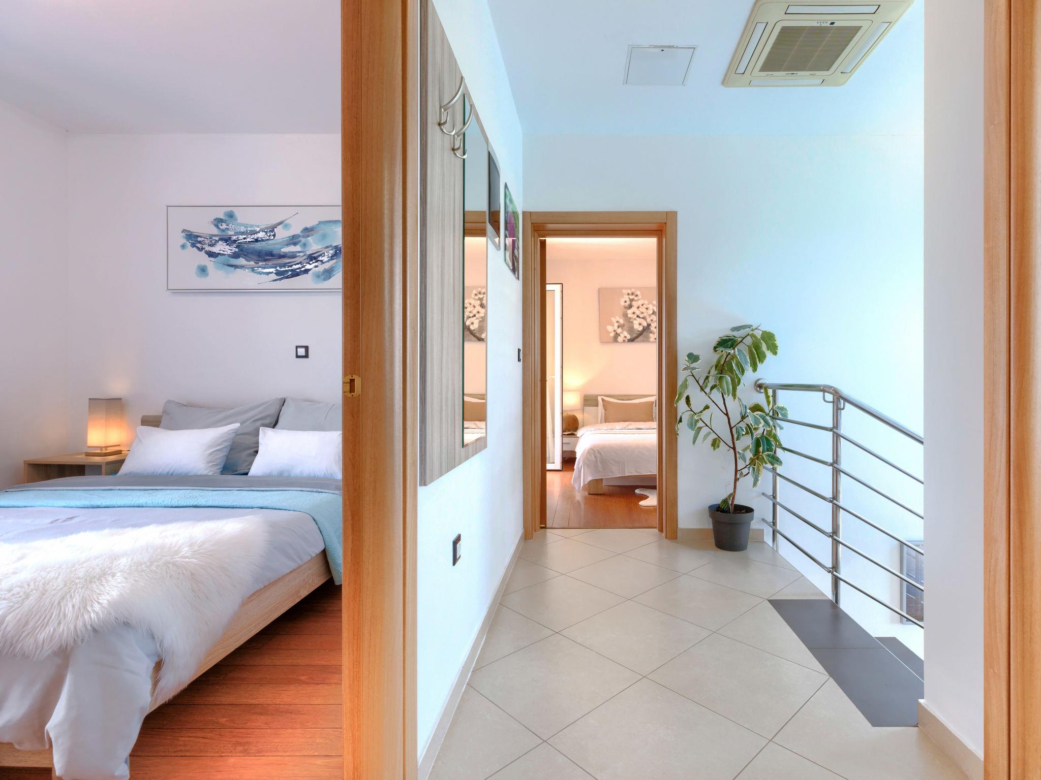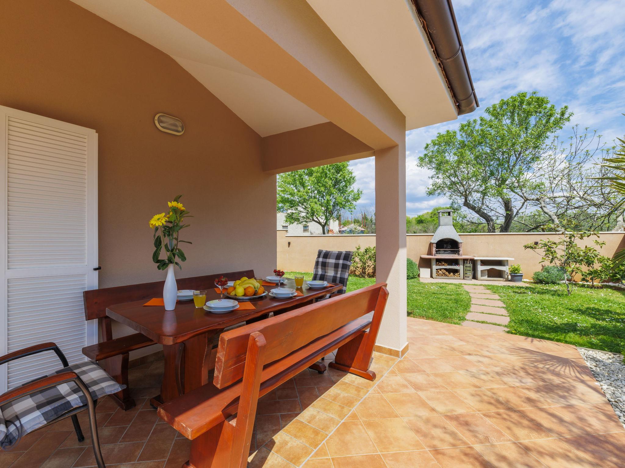 Beautiful single-family house "Villa Vesna", 2 storeys. In the hamlet Loborika 6 km from the centre of Pula, in a quiet, sunny position, 7 km from the sea. Private: property 500 m2 (fenced), small garden with lawn and wildlife garden, swimming pool angular (8 x 4 m, depth 140 cm, seasonal availability: 15.Apr. - 15.Oct.) with internal staircase. Outdoor shower, terrace (20 m2), garden furniture, barbecue (swing), pool maintenance by the owner/gardener. In the house: internet access, table football, trampoline, washing machine. Available: bicycles (4), children's bicycles (1). Parking (for 2 cars) at the house on the premises. E-charging station. Shop 250 m, restaurant 350 m, bus stop 250 m, sandy beach 11 km pebble beach 8 km. Surf school 13 km, tennis 11 km, riding stable 13 km, walking paths from the house 100 m, cycle lane 150 m. Nearby attractions: Amphitheater 7 km.