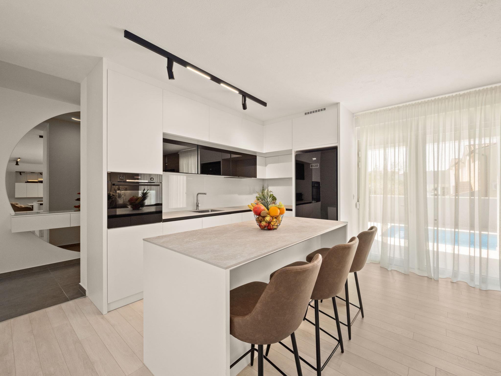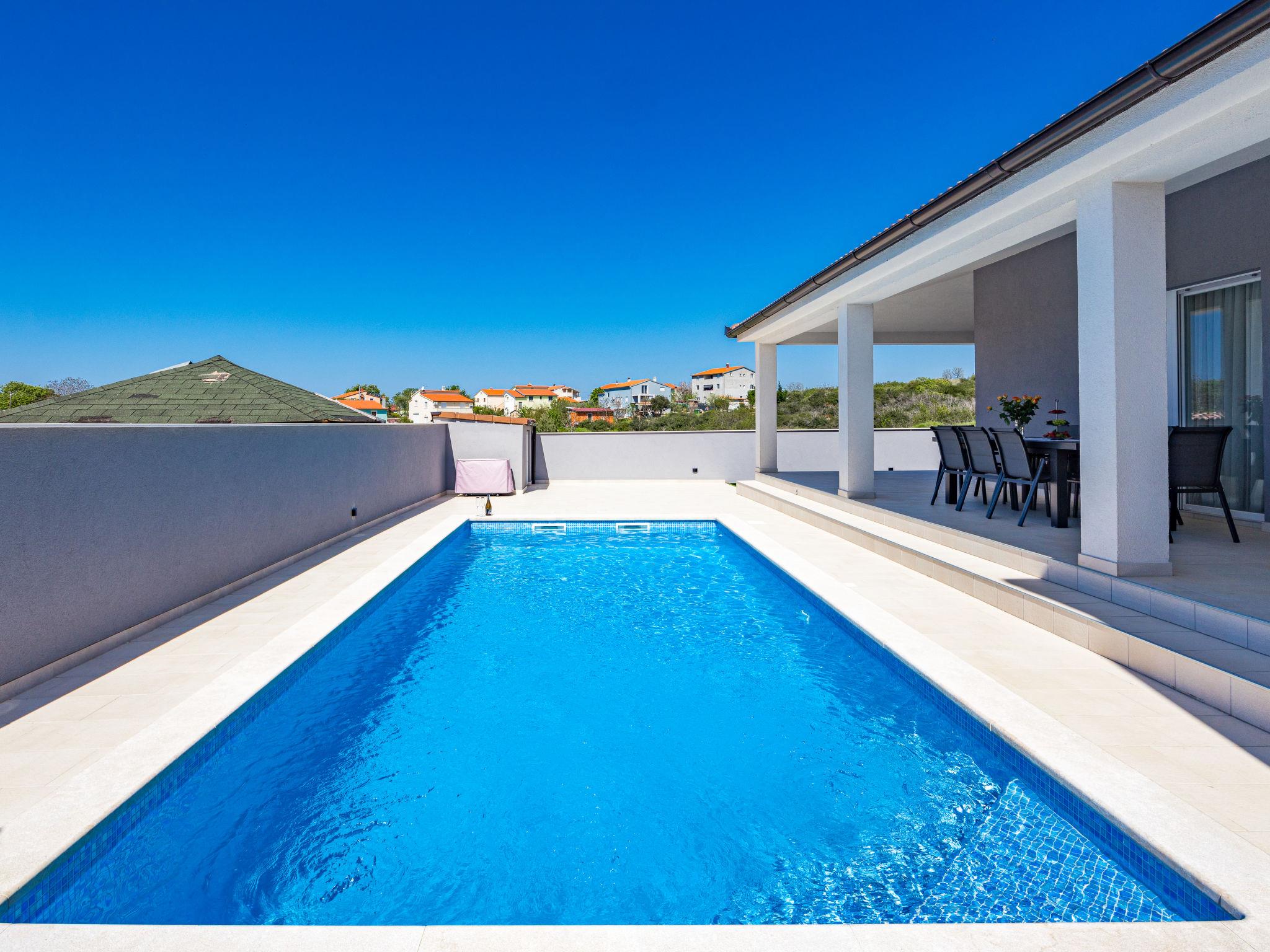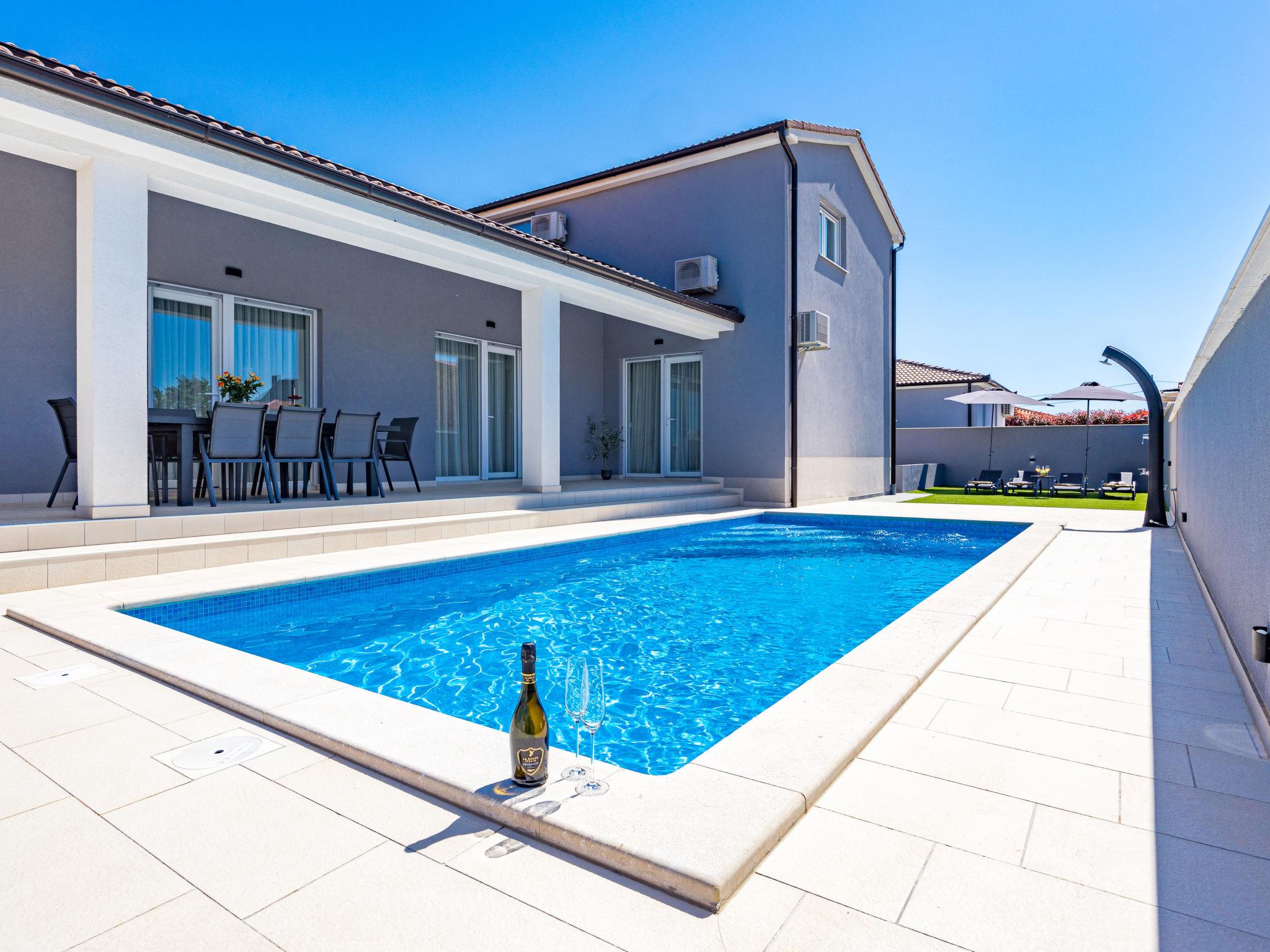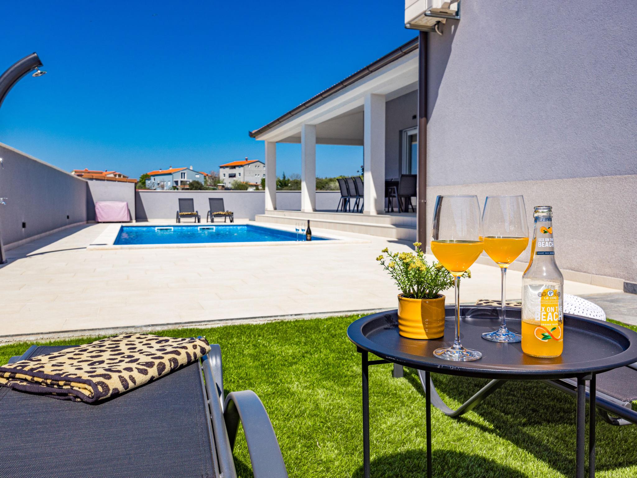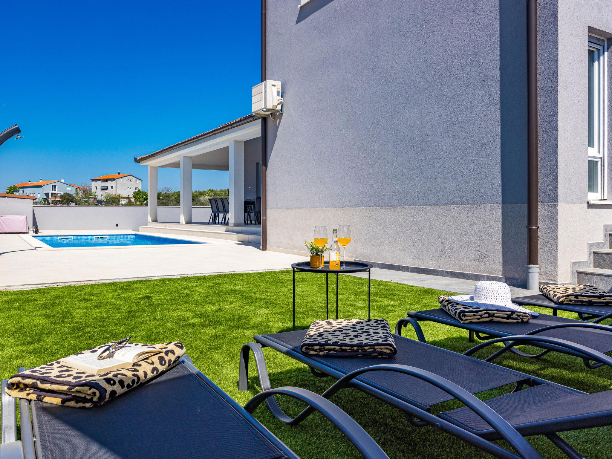 Villa "Tea", 2 storeys. In the hamlet Loborika 6 km from the centre of Marcana, 6 km from the centre of Pula, in a quiet, sunny position, 8 km from the sea. Private: property 700 m2 (fenced), garden with wildlife garden and flowers, swimming pool angular (8 x 4 m, depth 140 cm, seasonal availability: 29.Apr. - 07.Oct.) with internal staircase and salt-electrolysis pool-cleaning system. Outdoor shower, terrace (70 m2), garden furniture, barbecue (swing). In the house: internet access, air conditioning, washing machine. Parking at the house on the premises. Shop 1.5 km, supermarket 4 km, restaurant 2 km, café 1.5 km, bus stop 1.5 km, sandy beach 17 km pebble beach 10 km. Tennis 15 km, riding stable 5 km, walking paths from the house 100 m, cycle lane 150 m. Nearby attractions: Amphitheater 8 km, National park Brijuni 13 km, Nature park Rt. Kamenjak 18 km. Groups of teenagers on request only.