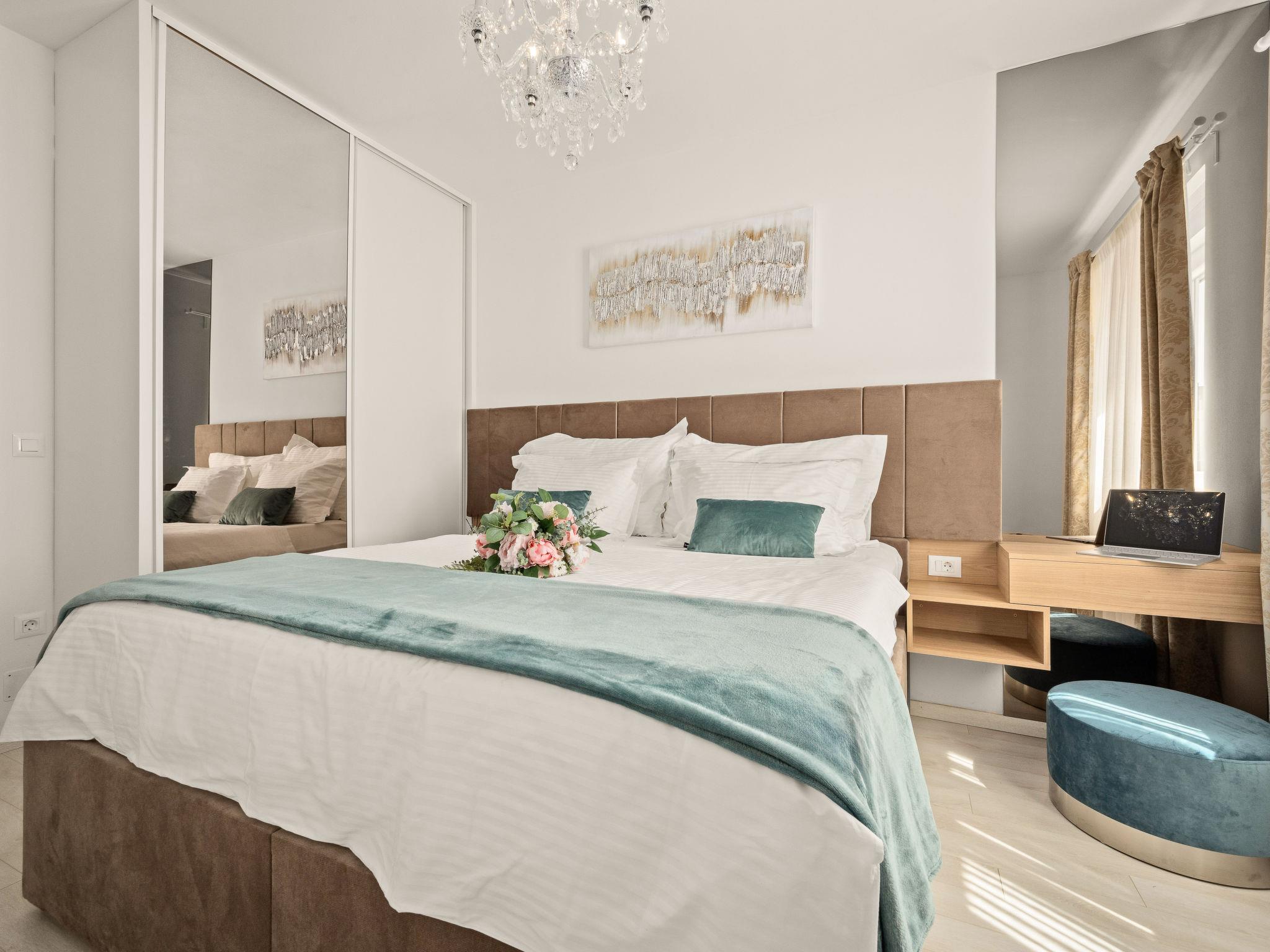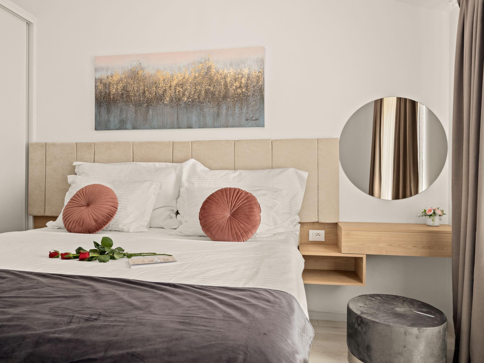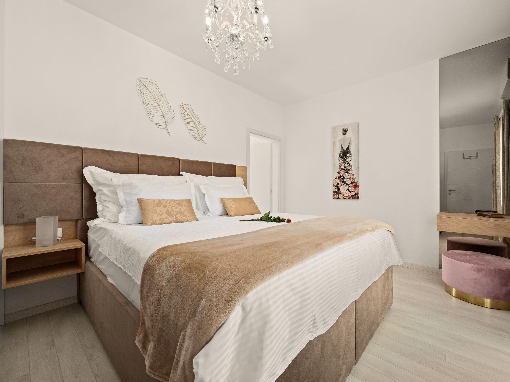 5-room villa 200 m2 on 2 levels. Large living/dining room with satellite TV (flat screen), air conditioning. Exit to the terrace. 1 room with 1 french bed (180 cm, length 200 cm), shower/WC and satellite TV (flat screen), air conditioning. Exit to the swimming pool. 1 room with 1 french bed (180 cm, length 200 cm), shower/WC and satellite TV (flat screen), air conditioning. Open kitchen (oven, dishwasher, 4 induction hot plates, toaster, kettle, microwave, freezer, electric coffee machine). Exit to the terrace, to the swimming pool. Sep. WC. Upper floor: 2 rooms, each room with 1 french bed (180 cm, length 200 cm), shower/WC and satellite TV (flat screen), air conditioning. Facilities: safe. Internet (WiFi, free). 2163-10/19-24-3