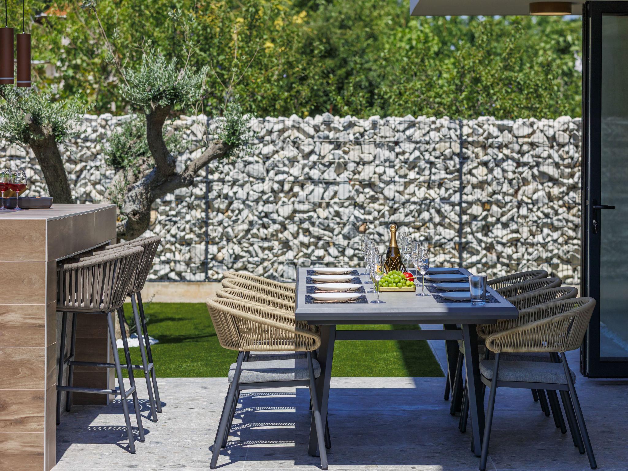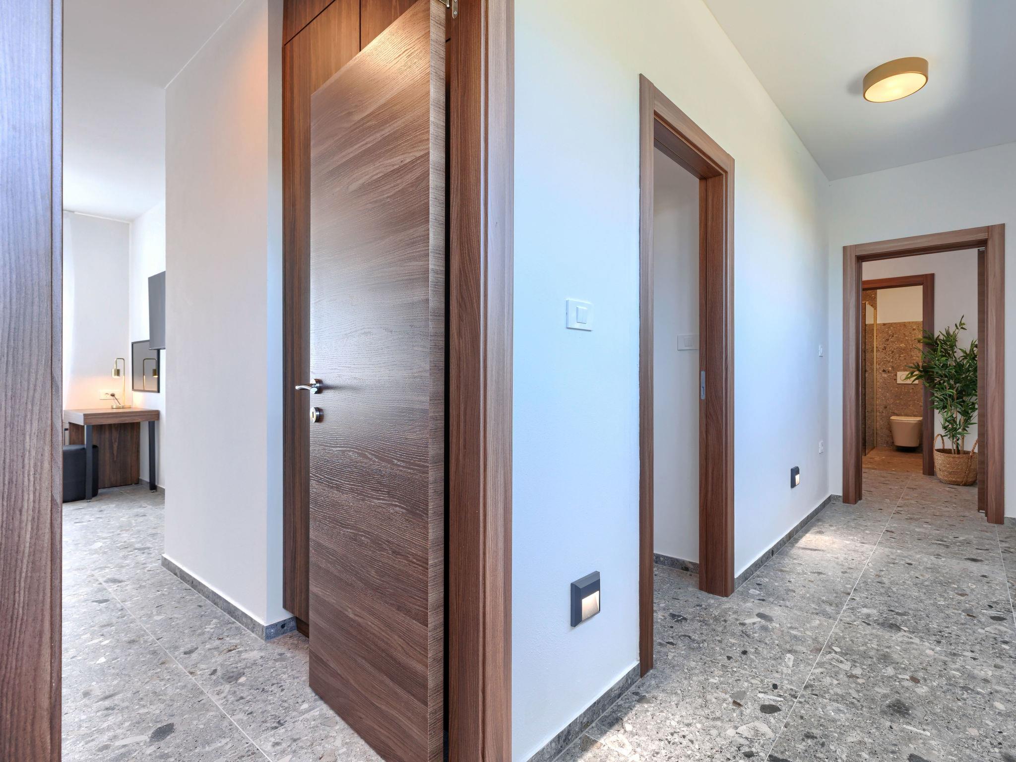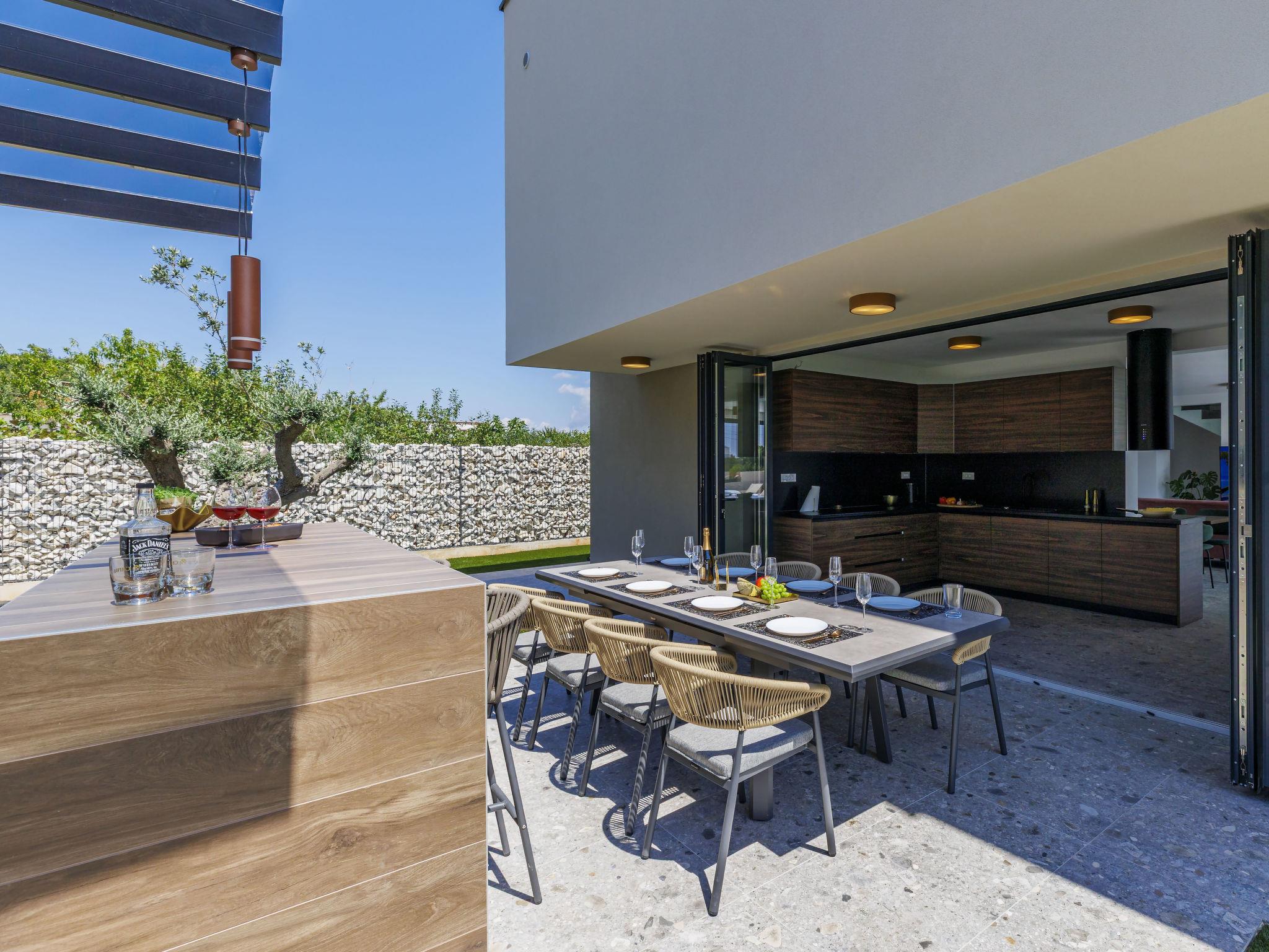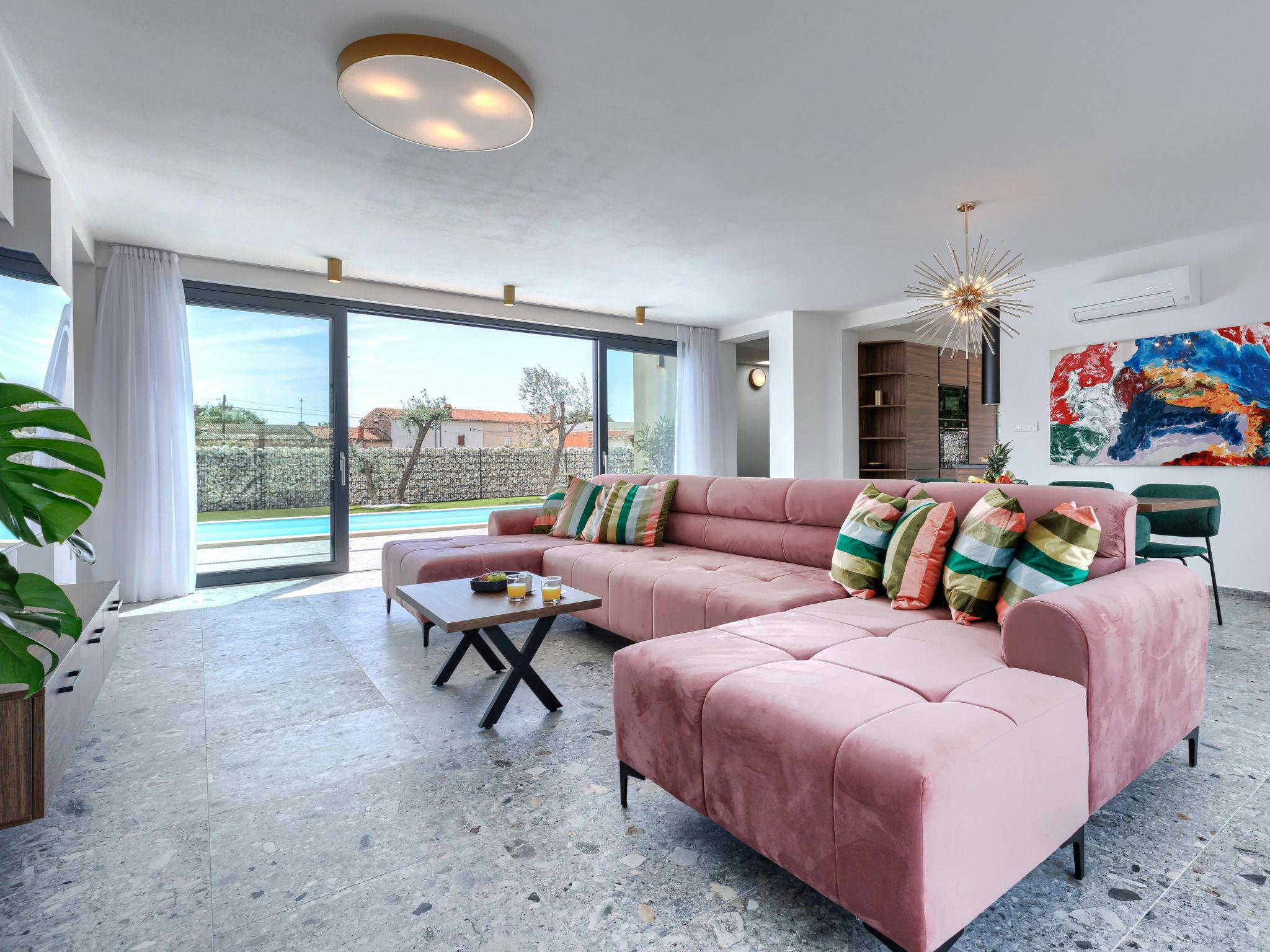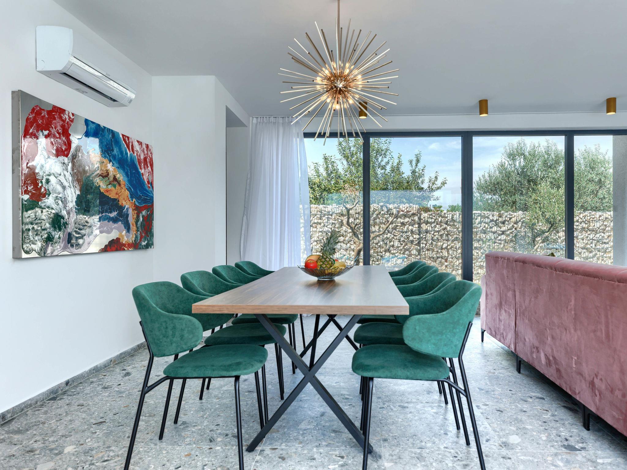 Villa "Qube n' Qube", 2 storeys. In the hamlet Loborika 6 km from the centre of Marcana, 6 km from the centre of Pula, in a quiet, sunny position, 8 km from the sea. Private: property 860 m2 (fenced), garden with wildlife garden and flowers, swimming pool angular, heated (10 x 3 m, depth 140 cm, seasonal availability: 01.Apr. - 01.Nov.) with internal staircase. Outdoor shower, terrace (30 m2), garden furniture, barbecue, children's playground (slide, swing), pool maintenance by the owner/gardener. In the house: internet access, air conditioning. Parking (for 4 cars) at the house on the premises. Shop 2.3 km, supermarket 6 km, restaurant 2 km, café 2.3 km, bus stop 2.3 km, sandy beach 16 km pebble beach 13 km. Tennis 15 km, riding stable 5 km, walking paths from the house 100 m, cycle lane 150 m. Nearby attractions: Amphitheater 8 km, National park Brijuni 14 km, Nature park Rt. Kamenjak 18 km.