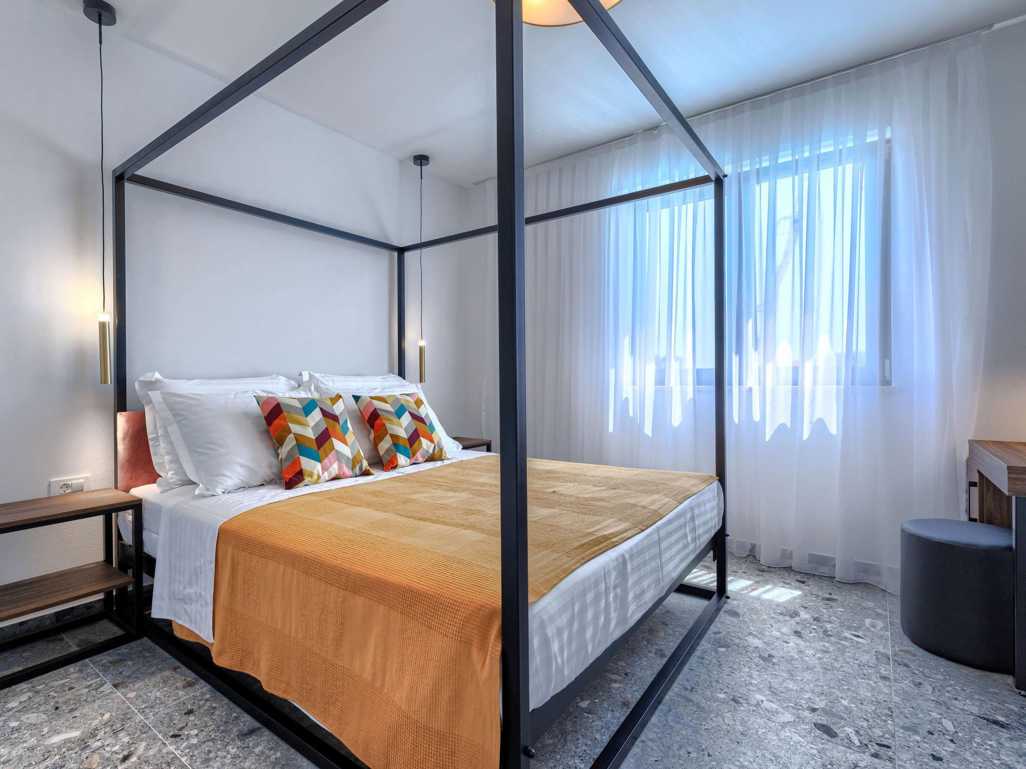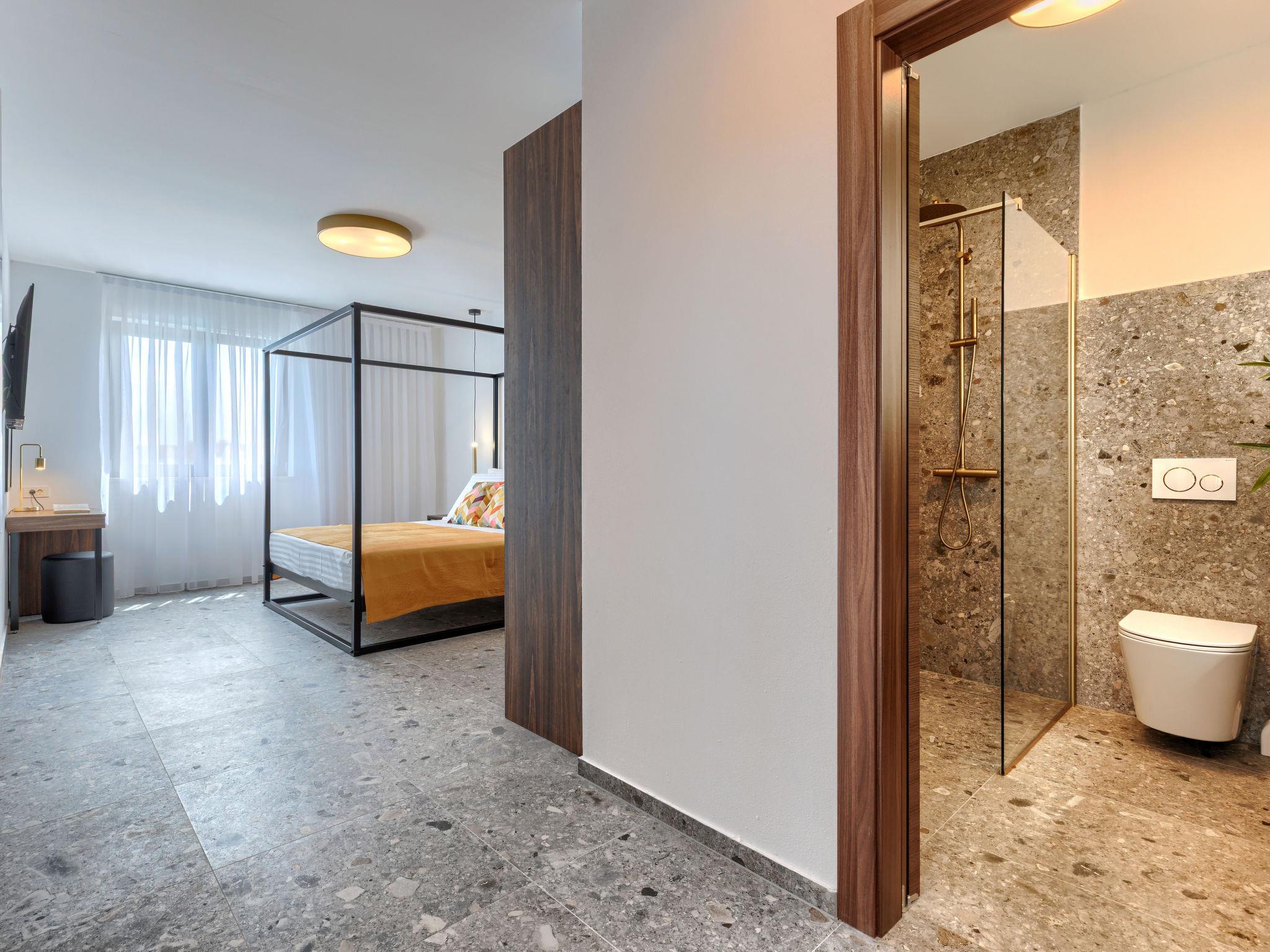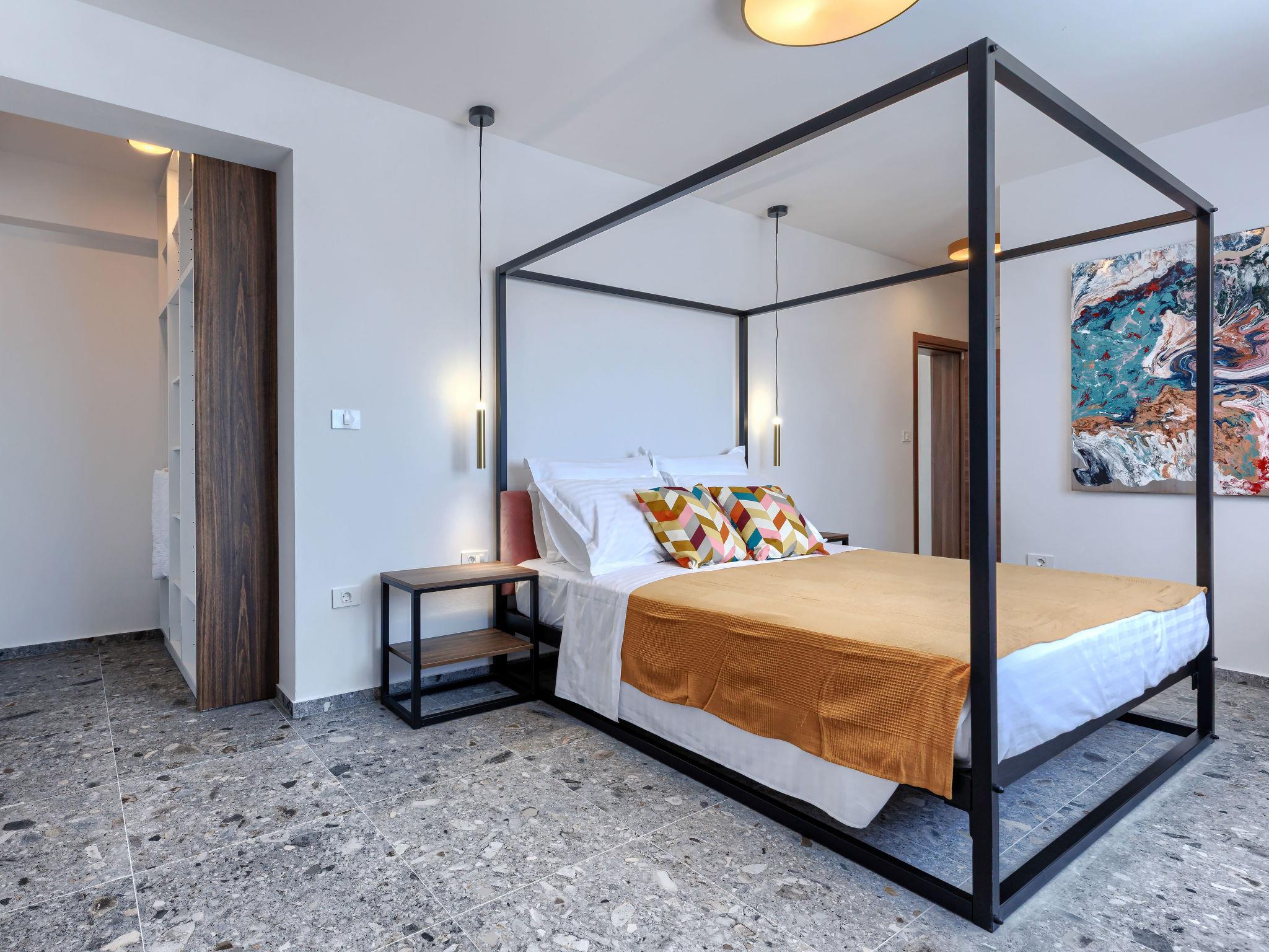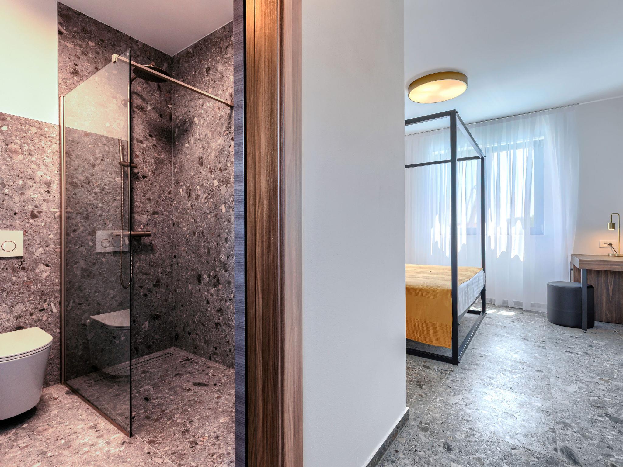 Villa "Qube n' Qube", 2 storeys. In the hamlet Loborika 6 km from the centre of Marcana, 6 km from the centre of Pula, in a quiet, sunny position, 8 km from the sea. Private: property 860 m2 (fenced), garden with wildlife garden and flowers, swimming pool angular, heated (10 x 3 m, depth 140 cm, seasonal availability: 01.Apr. - 01.Nov.) with internal staircase. Outdoor shower, terrace (30 m2), garden furniture, barbecue, children's playground (slide, swing), pool maintenance by the owner/gardener. In the house: internet access, air conditioning. Parking (for 4 cars) at the house on the premises. Shop 2.3 km, supermarket 6 km, restaurant 2 km, café 2.3 km, bus stop 2.3 km, sandy beach 16 km pebble beach 13 km. Tennis 15 km, riding stable 5 km, walking paths from the house 100 m, cycle lane 150 m. Nearby attractions: Amphitheater 8 km, National park Brijuni 14 km, Nature park Rt. Kamenjak 18 km.