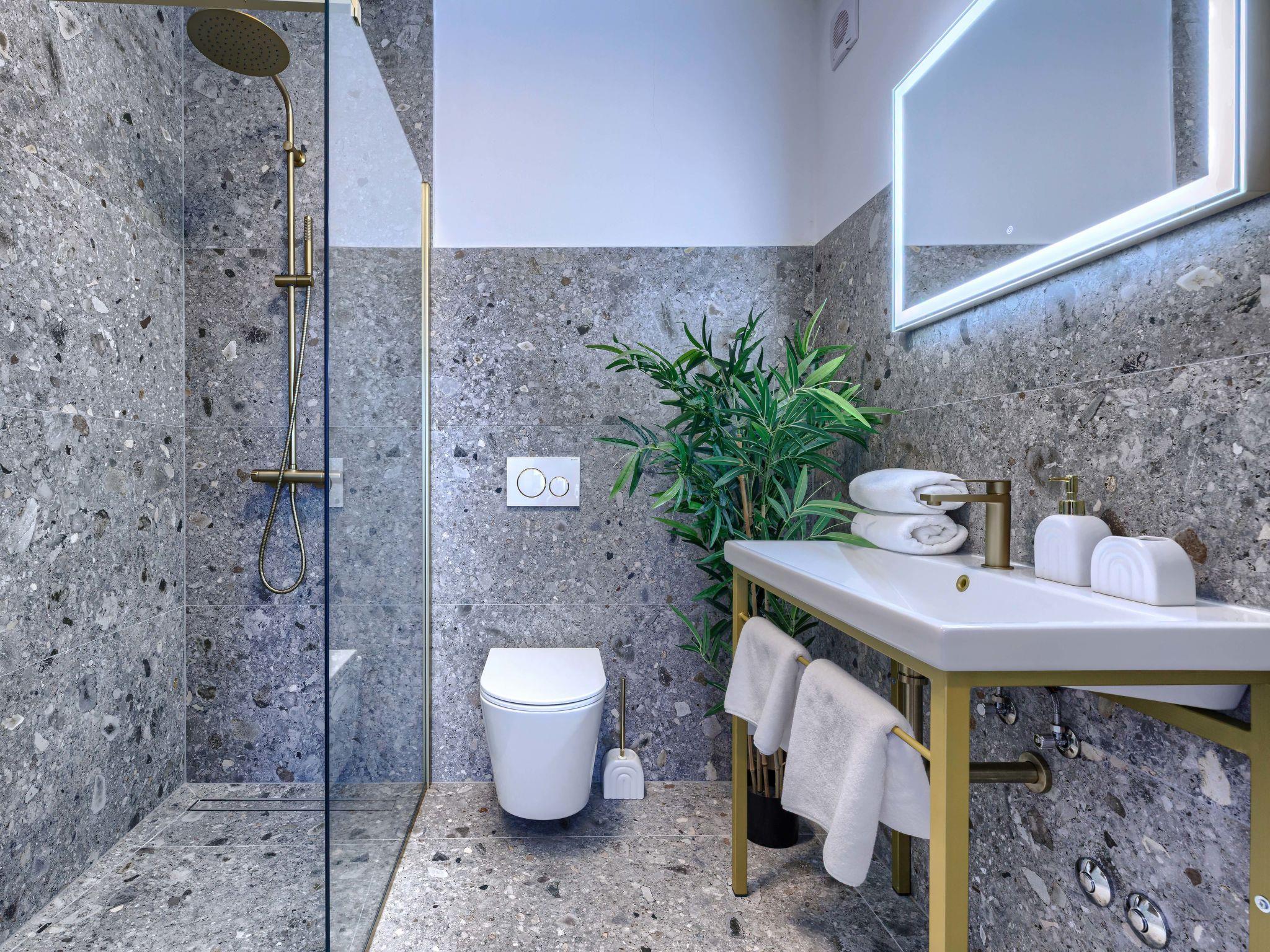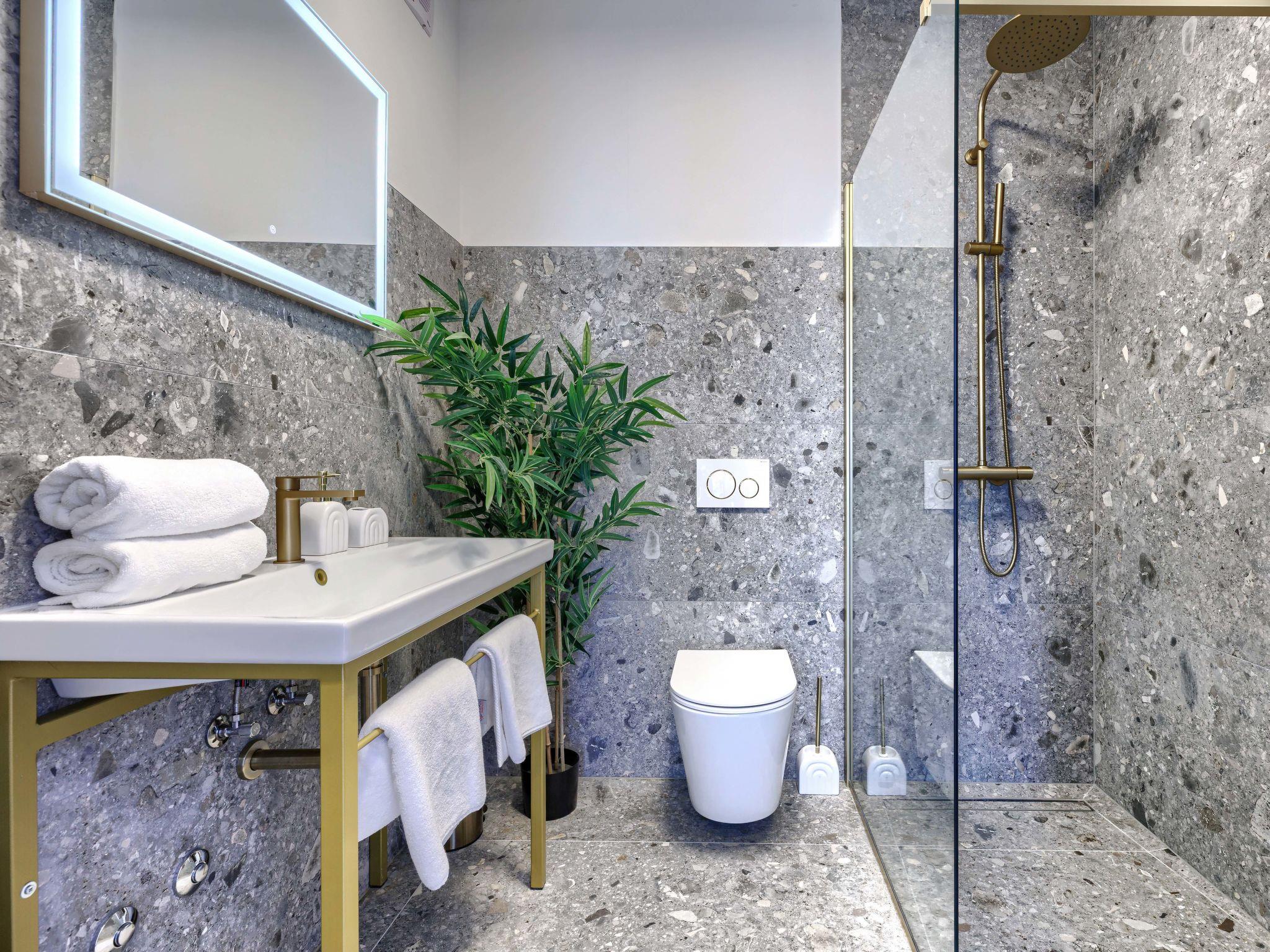 5-room villa 150 m2 on 2 levels. Beautiful and tasteful furnishings: living/dining room 65 m2 with satellite TV (flat screen), air conditioning. Exit to the swimming pool. Open kitchen (oven, dishwasher, 4 ceramic glass hob hotplates, toaster, kettle, microwave, freezer, electric coffee machine). Exit to the terrace. Sep. WC. Upper floor: 4 rooms, each room with 1 french bed (180 cm, length 200 cm), shower/WC and satellite TV (flat screen), air conditioning. Facilities: washing machine, safe, children's high chair, baby cot for up to 2 year olds, hair dryer. Internet (WiFi, free).