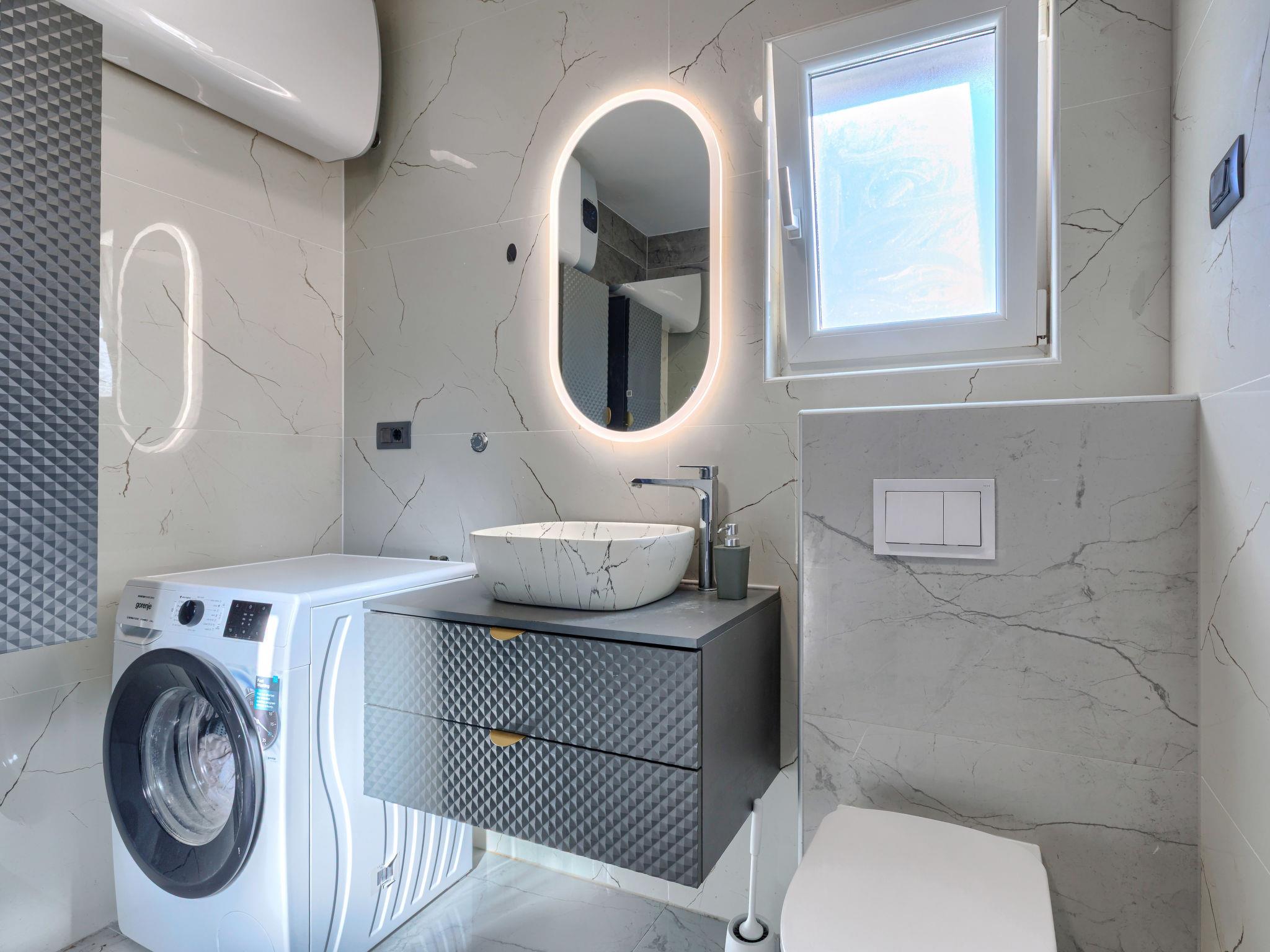 Single-family house "Damir". In the hamlet Škatari 5 km from the centre of Pula, in a quiet, sunny position, 5 km from the sea, 5 km from the beach. Private: property 980 m2 (fenced), garden with wildlife garden, swimming pool angular (24 m2, depth 140 cm, seasonal availability: 01.May. - 15.Oct.) with internal staircase. WC in the pool area, outdoor shower, terrace (60 m2), garden furniture, barbecue. In the house: internet access, washing machine. Motor access (300 m via unmade road). Parking (for 2 cars) at the house on the premises, single garage. Shop 500 m, grocery 3.2 km, supermarket 5 km, bus stop 290 m, sandy beach 6 km pebble beach 6 km. Walking paths from the house, cycle lane 100 m. Nearby attractions: National Park Brijuni 14 km, Nature park Kamenjak 17 km, Amphitheater 7 km. Please note: suitable for families. Airfield 7 km from the property.
