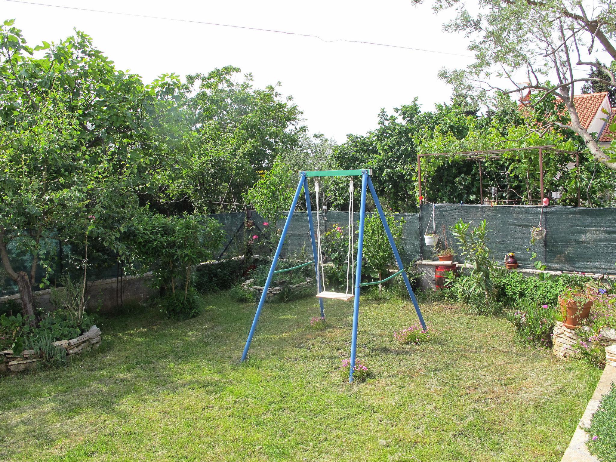 4-room house 100 m2 on 2 levels. Living/dining room with satellite TV and air conditioning. Exit to the terrace. 1 room with 1 french bed. Kitchen (4 hot plates, oven, dishwasher, toaster, kettle, microwave, freezer, electric coffee machine). Bath/bidet/WC. Upper floor: 1 room with 2 beds, 1 folding bed and air conditioning. Exit to the balcony. 1 room with 2 beds and air conditioning. Balcony, terrace 25 m2 partly roofed. Deck chairs. Facilities: Internet (WiFi, free). Please note: non-smoking house. Maximum 3 pets/ dogs allowed. Klasa: UP/I-335-03/20-01/2310, Urbroj: 2163/1-10/2