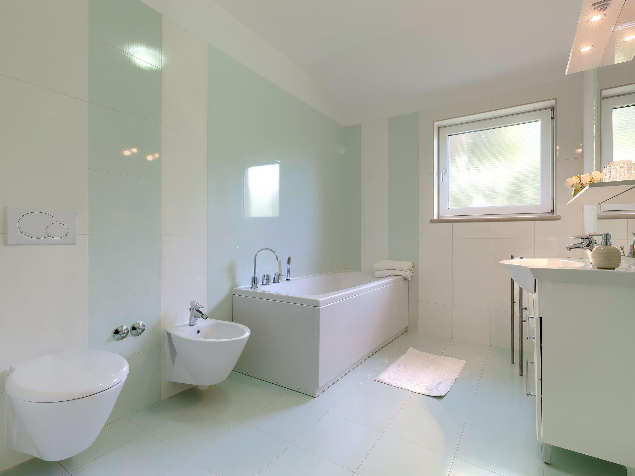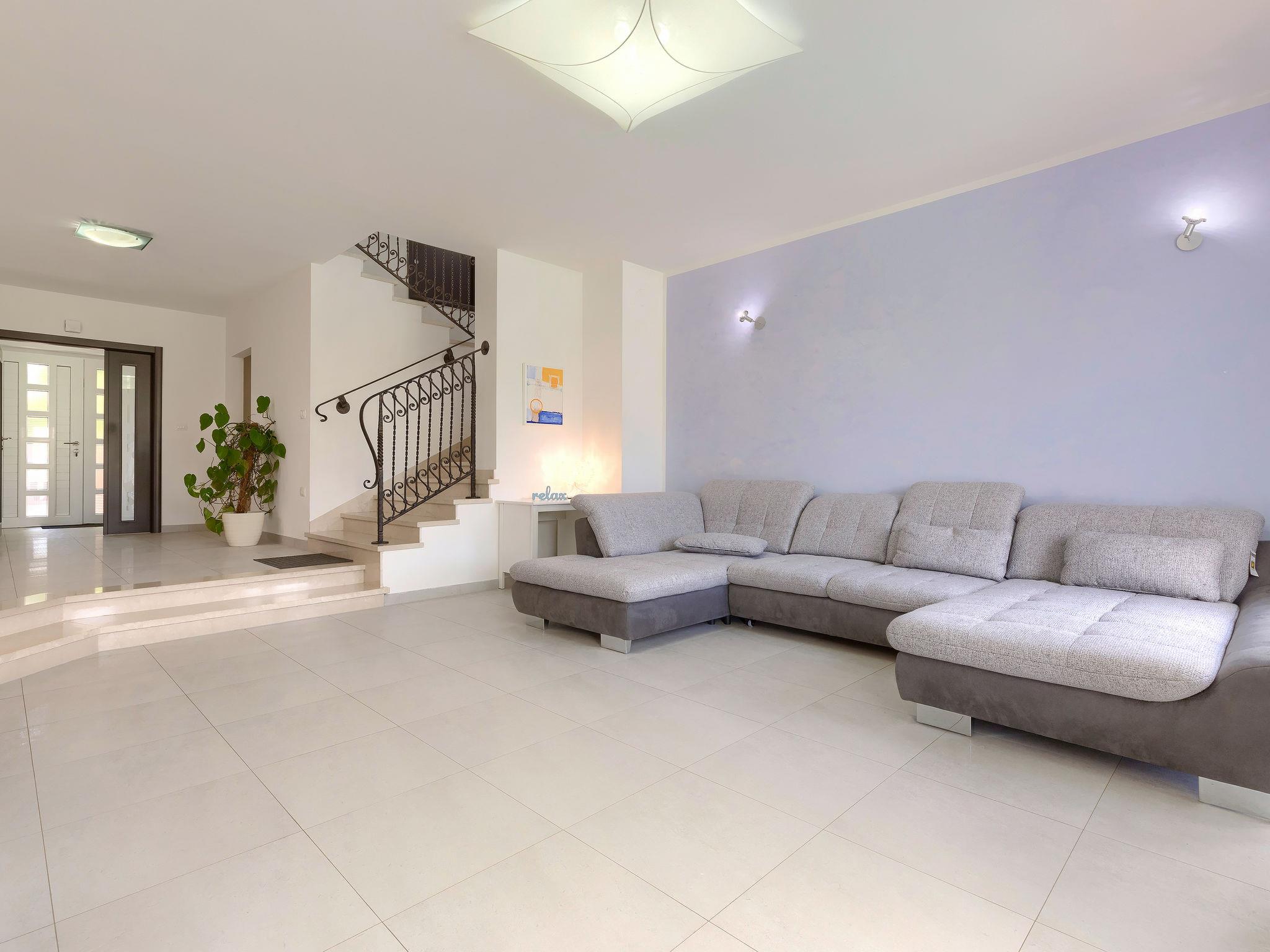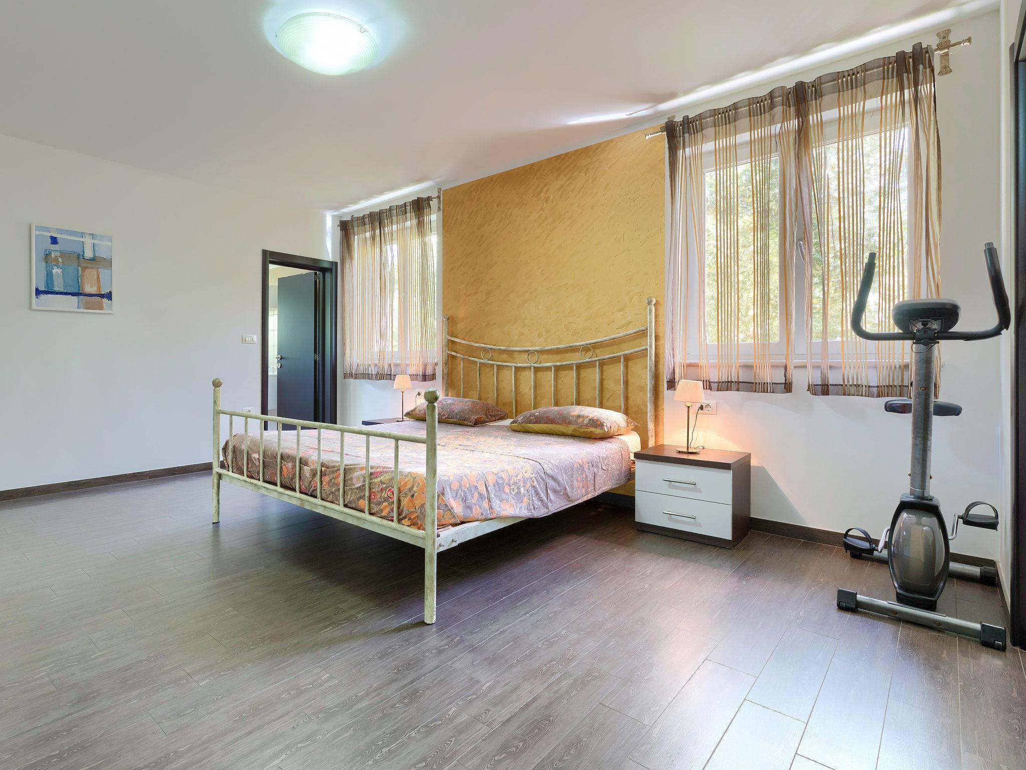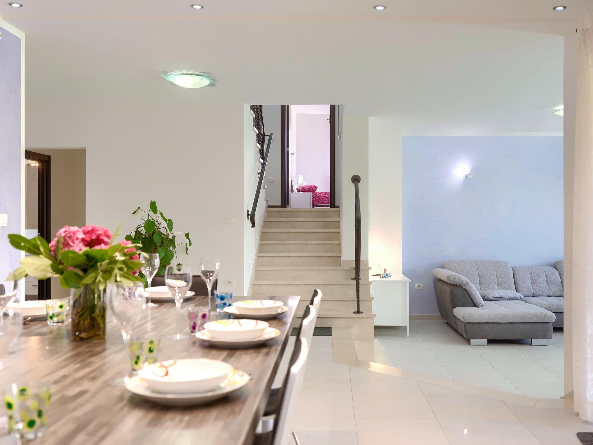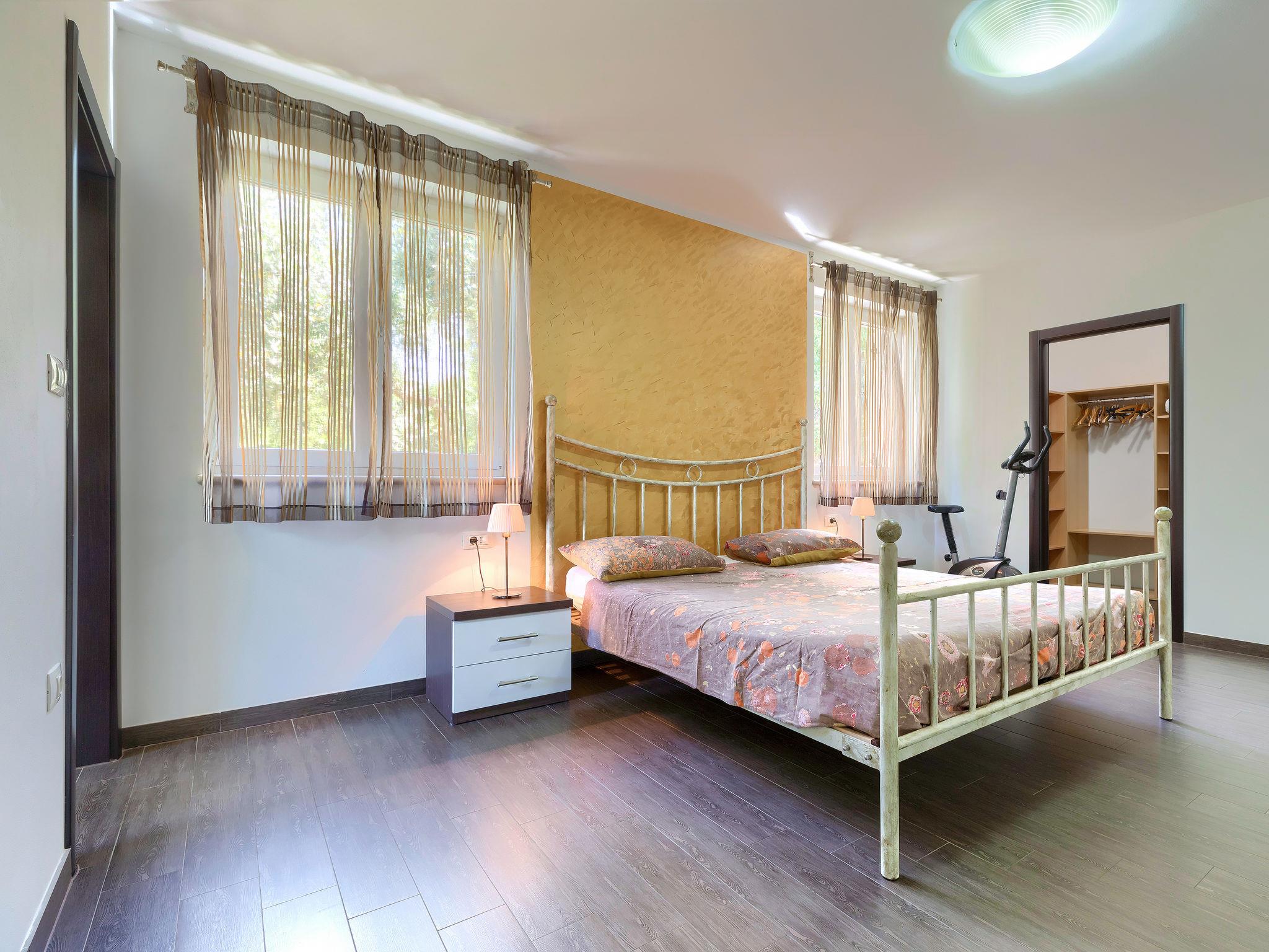 Single-family house "Villa Vela", 3 storeys. 300 m from the centre of Šišan, on the outskirts, 2 km from the centre of Ližnjan, 7 km from the centre of Pula, 3 km from the sea, 3 km from the beach. Private: property 1'600 m2 with lawn and trees, swimming pool heated (12 x 4 m, depth 135 cm, seasonal availability: 03.Apr. - 06.Nov.) with internal staircase and salt-electrolysis pool-cleaning system. Unconventional pool shape. Outdoor shower, hot tub, basketball, badminton, terrace (30 m2), garden furniture (swing). In the house: internet access, table tennis, trampoline, burglar alarm system, washing machine. Available: bicycles (2). Parking on the premises. Shop, restaurant 300 m, bus stop 450 m, pebble beach 3 km, rocky beach 3 km. Marina 5 km. Swimming pool heated (extra). Hot tub heating (extra).