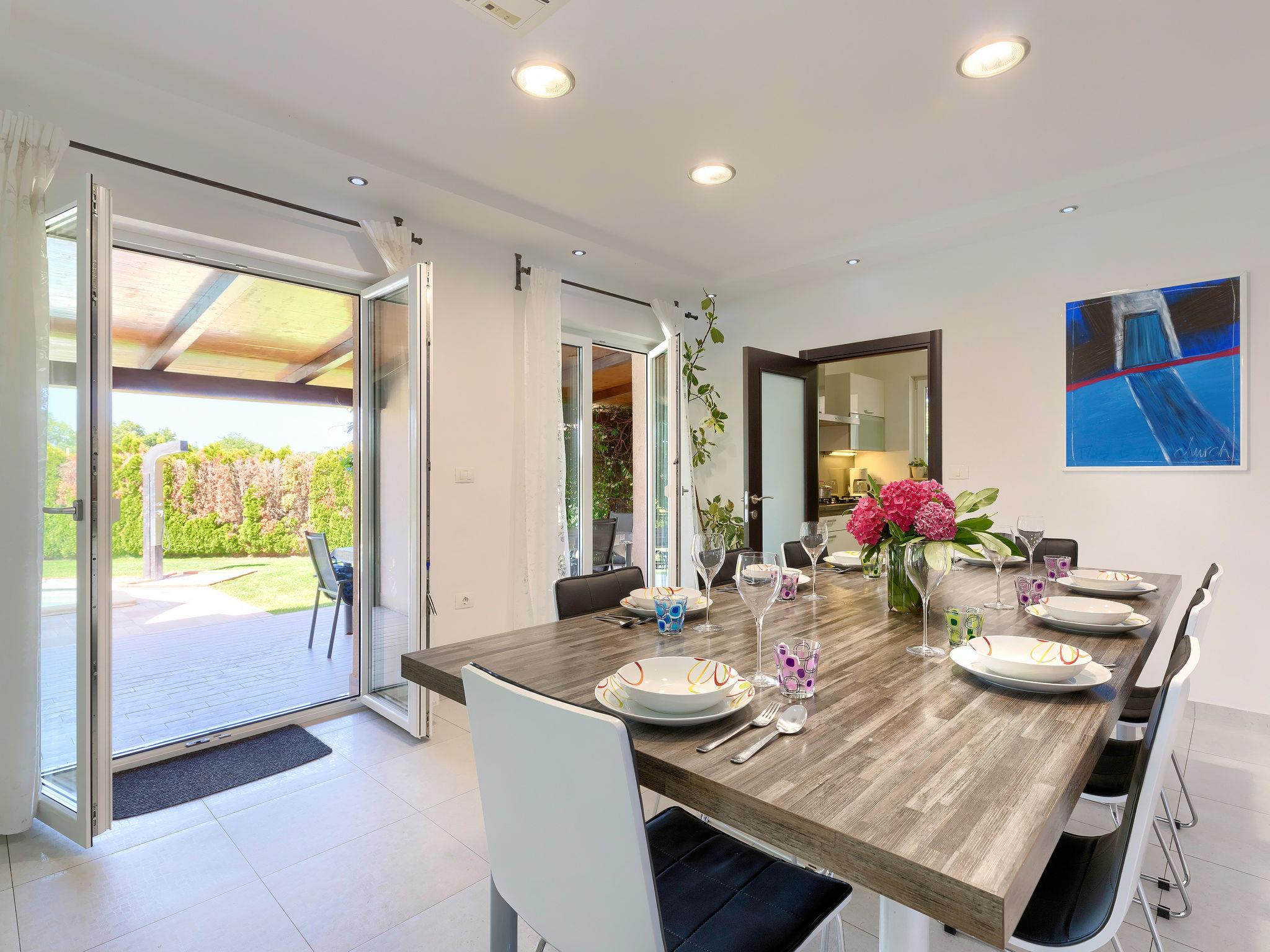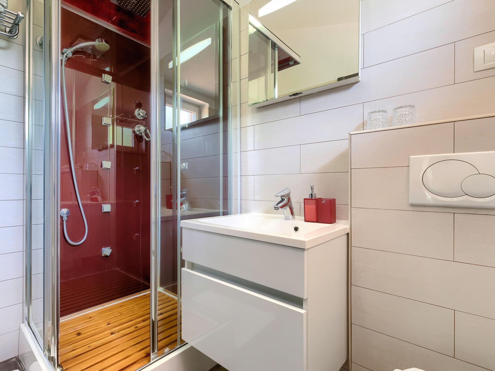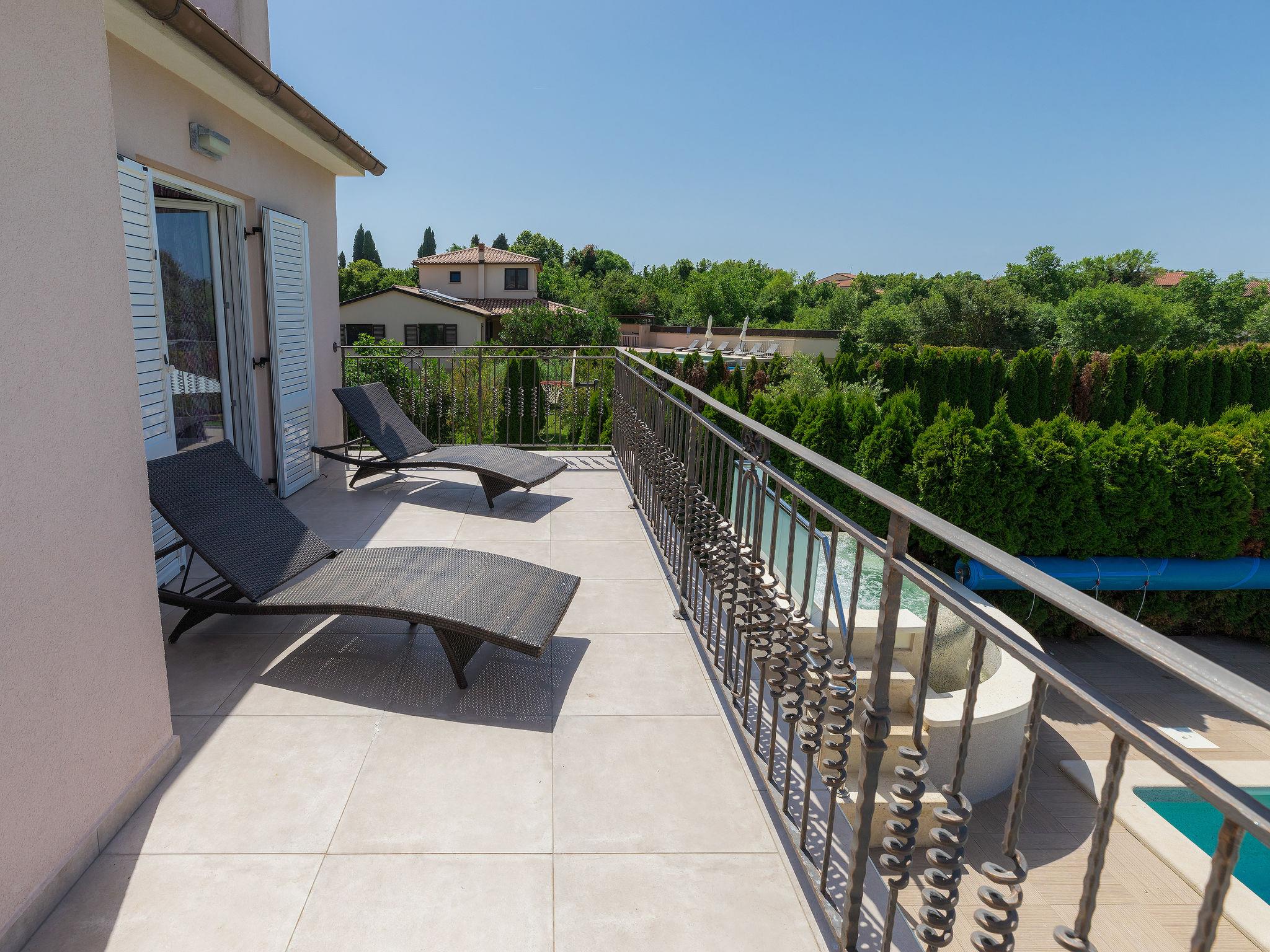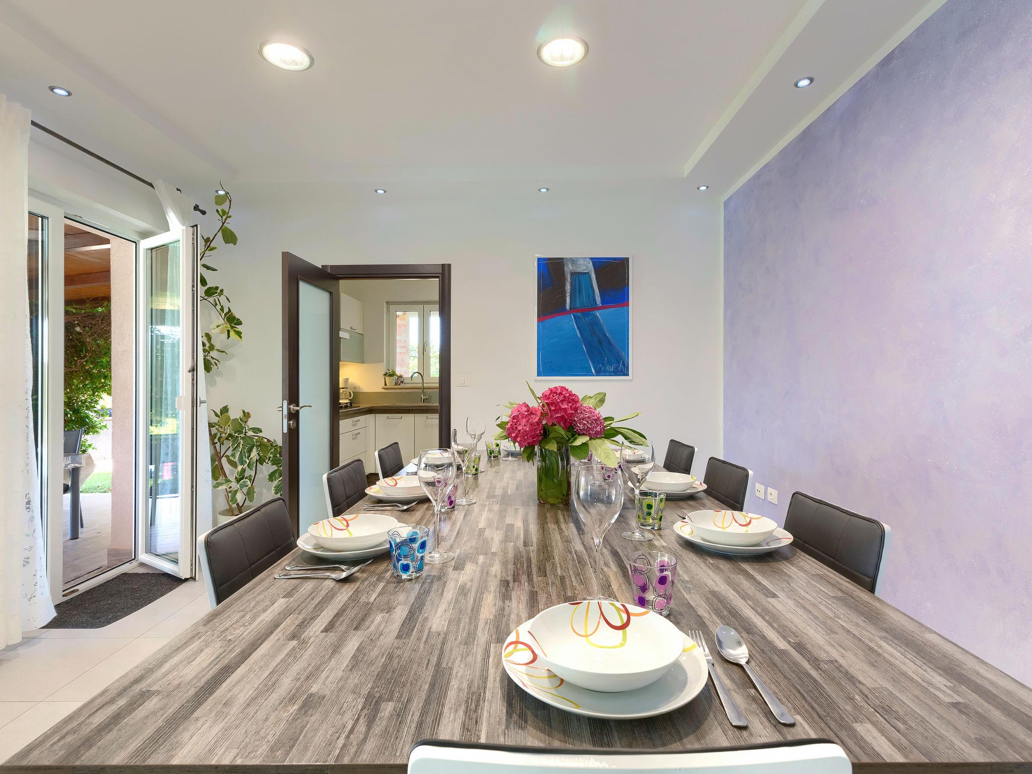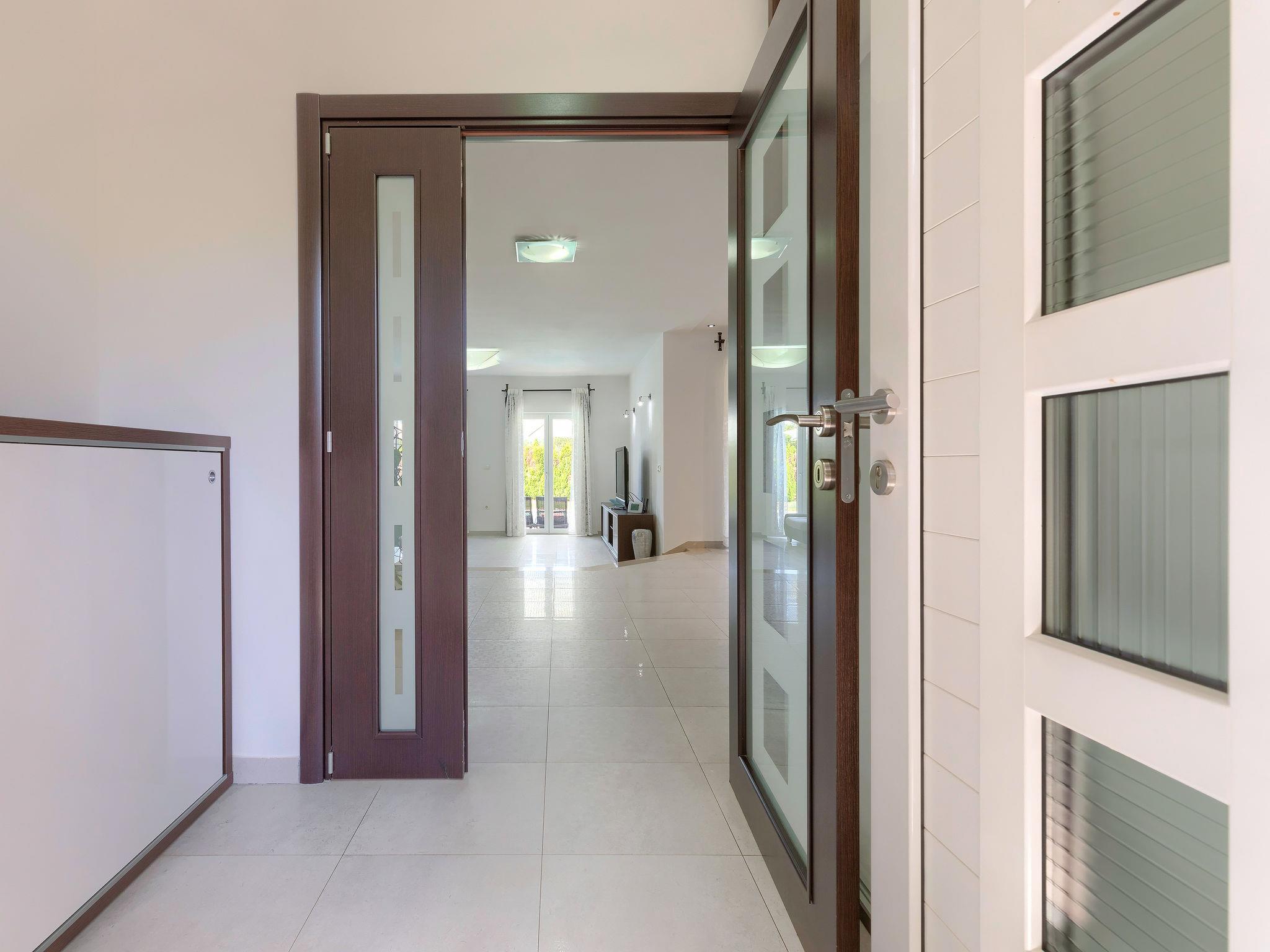 Single-family house "Villa Vela", 3 storeys. 300 m from the centre of Šišan, on the outskirts, 2 km from the centre of Ližnjan, 7 km from the centre of Pula, 3 km from the sea, 3 km from the beach. Private: property 1'600 m2 with lawn and trees, swimming pool heated (12 x 4 m, depth 135 cm, seasonal availability: 03.Apr. - 06.Nov.) with internal staircase and salt-electrolysis pool-cleaning system. Unconventional pool shape. Outdoor shower, hot tub, basketball, badminton, terrace (30 m2), garden furniture (swing). In the house: internet access, table tennis, trampoline, burglar alarm system, washing machine. Available: bicycles (2). Parking on the premises. Shop, restaurant 300 m, bus stop 450 m, pebble beach 3 km, rocky beach 3 km. Marina 5 km. Swimming pool heated (extra). Hot tub heating (extra).