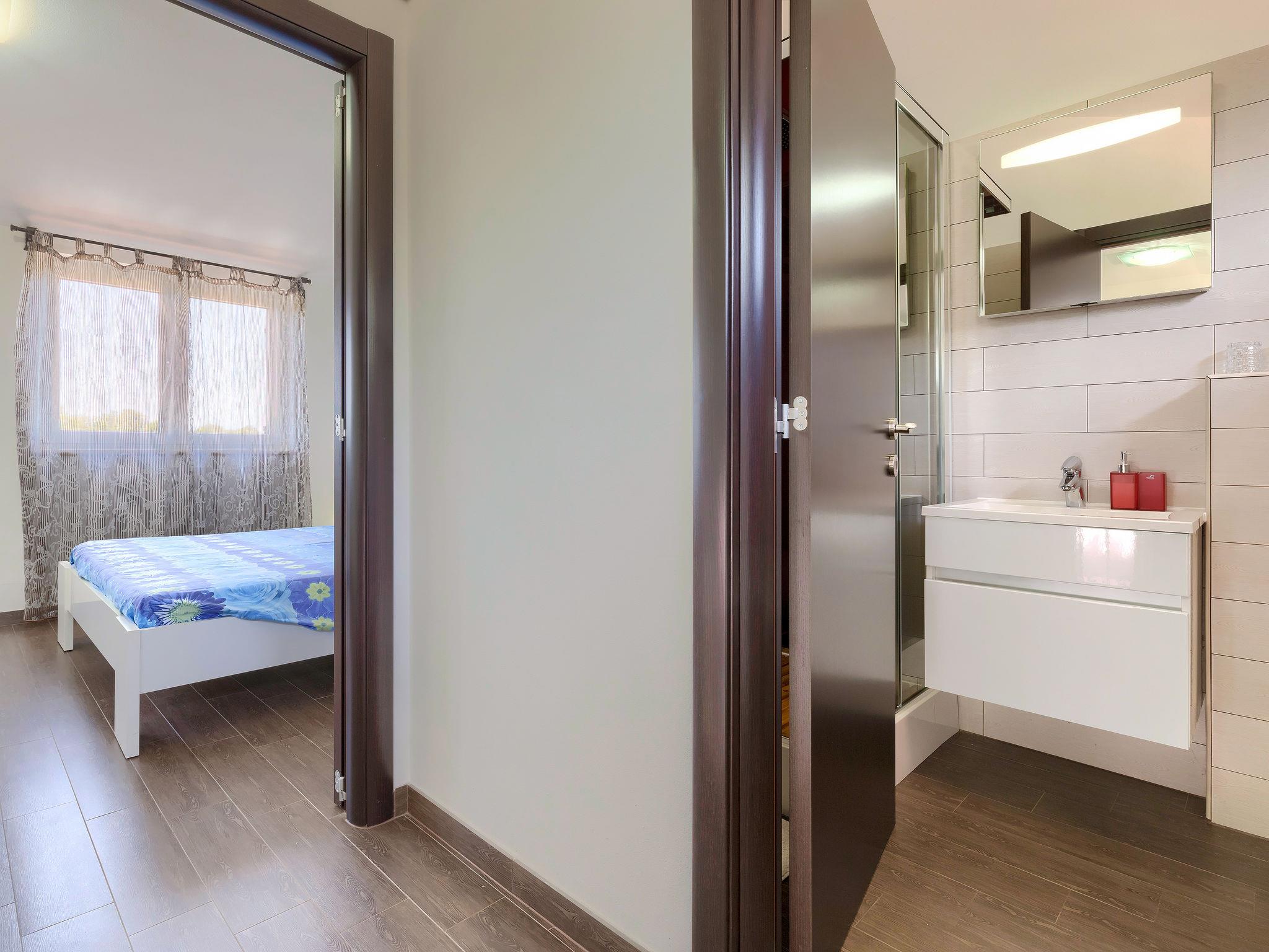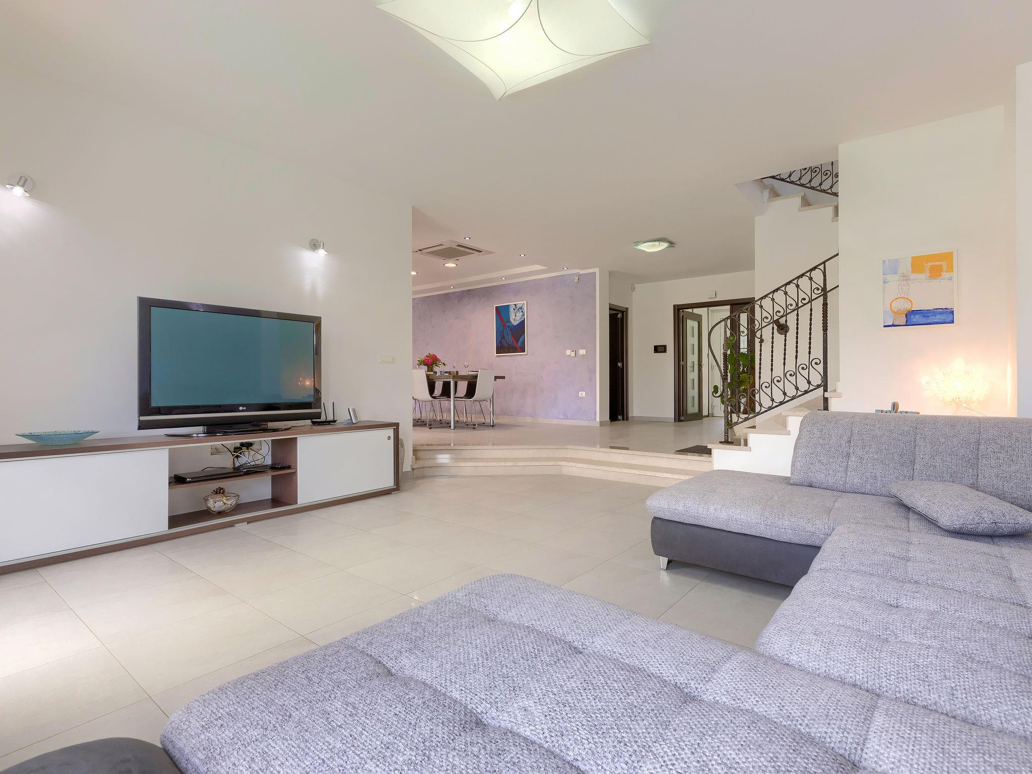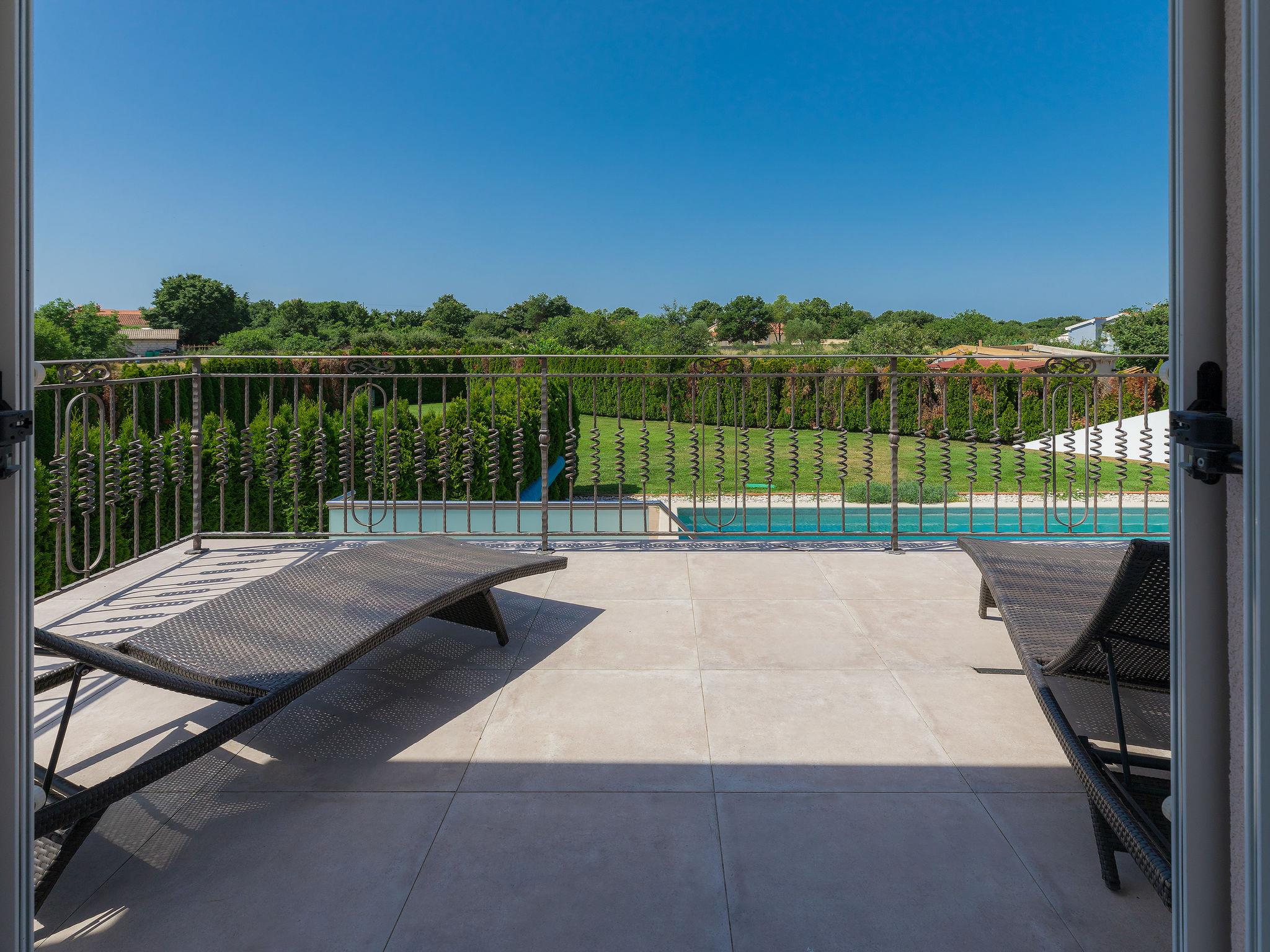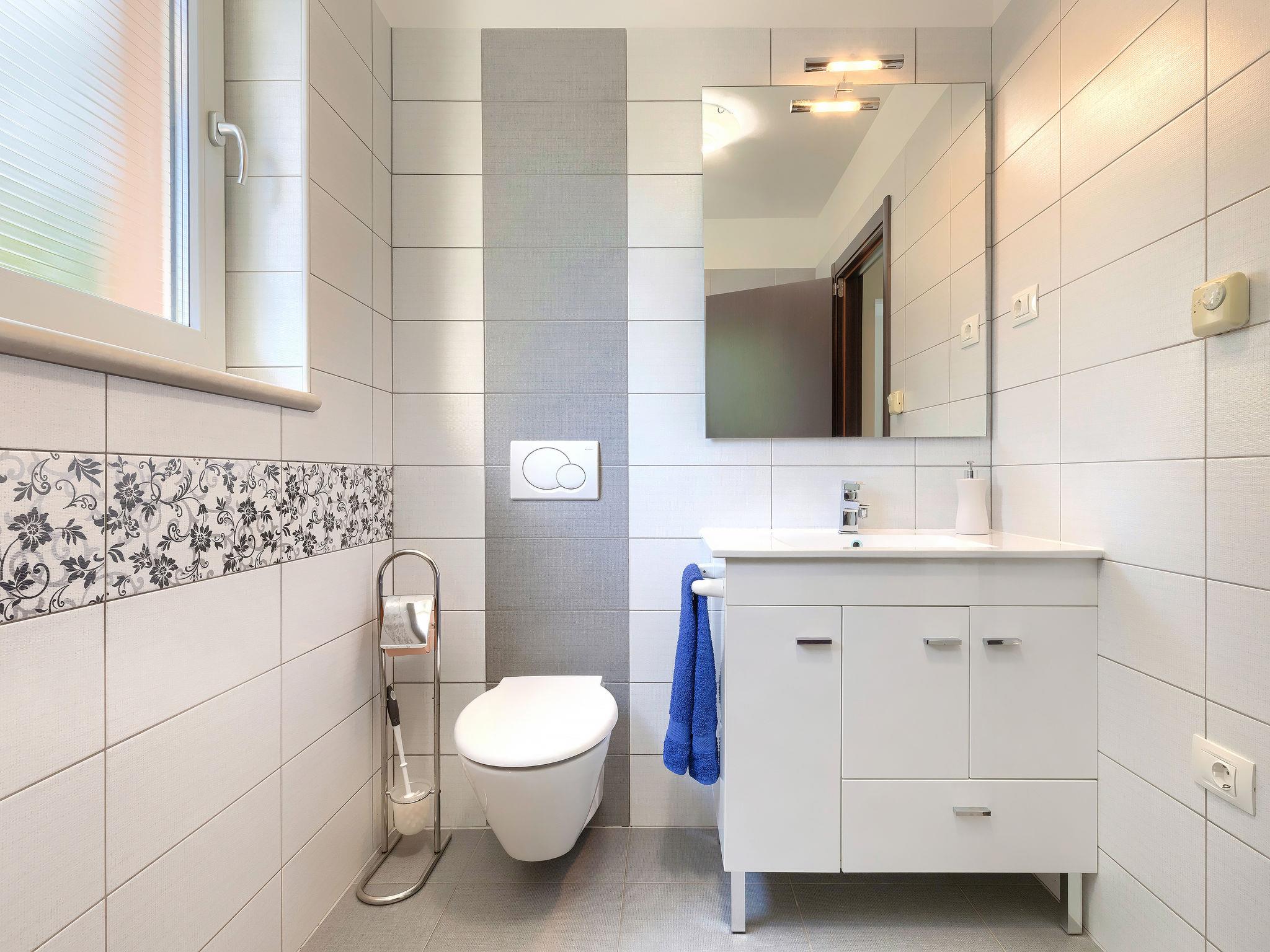 Single-family house "Villa Vela", 3 storeys. 300 m from the centre of Šišan, on the outskirts, 2 km from the centre of Ližnjan, 7 km from the centre of Pula, 3 km from the sea, 3 km from the beach. Private: property 1'600 m2 with lawn and trees, swimming pool heated (12 x 4 m, depth 135 cm, seasonal availability: 03.Apr. - 06.Nov.) with internal staircase and salt-electrolysis pool-cleaning system. Unconventional pool shape. Outdoor shower, hot tub, basketball, badminton, terrace (30 m2), garden furniture (swing). In the house: internet access, table tennis, trampoline, burglar alarm system, washing machine. Available: bicycles (2). Parking on the premises. Shop, restaurant 300 m, bus stop 450 m, pebble beach 3 km, rocky beach 3 km. Marina 5 km. Swimming pool heated (extra). Hot tub heating (extra).