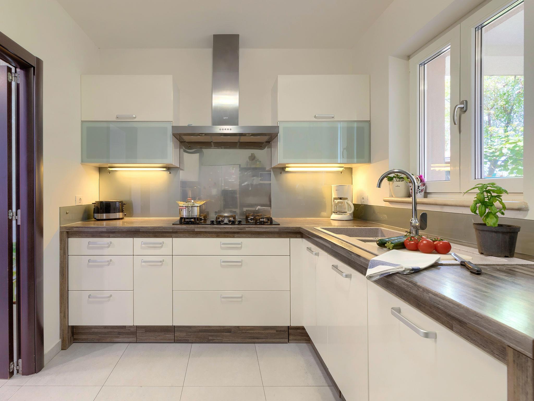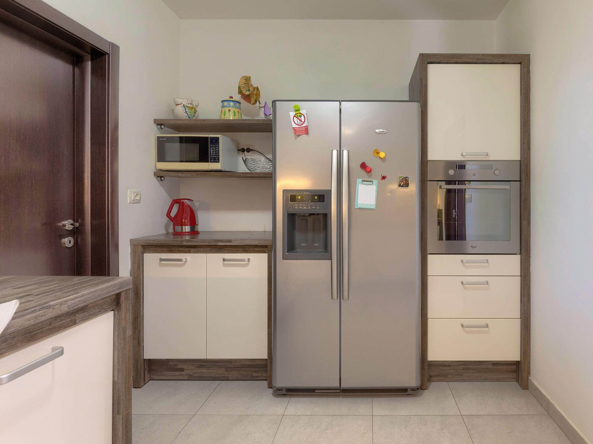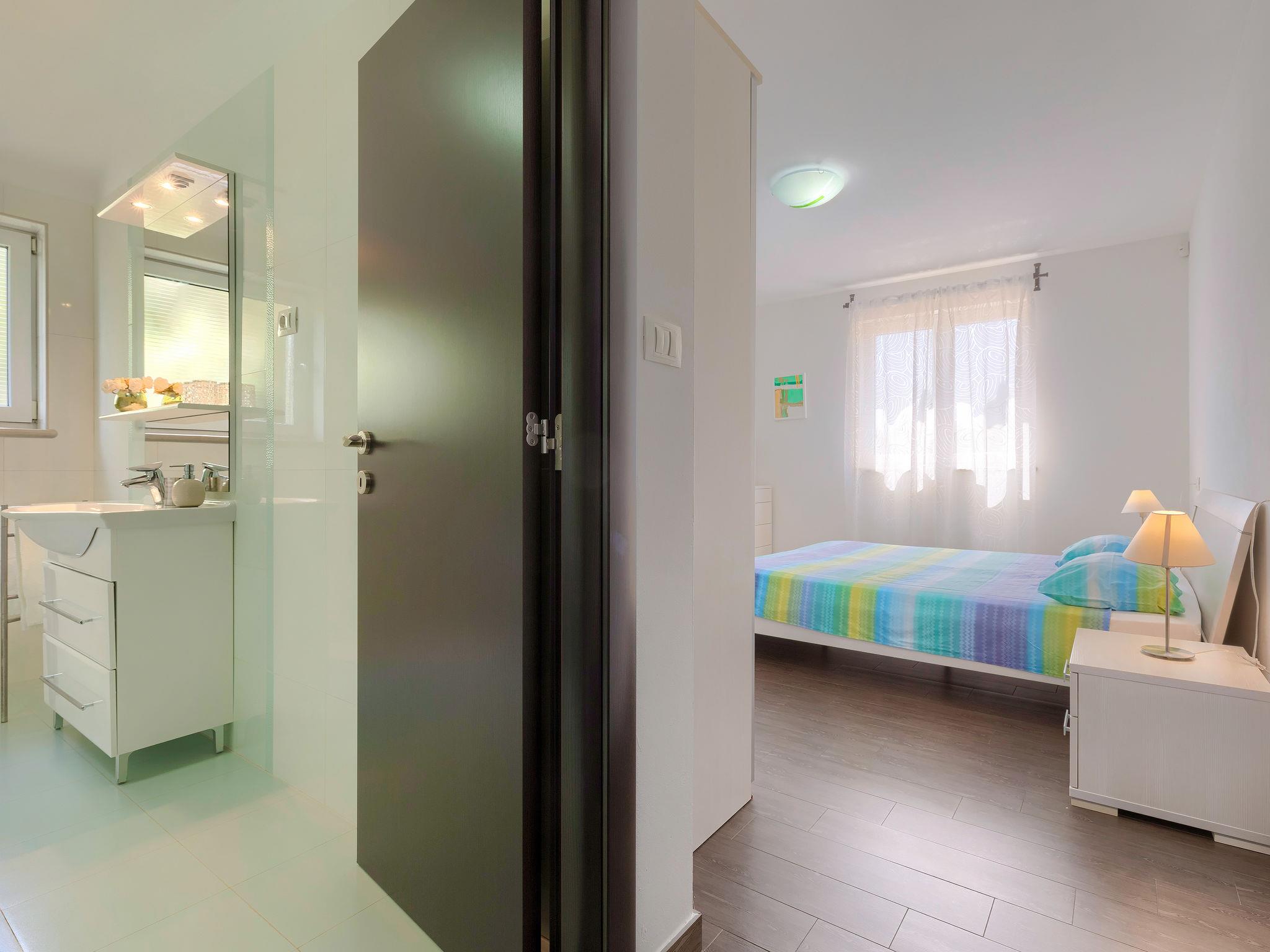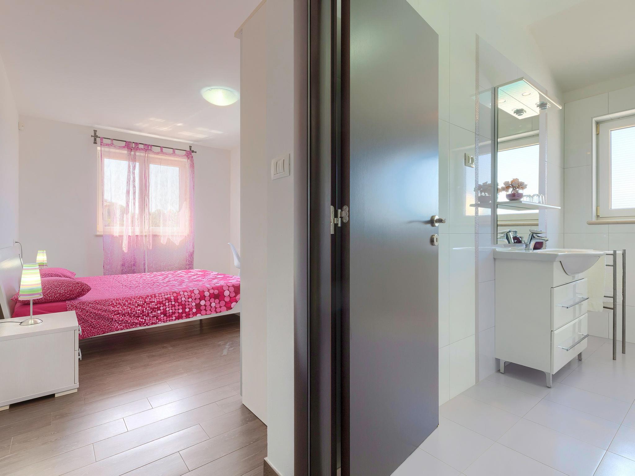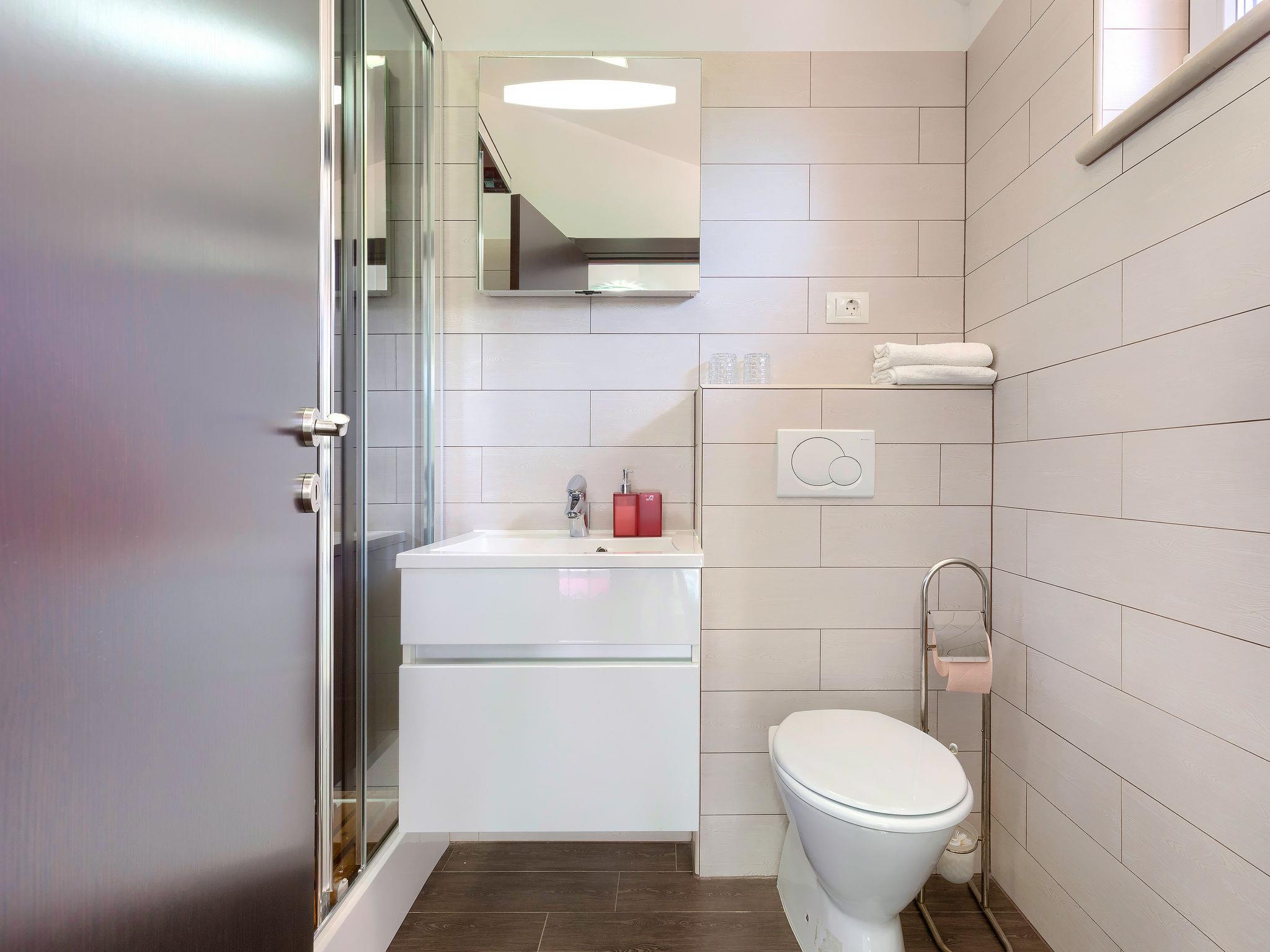 Single-family house "Villa Vela", 3 storeys. 300 m from the centre of Šišan, on the outskirts, 2 km from the centre of Ližnjan, 7 km from the centre of Pula, 3 km from the sea, 3 km from the beach. Private: property 1'600 m2 with lawn and trees, swimming pool heated (12 x 4 m, depth 135 cm, seasonal availability: 03.Apr. - 06.Nov.) with internal staircase and salt-electrolysis pool-cleaning system. Unconventional pool shape. Outdoor shower, hot tub, basketball, badminton, terrace (30 m2), garden furniture (swing). In the house: internet access, table tennis, trampoline, burglar alarm system, washing machine. Available: bicycles (2). Parking on the premises. Shop, restaurant 300 m, bus stop 450 m, pebble beach 3 km, rocky beach 3 km. Marina 5 km. Swimming pool heated (extra). Hot tub heating (extra).