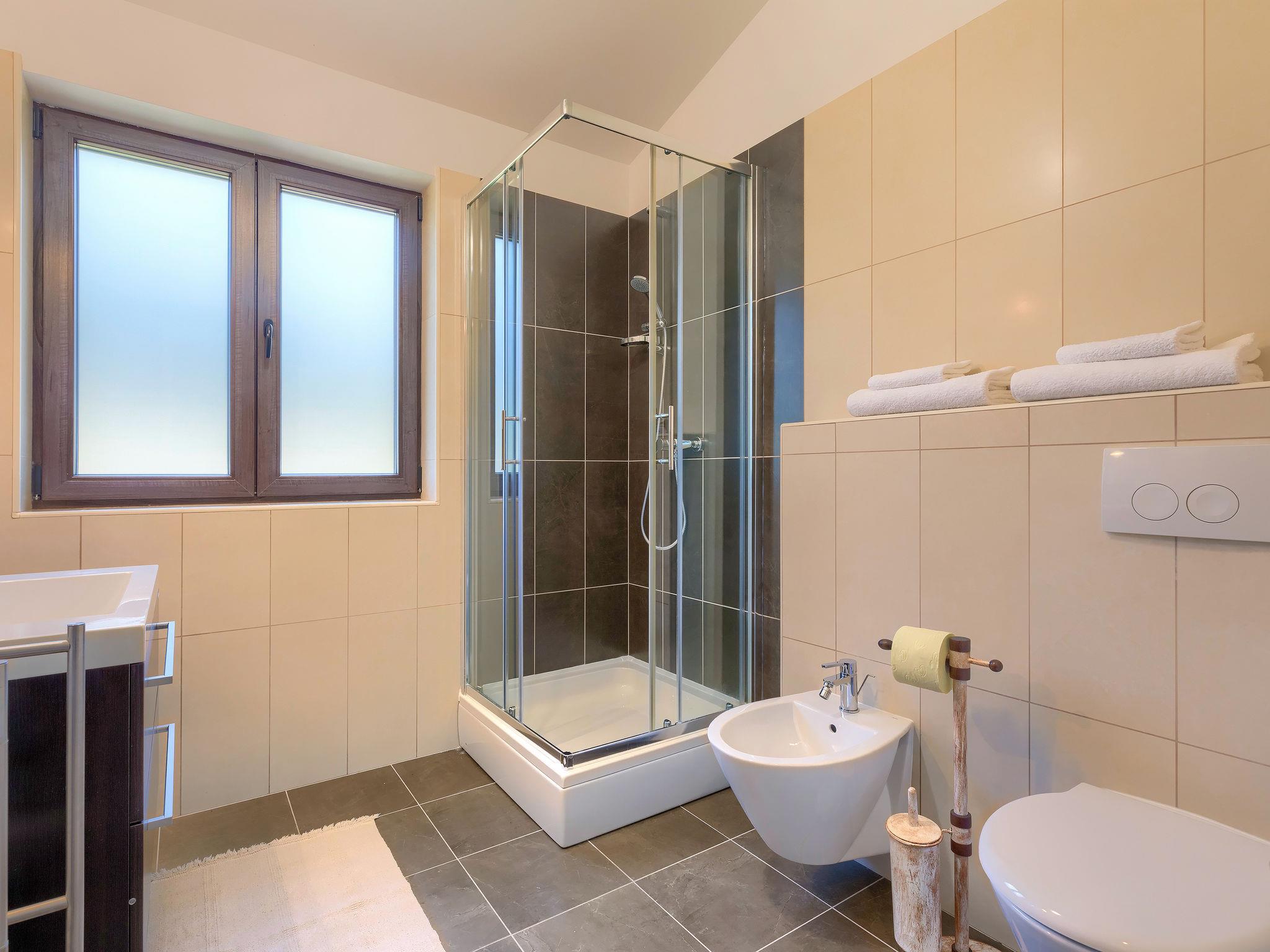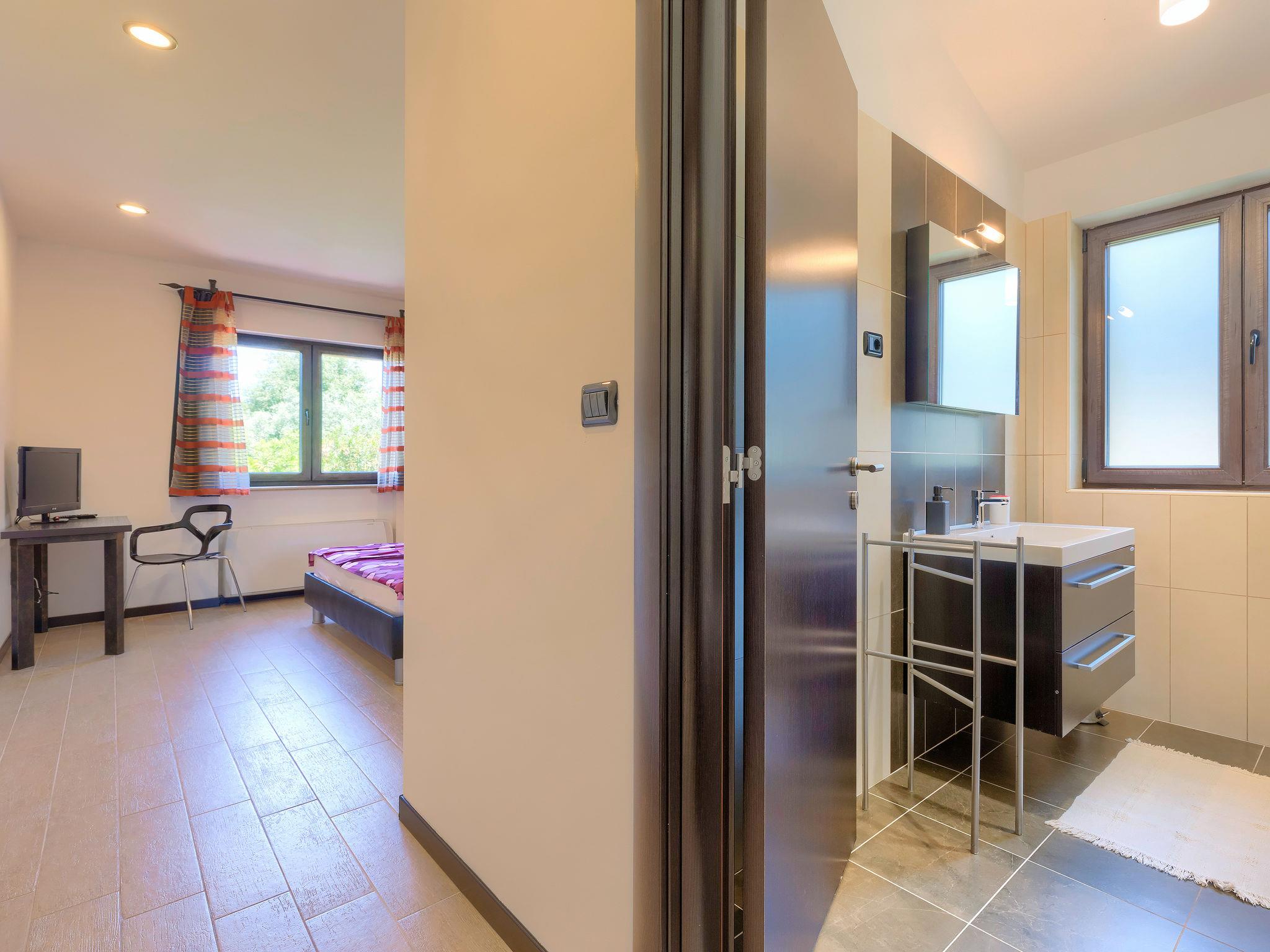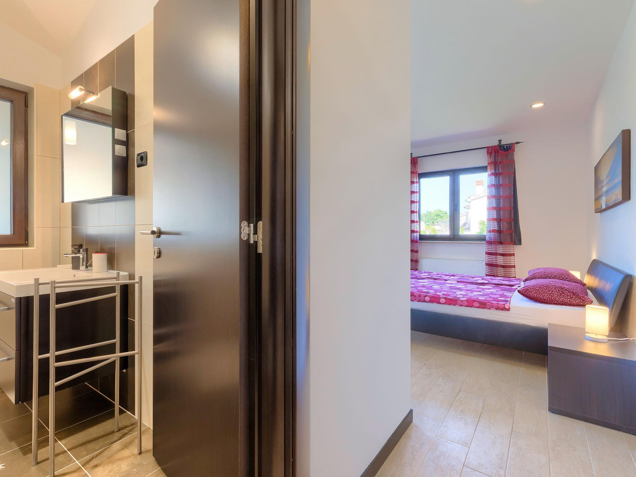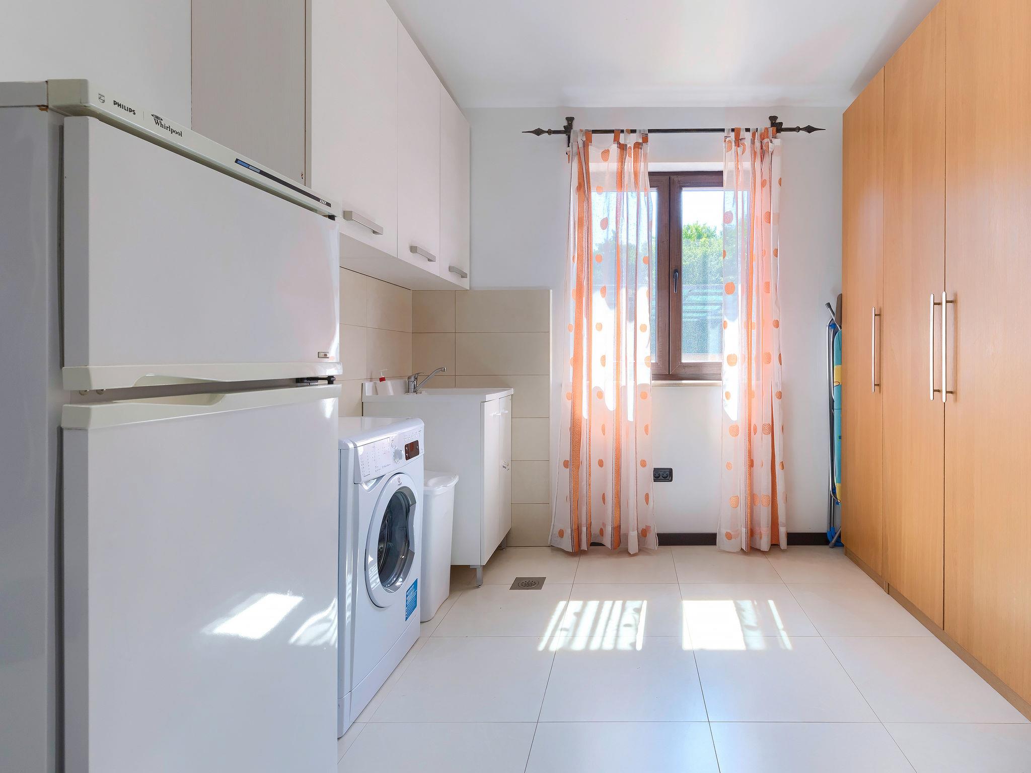 Single-family house "Andrea", 2 storeys. 300 m from the centre of Šišan, 4 km from the centre of Medulin, 7 km from the centre of Pula, 4 km from the sea, 4 km from the beach. Private: property 1'700 m2 with lawn and wildlife garden, swimming pool heated (59 m2, depth 125 cm, seasonal availability: 01.May. - 05.Nov.) with internal staircase. Unconventional pool shape. Outdoor shower, basketball, volleyball, badminton, terrace, garden furniture, barbecue (slide, swing). In the house: internet access, trampoline, burglar alarm system, washing machine. Parking (for 3 cars) on the premises. Shop, restaurant 300 m, bus stop 350 m, pebble beach 4 km, rocky beach 4 km. Please note: airfield 10 km from the property. Swimming pool heated (extra). Private: outdoor kitchen (4 gas rings).
