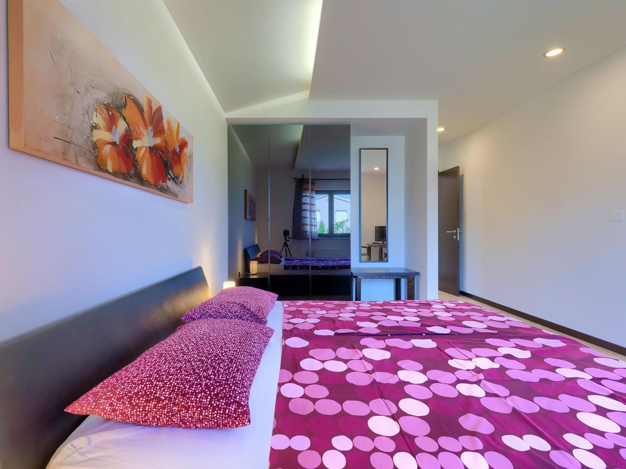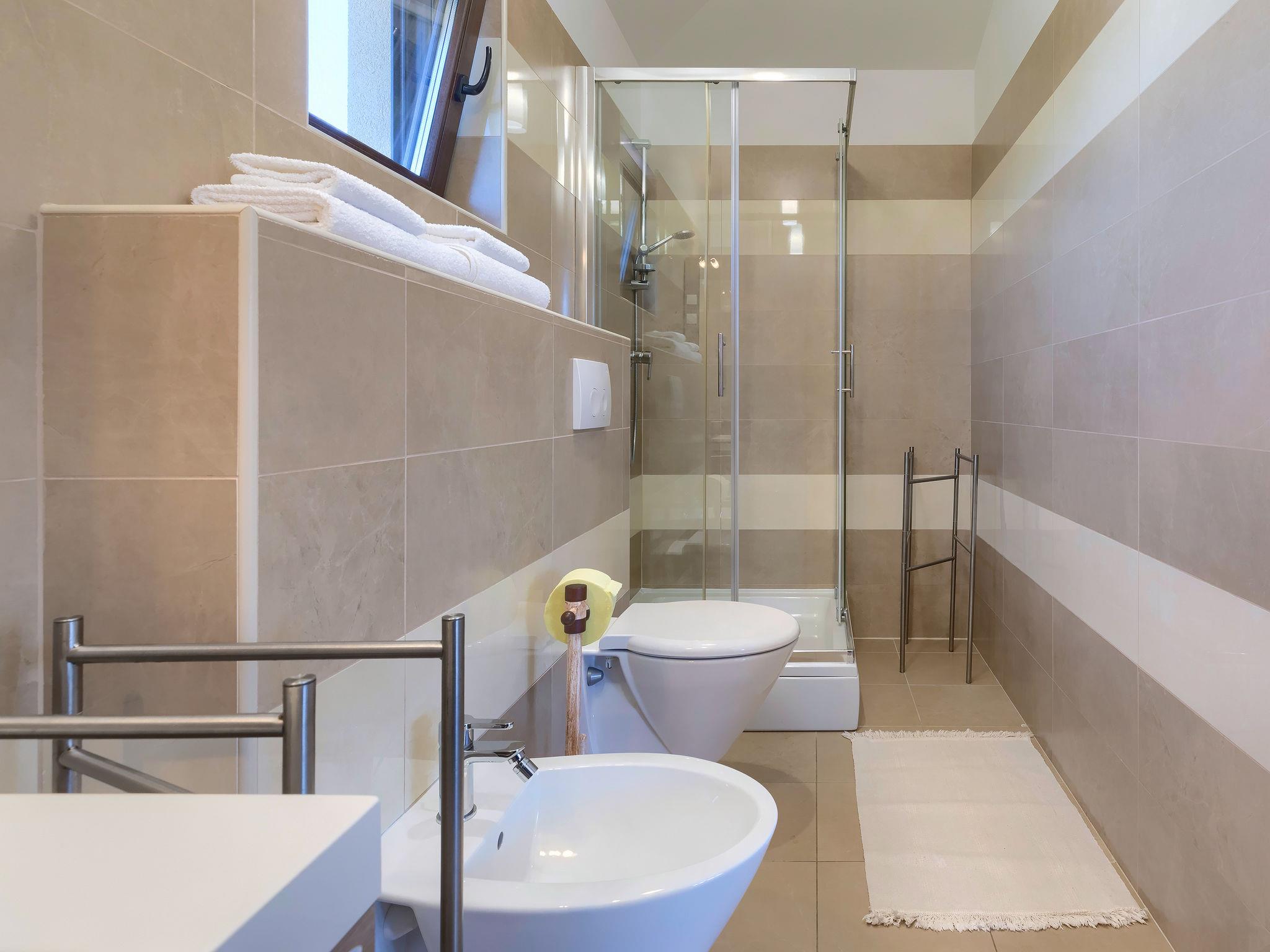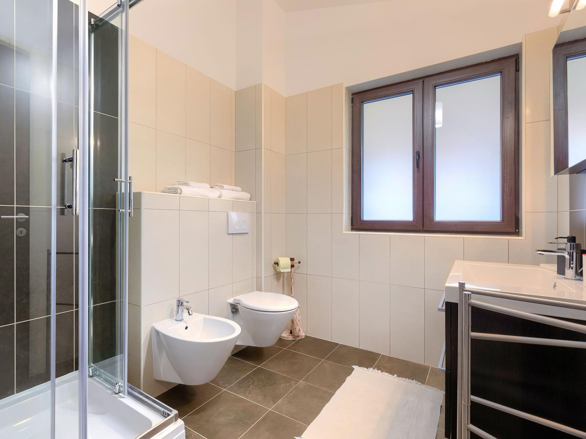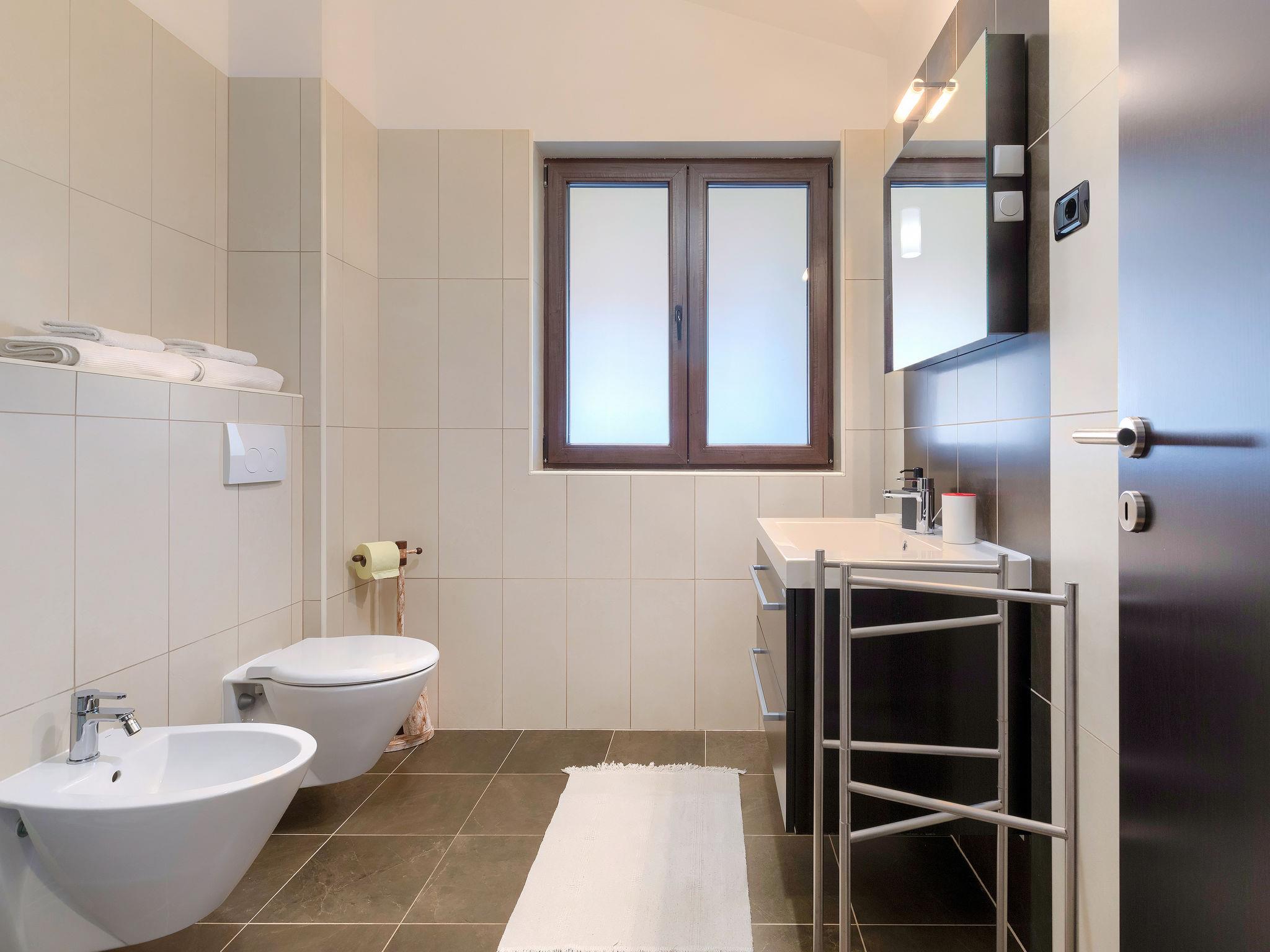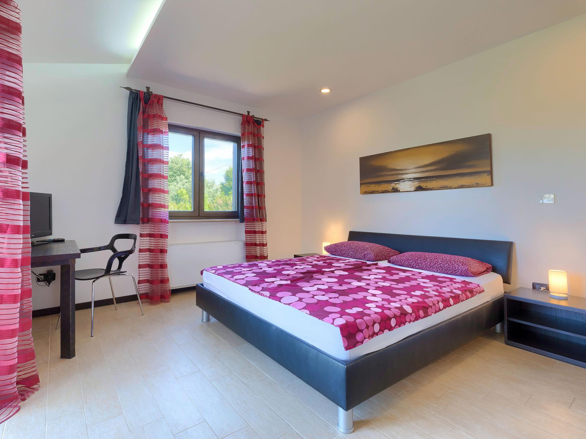 Single-family house "Andrea", 2 storeys. 300 m from the centre of Šišan, 4 km from the centre of Medulin, 7 km from the centre of Pula, 4 km from the sea, 4 km from the beach. Private: property 1'700 m2 with lawn and wildlife garden, swimming pool heated (59 m2, depth 125 cm, seasonal availability: 01.May. - 05.Nov.) with internal staircase. Unconventional pool shape. Outdoor shower, basketball, volleyball, badminton, terrace, garden furniture, barbecue (slide, swing). In the house: internet access, trampoline, burglar alarm system, washing machine. Parking (for 3 cars) on the premises. Shop, restaurant 300 m, bus stop 350 m, pebble beach 4 km, rocky beach 4 km. Please note: airfield 10 km from the property. Swimming pool heated (extra). Private: outdoor kitchen (4 gas rings).